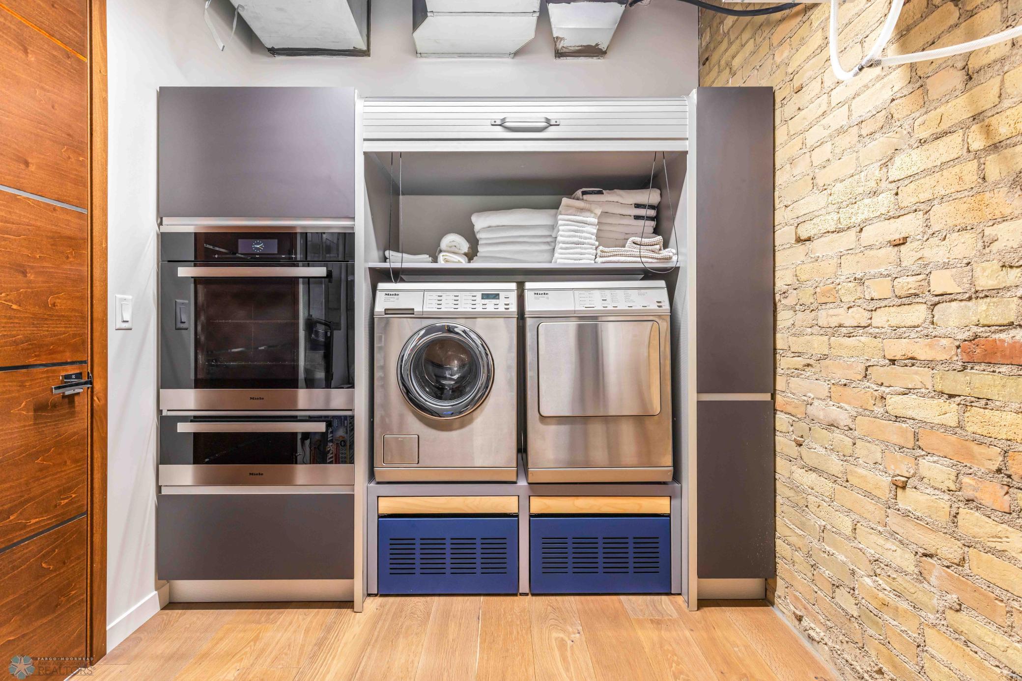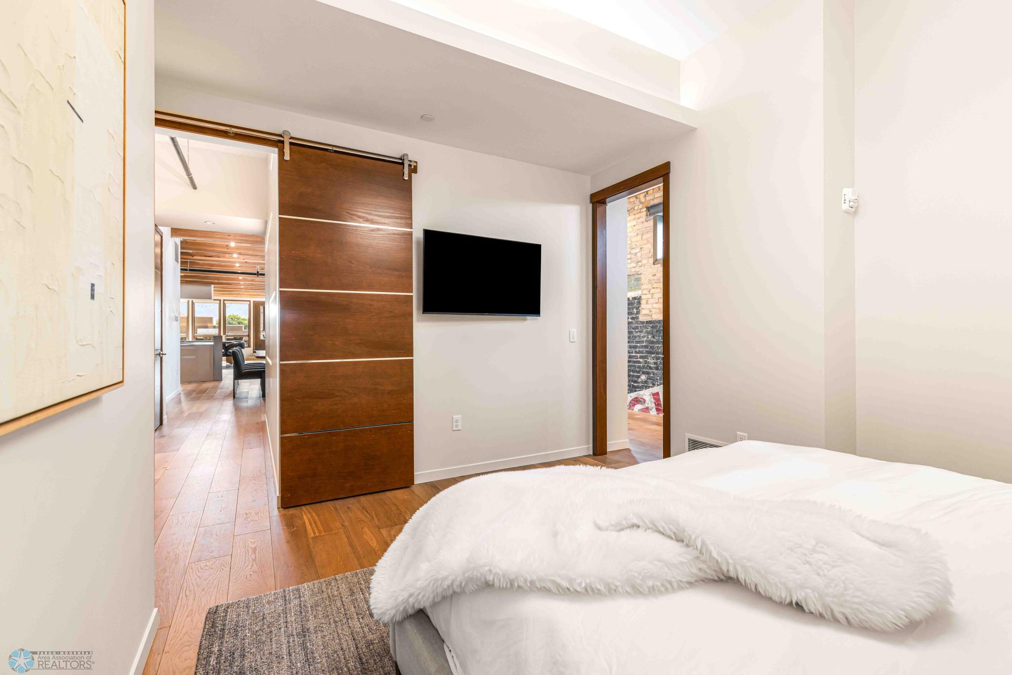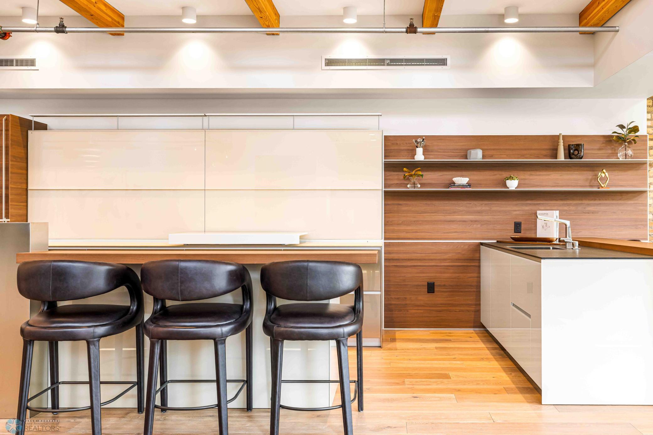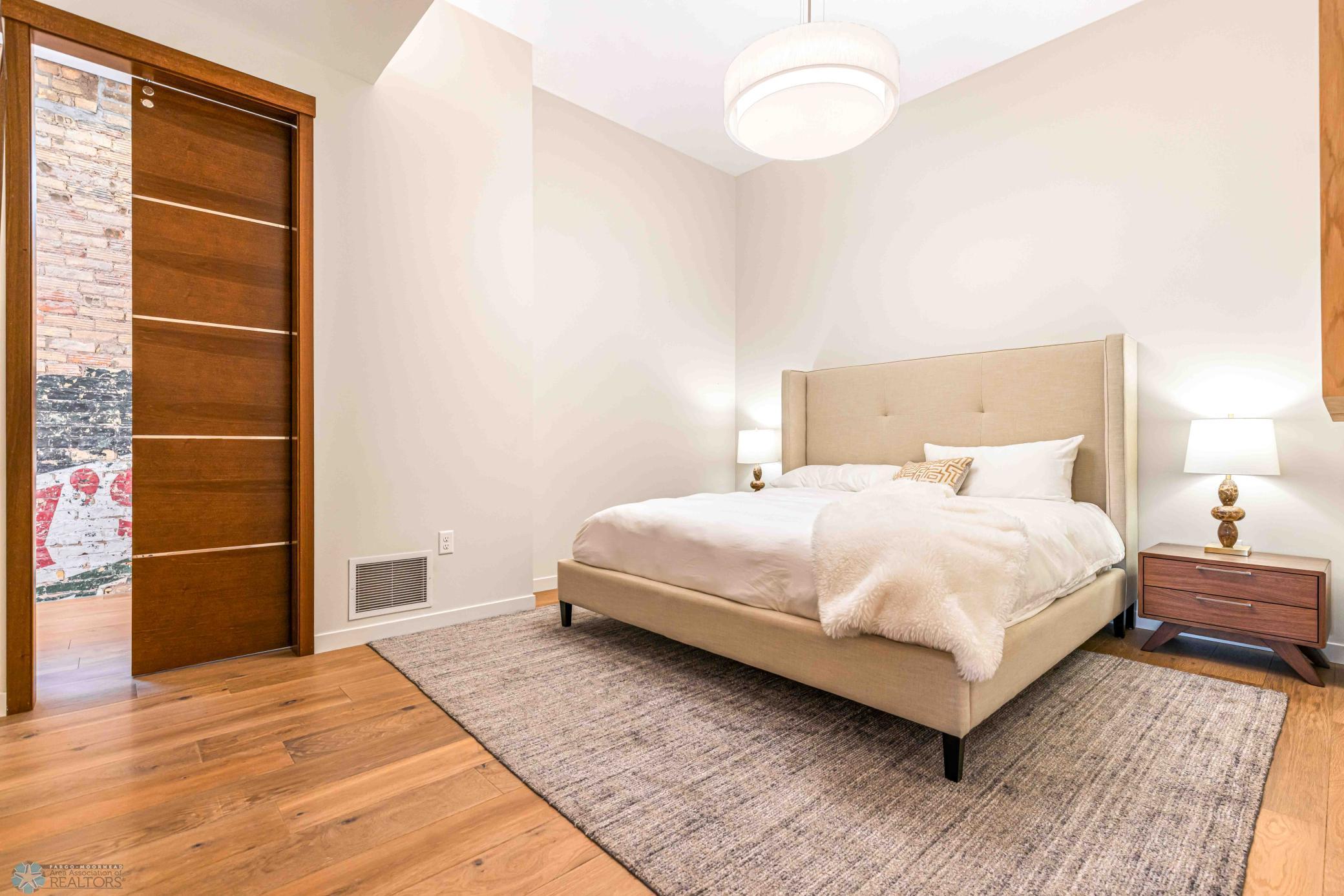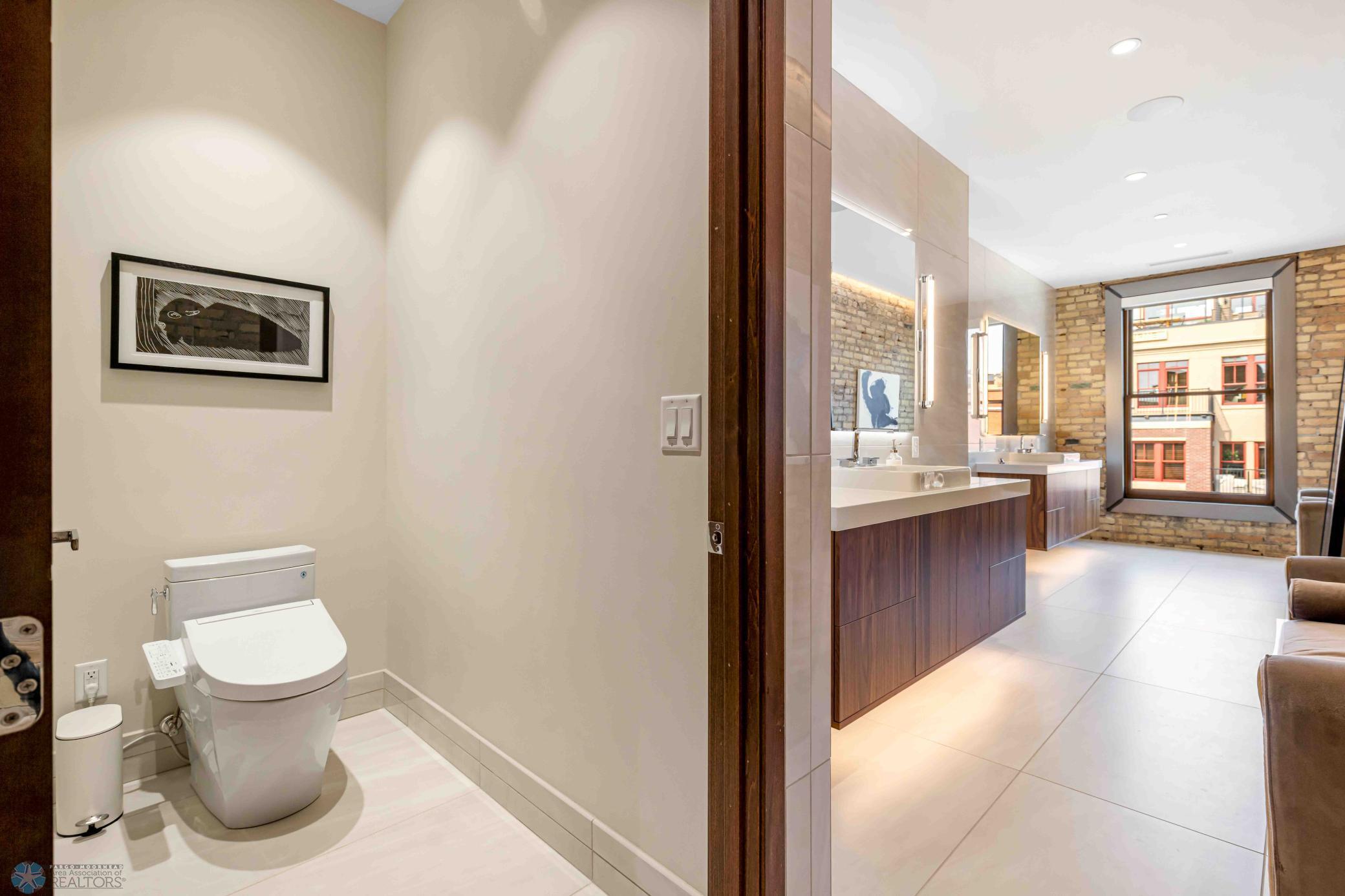The Moose Dixon Penthouse Perched above Broadway in the heart of downtown Fargo, overlooking the iconic Fargo Theatre, the Moose Dixon Penthouse is a breathtaking blend of historic charm and contemporary sophistication. Encompassing over 3,300 square feet, this one-of-a-kind residence crowns a landmark 1905 building, once home to Dixon Laundry and the Moose Lodge, now transformed into a timeless showcase of elevated urban living. Arrive through heated underground parking and take the elevator up to the penthouse level. Inside, stunning architectural details abound; from the custom barrel ceiling and original exposed brick to the modern suspended fireplace and sleek, in-wall lighting. Every inch is finished with intention, including 8-foot solid wood doors with striking chrome inlays that line the home with understated elegance. At the heart of the residence is a state-of-the-art Italian Valcucine kitchen, fitted with top-of-the-line Miele appliances, a hidden induction cooktop, dual sinks, pot filler, climate-controlled wine fridge, built-in icemaker, espresso machine, and warming drawers. Just beyond, a Butler’s pantry offers extra storage and discreetly houses the hidden in-unit washer and dryer, keeping utility out of sight without sacrificing convenience. The open-concept layout flows effortlessly into the living and dining spaces, featuring automated shades, invisible speakers, and smart lighting all powered by a full smart home system. A dual-zone furnace ensures comfort year-round, and the home is sold fully furnished with luxury designer pieces for a truly turnkey experience. Retreat to the spa-inspired bathrooms, where luxury continues with bidet toilets, heated seats, a deep soaking tub, dual vanities, and a massive steam shower that rivals high-end resorts. Step outside to the first of two private rooftop spaces; a fully finished outdoor oasis with an outdoor kitchen, custom fire feature, and seating for up to 21 guests, creating a true entertainer’s paradise in the heart of downtown. One level above, the second rooftop, on the fifth floor, offers a rare opportunity for future expansion. Already roughed in for a wet bar and hot tub, this unfinished space is ready for your vision to transform it into something extraordinary. Whether you’re searching for an iconic personal residence, a luxury short-term rental, or a one-of-a-kind event venue, the Moose Dixon Penthouse is a rare opportunity to own a piece of Fargo’s past.. refined and redefined for modern living.