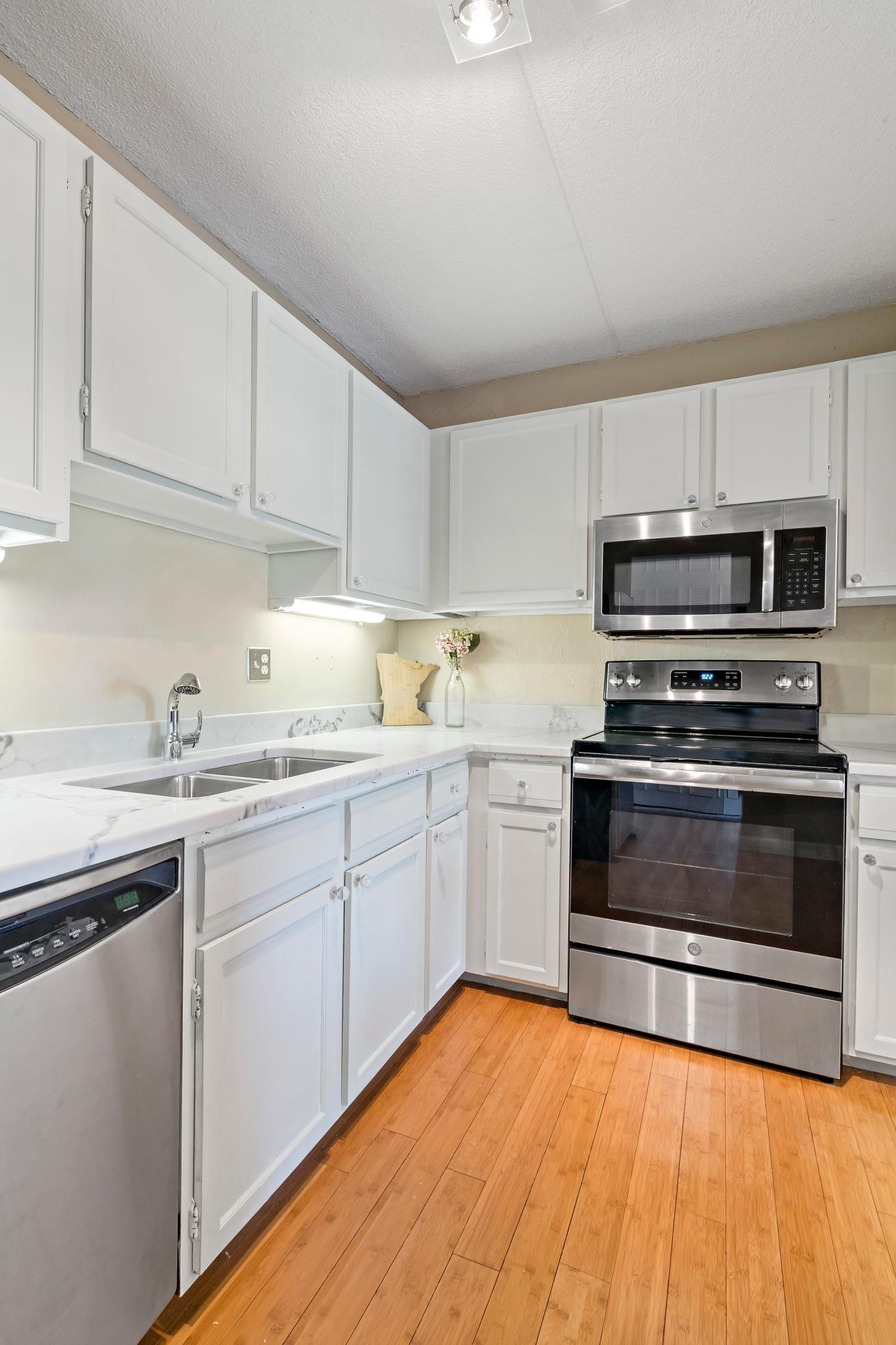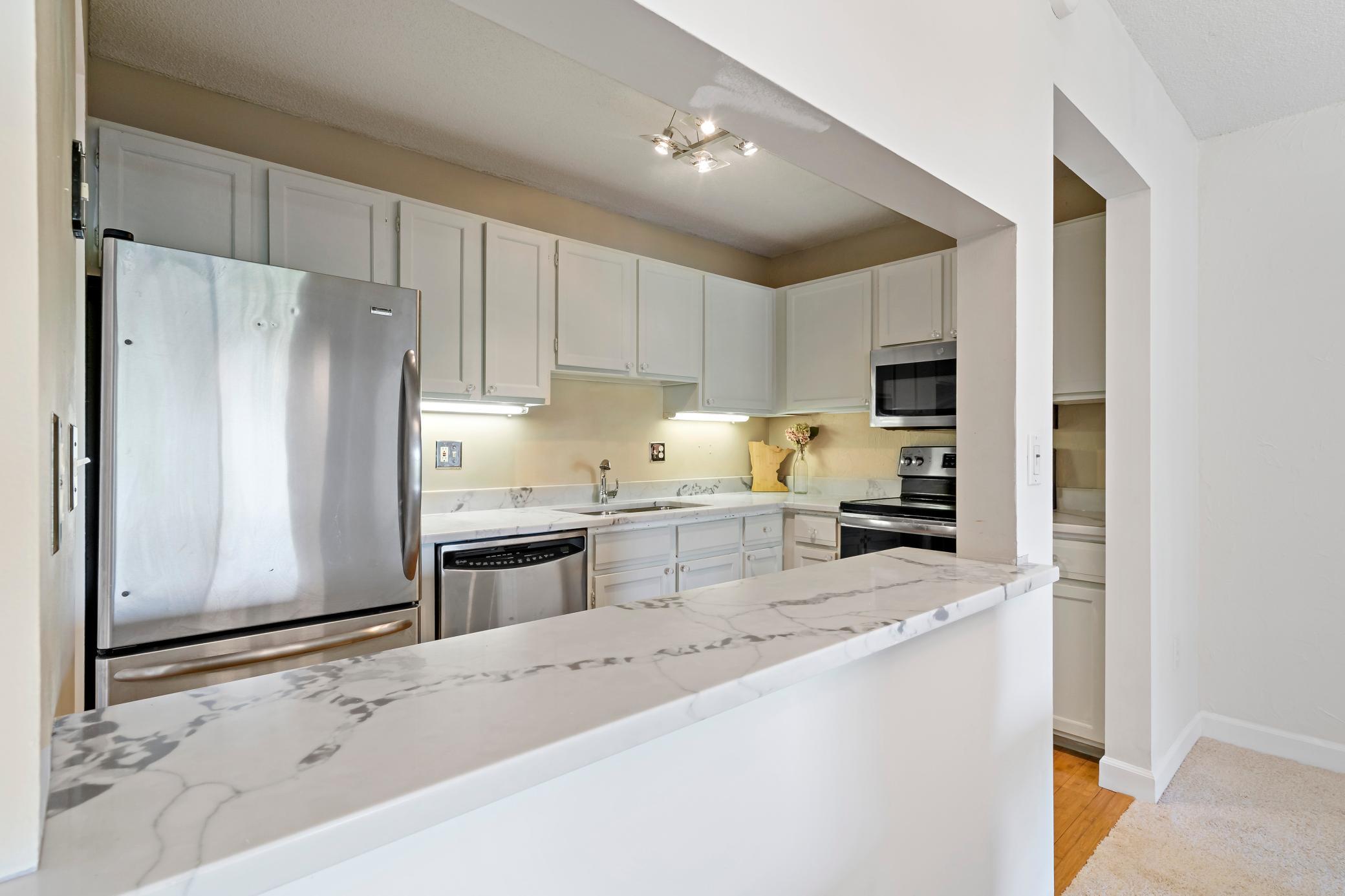 Beautifully updated, move-in ready condo in a convenient Minnetonka location! Generously sized rooms, large sliding doors bringing in sunlight, and great storage make this a special find. The updated kitchen features new quartz counters, new fixtures, cabinets with fresh paint and hardware, bamboo floors, and stainless steel appliances. The dining room and living room spaces blend together for comfortable living and entertain. The large bedroom has both a walk-in closet and second closet, and has access to the balcony. The bathroom has an updated vanity with quartz counter and resurfaced tub. There is also new carpet and new paint throughout. The community has amazing amenities, including an indoor and outdoor pool, hot tub, sauna, tennis courts, a fitness area and a community room with full kitchen. Garage space #35 plus extra storage in the spot and a storage cubby in laundry room. Guest suites are also available for rental. Underground, heated parking with storage and a car wash station. Tenant is responsible for all fines that are imposed on the unit by the HOA. All tenants must complete background check, tenant must pay move in application fee of $200, first months rent, and security deposit after background check has been verified and deemed acceptable. Tenant must submit rental history and references to listing agent at the time of background check application. Association requires proof of a HO-4 Insurance policy (renters insurance) must be provided to listing agent prior to move in. Tenant is responsible for all fines that are imposed on the unit by the HOA.