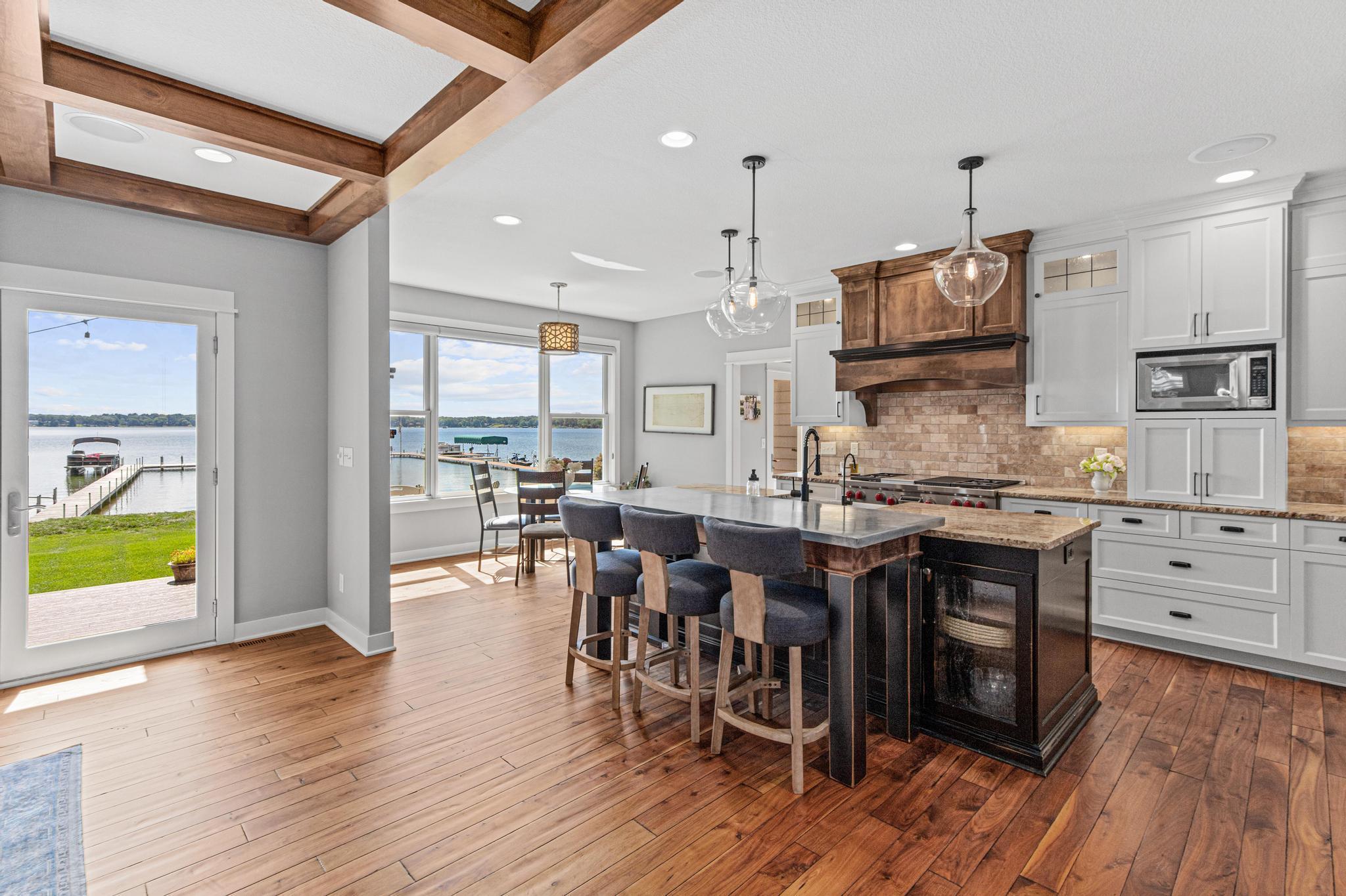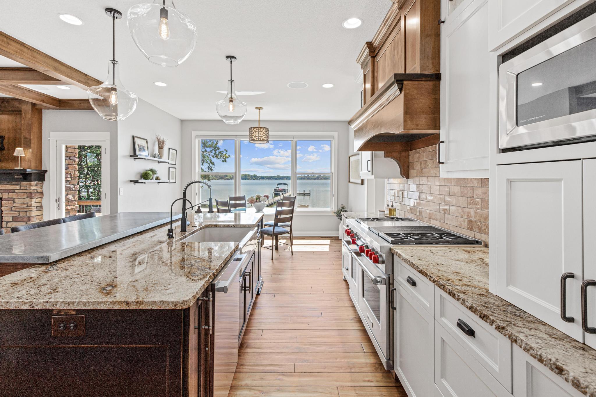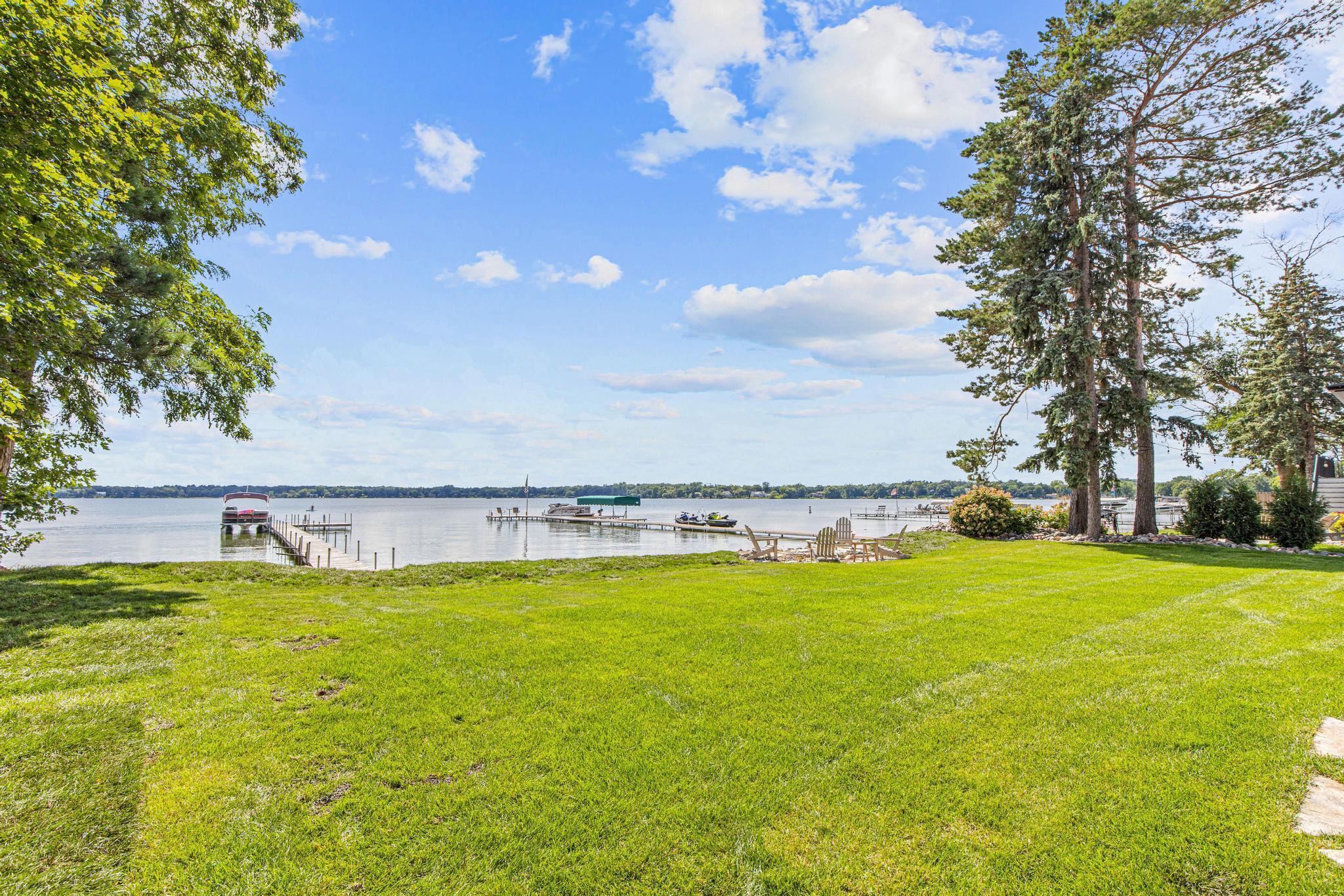 Spectacular 5BD/5BA home built by R&R Construction perfectly situated on 90' of the best lakeshore on Turtle Lake in the MV School District. From the striking curb appeal to the thoughtful interior, this home has it all; one-level living with hand-scraped walnut floors, a luxurious primary suite, main-level laundry, and a chef’s kitchen with high-end Wolf/Sub-Zero appliances, walk-in pantry, and multiple places to entertain family and friends. Upstairs boasts 4 generous bedrooms, 2 Jack-and-Jill baths, a laundry space plus an office. The lower level is an entertainer’s dream with a large bar, wine room, sauna, workout space, family room, and game area. Enjoy 90’ of pristine sugar-sand shoreline, a flat yard for lake games, and breathtaking views from nearly every room. The lake is calling... time to fish, boat, swim, skate and more.