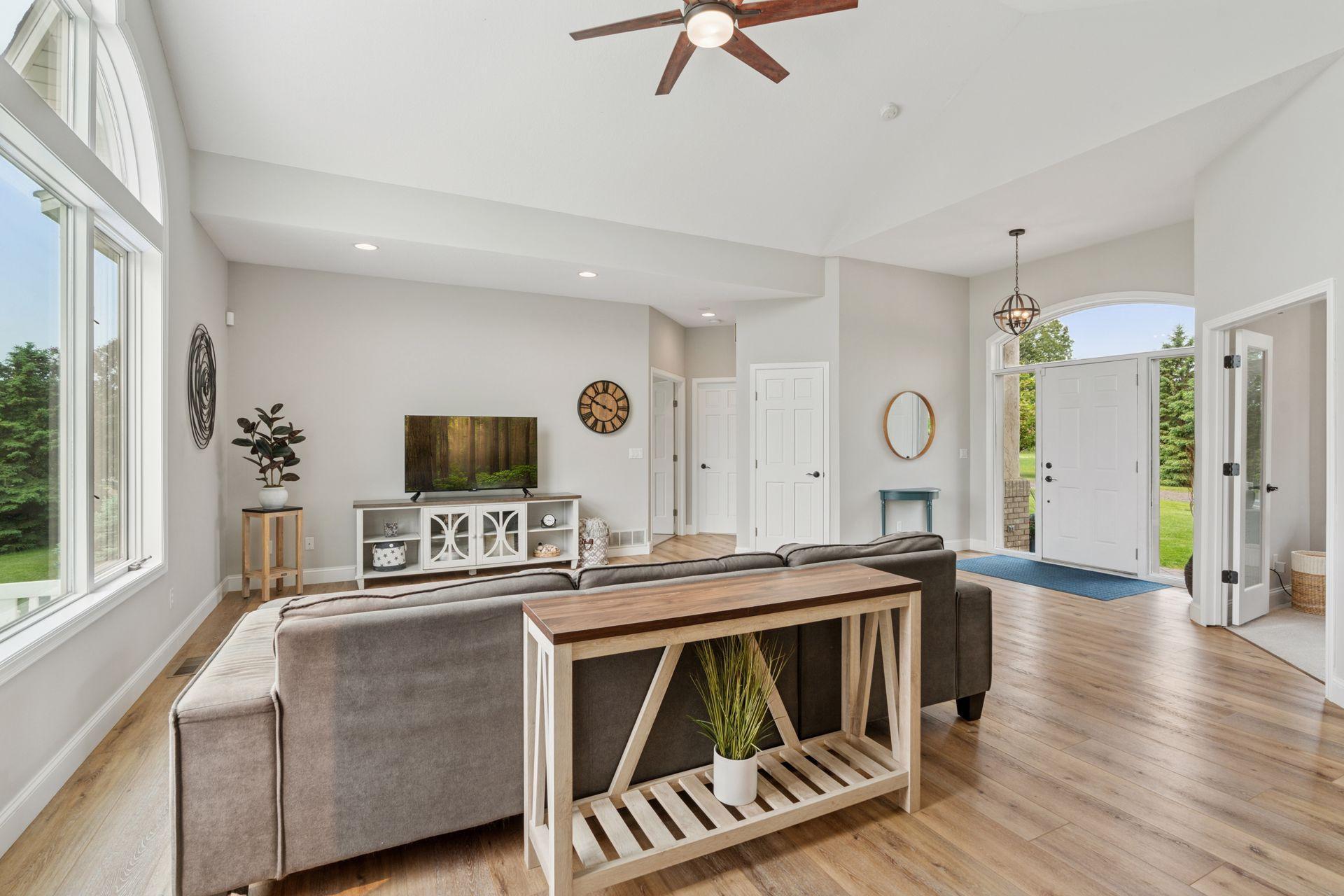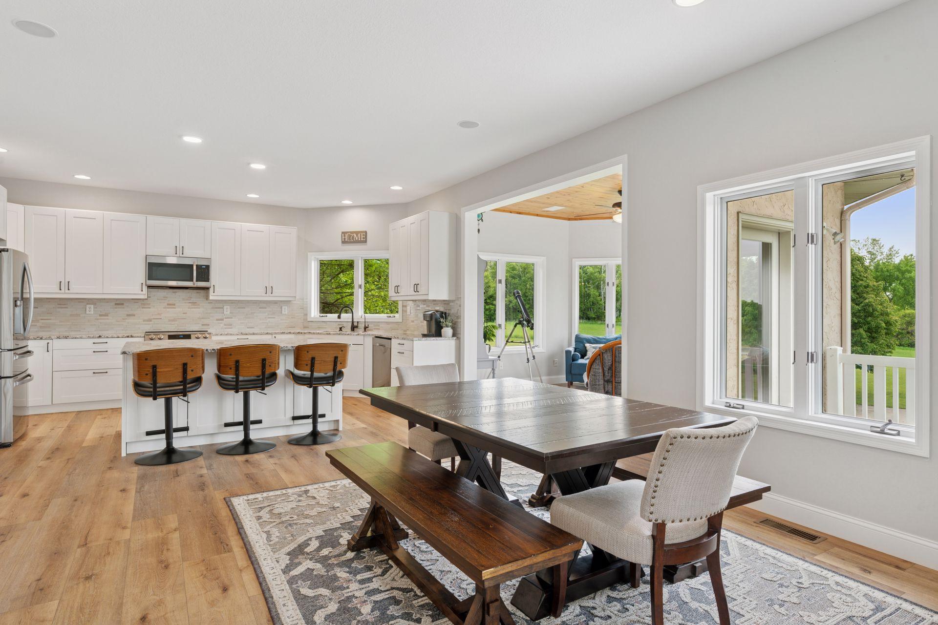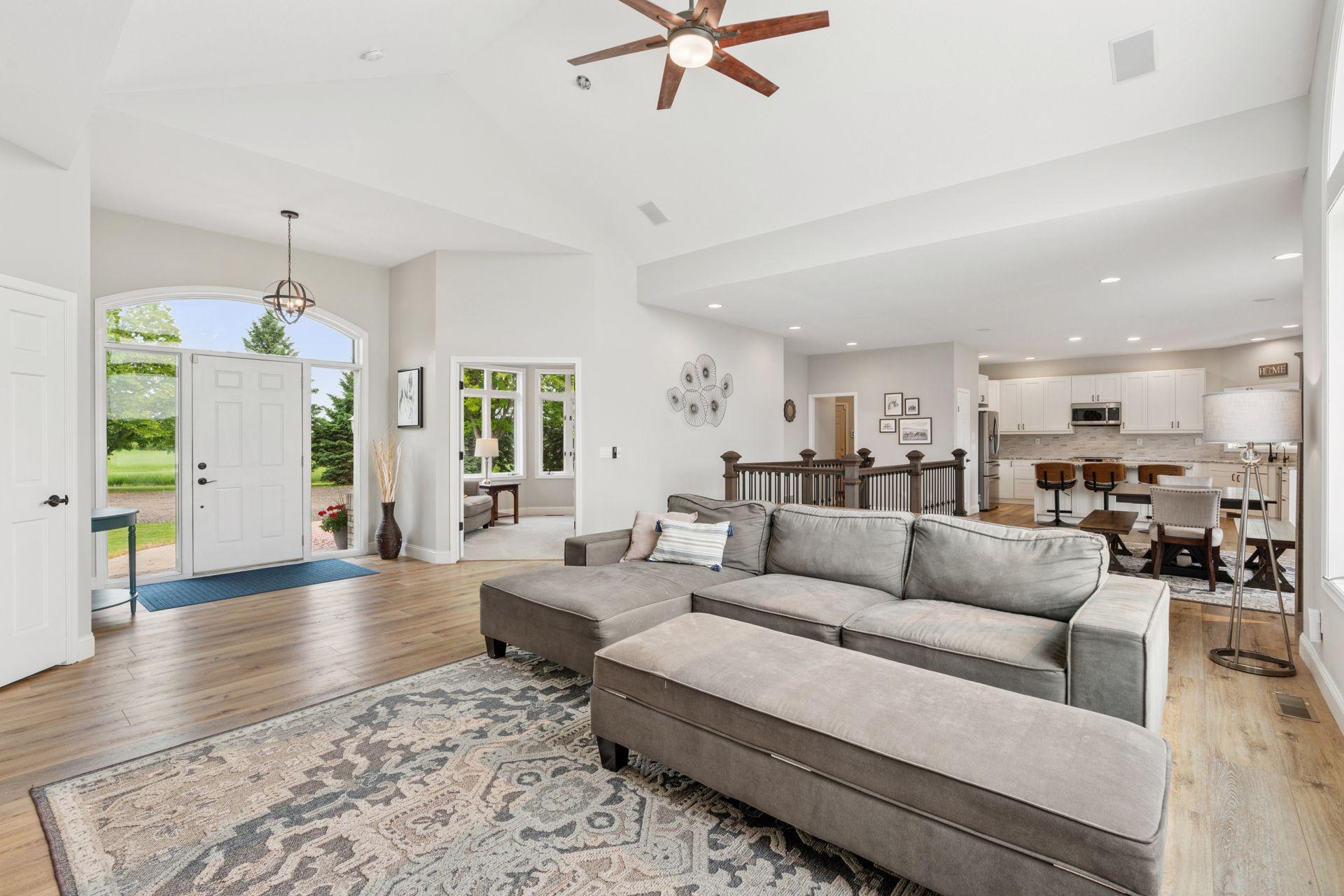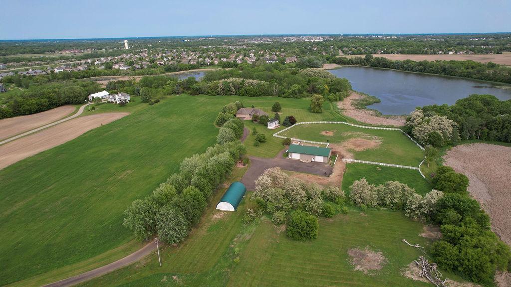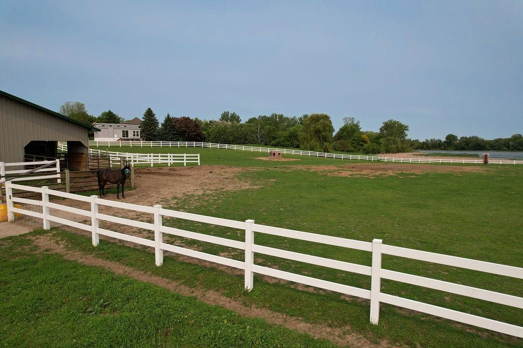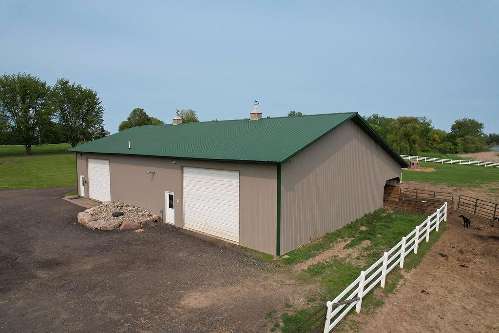 Lake front, Horse Stables, Fenced Pasture, Heated Shop, and 21 acres; if there were such thing as a Dream Property this is it! Welcome to this Custom-Built, walkout Rambler off Lake Cowley in Rogers. Thoughtfully designed with vaulted ceilings, a sunroom overlooking the backyard, and a dedicated home office space. The kitchen has upgraded features which include granite countertops, a tile backsplash, matching stainless steel appliances, and a large center island to gather around. On the Main Floor you will find the spacious, Primary Bedroom with Private Bathroom that includes a double vanity sink, tub, and walk-in shower. Enjoy Main Level Living with the Laundry Room located of the Main Floor as well. Downstairs you'll find two over-sized bedrooms, each include a walk in closet and built in vanity. Between each bedroom is a full bathroom with double vanity sink, tub, and walk in shower. Enjoy the wet-bar off the Family Room that has a walk out to the back patio. The outdoor space is magnificent. All the privacy one could wish for and lakefront that provides stunning sunset views off Lake Cowley. The 21 Acre lot holds a 64 x 27 Hay Tent and a 44 x 80 Heated and Insulated Pole Building containing a 44 x 47 Shop and six indoor horse stables, plumbed and ready for an additional bathroom to be added. Ask about future development options.