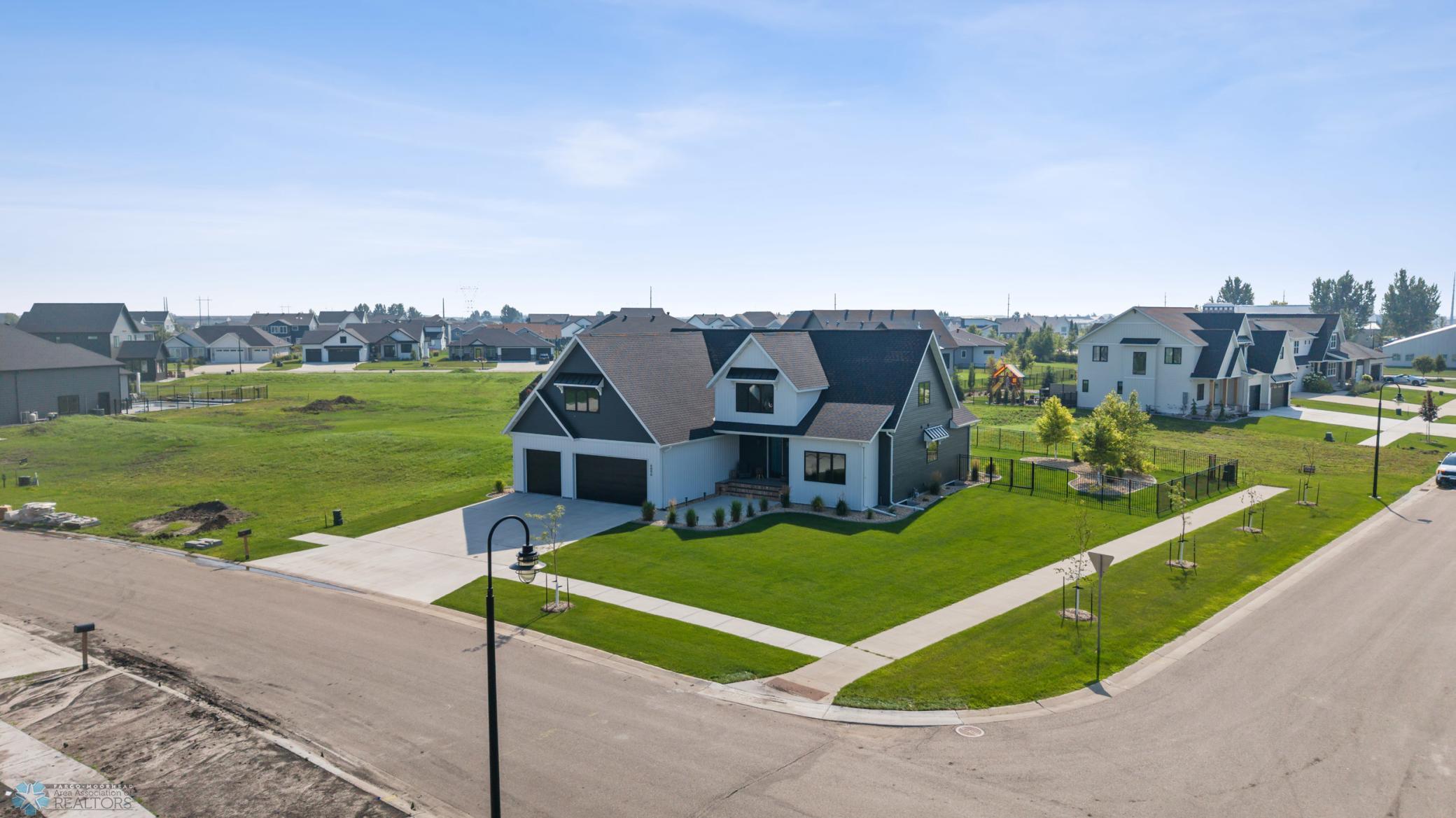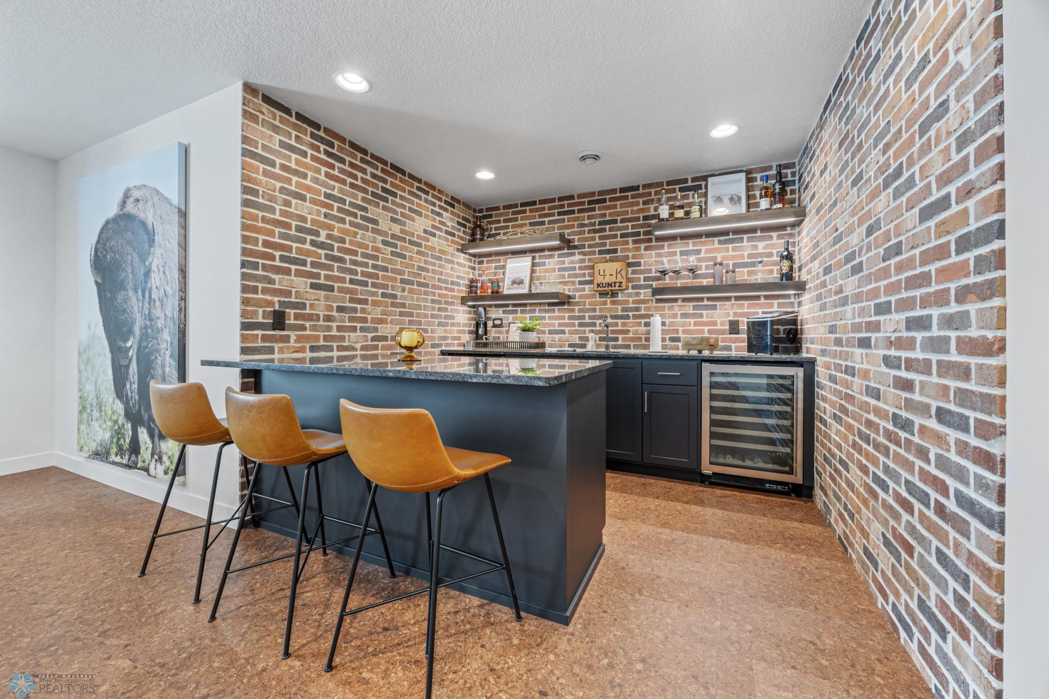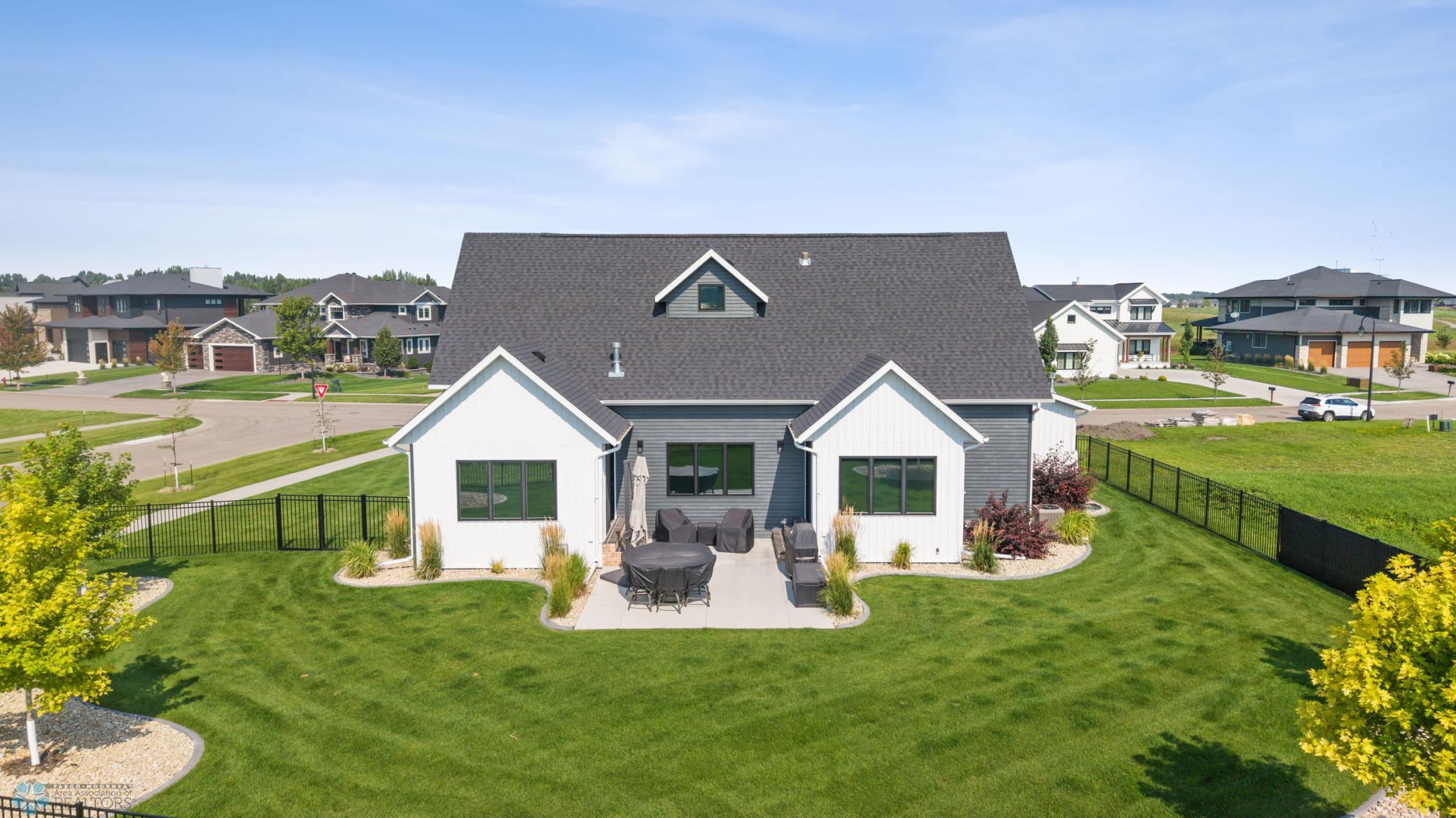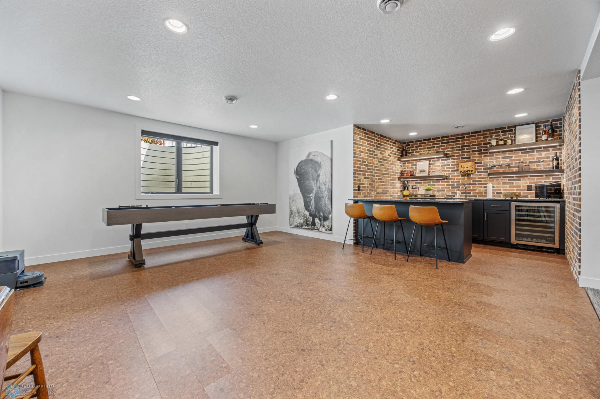 Where do I start? This custom built home by Krueger is on a large corner lot, fenced in yard, sprinkler system, curb landscaping, covered front porch, steel siding, high roof lines, large private patio in the back of the house, with two access areas from dining and primary bedroom. I haven't even gotten to the inside yet. You will be awe struck by wide open space and large windows that bring in an abundance of natural light. The doors are 8 feet tall. When you get to the kitchen you will love the custom cabinets by Wendt, solid surface counter tops, undermount sink, gas stove with custom hood. Large walk in pantry with custom shelving two tone cabinets and lighting galore. Main floor laundry, main floor primary with a large soaking tub and custom tile shower, heated floors, double sinks in the primary bath. The family room has a brick fireplace for the nights you want to cozy up. When you walk up the stairs you will see a bonus room for work or leisure. Three bedrooms and a beautiful custom bath with tile floors finish off the second floor. The basement is where the fun begins, brick gas fireplace, billiard/shuffle board area next to the amazing built in wet bar with cork flooring. The bar has two fridges and has brick walls. Two bedrooms and a Hollywood bath is all you need in this very comfortable space.