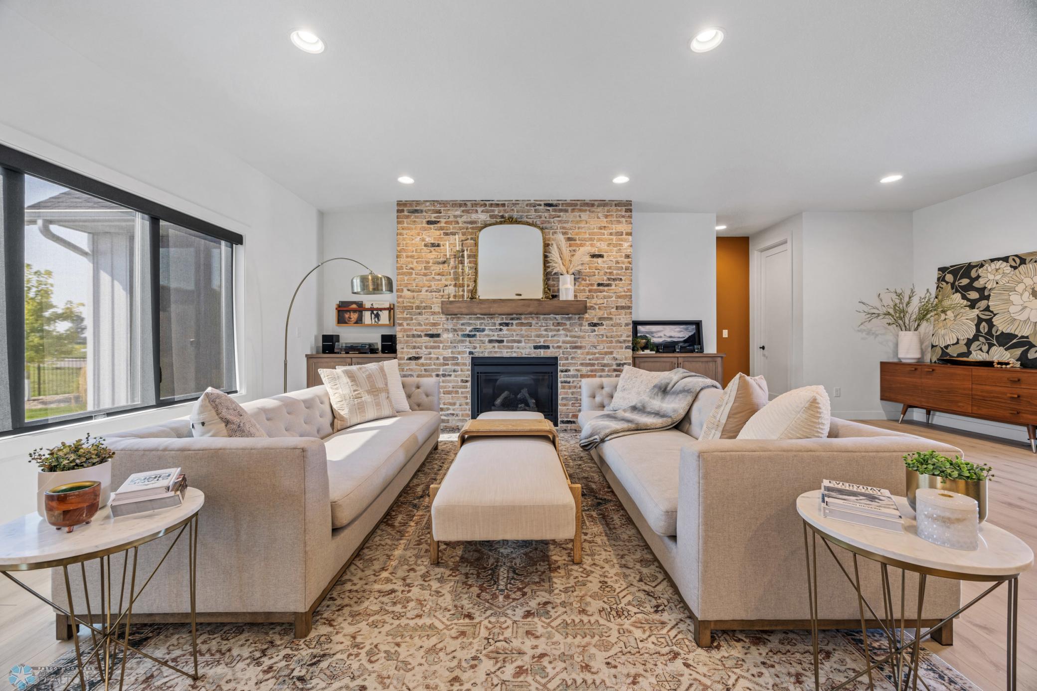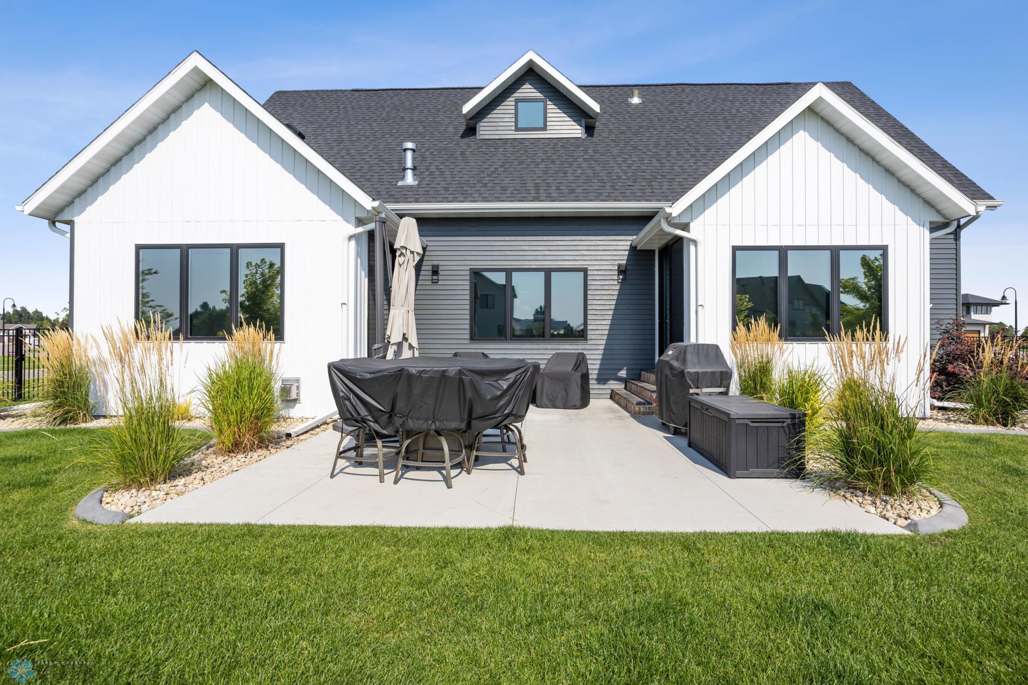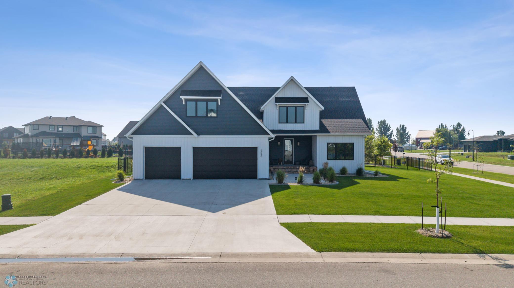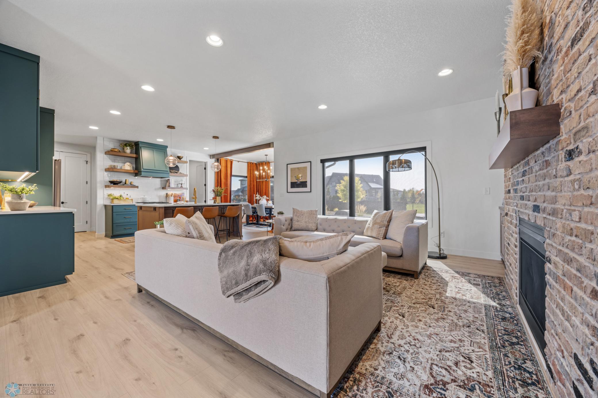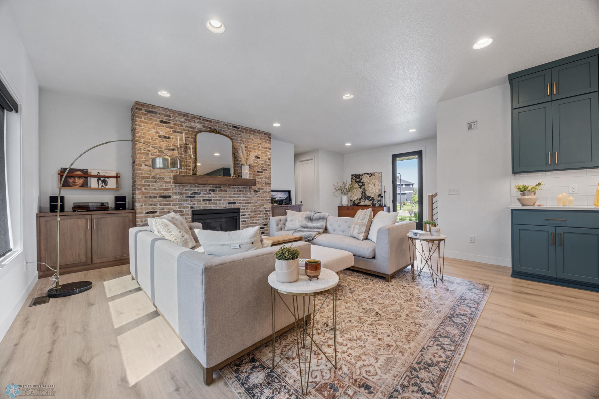 Where do I start? This custom built home by Krueger is on a large corner lot, fenced in yard, sprinkler system, curb landscaping, covered front porch, steel siding, high roof lines, large private patio in the back of the house, with two access areas from dining and primary bedroom. I haven't even gotten to the inside yet. You will be awe struck by wide open space and large windows that bring in an abundance of natural light. The doors are 8 feet tall. When you get to the kitchen you will love the custom cabinets by Wendt, solid surface counter tops, undermount sink, gas stove with custom hood. Large walk in pantry with custom shelving two tone cabinets and lighting galore. Main floor laundry, main floor primary with a large soaking tub and custom tile shower, heated floors, double sinks in the primary bath. The family room has a brick fireplace for the nights you want to cozy up. When you walk up the stairs you will see a bonus room for work or leisure. Three bedrooms and a beautiful custom bath with tile floors finish off the second floor. The basement is where the fun begins, brick gas fireplace, billiard/shuffle board area next to the amazing built in wet bar with cork flooring. The bar has two fridges and has brick walls. Two bedrooms and a Hollywood bath is all you need in this very comfortable space.