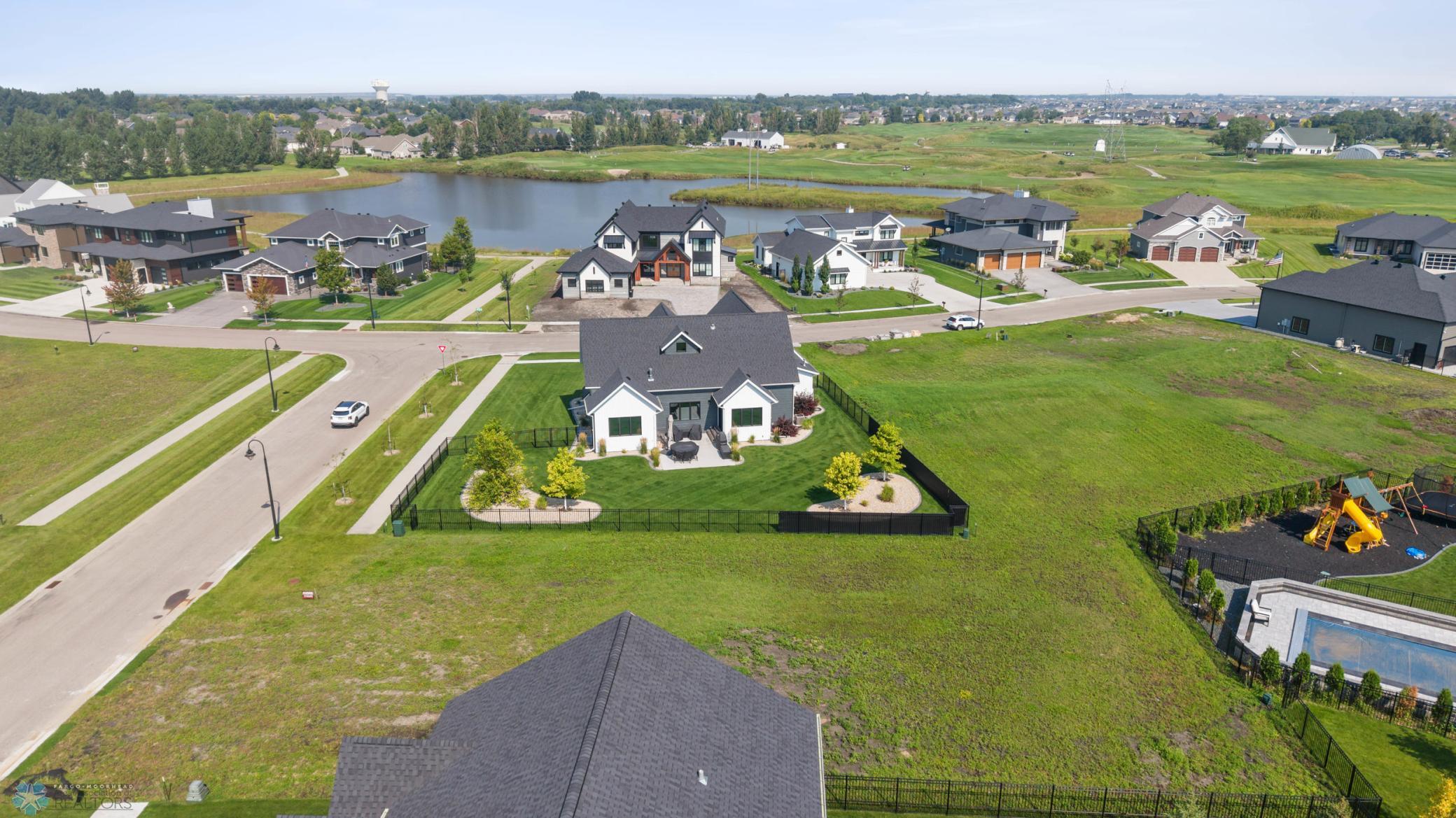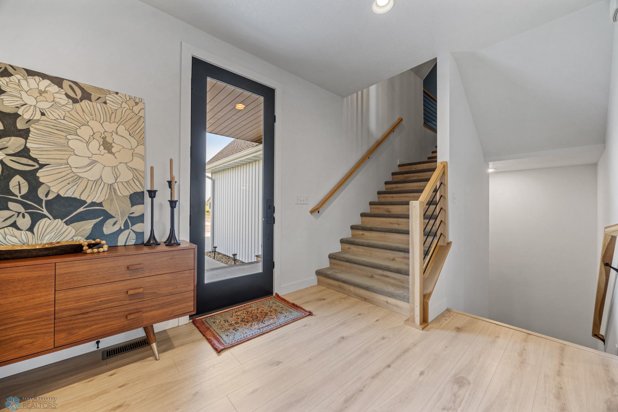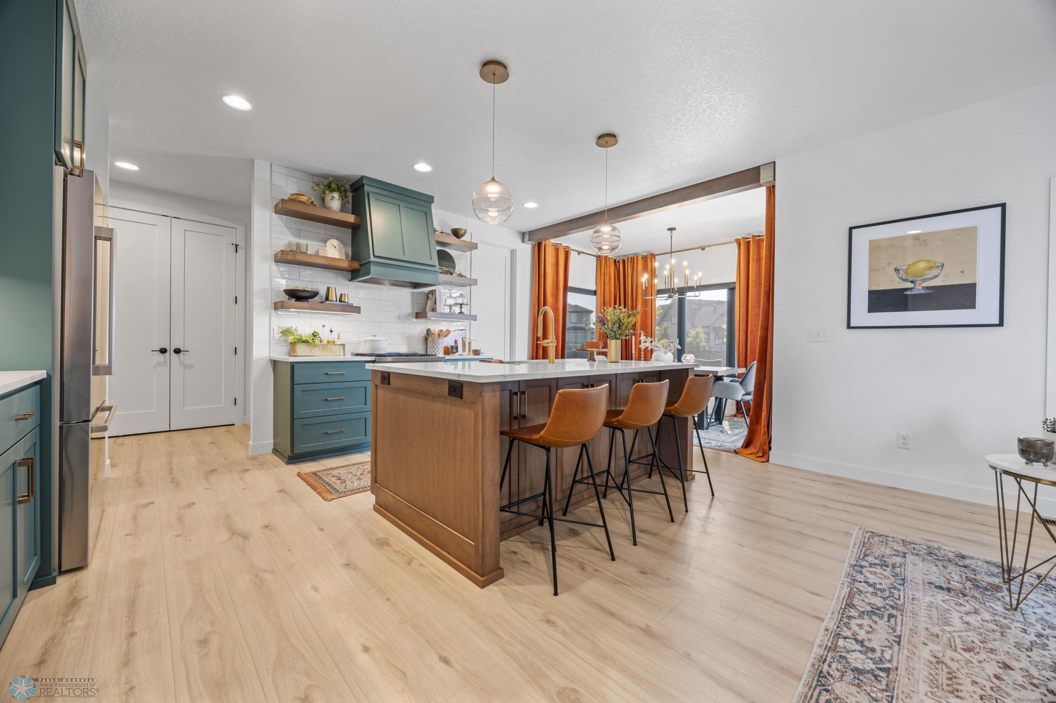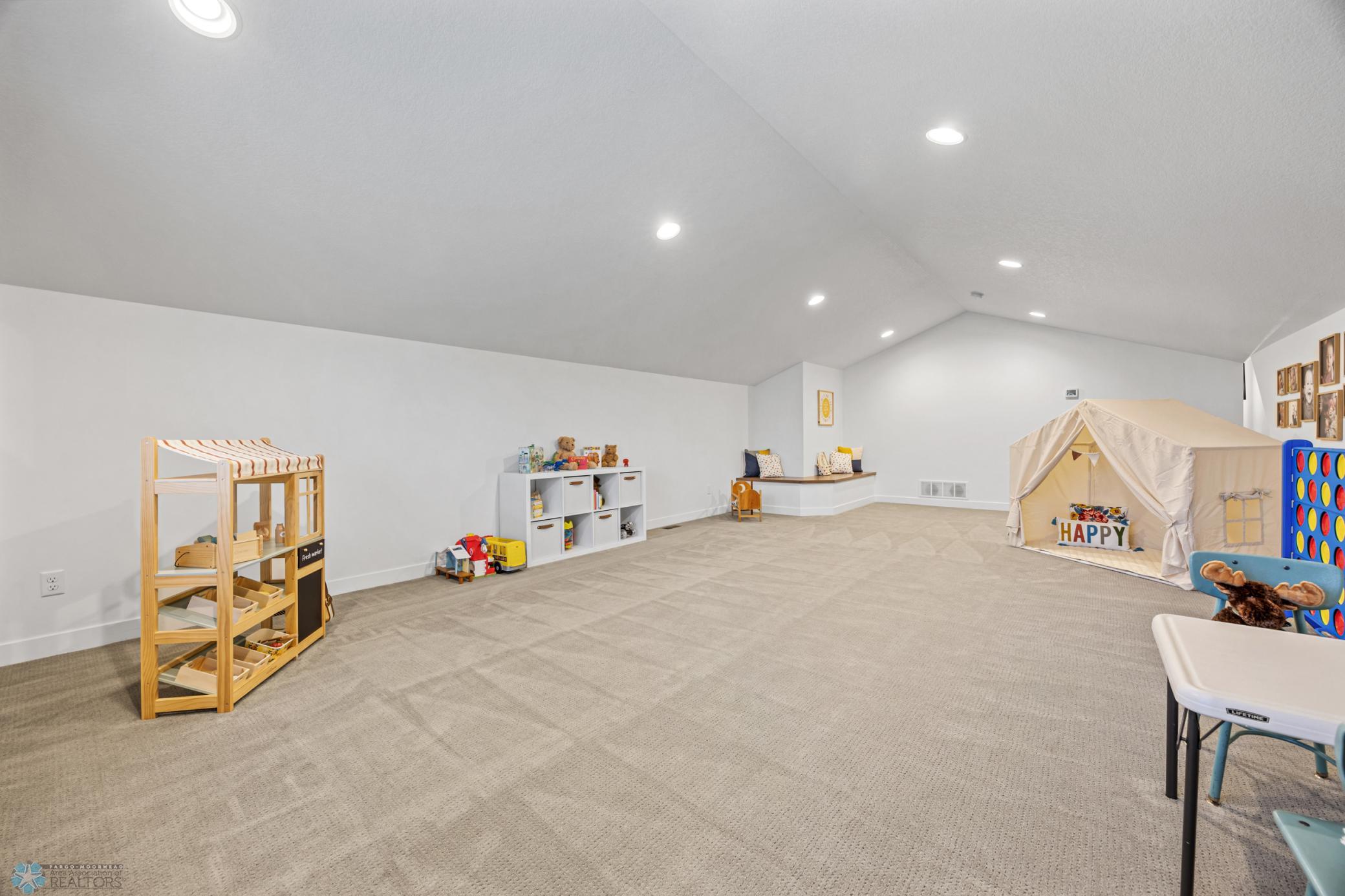 Where do I start? This custom built home by Krueger is on a large corner lot, fenced in yard, sprinkler system, curb landscaping, covered front porch, steel siding, high roof lines, large private patio in the back of the house, with two access areas from dining and primary bedroom. I haven't even gotten to the inside yet. You will be awe struck by wide open space and large windows that bring in an abundance of natural light. The doors are 8 feet tall. When you get to the kitchen you will love the custom cabinets by Wendt, solid surface counter tops, undermount sink, gas stove with custom hood. Large walk in pantry with custom shelving two tone cabinets and lighting galore. Main floor laundry, main floor primary with a large soaking tub and custom tile shower, heated floors, double sinks in the primary bath. The family room has a brick fireplace for the nights you want to cozy up. When you walk up the stairs you will see a bonus room for work or leisure. Three bedrooms and a beautiful custom bath with tile floors finish off the second floor. The basement is where the fun begins, brick gas fireplace, billiard/shuffle board area next to the amazing built in wet bar with cork flooring. The bar has two fridges and has brick walls. Two bedrooms and a Hollywood bath is all you need in this very comfortable space.