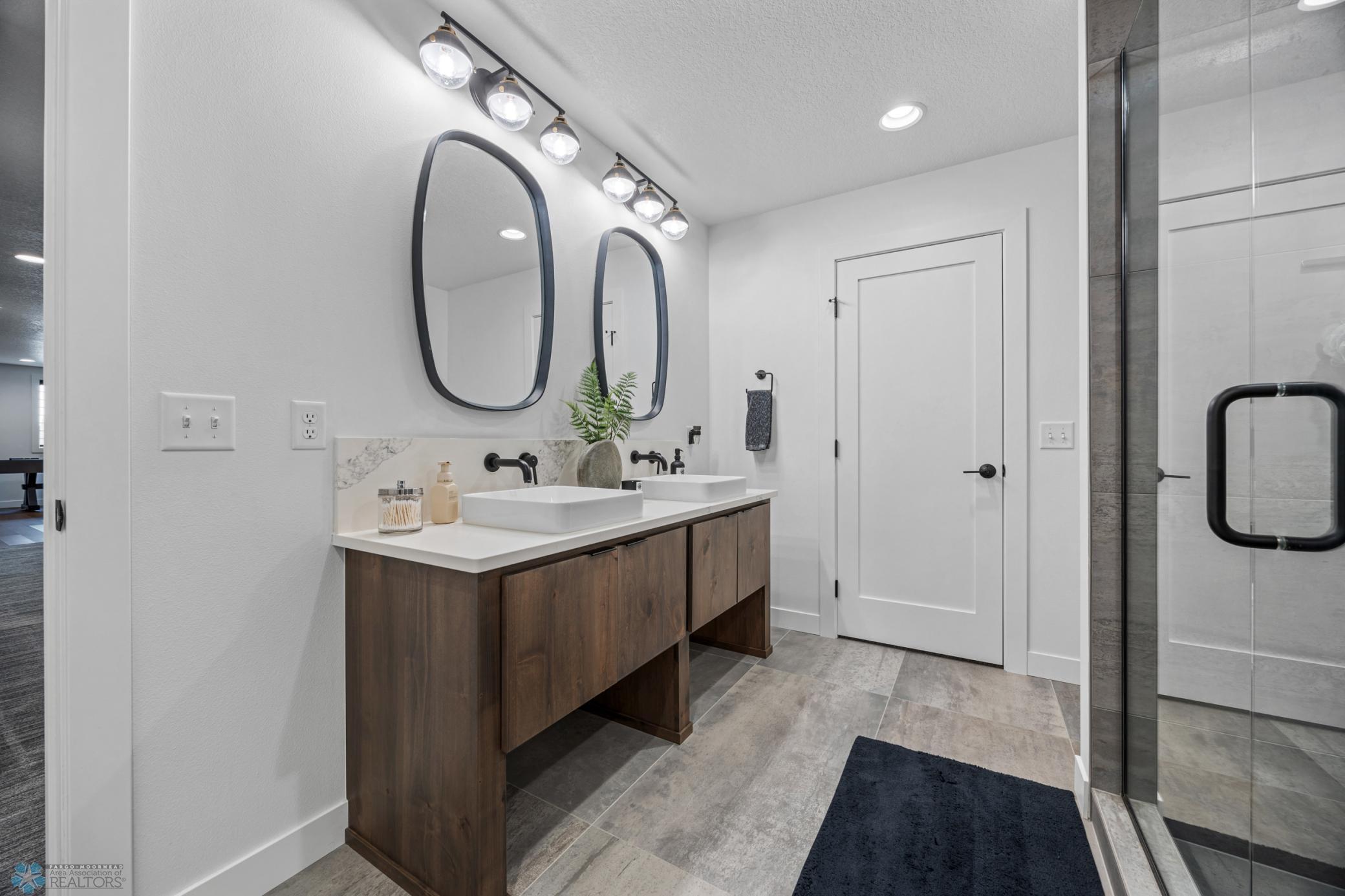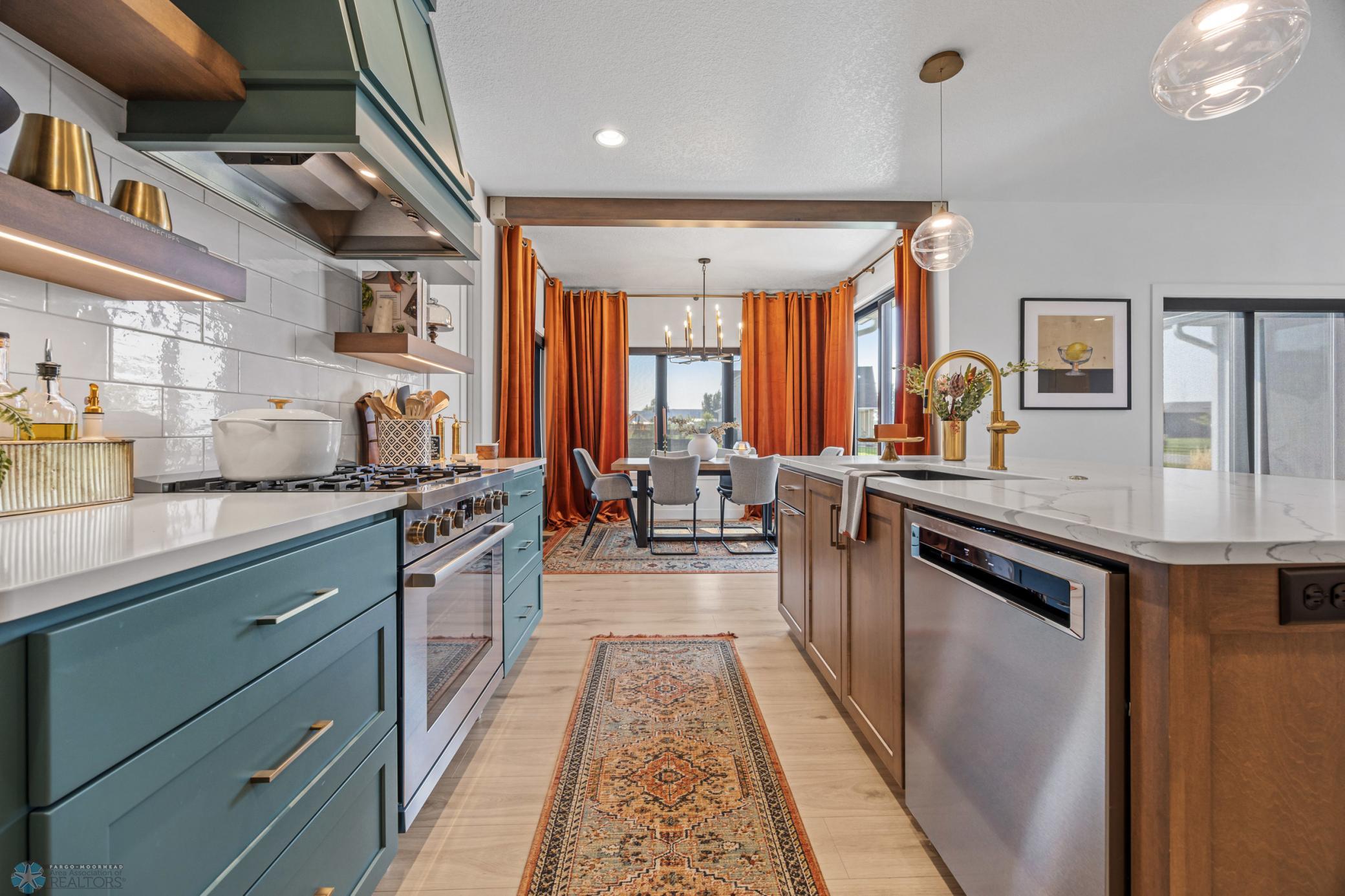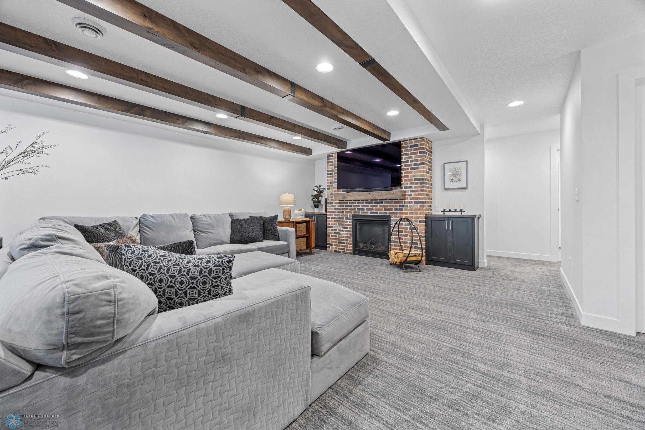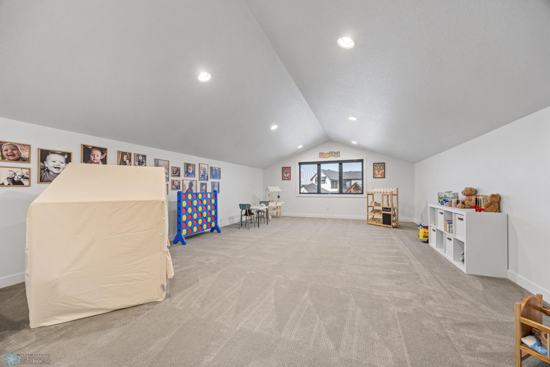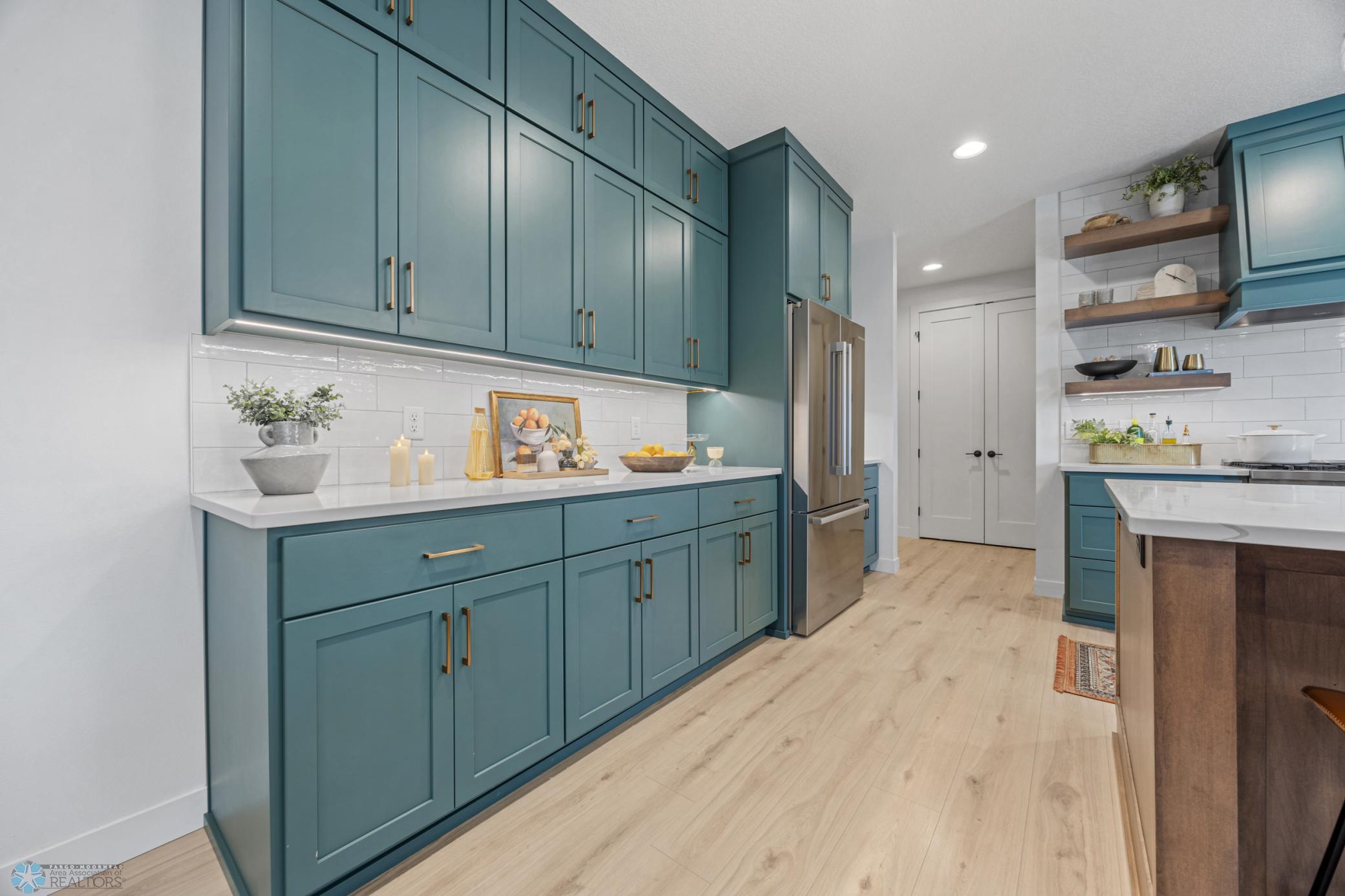 Where do I start? This custom built home by Krueger is on a large corner lot, fenced in yard, sprinkler system, curb landscaping, covered front porch, steel siding, high roof lines, large private patio in the back of the house, with two access areas from dining and primary bedroom. I haven't even gotten to the inside yet. You will be awe struck by wide open space and large windows that bring in an abundance of natural light. The doors are 8 feet tall. When you get to the kitchen you will love the custom cabinets by Wendt, solid surface counter tops, undermount sink, gas stove with custom hood. Large walk in pantry with custom shelving two tone cabinets and lighting galore. Main floor laundry, main floor primary with a large soaking tub and custom tile shower, heated floors, double sinks in the primary bath. The family room has a brick fireplace for the nights you want to cozy up. When you walk up the stairs you will see a bonus room for work or leisure. Three bedrooms and a beautiful custom bath with tile floors finish off the second floor. The basement is where the fun begins, brick gas fireplace, billiard/shuffle board area next to the amazing built in wet bar with cork flooring. The bar has two fridges and has brick walls. Two bedrooms and a Hollywood bath is all you need in this very comfortable space.