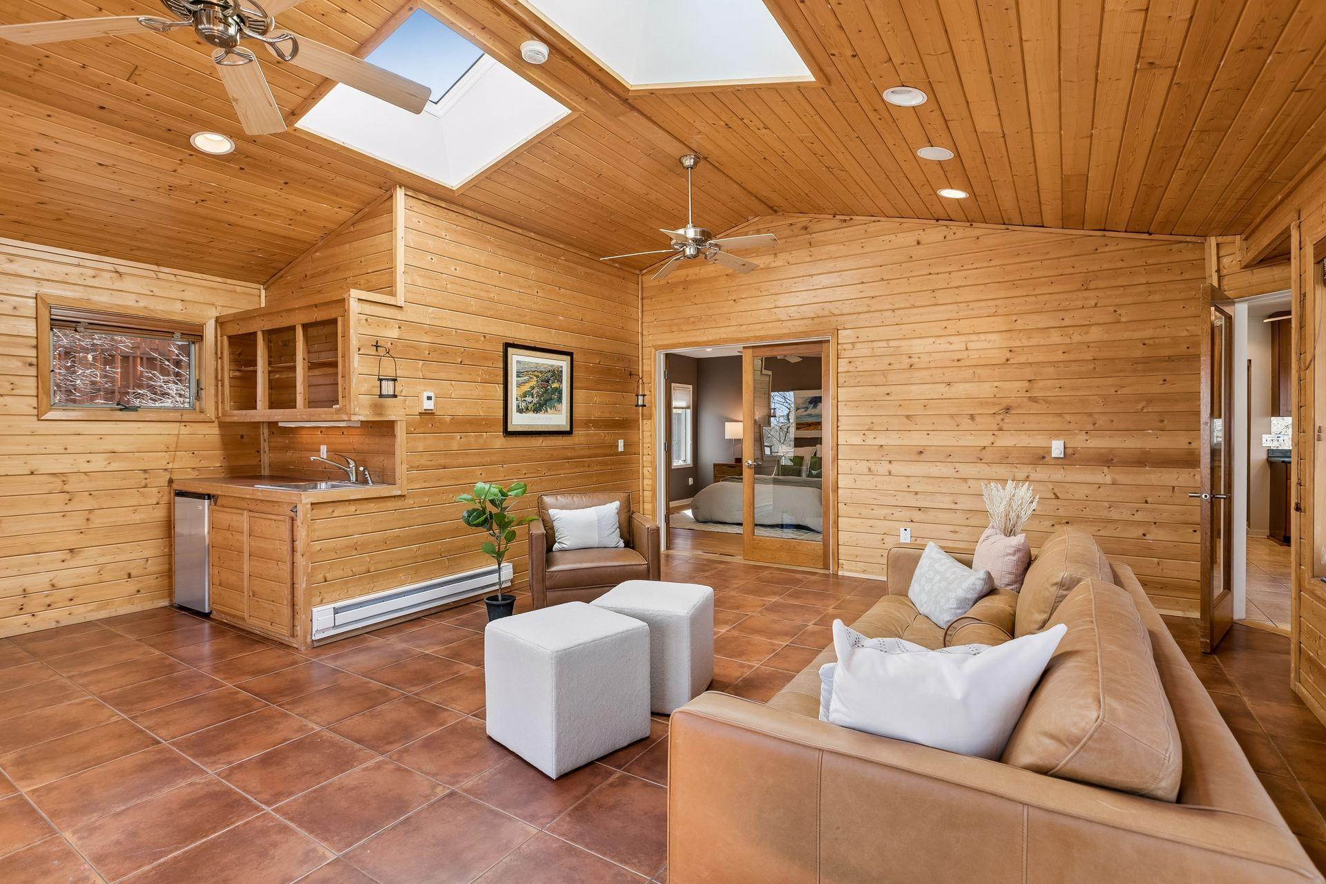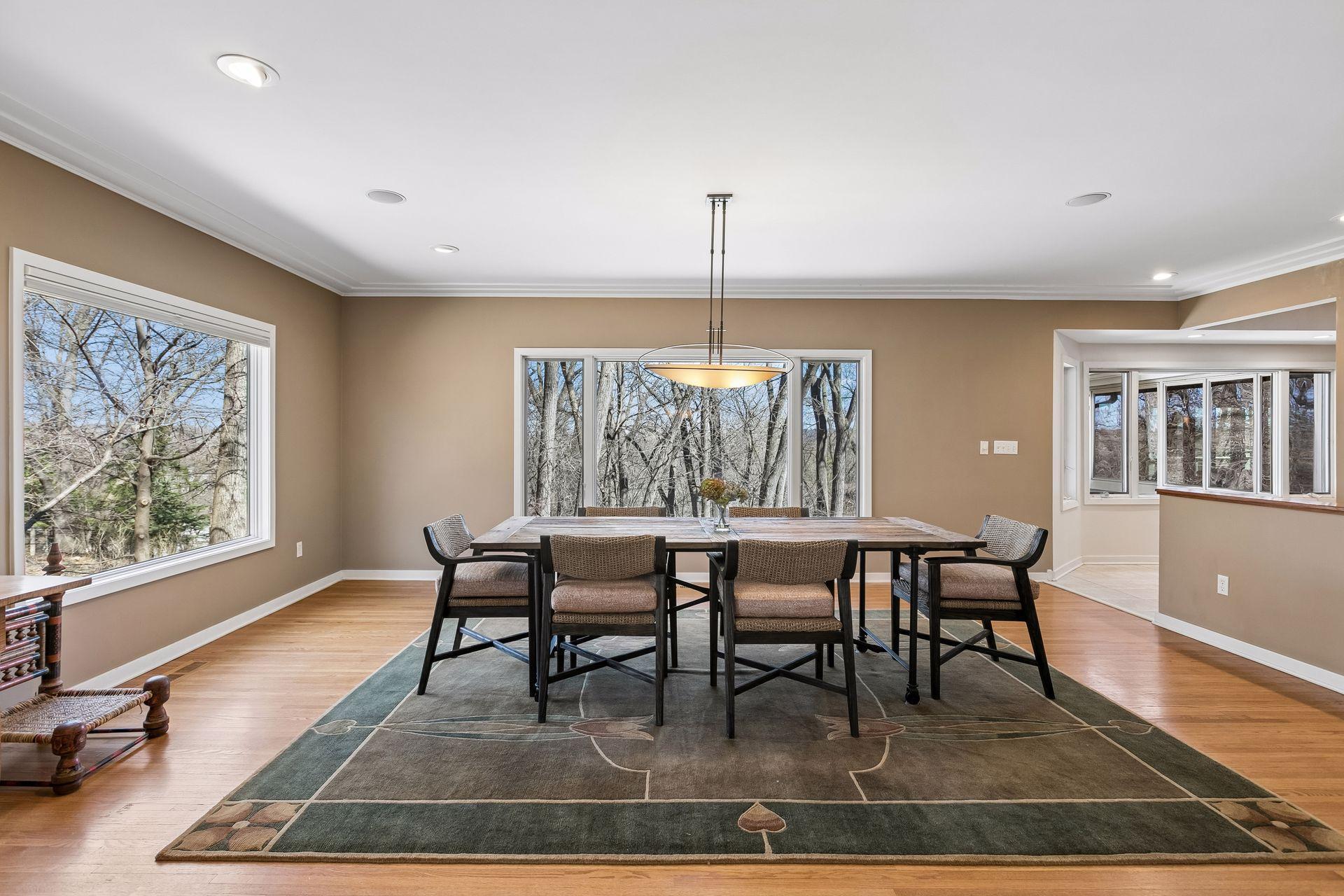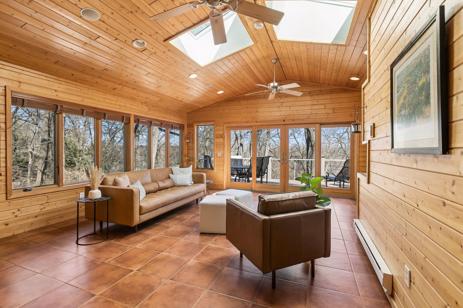 Welcome to 590 Montcalm Place, an extraordinary home nestled on one of Highland Park’s most storybook streets. Surrounded by nature yet perfectly positioned in the city, this one-of-a-kind home offers a rare blend of privacy, beauty, and timeless design. Set on a stunning wooded lot, this 5-bedroom, 3-bathroom home is filled with thoughtful custom details and abundant natural light. Expansive windows frame serene views in every direction, creating a seamless connection between indoors and out. The open-concept main-level living is both inviting and functional, effortlessly uniting the living room, dining area, and kitchen, ideal for everyday living and memorable gatherings. A true highlight, the sunroom is a breathtaking sanctuary wrapped in windows and skylights, bringing the outdoors in year-round. Step through the sliding doors onto the deck to enjoy your morning coffee or unwind in the gentle summer breeze. The walkout lower level offers exceptional versatility, featuring a spacious family room with a wet bar, three additional bedrooms, a bathroom, and access to the attached three-car heated garage, perfect for guests and flexible living needs. Outdoors, the oversized lot unfolds as a private oasis, featuring designer gardens and mature trees. Just below the main home, a charming 600 sq ft cottage offers an additional bedroom and bath. With vaulted ceilings, stone floors, kitchen and a cozy gas fireplace, the cottage offers endless possibilities as a guest retreat, private workspace, or separate living quarters. Blending mid-century character with refined modern updates, this home is both timeless and distinctive. So many updates and enhancements, see supplements for the complete list. 590 Montcalm Place is more than a home; it’s a lifestyle. Great location, close to golf courses, shopping, dining, and services. Easy commute to either downtown Minneapolis or St. Paul and the MSP International Airport.