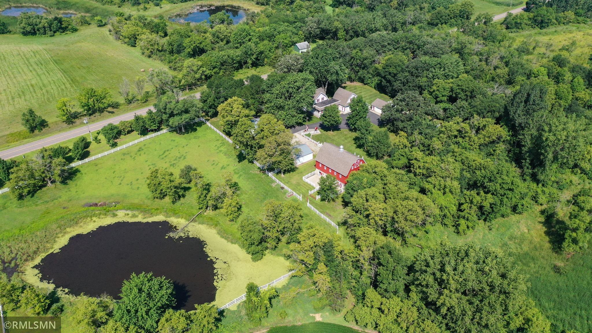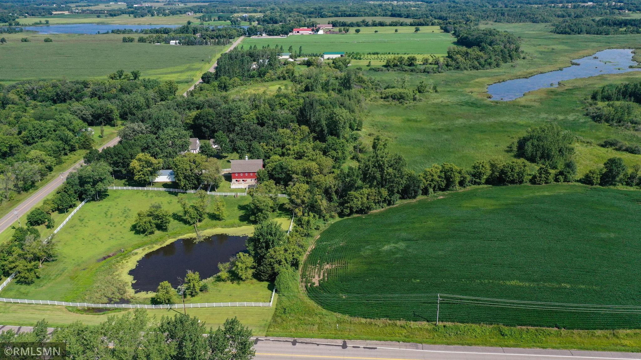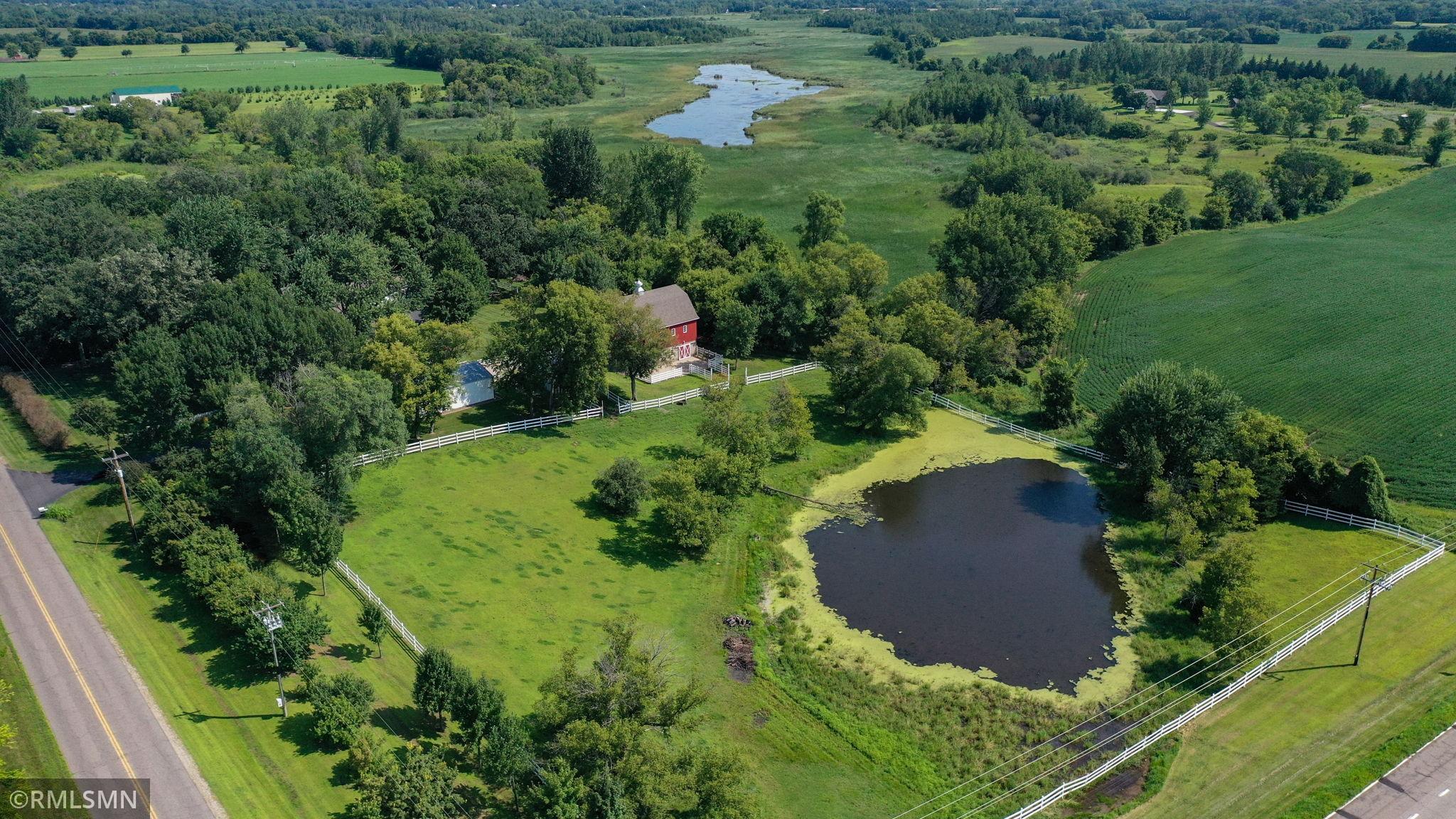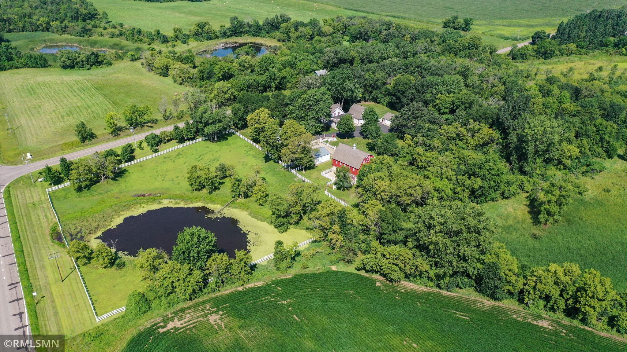 Whether your seeking a retreat or a place to create your dream homestead, this property provides a variety of possibilities. It is located just northwest of the metropolitan area and within minutes of state and regional parks and just down the road from a wildlife management area. Nestle on over 39 acres of picturesque landscape, this beautifully maintained and expanded farmhouse offers a perfect blend of classic charm and modern amenities. The property boast a thoughtfully designed 4 bedroom 2-1/2 bath residence, along with a classic modern barn, multiple outbuildings, tillable acres, and serene wetlands. With rich classic woodwork and timeless handcrafted finishes, the home exudes the warmth and character you would expect to find in this turn of the century gem.