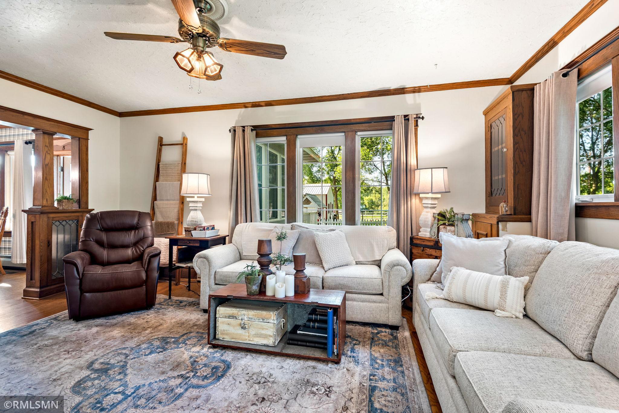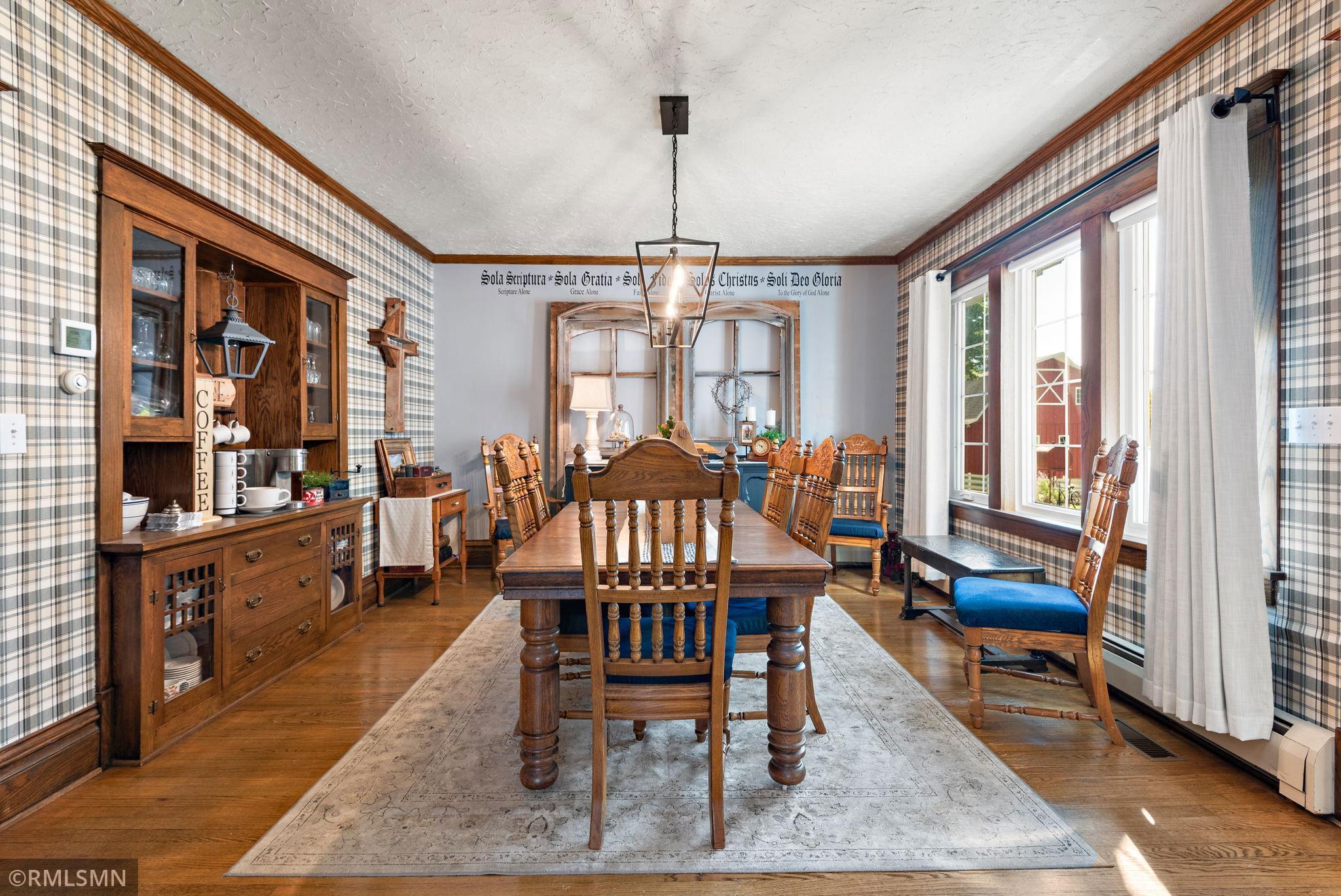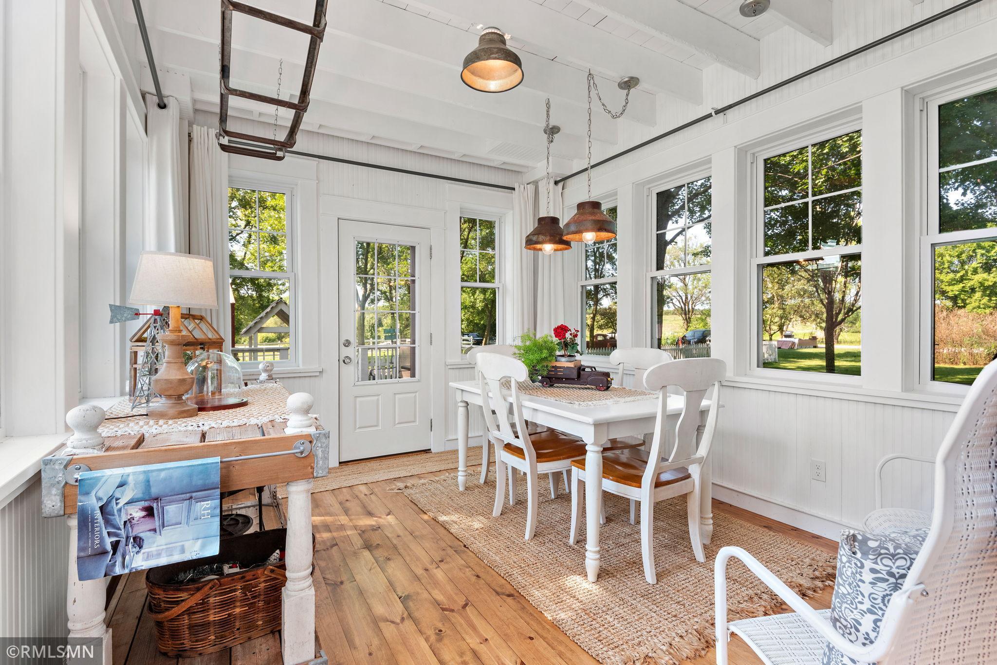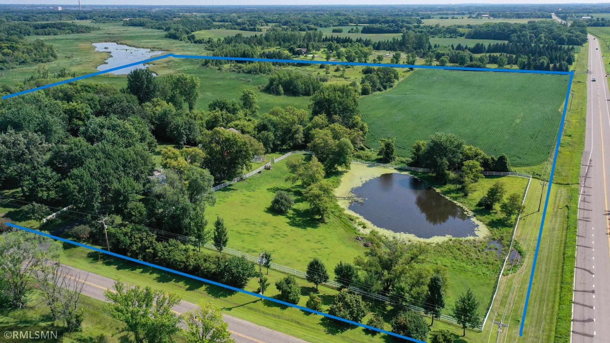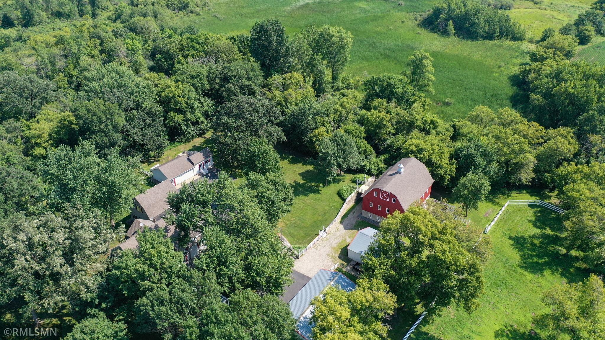 Whether your seeking a retreat or a place to create your dream homestead, this property provides a variety of possibilities. It is located just northwest of the metropolitan area and within minutes of state and regional parks and just down the road from a wildlife management area. Nestle on over 39 acres of picturesque landscape, this beautifully maintained and expanded farmhouse offers a perfect blend of classic charm and modern amenities. The property boast a thoughtfully designed 4 bedroom 2-1/2 bath residence, along with a classic modern barn, multiple outbuildings, tillable acres, and serene wetlands. With rich classic woodwork and timeless handcrafted finishes, the home exudes the warmth and character you would expect to find in this turn of the century gem.