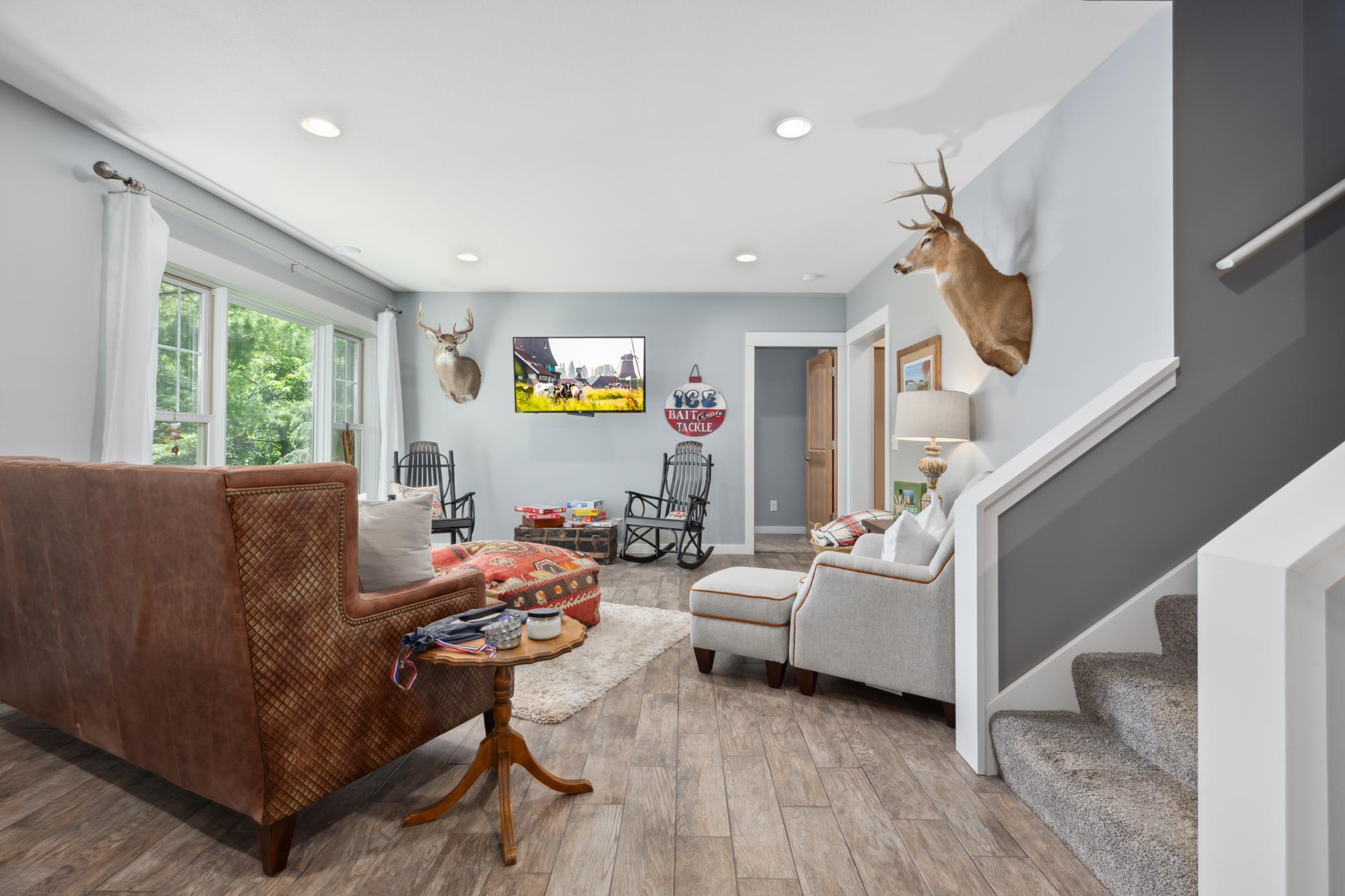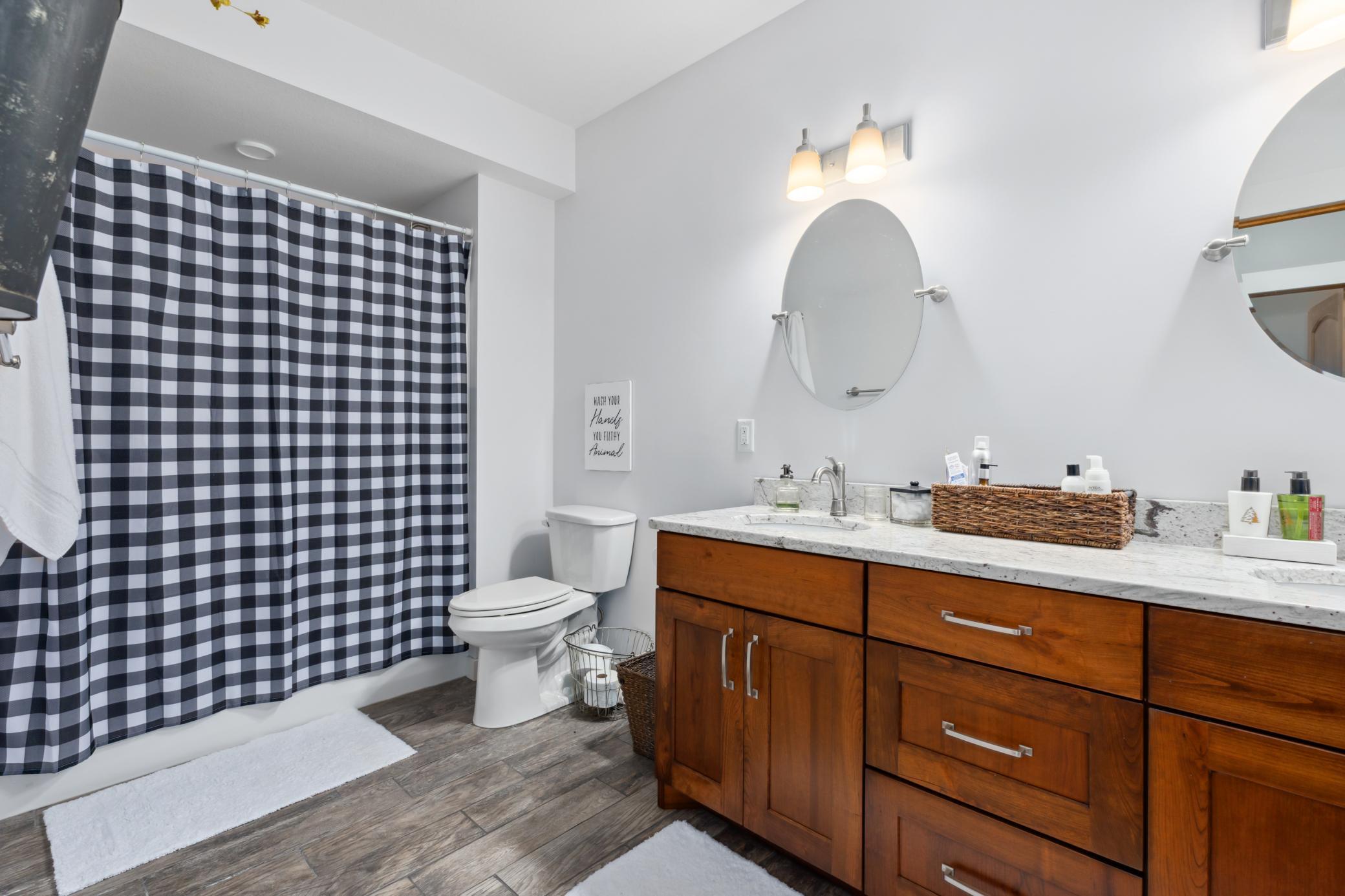 The main-floor primary suite offers a private retreat with a walk-in closet and beautifully tiled shower. On the walkout lower level, you’ll find spacious bedrooms, a second living area, and tiled floors that make coming in from the lake a breeze. Step outside to enjoy a gradual walk down to the lake with a hard sand bottom, excellent dock setup, and panoramic water views.