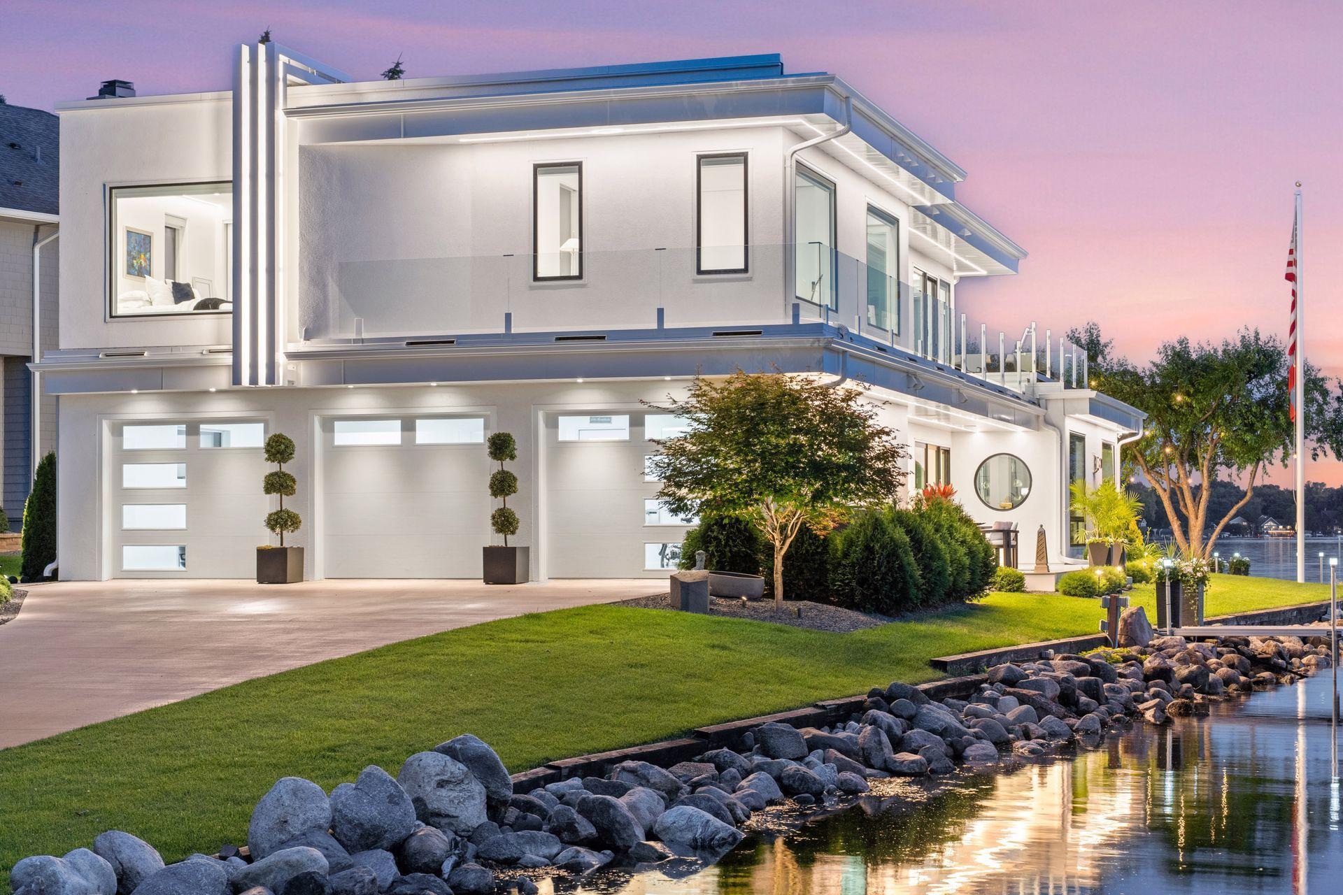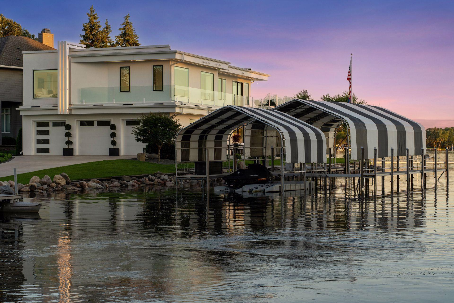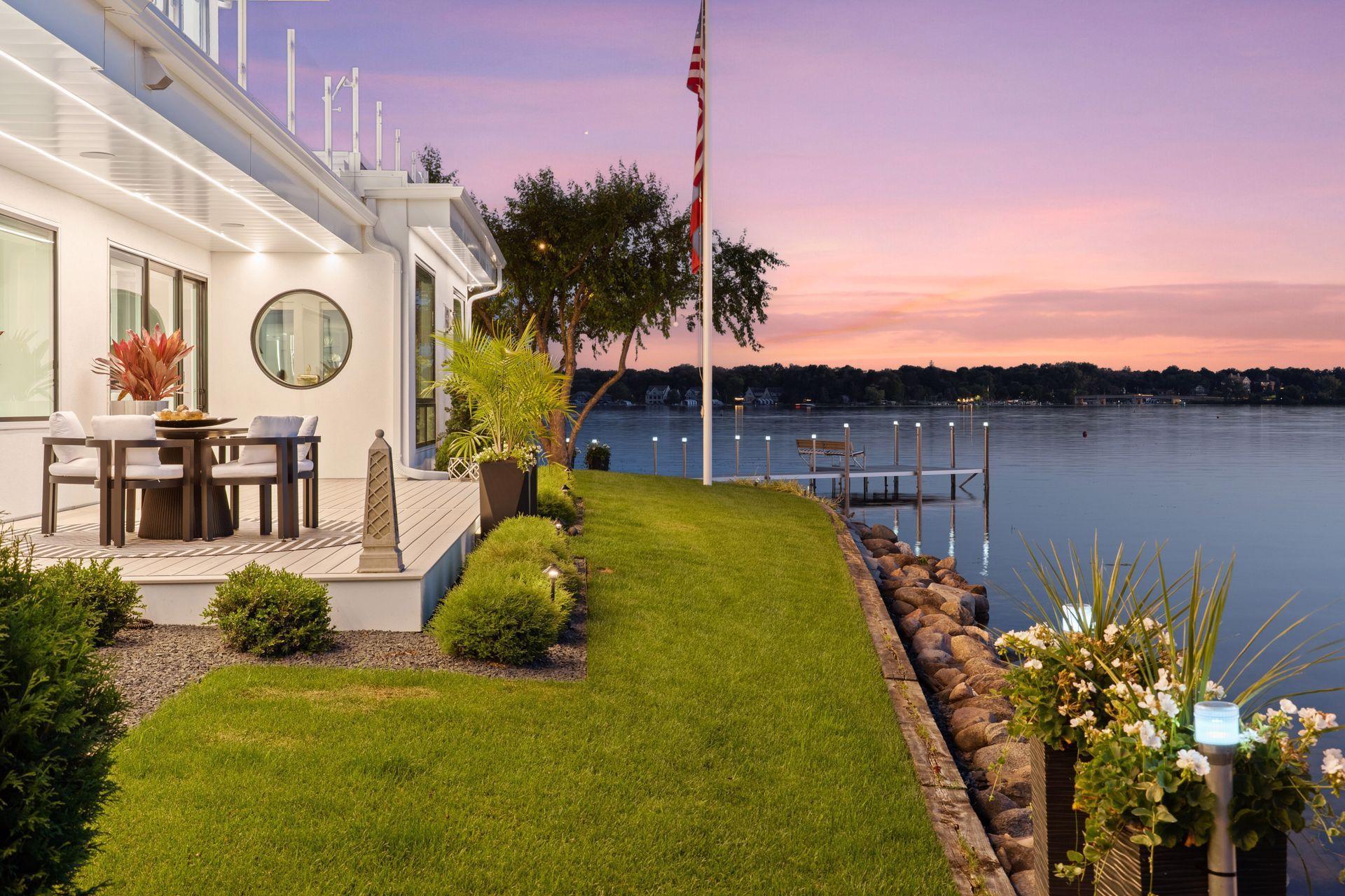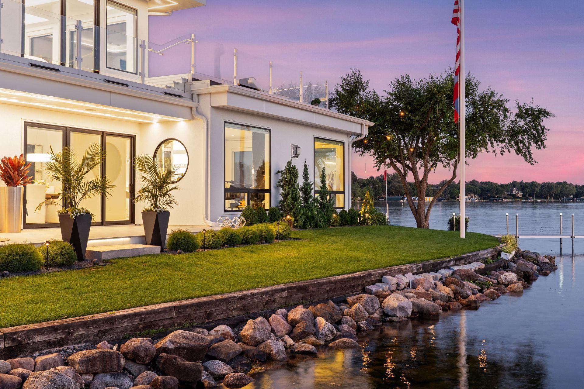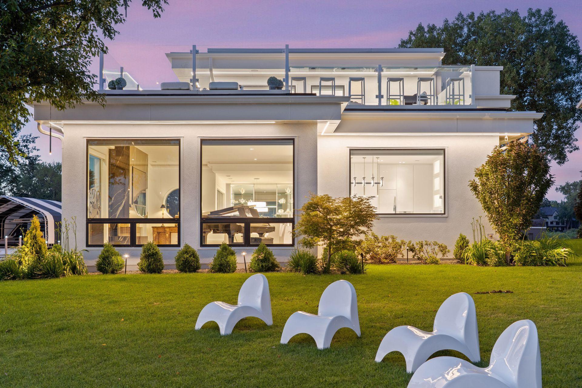 LAKE LIFE — WAYZATA STYLE — 220ft of Lake Minnetonka Shoreline | Miami Vice Meets Wayzata | 180° Sunset Views | Luxury New Construction | 846 sq ft Rooftop Patio | Glass Elevator | 3 Bed | 4 Bath | 4,023 Sq. Ft.