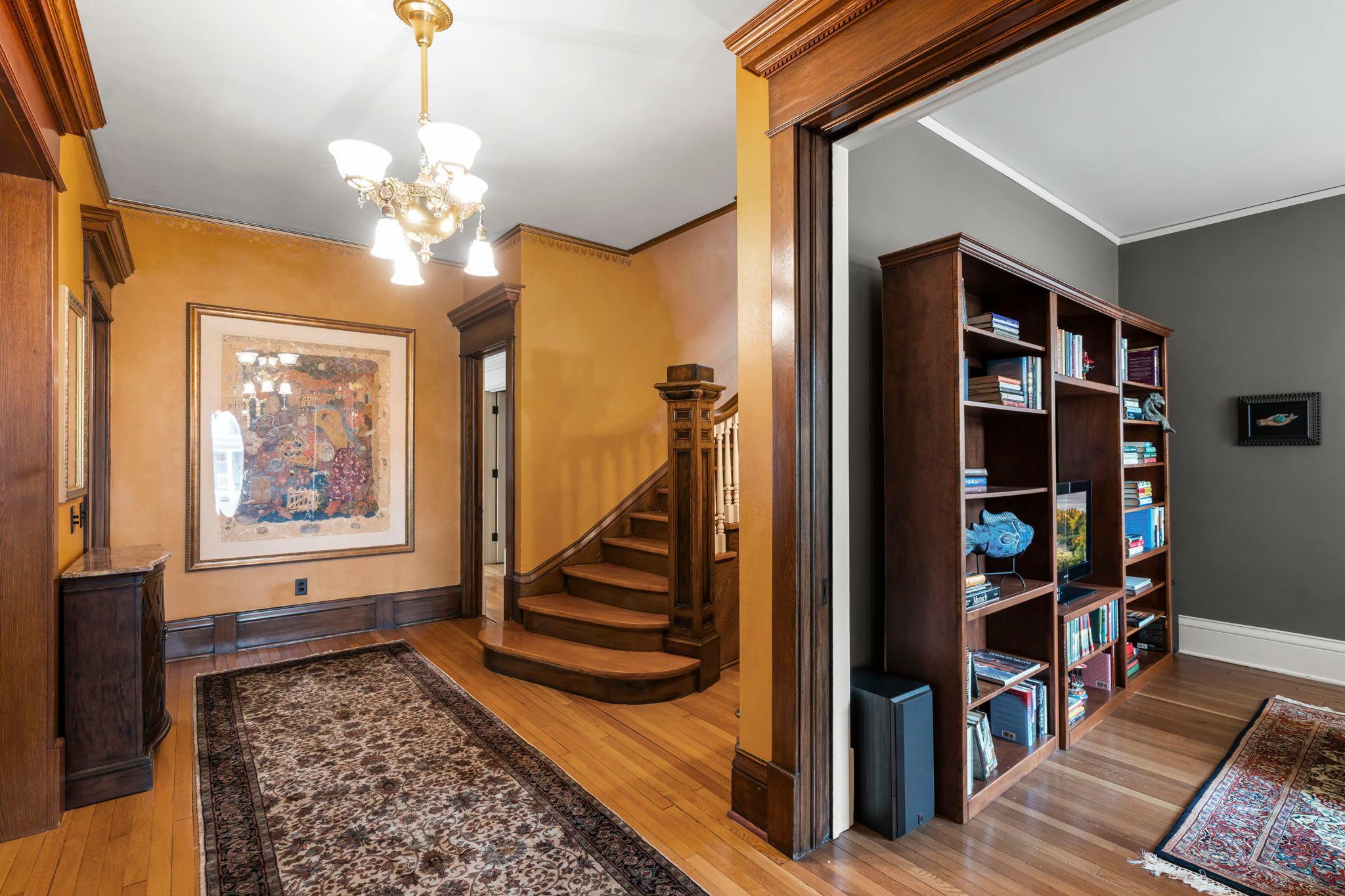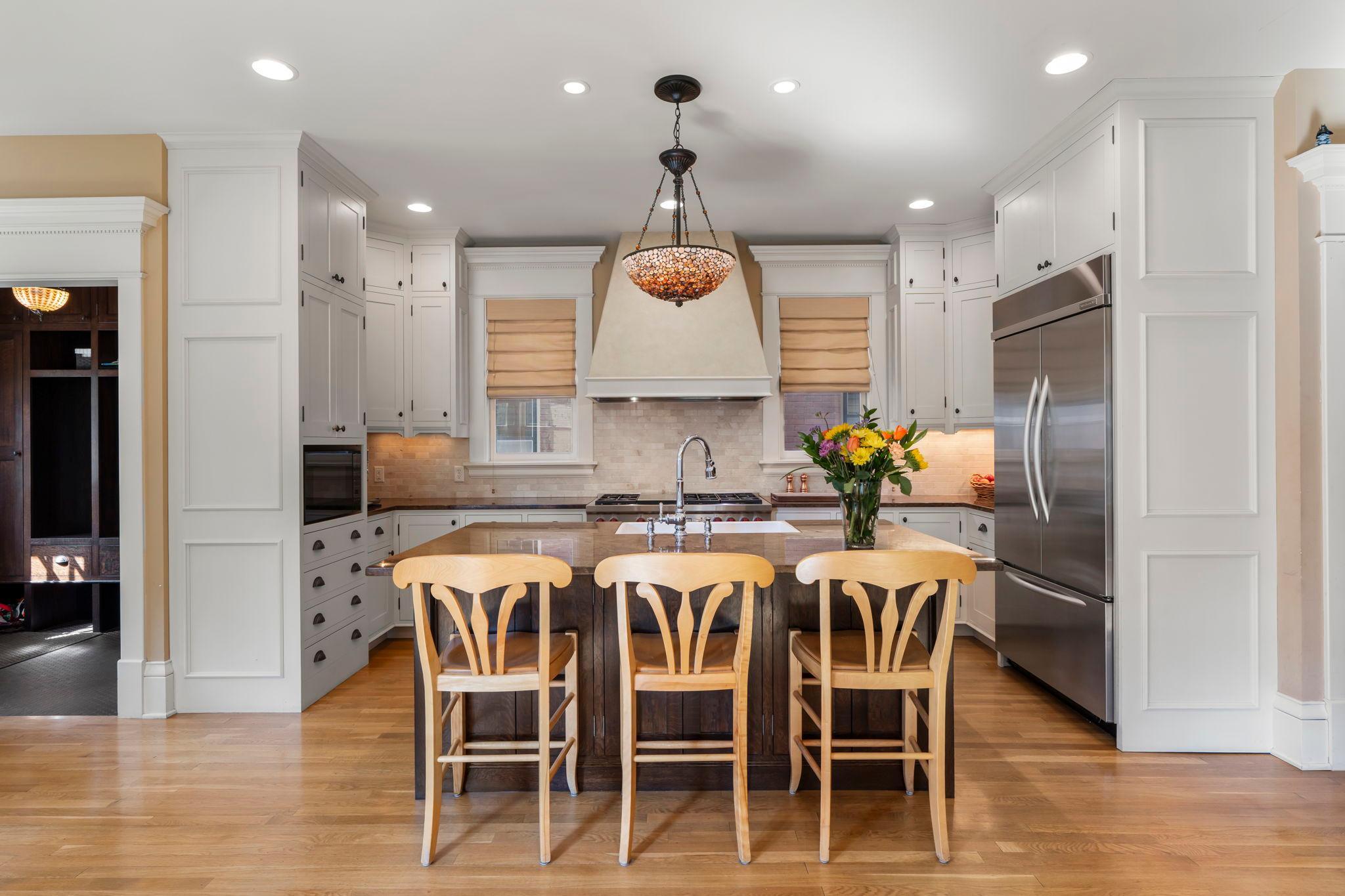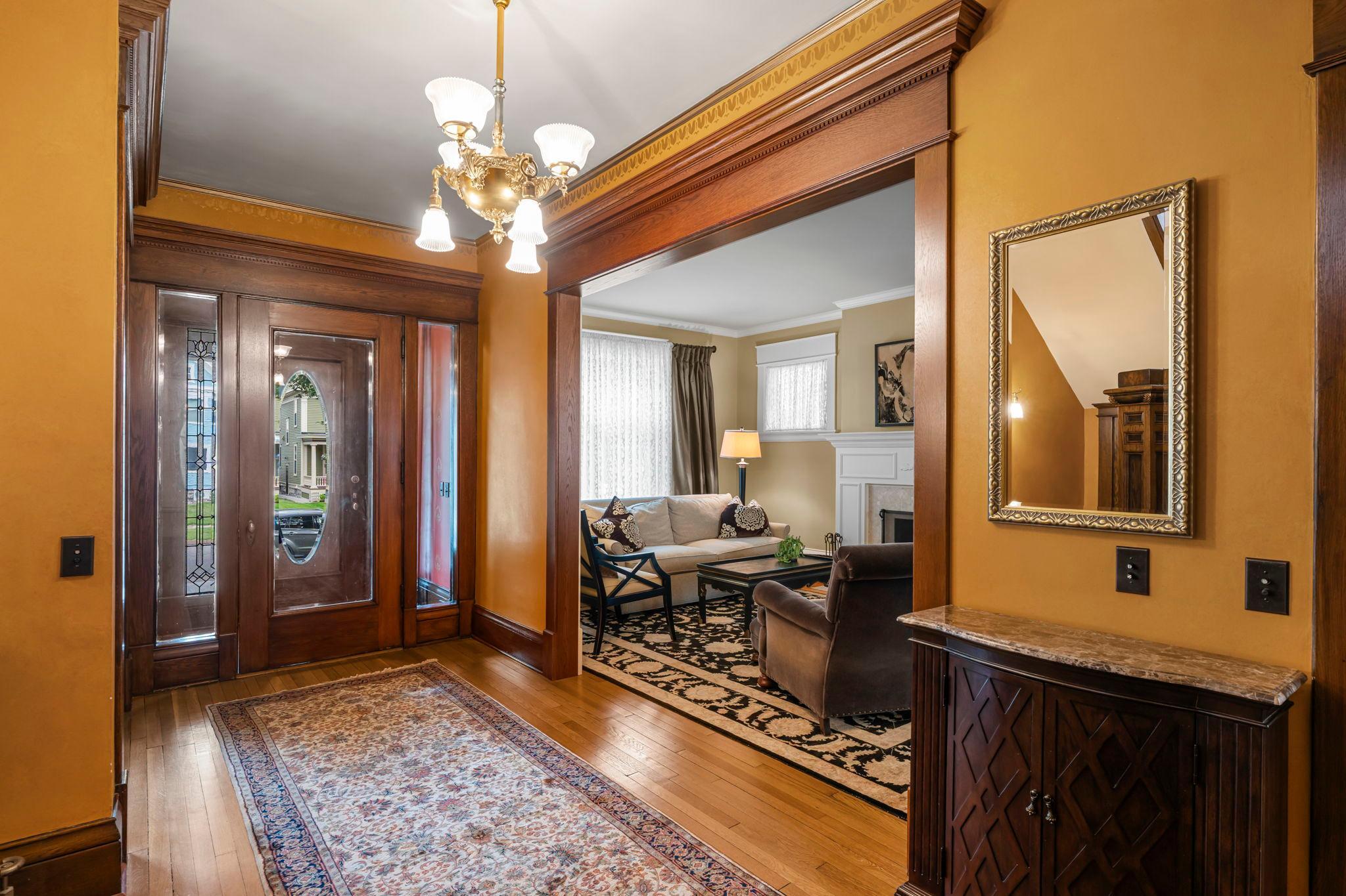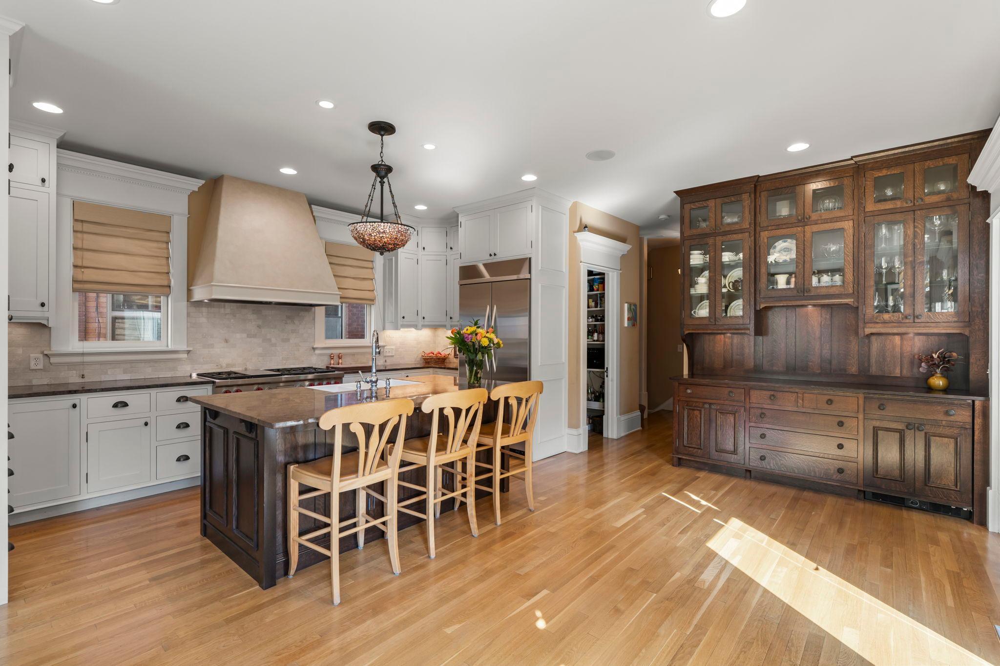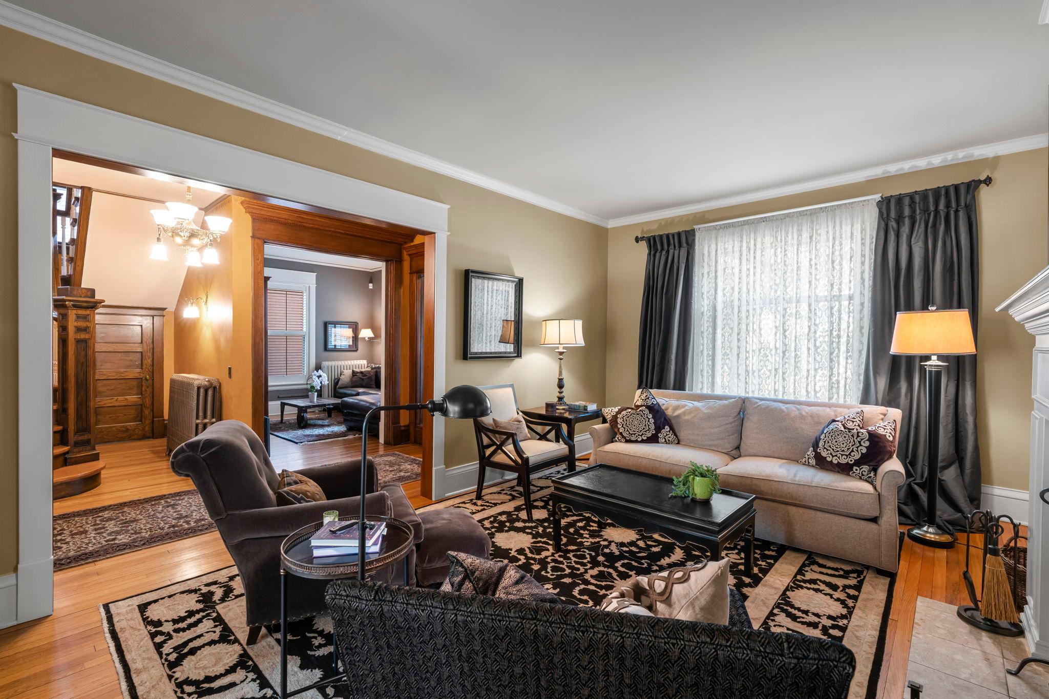 From the moment you arrive, you will love this beautiful home and welcoming front porch! Inside, original woodwork, sensational light fixtures, gleaming hardwood floors set the tone for this impeccably maintained and thoughtfully restored home that requires absolutely nothing! An amazing three-story addition blends classic charm with modern amenities, featuring a top-of-the-line cook’s kitchen and spacious family room, ideal for everyday living and entertaining. The formal dining room is stunning! Radiant heat warms the entire addition, including the kitchen, family room, and all tiled, heated bathrooms floors. The newly finished third-floor attic offers a fabulous family room with an office nook, while the luxurious primary suite boasts a gas fireplace and spa-like en-suite bath. The immaculate basement includes a second laundry area, exercise room, game room, and an egress window, perfect for a potential fifth bedroom. Additional highlights: front and back staircases, a landscaped and fenced yard, a 3-car garage plus an extra parking pad, and a beautiful bluestone patio. High-end finishes abound the entire home and are a must see! Located in walkable, sought-after Crocus Hill; this is a rare opportunity to own a truly special home!