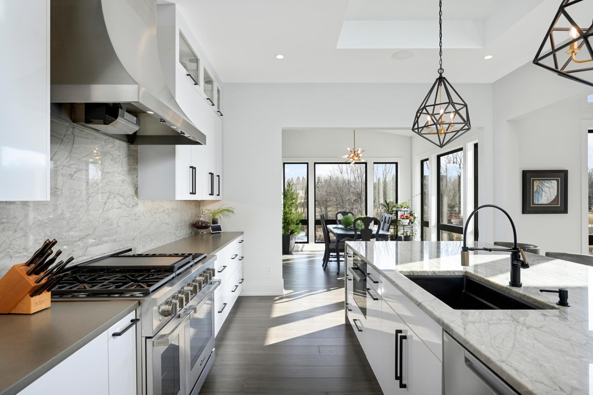 Welcome home to this exquisite custom-built rambler, where contemporary design meets unparalleled luxury. Boasting 4 beds/4 baths, this sanctuary offers a seamless blend of elegance and comfort. Culinary enthusiasts will delight in the gourmet kitchen, equipped with prof series appliances, inc a 48” range w/double oven, stainless hood vent, column fridge & freezer, and an o'sized center island for effortless entertaining. Floor-to-ceiling windows envelop the great room, infusing the space with warmth and offering panoramic views of the serene surroundings; Wood-burning fireplace takes center stage, adorned with a grand stone surround; Primary Suite features large picture windows framing picturesque views - indulge in the spa-like bath, boasting a walk-in shower, 2 vanities, soaking tub, and massive walk-in closet. W/O LL beckons w/a bright & open family room, wet bar, 3 bedrooms, & porch feat. gas fireplace & cedar plank ceiling offering a tranquil space to unwind & entertain.