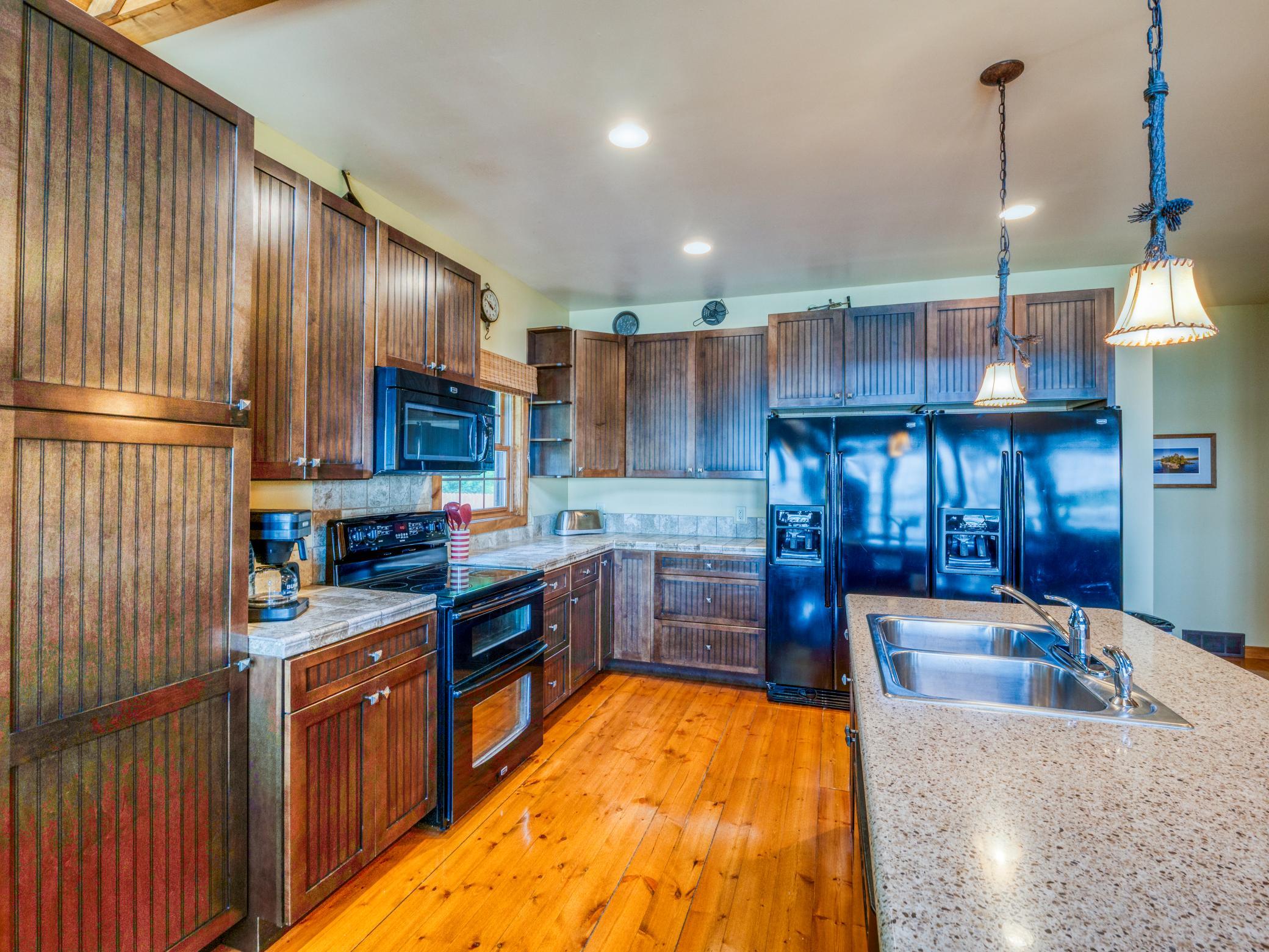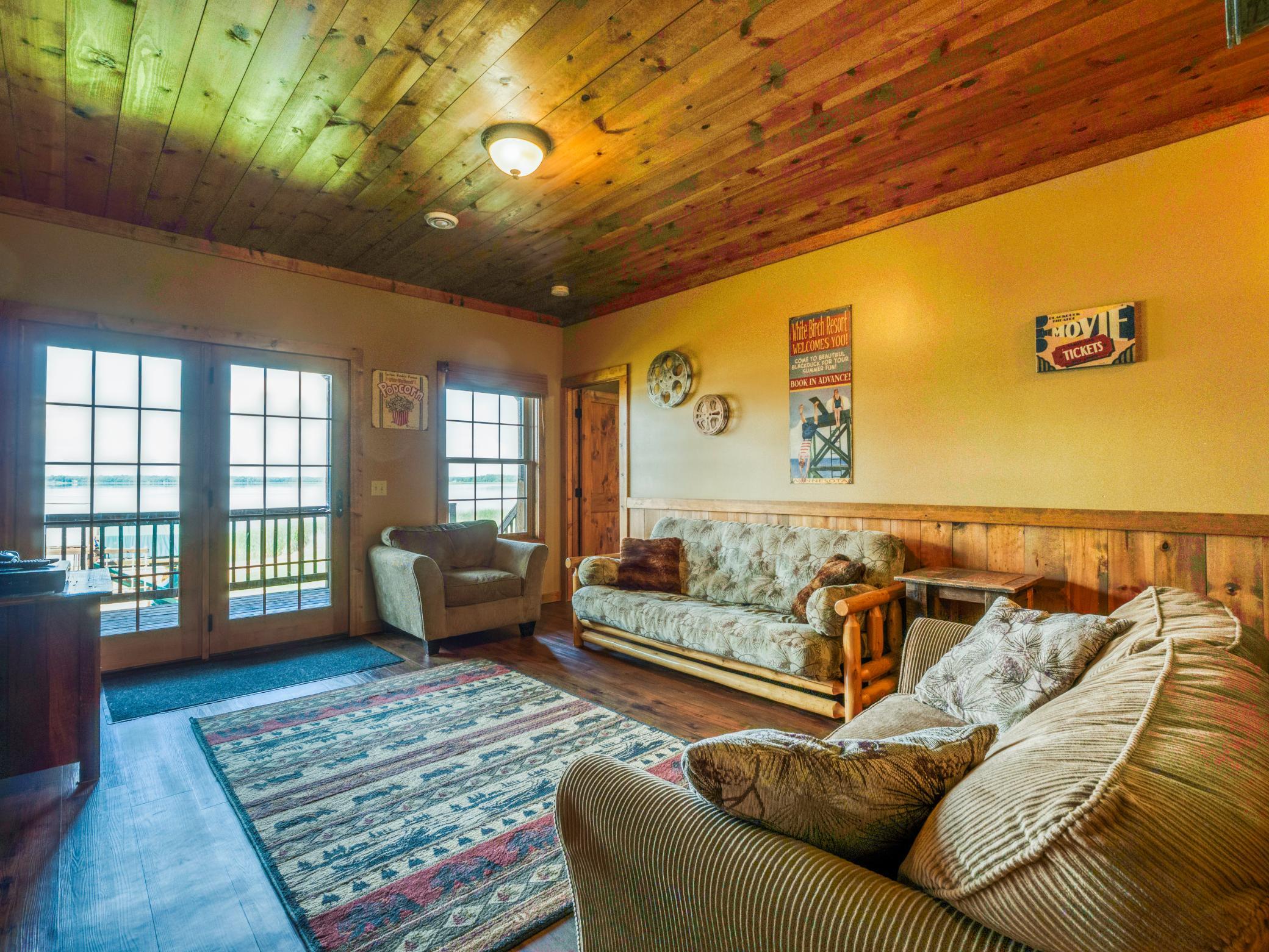 Overlooking the shores of Blackduck Lake, Home #5 at White Birch Resort offers the perfect balance of modern comfort and lakeside relaxation. This custom-built, turn-key residence features six bedrooms and three baths, with an open-concept design that flows seamlessly from the well-equipped kitchen to inviting living spaces, ideal for gathering with family and friends.