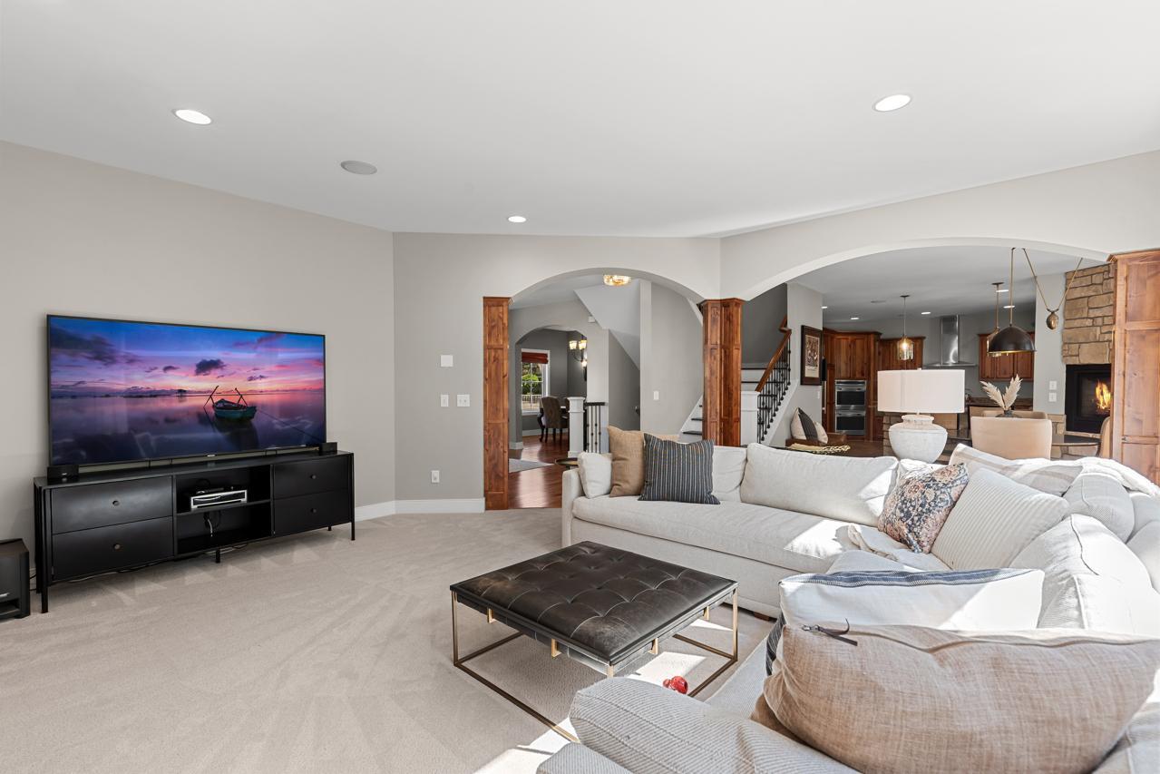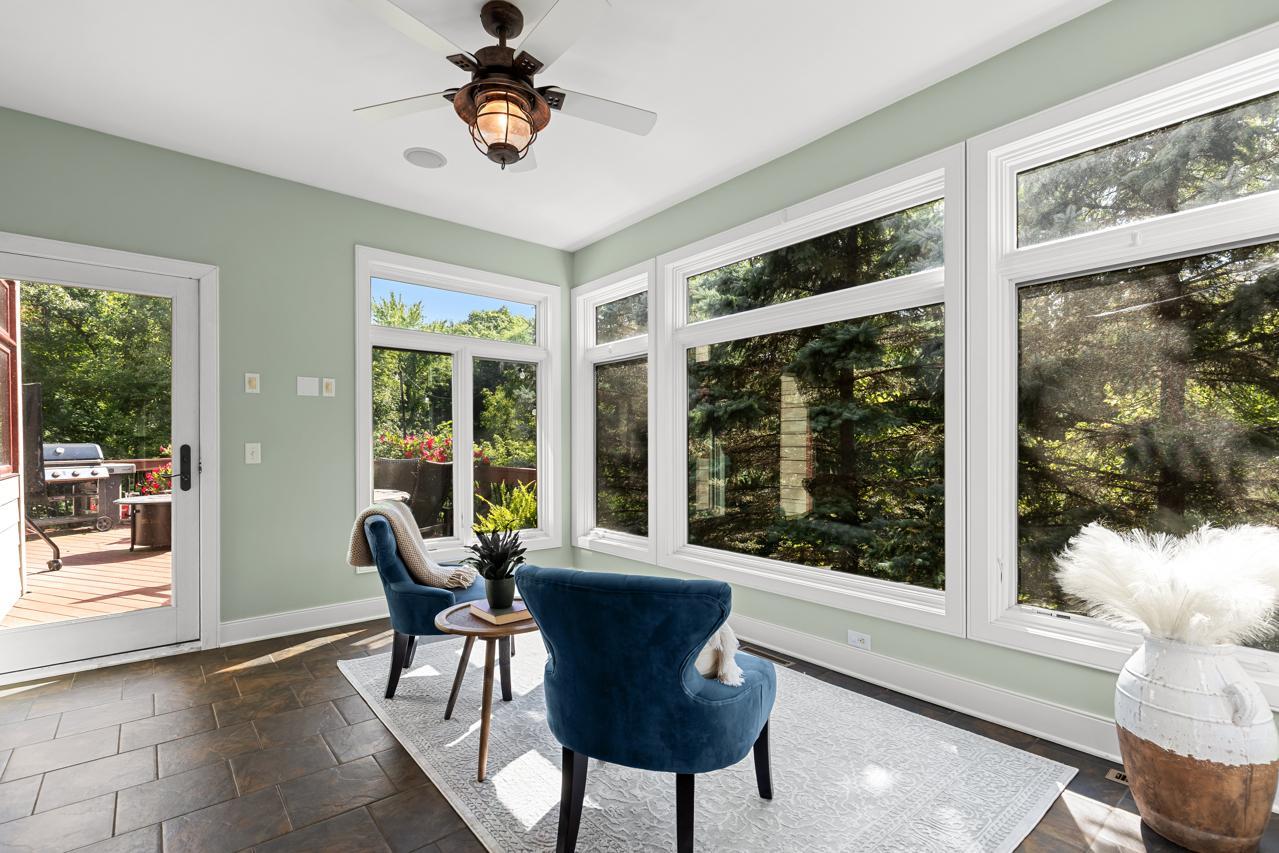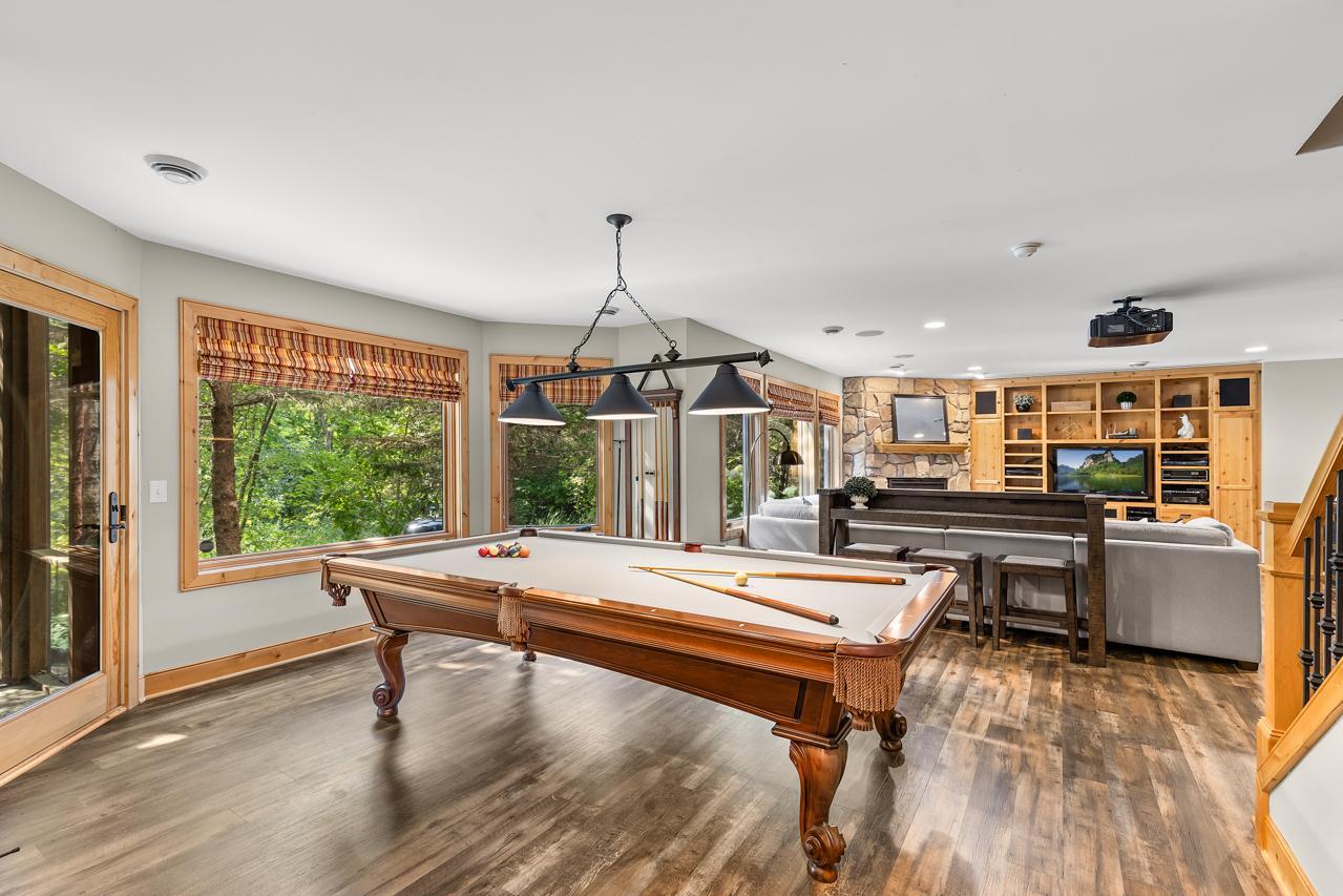 Truly a One-of-a-Kind Masterpiece perfectly situated at the end of a private, wooded cul-de-sac overlooking Riley Creek, this impeccable 5-bedroom, 5-bathroom custom-built home rests on 0.33 serene acres, offering peace, privacy, and natural beauty in every direction. From the moment you step inside, you’ll be captivated by the inspiring design, high-end finishes, and countless upgrades that make this home absolutely exceptional with 5,802 square feet of extraordinary living space. Enjoy extensive updates including: newer roof with copper gutters & rain chains, added exterior water mitigation system, Control 4 Movie Theatre with high-definition projector and speakers (with AV system throughout the home), updated luxury vinyl flooring on upper & lower levels, remodeled primary bedroom & bathroom, new carpet (2023), epoxy-coated sub-garage floor, fresh exterior & interior paint, upgraded sprinkler system, new washer & dryer, customized closets, updated light fixtures, exterior deck staining, added lower-level screen porch beneath the sunroom, new attic insulation, new toilet on main level, new upper-level furnace & A/C condenser (2025), new lower-level A/C condenser (2023), and recently stained garage doors (2025). Step inside to gleaming hardwood floors, soaring ceilings, and walls of windows that flood the home with natural light. The inviting main level features a stunning open floor plan, formal and informal dining, a main-level office with custom built-ins, a serene sunroom, and a gourmet kitchen with cozy fireplace overlooking your tranquil backyard oasis. The living room also showcases a beautiful fireplace, creating warm and inviting spaces throughout. Upstairs, retreat to your extravagant primary suite—a spacious haven complete with a gigantic walk-in closet with laundry and a luxurious private bathroom. The walkout lower level is perfect for entertaining with a wet bar, pool table, and family room featuring a projector—the ultimate place for movie nights or game day! The newly added screened in porch on this level offers yet another relaxing retreat surrounded by nature. Outdoors, you’ll love the lush landscaping, inviting front porch, expansive deck, and unbeatable curb appeal. This home was designed for both entertaining and everyday living—inside and out! All of this in a fabulous location close to parks, trails, shopping, dining, top-rated schools, and more. A rare find: 3-car street-side garage plus 4-car sub-garage, ideal for auto enthusiasts! This home is more than just a place to live—it’s a dream come true. A must-see experience!