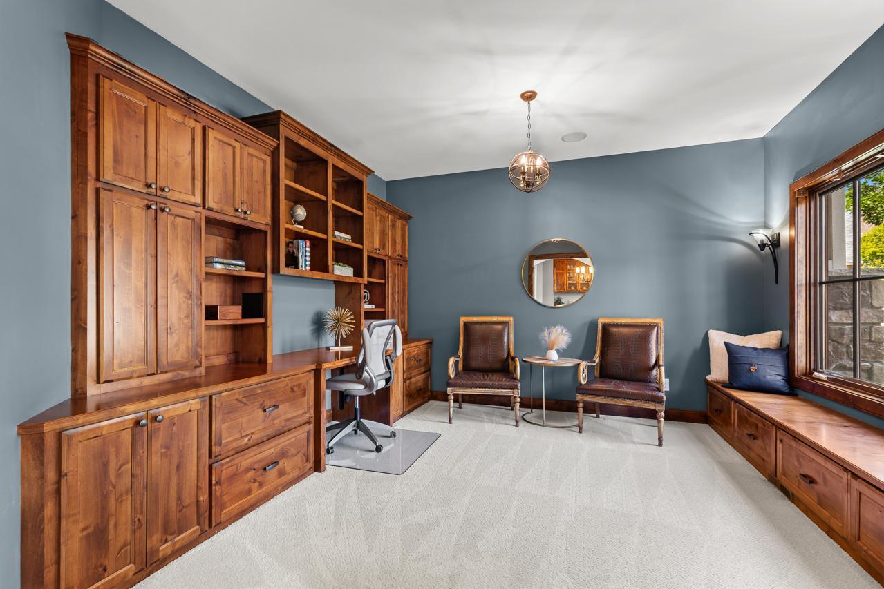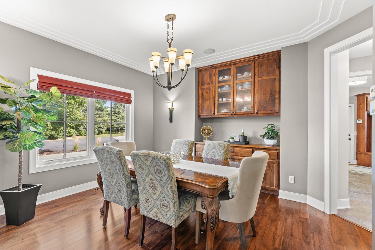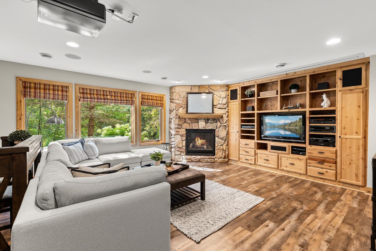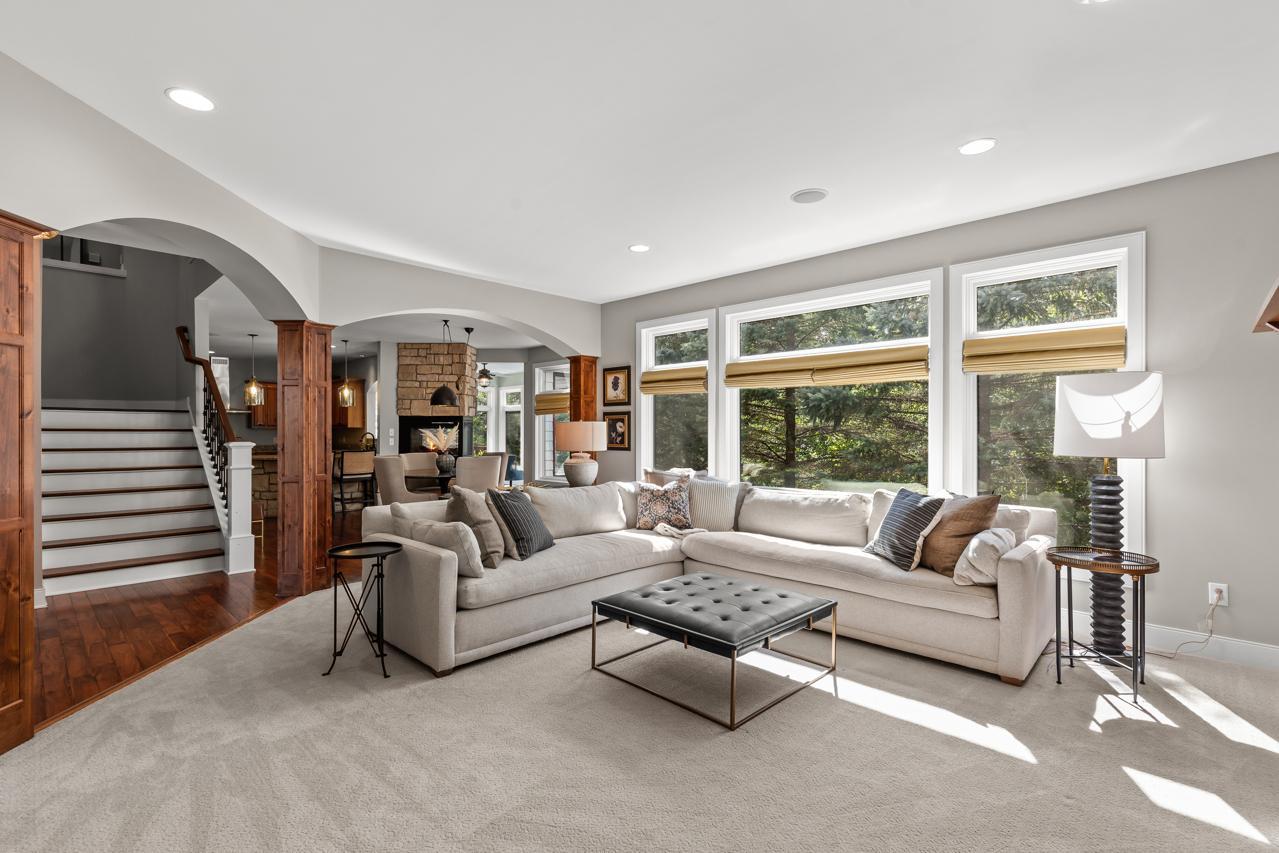 Truly a One-of-a-Kind Masterpiece perfectly situated at the end of a private, wooded cul-de-sac overlooking Riley Creek, this impeccable 5-bedroom, 5-bathroom custom-built home rests on 0.33 serene acres, offering peace, privacy, and natural beauty in every direction. From the moment you step inside, you’ll be captivated by the inspiring design, high-end finishes, and countless upgrades that make this home absolutely exceptional with 5,802 square feet of extraordinary living space. Enjoy extensive updates including: newer roof with copper gutters & rain chains, added exterior water mitigation system, Control 4 Movie Theatre with high-definition projector and speakers (with AV system throughout the home), updated luxury vinyl flooring on upper & lower levels, remodeled primary bedroom & bathroom, new carpet (2023), epoxy-coated sub-garage floor, fresh exterior & interior paint, upgraded sprinkler system, new washer & dryer, customized closets, updated light fixtures, exterior deck staining, added lower-level screen porch beneath the sunroom, new attic insulation, new toilet on main level, new upper-level furnace & A/C condenser (2025), new lower-level A/C condenser (2023), and recently stained garage doors (2025). Step inside to gleaming hardwood floors, soaring ceilings, and walls of windows that flood the home with natural light. The inviting main level features a stunning open floor plan, formal and informal dining, a main-level office with custom built-ins, a serene sunroom, and a gourmet kitchen with cozy fireplace overlooking your tranquil backyard oasis. The living room also showcases a beautiful fireplace, creating warm and inviting spaces throughout. Upstairs, retreat to your extravagant primary suite—a spacious haven complete with a gigantic walk-in closet with laundry and a luxurious private bathroom. The walkout lower level is perfect for entertaining with a wet bar, pool table, and family room featuring a projector—the ultimate place for movie nights or game day! The newly added screened in porch on this level offers yet another relaxing retreat surrounded by nature. Outdoors, you’ll love the lush landscaping, inviting front porch, expansive deck, and unbeatable curb appeal. This home was designed for both entertaining and everyday living—inside and out! All of this in a fabulous location close to parks, trails, shopping, dining, top-rated schools, and more. A rare find: 3-car street-side garage plus 4-car sub-garage, ideal for auto enthusiasts! This home is more than just a place to live—it’s a dream come true. A must-see experience!