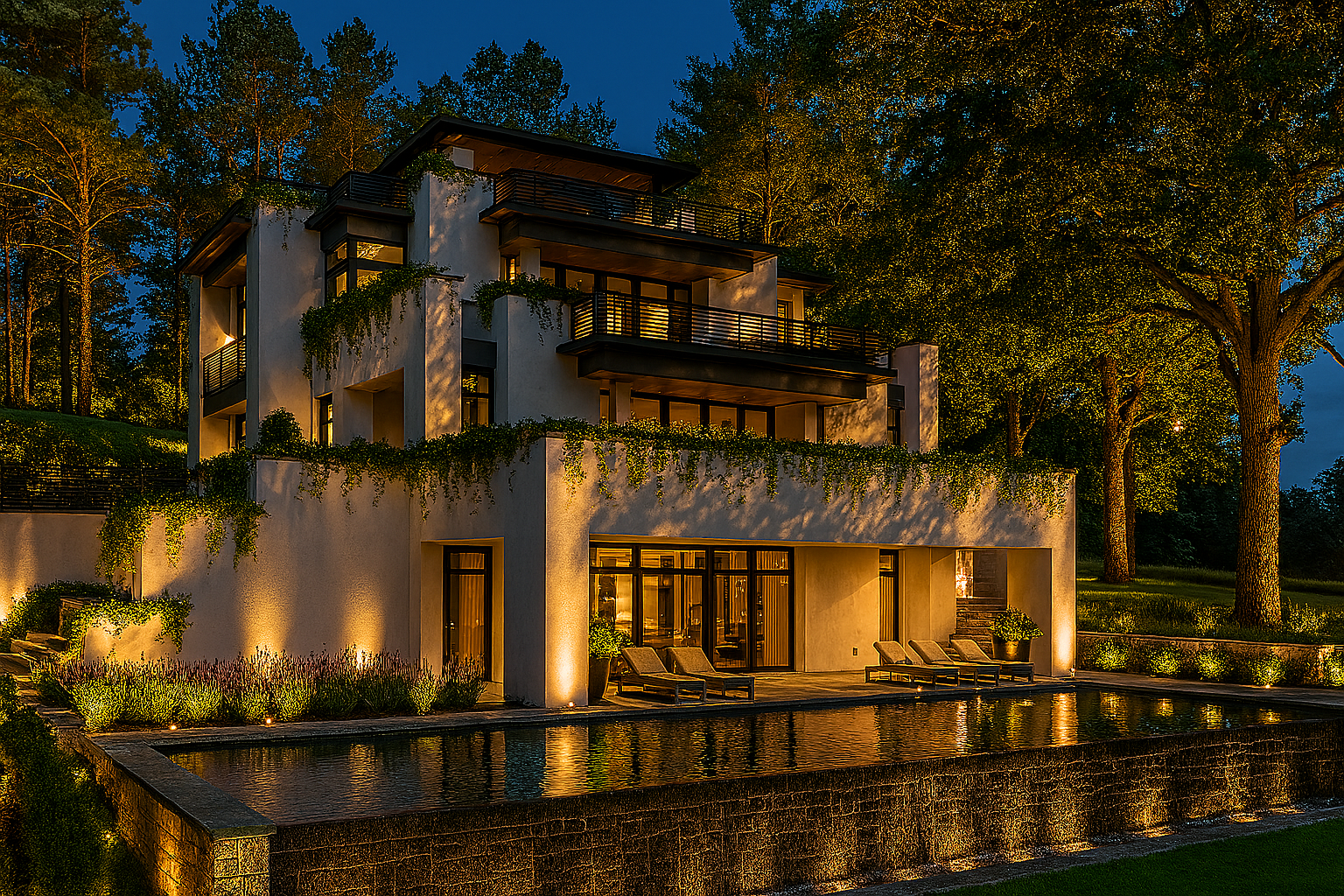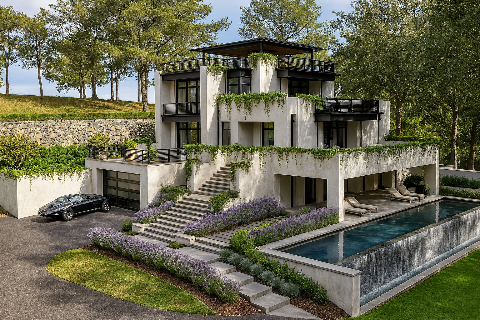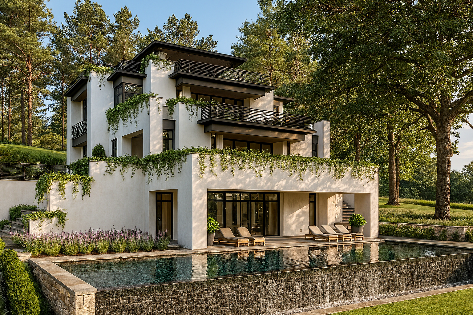 This striking contemporary residence seamlessly blends architectural sophistication with natural harmony, creating an urban oasis that feels worlds away from city life. Nestled on a private wooded lot, the home's clean stucco exterior and expansive floor-to-ceiling windows provide a serene backdrop that allows the surrounding forest canopy to take center stage. The three-story design embraces a philosophy of indoor-outdoor living, where each level extends beyond its walls through thoughtfully planned terraces and balconies, culminating in an expansive covered rooftop terrace that offers seasonal glimpses of the distant lake through the changing foliage. The home's geometric form is softened by cascading greenery from integrated planters that blur the boundaries between built and natural environments, creating a living facade that evolves with the seasons. The infinity-edge pool serves as the focal point of the outdoor living experience, its reflective surface mirroring both sky and surrounding trees while creating the illusion of water extending seamlessly into the landscape. Combined with multi-level outdoor spaces, this thoughtfully designed residence achieves its goal of creating a complete retreat where residents can escape the urban environment without leaving the city limits, proving that contemporary architecture can honor and enhance its natural setting. Buyers may choose to partner with builder Mark D Williams and architect JMAD for this stunning opportunity. The property remains open to any builder the buyer chooses, and current designs can easily be scaled down to fit buyer's budget.