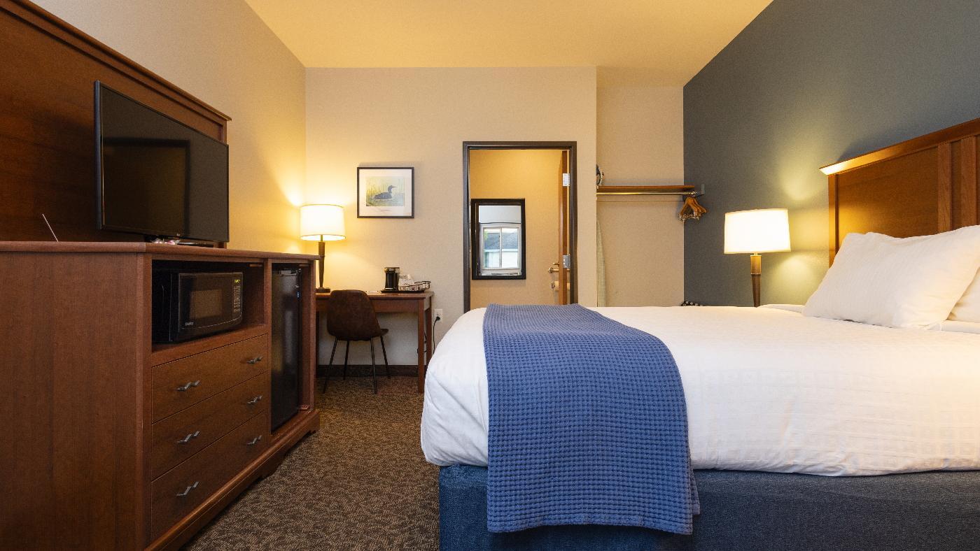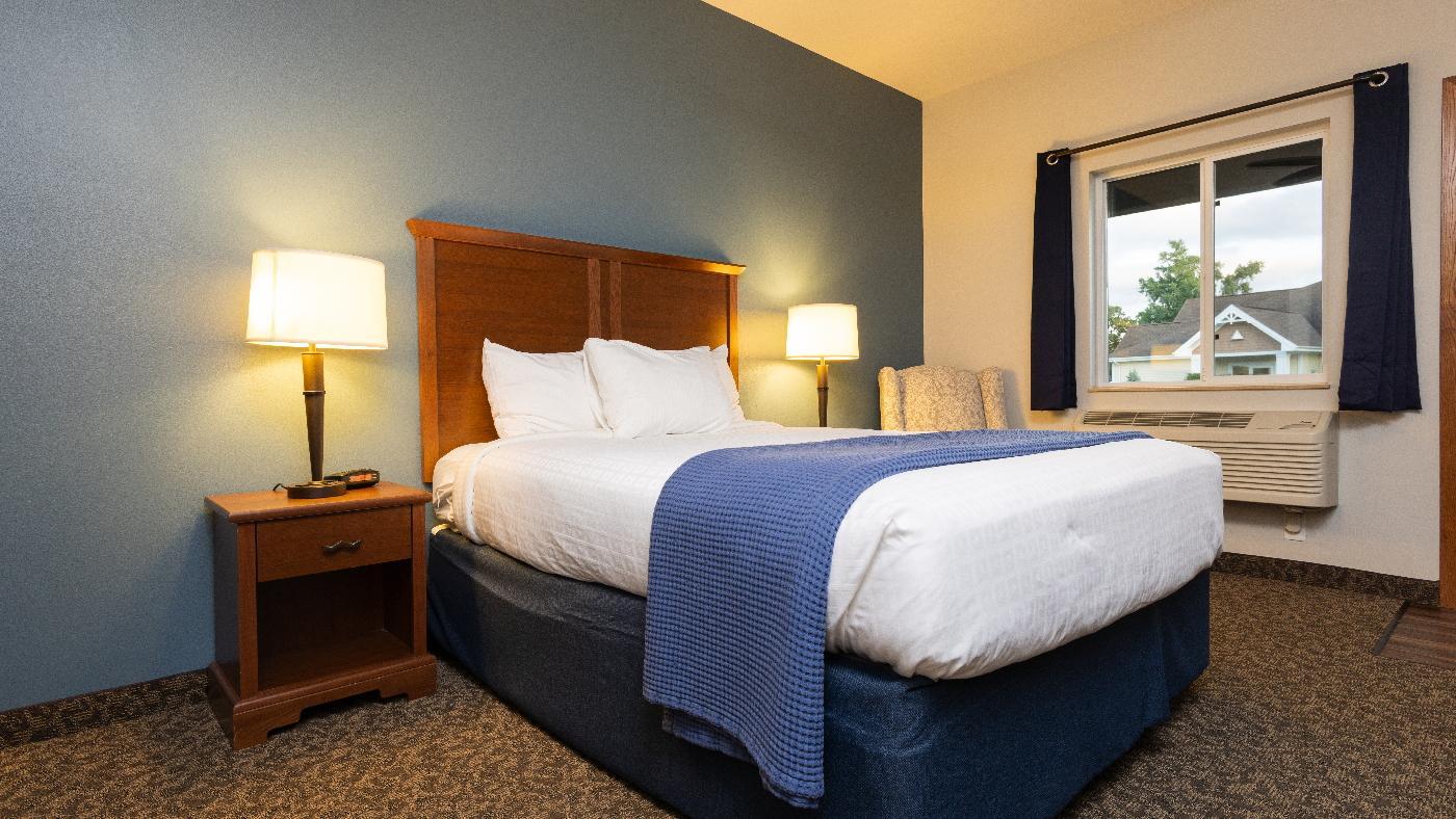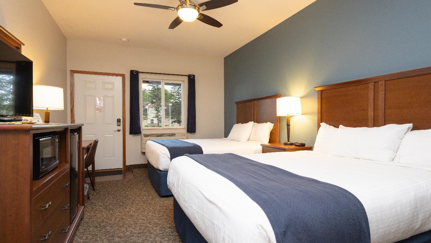 Completely rebuilt from the ground up in 2015, the Inn features 13 motel rooms with multiple queen bed configurations, including an ADA compliant room. The rooms were fully updated in 2024, and include local artwork, sofa sleepers, fridges, microwaves, A/C, internet, and cable TV. Guests enjoy a beautiful lake view of West Battle Lake while sitting on the porch.