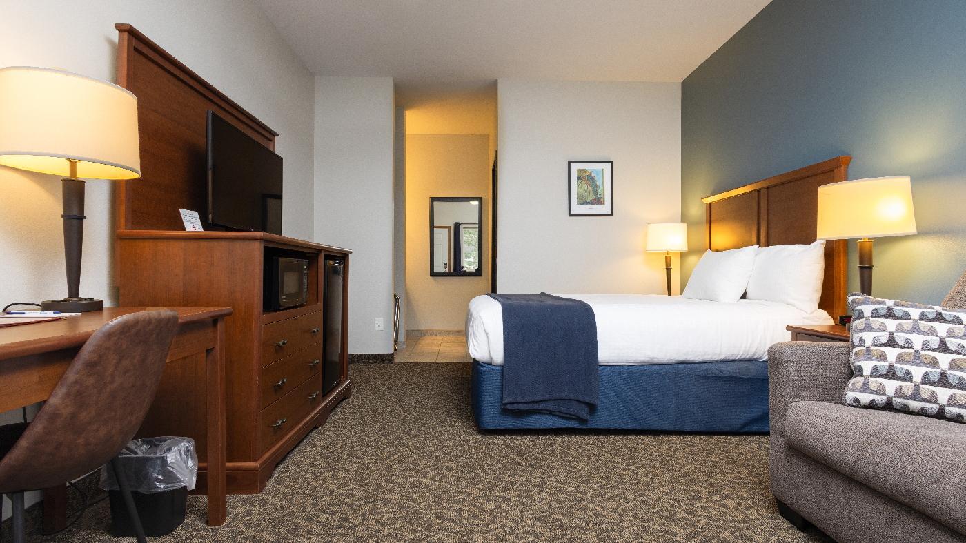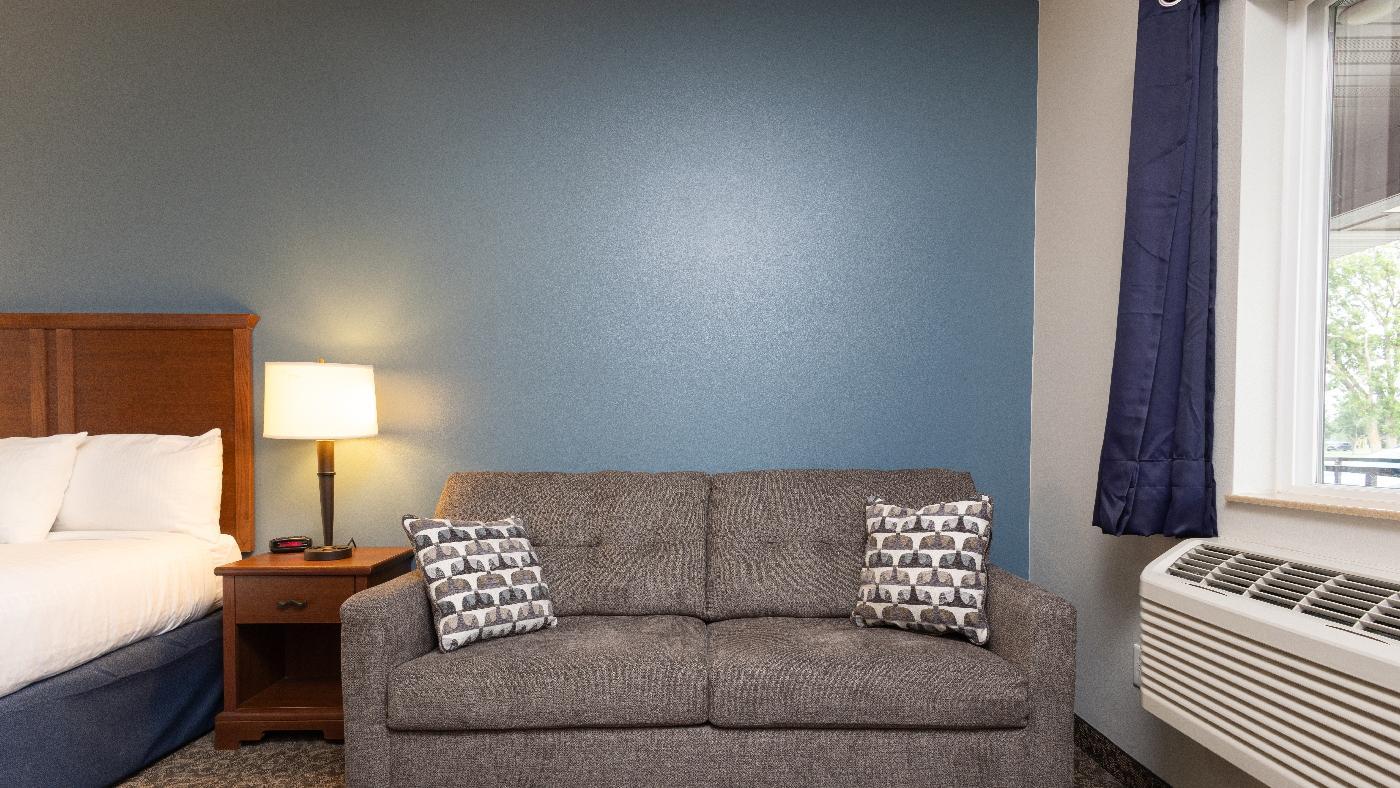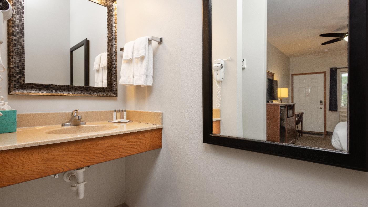 Completely rebuilt from the ground up in 2015, the Inn features 13 motel rooms with multiple queen bed configurations, including an ADA compliant room. The rooms were fully updated in 2024, and include local artwork, sofa sleepers, fridges, microwaves, A/C, internet, and cable TV. Guests enjoy a beautiful lake view of West Battle Lake while sitting on the porch.