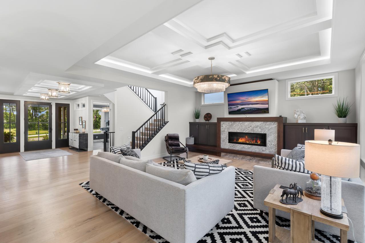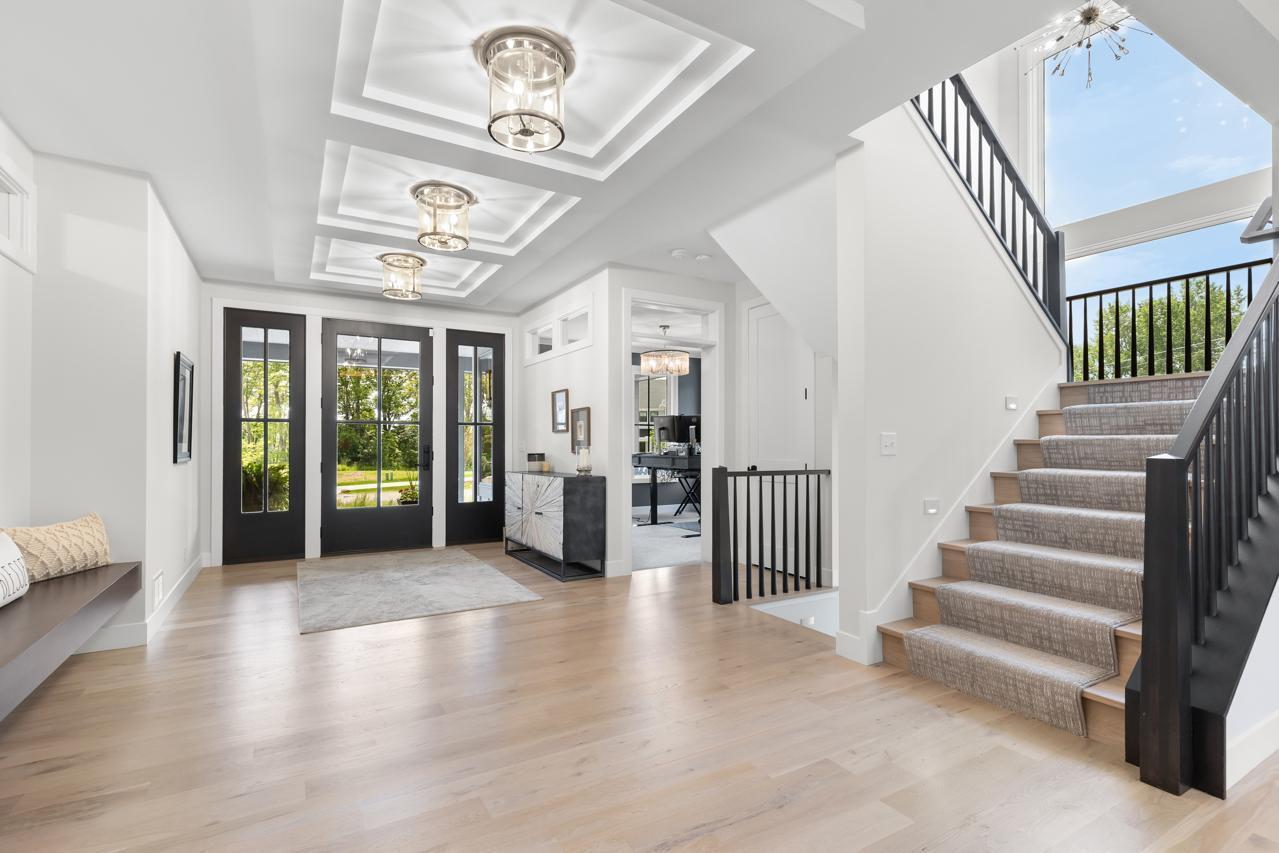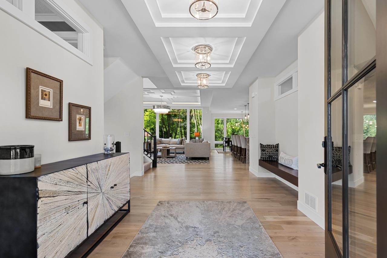 This exquisite home is being offered fully furnished, with custom-designed furniture curated specifically for the space. Every piece was thoughtfully selected to complement the home’s architecture, style, and finishes—creating a seamless, move-in ready living experience. Prepare to be captivated by this flawlessly designed Hartman Homes masterpiece in the Woods of Medina! Perfectly positioned on a pristine 0.76-acre corner lot, this former Modern Tudor-style home exudes timeless elegance and exceptional craftsmanship throughout its 5,429 sq. ft. of luxurious living space. With 5 bedrooms, 5 bathrooms, and no detail overlooked, this stunning residence defines high-end living. Step inside to discover custom Walnut and enameled cabinetry, a striking Cambria kitchen island with a raised 11-foot granite counter, Thermador appliances, and a walk-through pantry complete with built-in pocket office and floating shelving. The wire-brushed solid Oak flooring adds warmth and sophistication, while Anderson 400 series windows flood the home with natural light. Savor the stunning Great Room space, highlighted by a cozy fireplace, or retreat to the inviting 3-season porch with cathedral ceilings, Sunspace windows, and Trex flooring- an ideal space to relax and unwind. The upper-level features a step-up luxury primary suite with a spa-like bath, including a free-standing tub, heated floors, and a massive walk-in closet with pass-through access to the laundry room. The remarkable lower-level retreat is made for entertaining, offering a spacious media room, game room, wet bar and in-floor heating. Two HVAC systems ensure year-round comfort. Enjoy expanded rear deck and backyard spaces perfect for outdoor living. Located in a premier neighborhood near Wayzata schools, parks, trails, shopping, and dining. This show-stopping masterpiece redefines luxury living & impeccable design. Experience the pinnacle of sophistication, comfort, and design—this home will take your breath away!