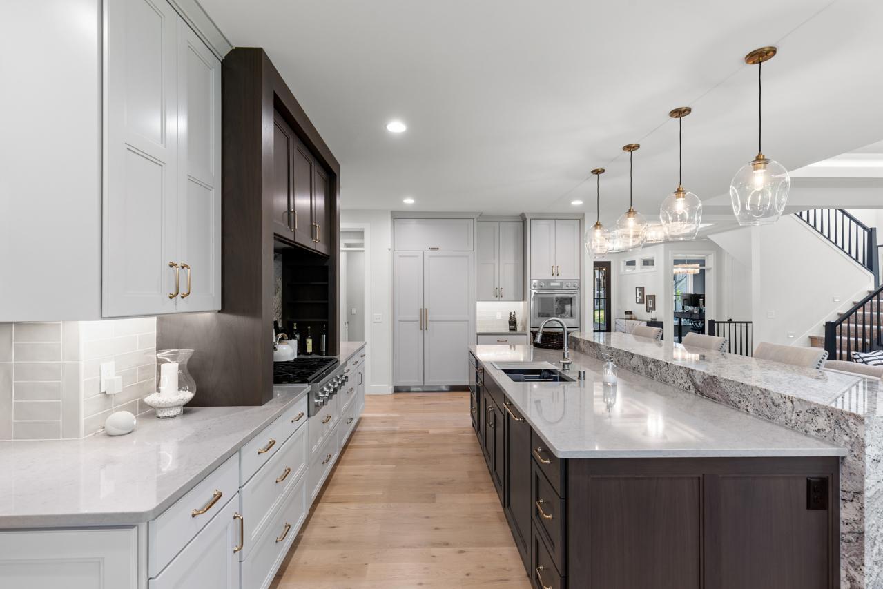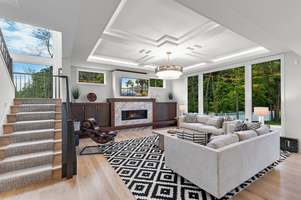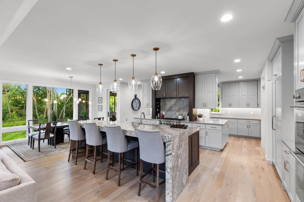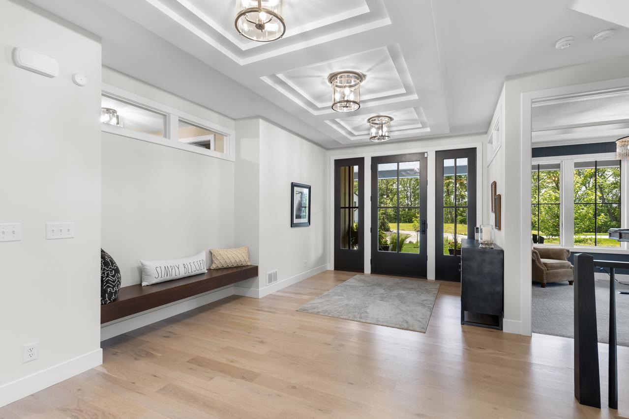This exquisite home is being offered fully furnished, with custom-designed furniture curated specifically for the space. Every piece was thoughtfully selected to complement the home’s architecture, style, and finishes—creating a seamless, move-in ready living experience. Prepare to be captivated by this flawlessly designed Hartman Homes masterpiece in the Woods of Medina! Perfectly positioned on a pristine 0.76-acre corner lot, this former Modern Tudor-style home exudes timeless elegance and exceptional craftsmanship throughout its 5,429 sq. ft. of luxurious living space. With 5 bedrooms, 5 bathrooms, and no detail overlooked, this stunning residence defines high-end living. Step inside to discover custom Walnut and enameled cabinetry, a striking Cambria kitchen island with a raised 11-foot granite counter, Thermador appliances, and a walk-through pantry complete with built-in pocket office and floating shelving. The wire-brushed solid Oak flooring adds warmth and sophistication, while Anderson 400 series windows flood the home with natural light. Savor the stunning Great Room space, highlighted by a cozy fireplace, or retreat to the inviting 3-season porch with cathedral ceilings, Sunspace windows, and Trex flooring- an ideal space to relax and unwind. The upper-level features a step-up luxury primary suite with a spa-like bath, including a free-standing tub, heated floors, and a massive walk-in closet with pass-through access to the laundry room. The remarkable lower-level retreat is made for entertaining, offering a spacious media room, game room, wet bar and in-floor heating. Two HVAC systems ensure year-round comfort. Enjoy expanded rear deck and backyard spaces perfect for outdoor living. Located in a premier neighborhood near Wayzata schools, parks, trails, shopping, and dining. This show-stopping masterpiece redefines luxury living & impeccable design. Experience the pinnacle of sophistication, comfort, and design—this home will take your breath away!