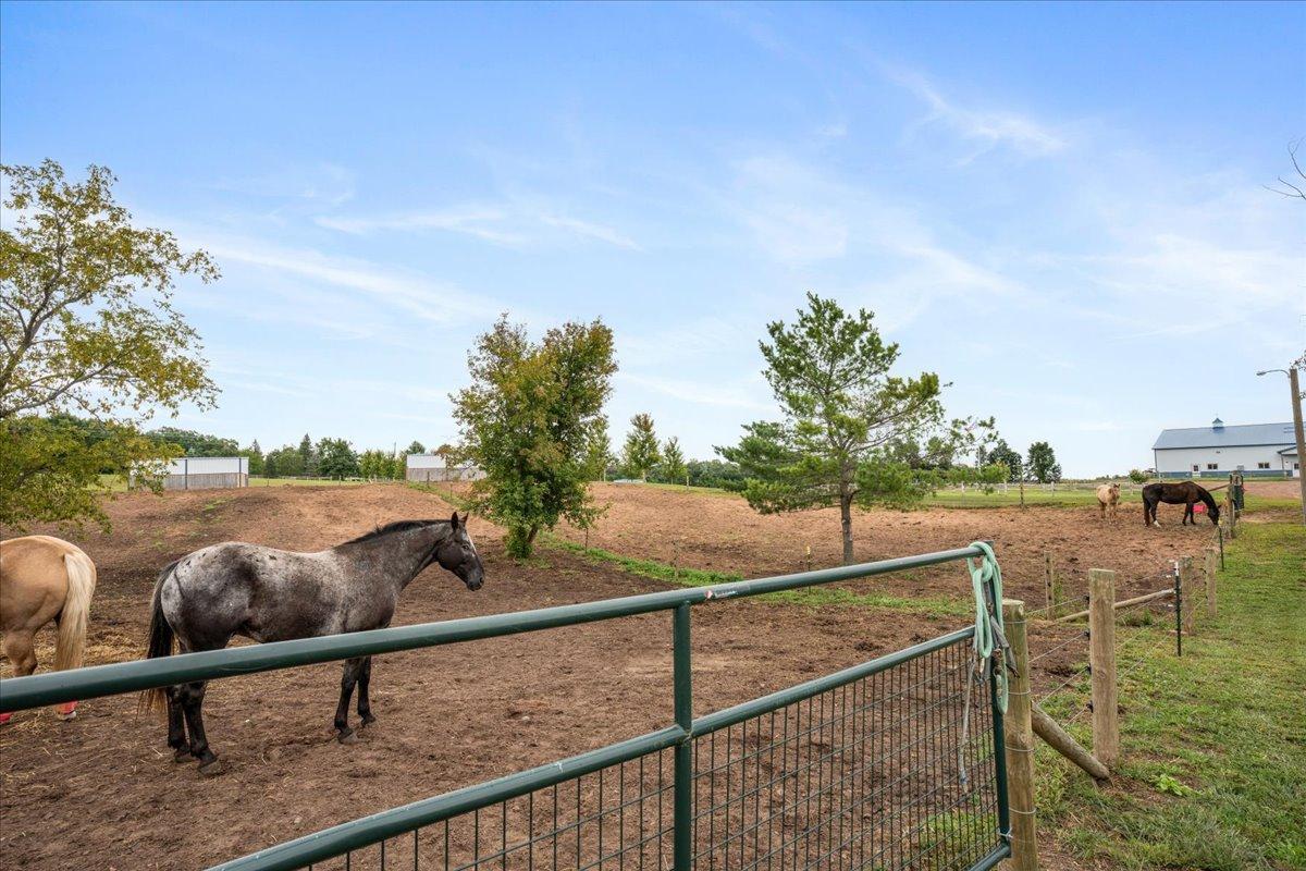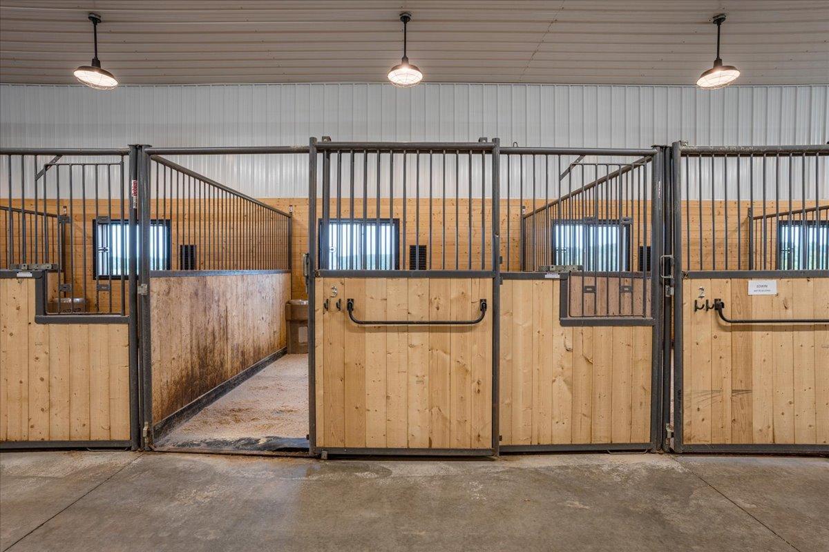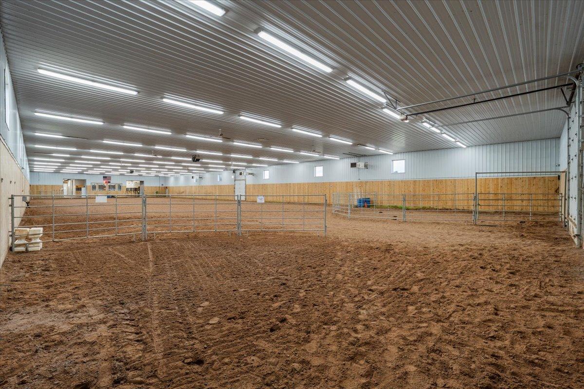 Welcome to Sky High Ranch!!! Nestled in the rolling countryside of beautiful Webster, Wisconsin, this 40-acre estate offers the perfect blend of natural beauty and world-class equestrian facilities. At the heart of the ranch is a premier 20-stall barn with a heated, indoor arena, designed with comfort, safety, and care in mind. Along with wash stalls, tie/grooming stalls, public and private tack rooms as well as individual lockers. With both pasture boarding and individualized stall boarding, every horse enjoys the freedom and care they deserve. Sky High Ranch is also a spectacular event facility, hosting horse shows, clinics, workshops and events throughout the year. As you step inside to the charming one-story single-family rambler, you will find a fully finished walkout basement and plenty of space to spread out. This thoughtfully designed home offers 4 bedrooms and 4 bathrooms, including a spacious primary suite with a walk-in closet and private bath. The heart of the home is the updated kitchen, showcasing granite countertops, modern appliances, and ample cabinetry, perfect for everyday meals or entertaining. The cozy living room features a wood-burning fireplace, creating a warm and inviting atmosphere. The lower level is fully finished and offers incredible flexibility with a mother-in-law suite, great room/rec room, and additional living space—ideal for hosting guests or extended family. Step outside onto the back deck and take in the peaceful views of the pond and your own land, making it the perfect spot for morning coffee or evening relaxation. With its combination of comfort, functionality, and scenic surroundings, this home and ranch is ready to welcome its next owners. Whether you’re a passionate rider, a professional horse trainer, or simply a horse lover, Sky High Ranch is more than a farm – it’s a true equestrian paradise. If you are looking for a quality boarding barn, a training facility or an event venue, look no further! Schedule your private tour today and let your journey begin at Sky High Ranch!!