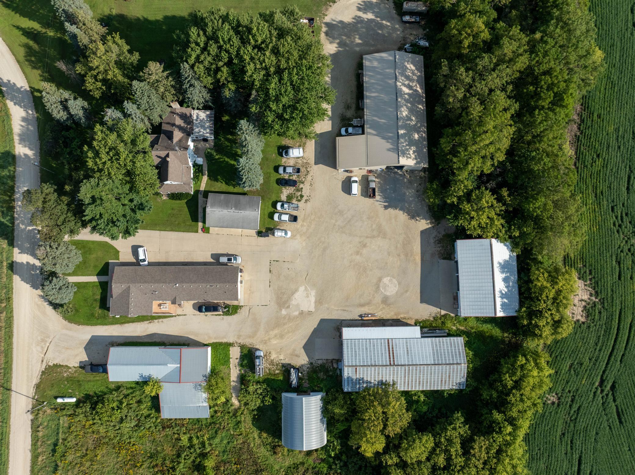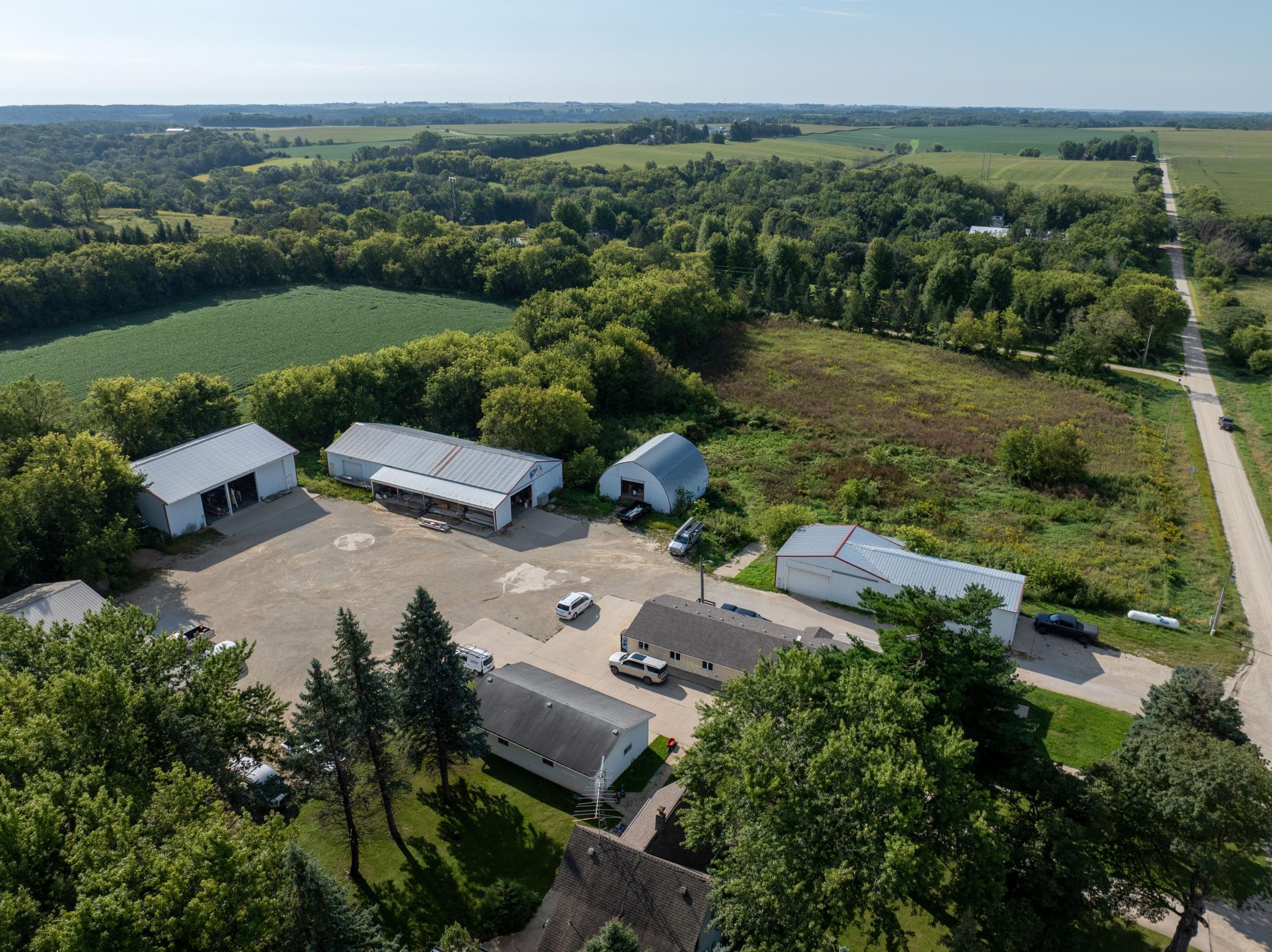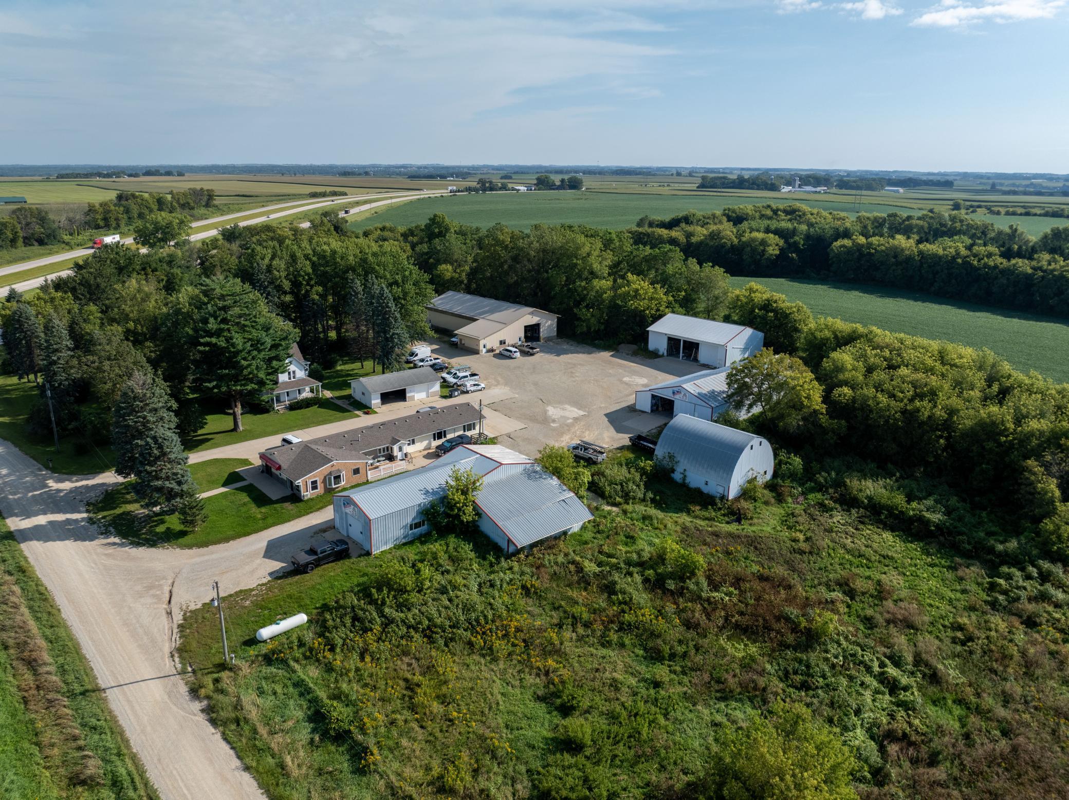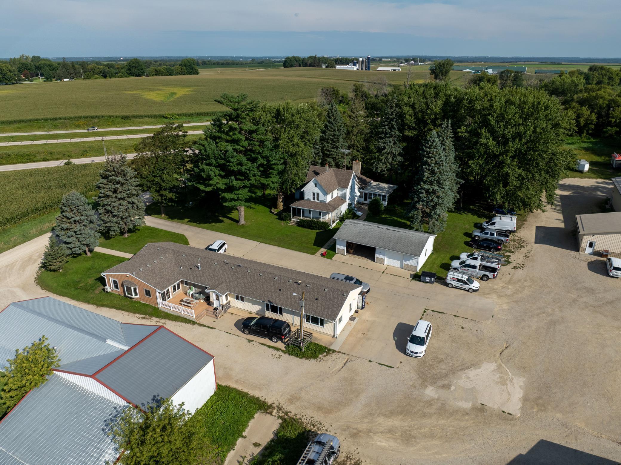 Discover a unique blend of personal or business opportunity on this 7.5+ acre estate near Rochester. The 1881 main house features three bedrooms and two bathrooms, offering charming comfort. The property includes a versatile office building and five expansive outbuildings (950 to 4,000 sq ft). Ideal for businesses, rentals, or creative projects, or endless possibilities. Enjoy the serene country setting with city conveniences nearby perfect for investors or individual seeking growth and versatility.