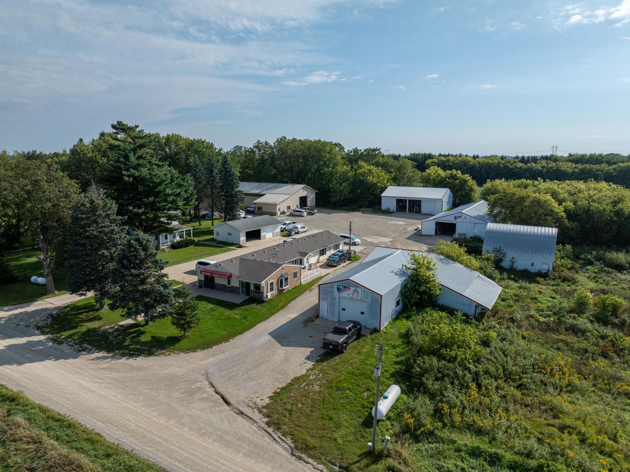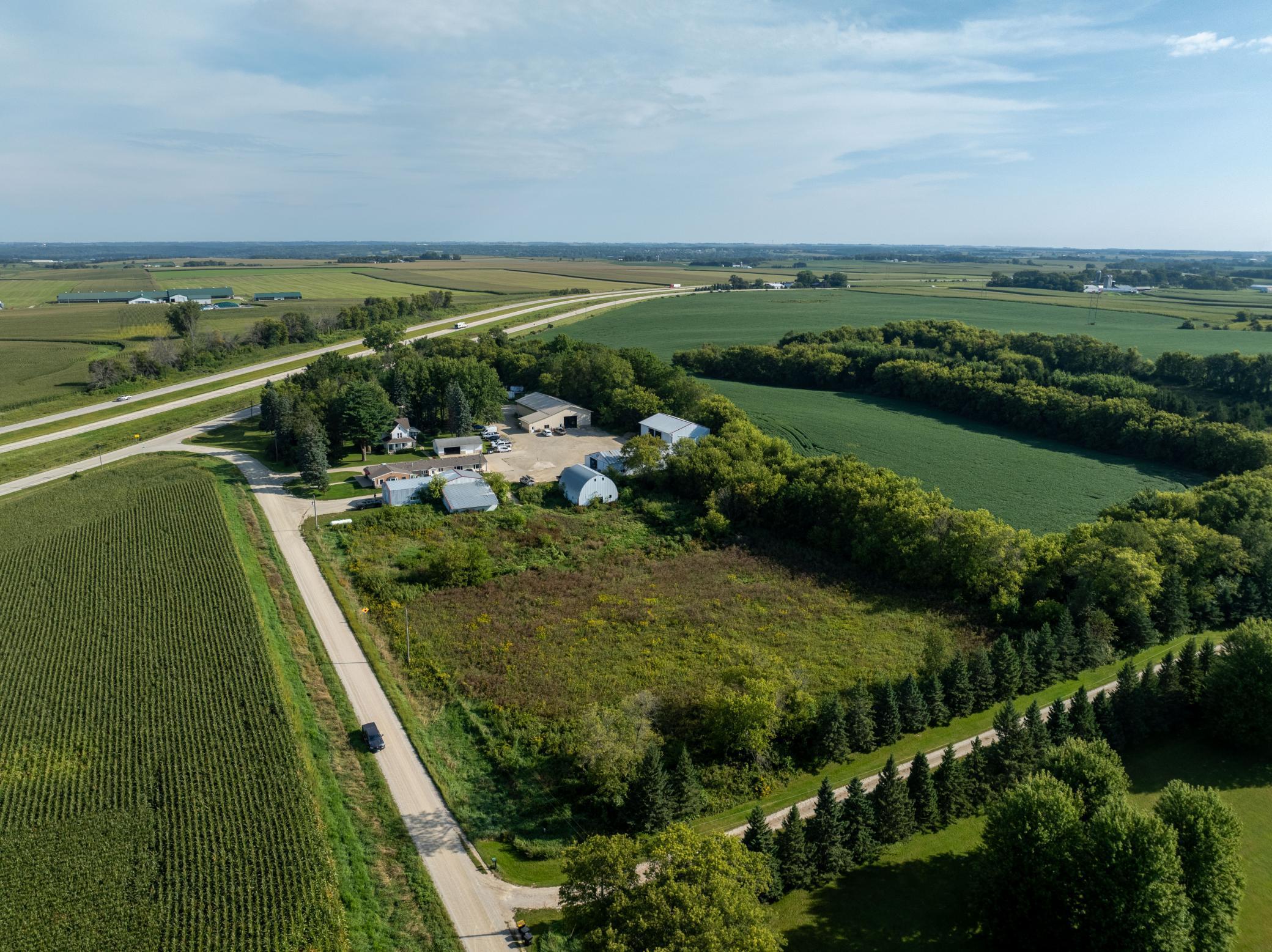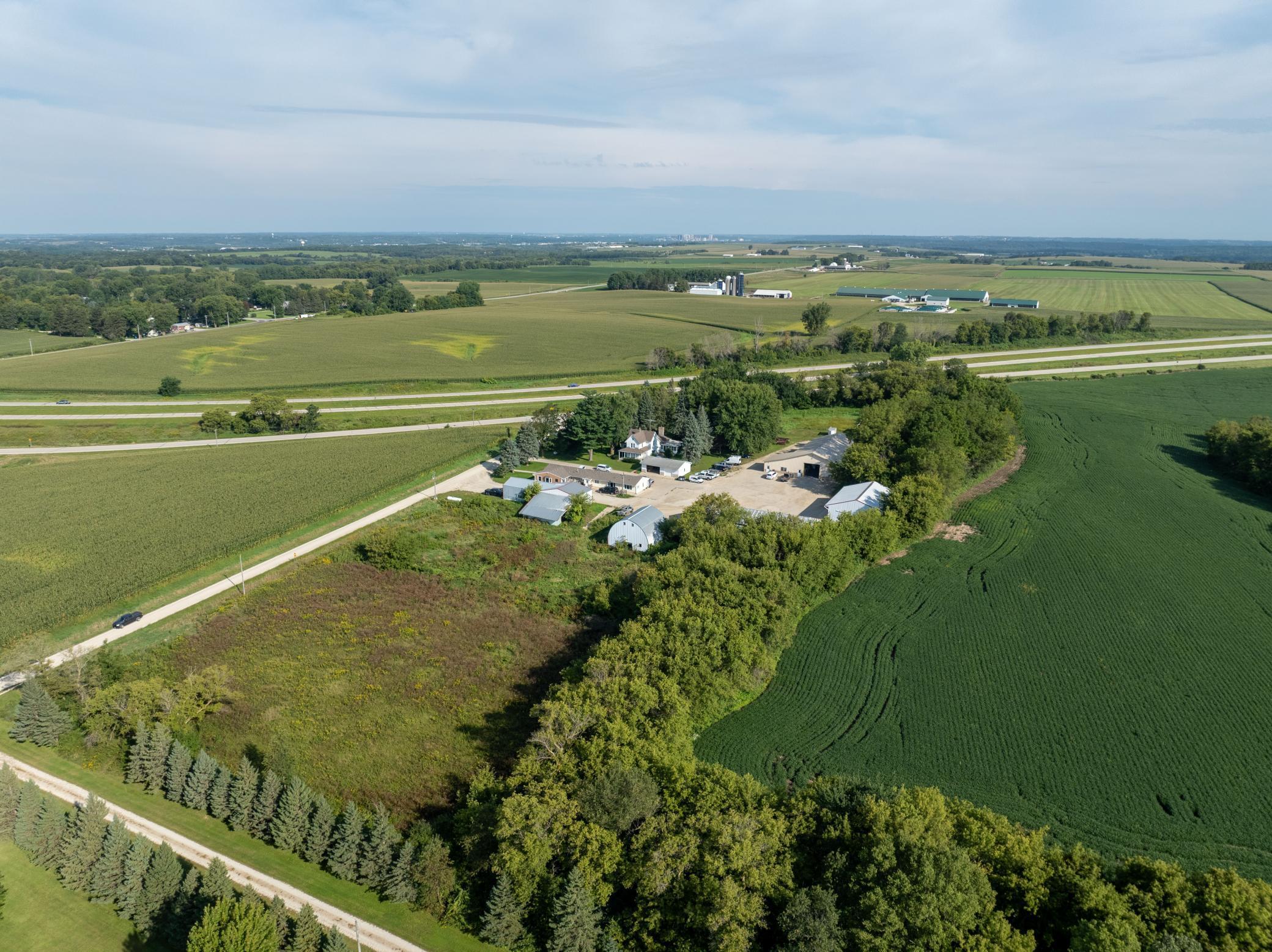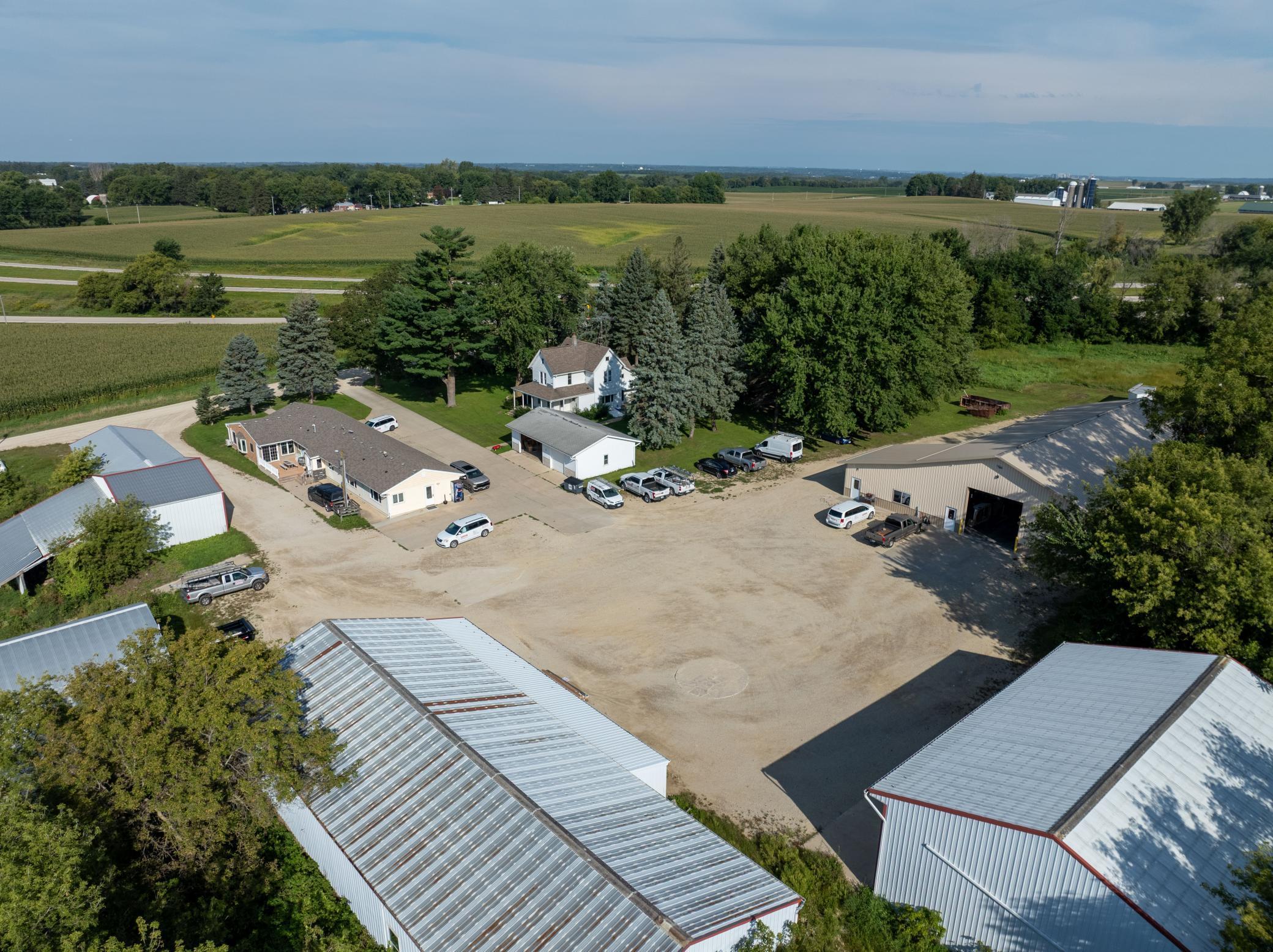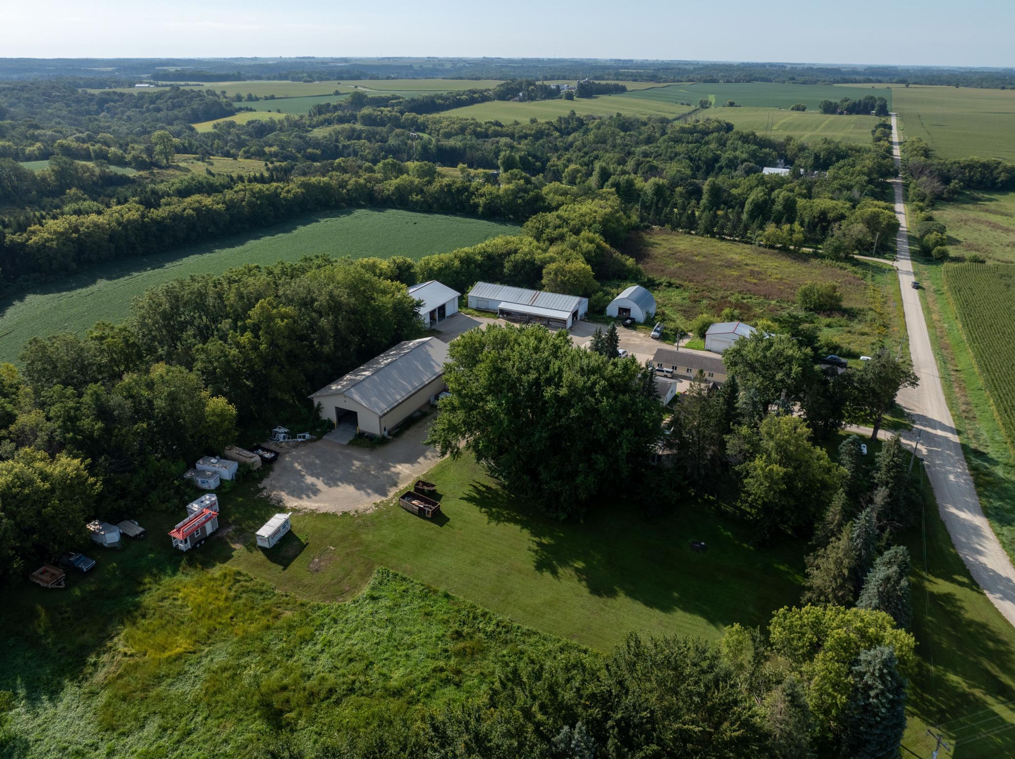 Discover a unique blend of personal or business opportunity on this 7.5+ acre estate near Rochester. The 1881 main house features three bedrooms and two bathrooms, offering charming comfort. The property includes a versatile office building and five expansive outbuildings (950 to 4,000 sq ft). Ideal for businesses, rentals, or creative projects, or endless possibilities. Enjoy the serene country setting with city conveniences nearby perfect for investors or individual seeking growth and versatility.