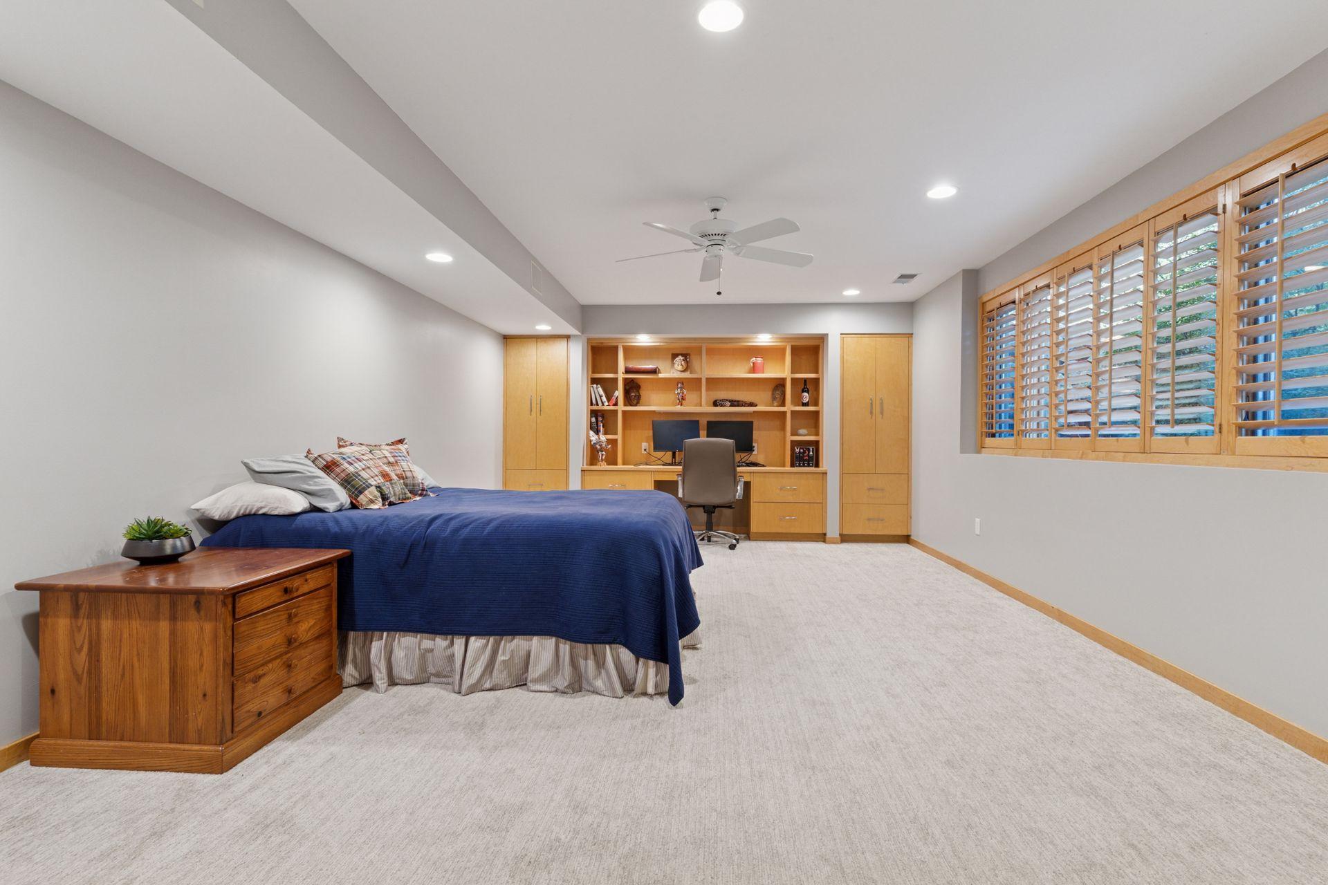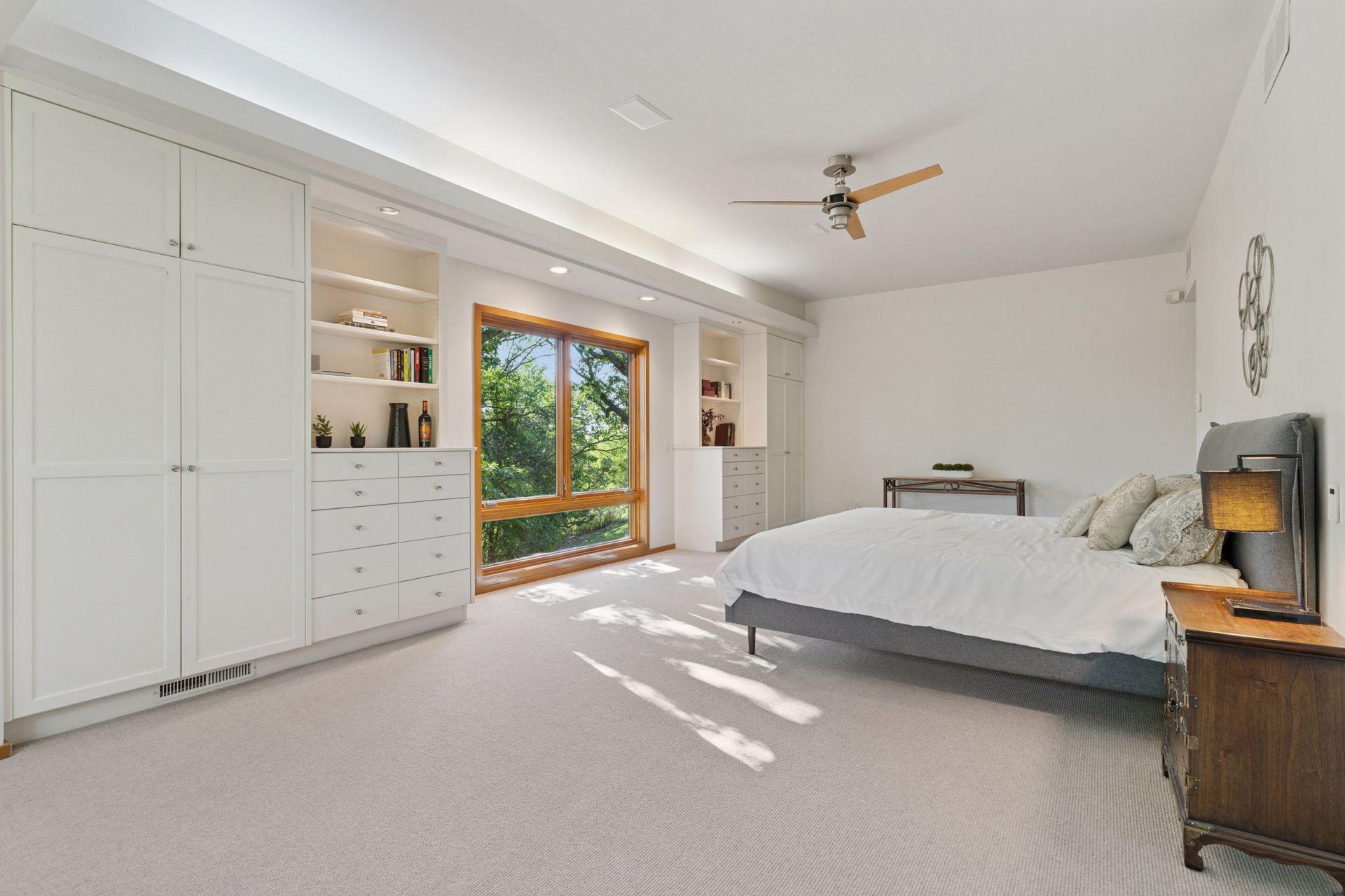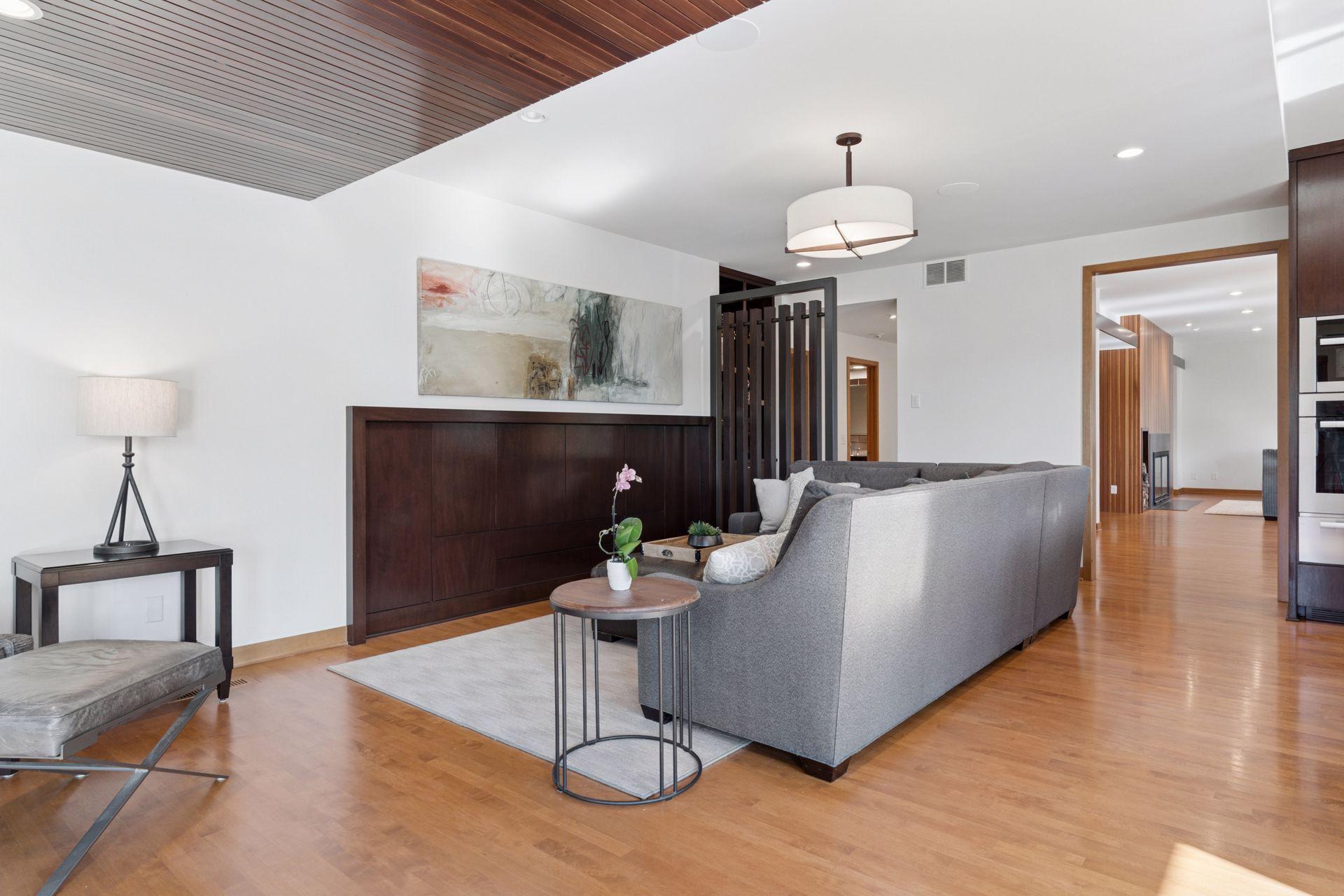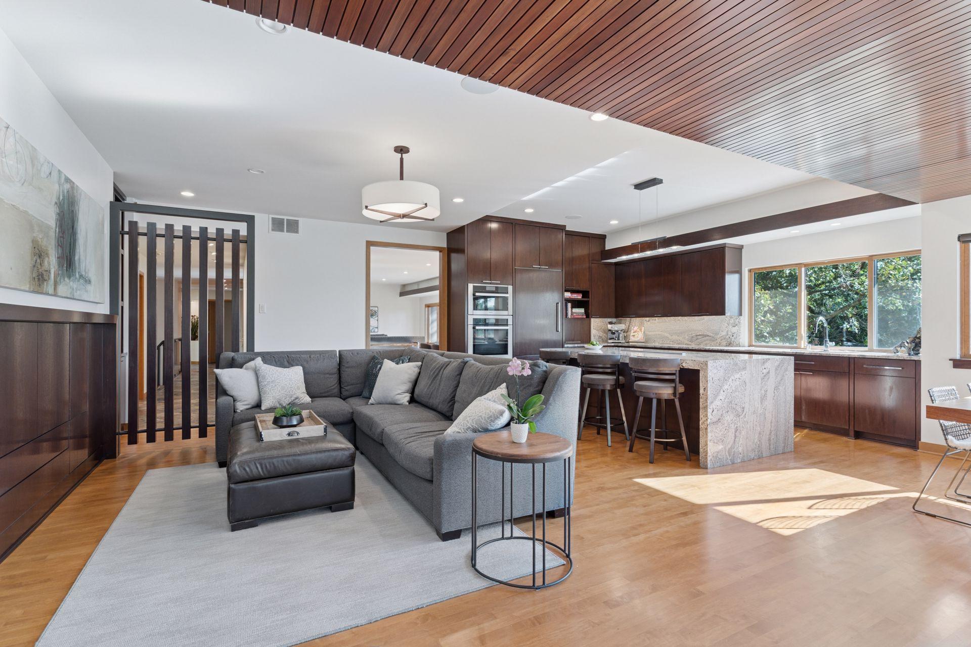 Set upon a breathtaking, south facing, 1.14 acres overlooking the Purgatory Creek Conservation Area this stunning prairie influenced 1-level walkout home is a testament to timeless architecture and flawless craftsmanship. Upon entering you are greeted with a crisp, mid-century modern design with vaulted ceilings, hardwood floors and newer floor-to-ceiling windows that capture its picturesque natural panorama. A recently remodeled living/formal dining room centers around a stunning, wood-burning fireplace with custom wood surround, complemented by a built-in buffet, wood accents, soffit detailing and lighting. The top-of-the line kitchen is a showpiece featuring Miele appliances, a granite waterfall center island with seating, granite backsplash, custom cabinetry, built-in informal dining room nook and an adjoining hearth room with built-in media center. The tranquil three-season porch is anchored by a hearthstone fireplace and seamlessly flows to the patio and level yard. The main level Owner’s suite is a spacious sanctuary that boasts a vaulted ceiling, soffit lighting, floor-to-ceiling windows, walk-in closet and full bathroom. The main level also hosts a hard-to-find additional bedroom or possible office with private full bathroom ideal for guests. The walkout lower level is perfect for entertaining offering a recently remodeled family room with wood burning fireplace, billiards/game area, three spacious bedrooms with a full bathroom and large storage room. The renovated exterior showcases James Hardie siding, wood and metal accent detailing, numerous new Marvin windows, new maintenance free deck and low voltage lighting that truly creates a one-of-a kind ambiance while preserving its prairie-inspired architectural aesthetic. With its extensive list of improvements and rare combination of pedigree, modern updates, and private, natural setting, this property is truly one of a kind and an absolute must-see.