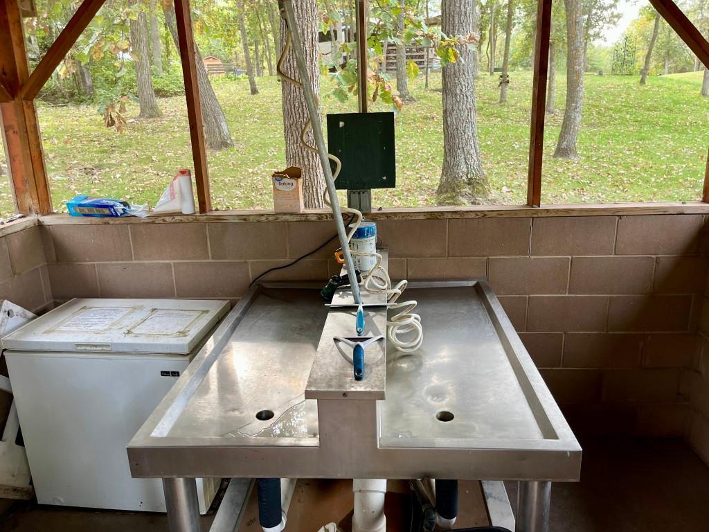 The owner's home has 3 bedrooms and 2 baths. Additional buildings include a garage, shop, and fish cleaning house.