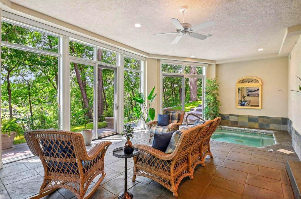 Exceptional, custom-built, original-owner home available for the first time. Meticulously maintained 5BR/5BA estate with panoramic views of Arrowhead Lake. Enjoy privacy, serenity and wildlife in the heart of Edina. The home features new paint, a neutral decor, vaulted ceilings, hardwood floors, marble & granite surfaces, walls of glass and custom finishes throughout. The inviting floorplan features a wonderful main-level, two-bedroom owner's suite, with an en-suite bathroom, his and hers walk-in closets, and access to its own private patio. An impressive light filled great room welcomes you. This space presents a living room and elegant formal dining room, spacious enough to accommodate a grand piano. This leads to an amazing 35'x 21' terrace overlooking Arrowhead Lake. Additionally, you’ll discover a gourmet kitchen with abundant counter space, center island, and custom cabinetry. The kitchen also opens to an informal dining area and family room. The main floor also features a powder room, a mudroom off the 3-car heated garage, and one of the home's two laundries. The second floor includes a private studio (or 5th Bedroom) with high ceilings, wonderful sunlight and a full bathroom... perfect for many uses. The lower level is just as grand, with two bedrooms, two bathrooms (one en-suite), a home office with French doors, a spacious & inviting rec/media room with a full wet bar, and a pass-thru to the sunroom and spa. The main floor terrace is only surpassed by a stunning 4-season sunroom... complete with a in-ground whirlpool spa and walls of glass facing the lake. You'll also find a 32 x 17 work room for your hobbies and projects. The exterior & landscaping are perfectly manicured... from the inviting entry and paver driveway to the lakeside level lawn bordered with boulders. All 4 seasons are enjoyed, and carefully framed from each room to take advantage of this beautiful setting. This home provides a wonderful opportunity to enjoy lake living in the metro’s most convenient and desirable location. It's your oasis in the heart of Edina!