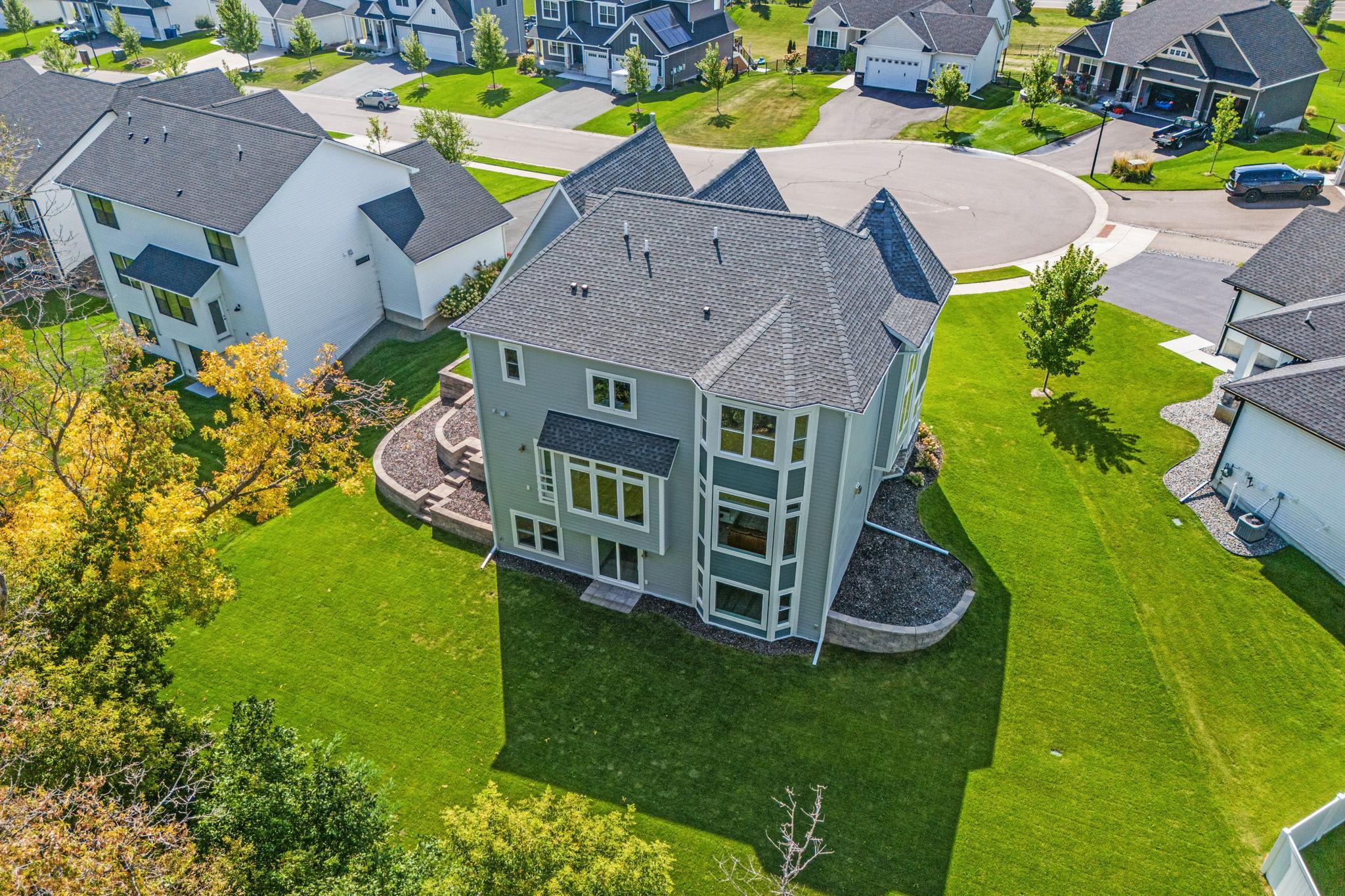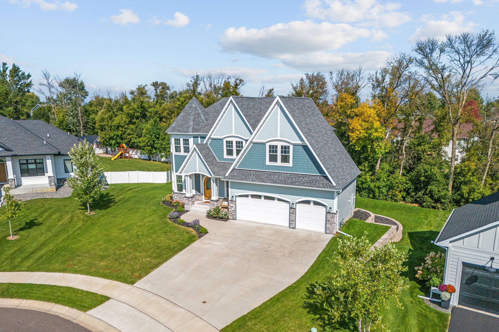 Newly finished walkout basement just completed! Adding over 1,300 sqft of beautifully designed living space, this home now boasts nearly 4,400 finished sqft of luxury from top to bottom. Nestled at the end of a peaceful cul-de-sac, this custom-designed two-story is a true original—single-owner, thoughtfully appointed, and finished with exceptional detail and premium high precision craftsmanship throughout. The main level showcases soaring 10-ft ceilings, solid white oak floors, precision millwork, solid-core tall doors, and quartzite countertops carried through the entire home. The gourmet kitchen is an entertainer’s dream: oversized island, quartzite counters, custom ceiling-height cabinetry with drawers throughout, pot filler, designer hood, high-end appliances, stylish backsplash, walk-in pantry, and a spacious butler’s pantry with prep sink, rough in for second oven, hidden under cabinet outlets, and abundant storage. The open-concept layout flows seamlessly into a great room with a marble gas fireplace, built-in media cabinetry, floor to ceiling windows, and tray-vaulted ceilings. Upstairs offers 9-ft ceilings, three bedrooms, a versatile loft, full bath, and a beautifully upgraded laundry room with extensive cabinetry, counter space, and sink. The luxurious owner’s suite is filled with natural light and features vaulted ceilings, spa-like marble bath, oversized walk-in tile shower, soaking tub, and dual walk-in closets. Upstairs includes second master with its own private bathroom. The brand-new lower level impresses with an entertainment room, flex room with closet, additional bedroom, full bath, and direct walkout to the flat, tree-lined backyard. Additional highlights include designer lighting, upscale hardware, marble tile in baths, Hardie board siding on all four sides, ceiling detailing throughout, wi-fi light switches, double insulated (blown in & batt) and upgraded craftsman millwork in every room. Every inch of this home has been elevated to create a truly one-of-a-kind masterpiece. Perfectly located near the small-town charm and exciting growth of downtown Rogers, with effortless access to I-94, Maple Grove, Arbor Lakes, and beyond—this move-in ready home offers the best of both convenience and lifestyle!