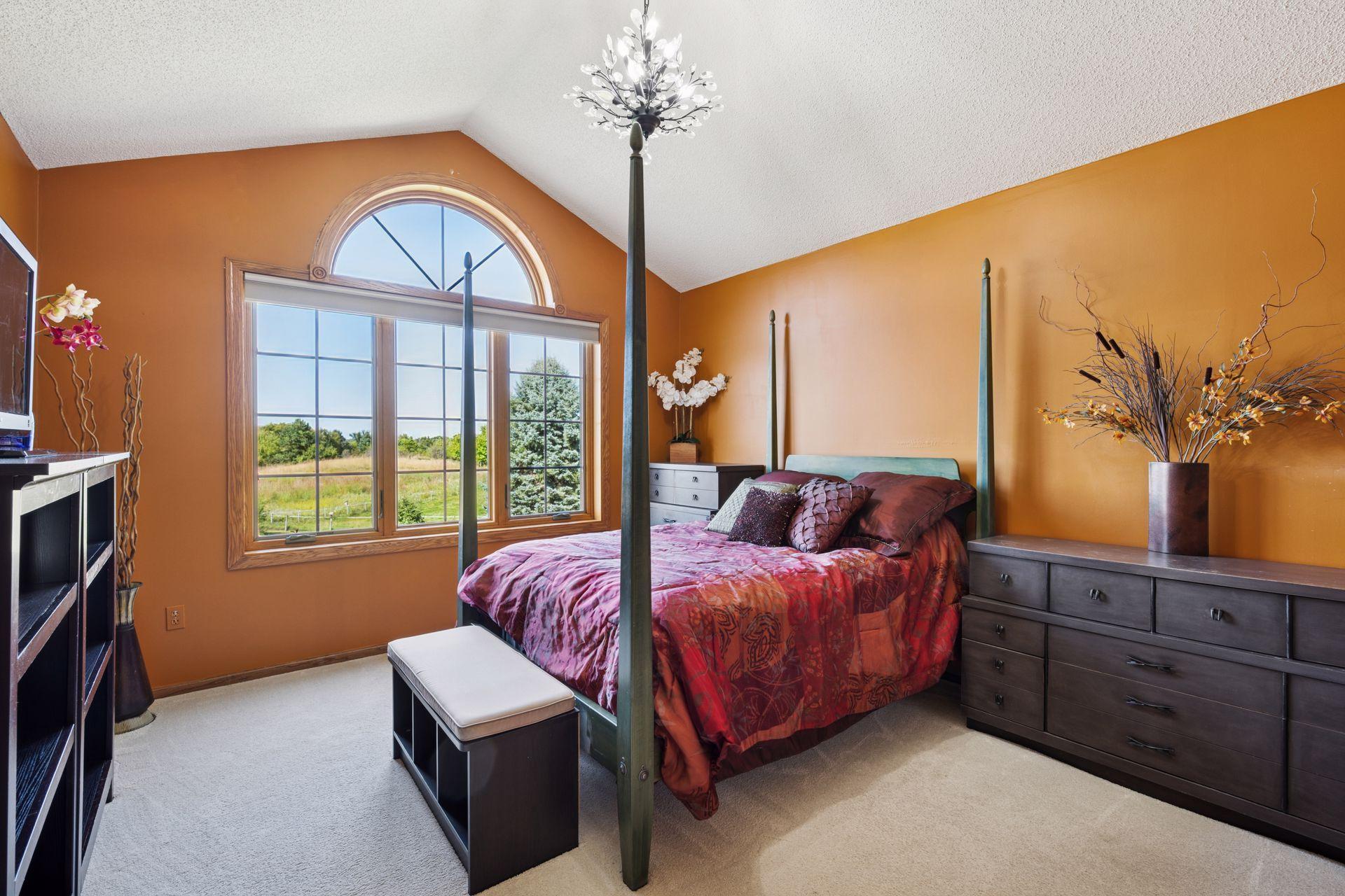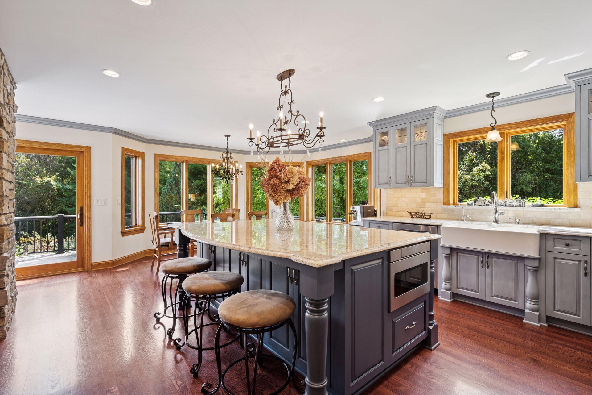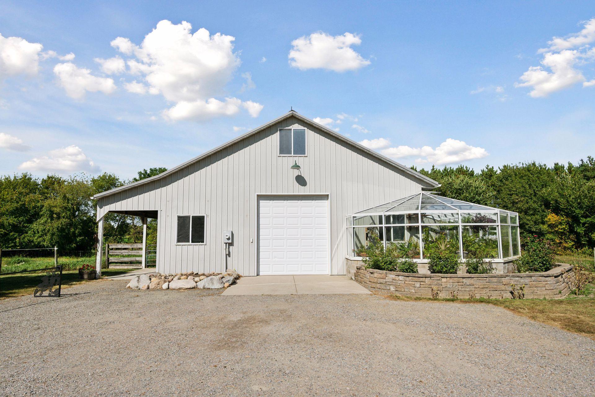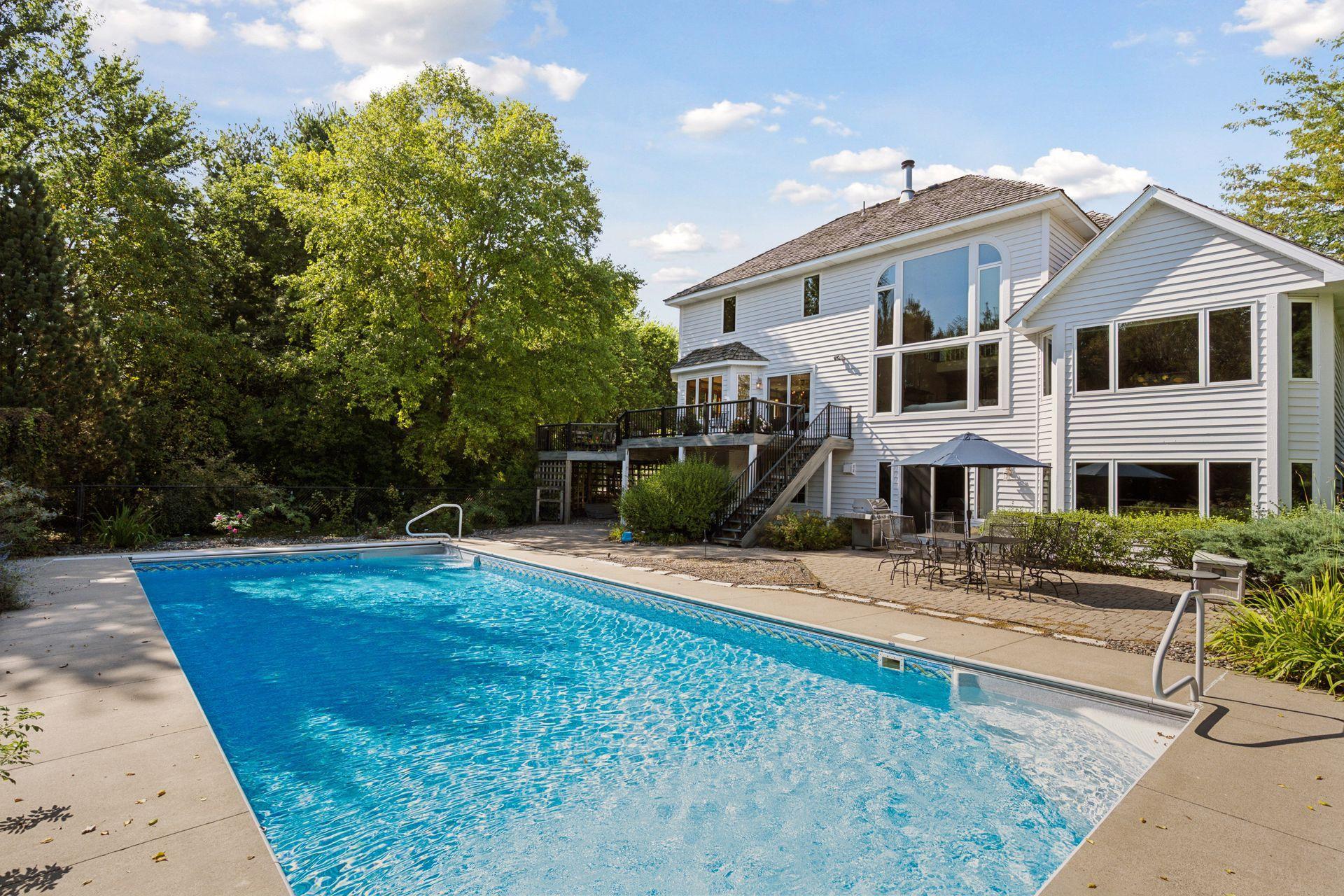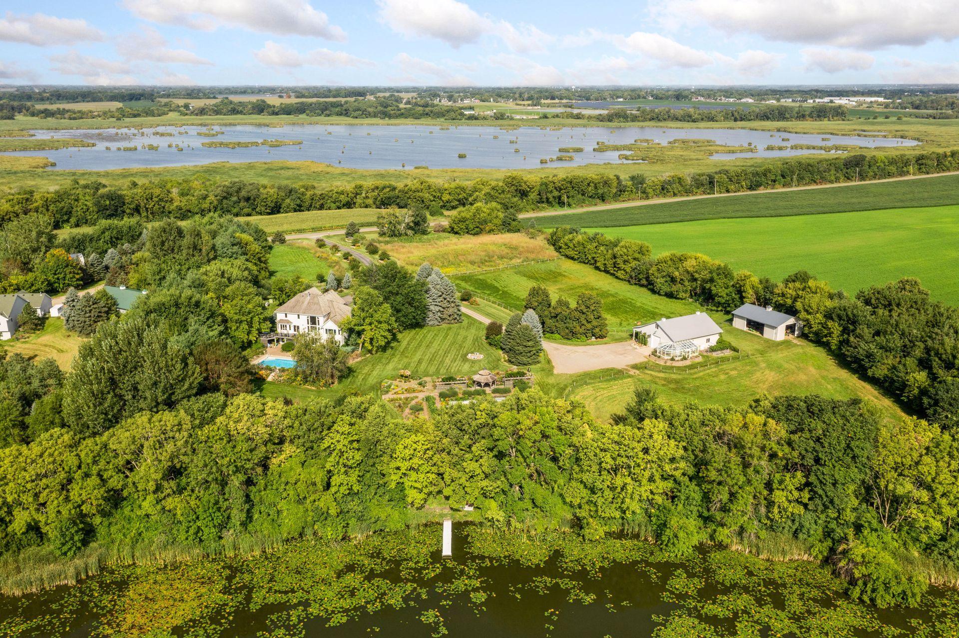 Welcome to your dream hobby farm retreat on the shore of Fountain Lake in Montrose, Minnesota. This charming traditional-style home is nestled at the end of a picturesque, tree-lined driveway surrounded by restored prairie, offering luxury, privacy and country charm. From masterfully designed perennial gardens with abundant wildlife, to a heated saltwater pool and whimsical play area, lovingly known as Neverland, every inch of this property is beautifully crafted. This property is truly special. Step inside and fall in love with the sun-filled family room boasting towering two-story windows, wood floors, and a fireplace. A formal dining room provides an elegant space for entertaining and is adjacent to a quiet office overlooking the front yard. The main floor primary suite serves as a private retreat with a ensuite bathroom and walk-in closet. The kitchen is the heart of the home, with a stunning gourmet kitchen featuring custom cabinetry, including a beautifully carved range hood, and a large center island with beautiful granite countertops. You will appreciate the extra storage and wine cooler in the butler's pantry. The kitchen is complete with beautiful views of the lake, pool, and gardens from the breakfast nook and informal dining area. Upstairs offers three spacious bedrooms, a Jack-and-Jill bath with double sinks. The downstairs is perfect for a movie night or entertaining friends, with a wet bar and easy access to the pool. Two spacious bedrooms, a playroom, two bathrooms, and plenty of storage complete the home. Cultivate new hobbies with the perennial gardens and raised flower beds, or in the greenhouse. Store your toys in the 45x30 toybox, or in the comfort of the divided 48x36 heated shop, complete with a floor drain. Want to raise chickens, goats or other animals, do so, in the back half of the shop. Offering peace, privacy, and endless opportunity, this property is ideal, whether you want to relax, raise animals, connect with nature, or start and grow your business. Welcome home!