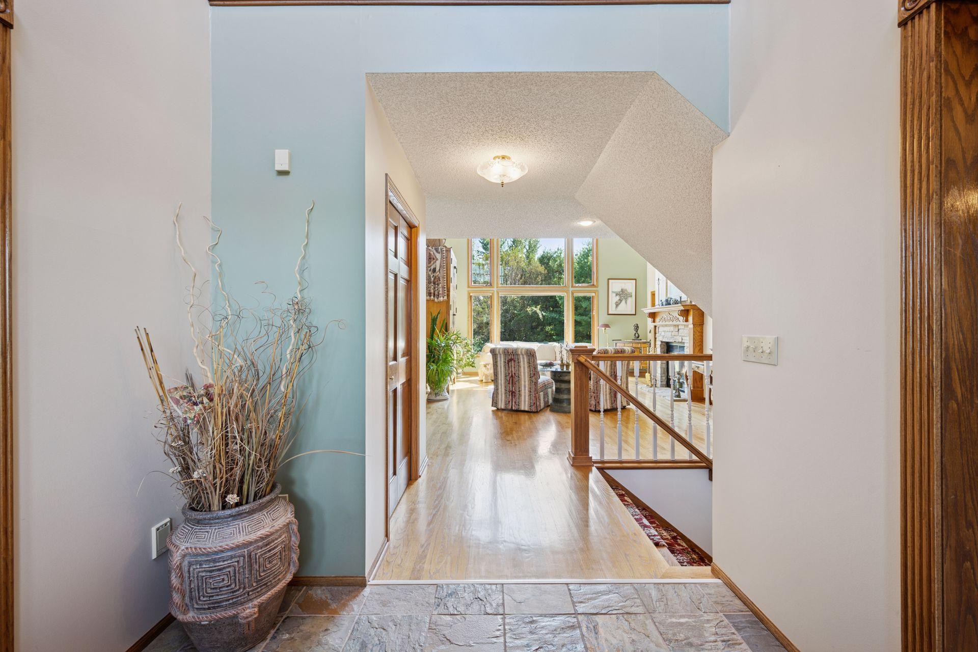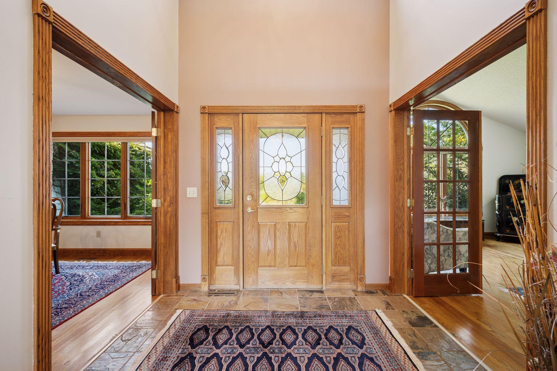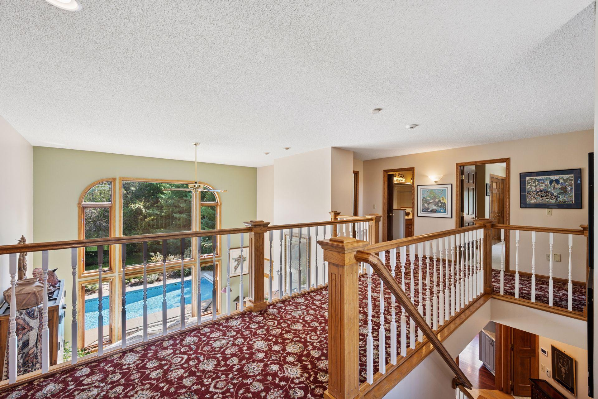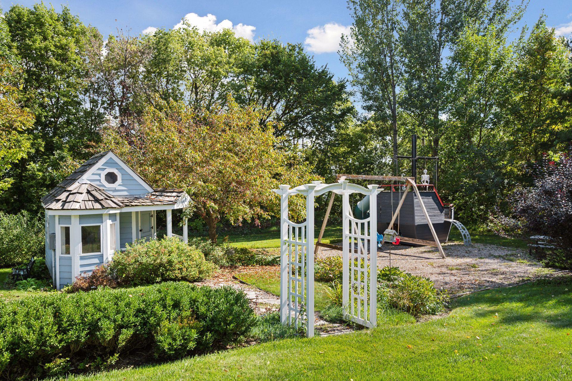 Welcome to your dream hobby farm retreat on the shore of Fountain Lake in Montrose, Minnesota. This charming traditional-style home is nestled at the end of a picturesque, tree-lined driveway surrounded by restored prairie, offering luxury, privacy and country charm. From masterfully designed perennial gardens with abundant wildlife, to a heated saltwater pool and whimsical play area, lovingly known as Neverland, every inch of this property is beautifully crafted. This property is truly special. Step inside and fall in love with the sun-filled family room boasting towering two-story windows, wood floors, and a fireplace. A formal dining room provides an elegant space for entertaining and is adjacent to a quiet office overlooking the front yard. The main floor primary suite serves as a private retreat with a ensuite bathroom and walk-in closet. The kitchen is the heart of the home, with a stunning gourmet kitchen featuring custom cabinetry, including a beautifully carved range hood, and a large center island with beautiful granite countertops. You will appreciate the extra storage and wine cooler in the butler's pantry. The kitchen is complete with beautiful views of the lake, pool, and gardens from the breakfast nook and informal dining area. Upstairs offers three spacious bedrooms, a Jack-and-Jill bath with double sinks. The downstairs is perfect for a movie night or entertaining friends, with a wet bar and easy access to the pool. Two spacious bedrooms, a playroom, two bathrooms, and plenty of storage complete the home. Cultivate new hobbies with the perennial gardens and raised flower beds, or in the greenhouse. Store your toys in the 45x30 toybox, or in the comfort of the divided 48x36 heated shop, complete with a floor drain. Want to raise chickens, goats or other animals, do so, in the back half of the shop. Offering peace, privacy, and endless opportunity, this property is ideal, whether you want to relax, raise animals, connect with nature, or start and grow your business. Welcome home!