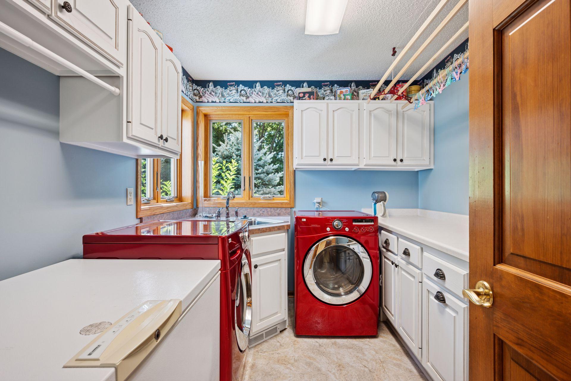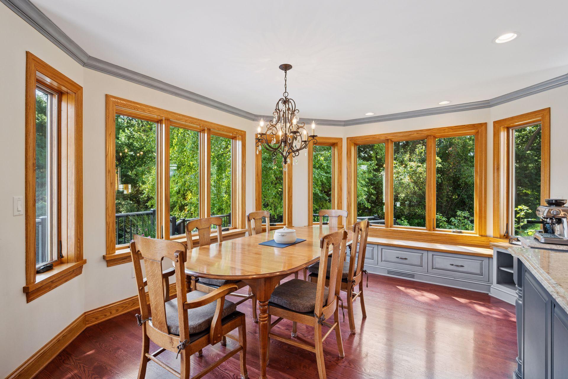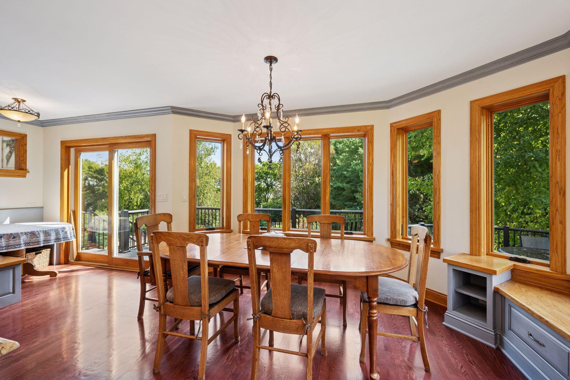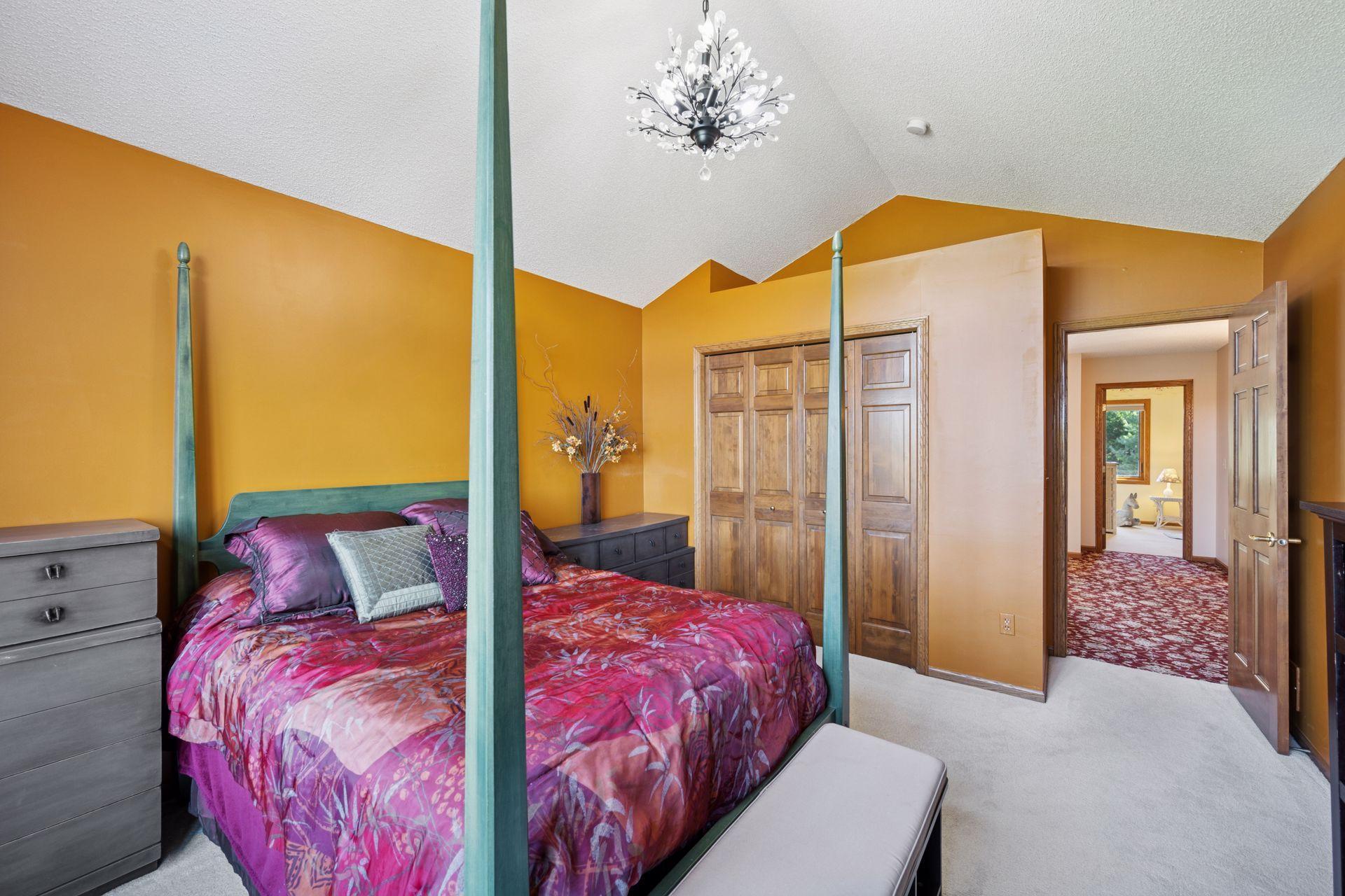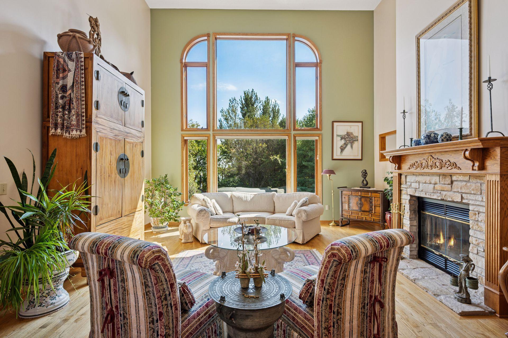 Welcome to your dream hobby farm retreat on the shore of Fountain Lake in Montrose, Minnesota. This charming traditional-style home is nestled at the end of a picturesque, tree-lined driveway surrounded by restored prairie, offering luxury, privacy and country charm. From masterfully designed perennial gardens with abundant wildlife, to a heated saltwater pool and whimsical play area, lovingly known as Neverland, every inch of this property is beautifully crafted. This property is truly special. Step inside and fall in love with the sun-filled family room boasting towering two-story windows, wood floors, and a fireplace. A formal dining room provides an elegant space for entertaining and is adjacent to a quiet office overlooking the front yard. The main floor primary suite serves as a private retreat with a ensuite bathroom and walk-in closet. The kitchen is the heart of the home, with a stunning gourmet kitchen featuring custom cabinetry, including a beautifully carved range hood, and a large center island with beautiful granite countertops. You will appreciate the extra storage and wine cooler in the butler's pantry. The kitchen is complete with beautiful views of the lake, pool, and gardens from the breakfast nook and informal dining area. Upstairs offers three spacious bedrooms, a Jack-and-Jill bath with double sinks. The downstairs is perfect for a movie night or entertaining friends, with a wet bar and easy access to the pool. Two spacious bedrooms, a playroom, two bathrooms, and plenty of storage complete the home. Cultivate new hobbies with the perennial gardens and raised flower beds, or in the greenhouse. Store your toys in the 45x30 toybox, or in the comfort of the divided 48x36 heated shop, complete with a floor drain. Want to raise chickens, goats or other animals, do so, in the back half of the shop. Offering peace, privacy, and endless opportunity, this property is ideal, whether you want to relax, raise animals, connect with nature, or start and grow your business. Welcome home!