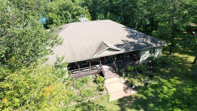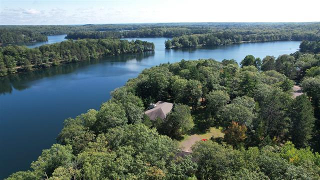 With a total of 8 bedrooms and 6 bathrooms, along with additional accommodations in the 2 log guest cabins, this Deluxe Duplex is situated on over 2 acres with an astounding 475+/- feet of pristine frontage on Buskey Bay, one of seven interconnected lakes in the highly desirable Pike Chain of lakes near Iron River in far northern Wisconsin.