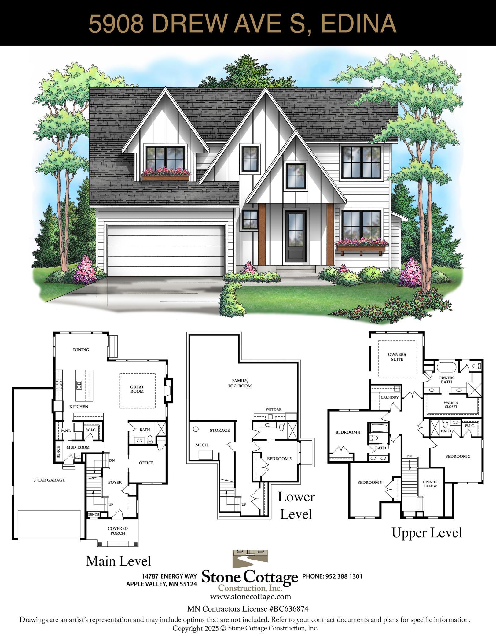 A rare opportunity awaits in the heart of Edina’s highly coveted Chowen Park neighborhood—a meticulously designed, custom home that effortlessly blends timeless craftsmanship with modern luxury. Featuring 6 spacious bedrooms and 5 elegantly appointed bathrooms, this residence promises an elevated lifestyle, all within walking distance of parks, shopping, dining, public transportation, and top-tier schools. Step inside to discover an expansive open-concept main floor with soaring 10-foot ceilings and a dramatic vaulted foyer that creates an unforgettable first impression. The gourmet kitchen and living areas are the true heart of the home, adorned with on-site finished hardwood flooring, custom cabinetry, and exquisite tile work that showcases the finest in design and detail. Exposed ceiling beams and a bespoke iron staircase railing add architectural flair and craftsmanship. Upstairs and in the fully finished lower level, you’ll find 9-foot ceilings that maintain the airy, open feel throughout the home. Each bathroom has been thoughtfully designed with blending spa-like comfort with refined elegance. The three-car garage is finished and heated, ensuring year-round convenience and comfort. All of this is nestled within the award-winning Edina School District. Sellers are offering a $10,000 allowance for the buyer to use toward installing a new fence of their choice.