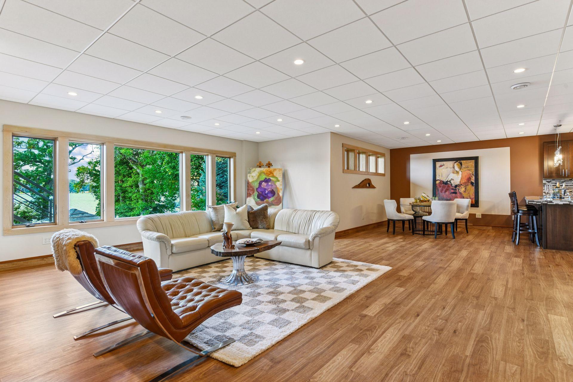 Lake Minnetonka Lakeshore! Artisan-style home featuring open, light-filled design with a blend of natural elements including, wood, tile and stone. Modern living with two main floor bedroom suites, great room with wall of windows, hardwood floors and two-sided fireplace. Step out to the lakeside porch and deck and enjoy the panoramic views of the lake. Escape to the upper-level den/retreat space with private deck. Entertain in style in the walkout lower level featuring family room, bar/party kitchen and two additional bedrooms and baths. Level lakeside yard with firepit, boathouse/studio and over 100 feet of sandy lakeshore with miles of Upper Lake views. Prime location minutes to restaurants, parks, trails, and shopping. Award-winning Westonka Schools.