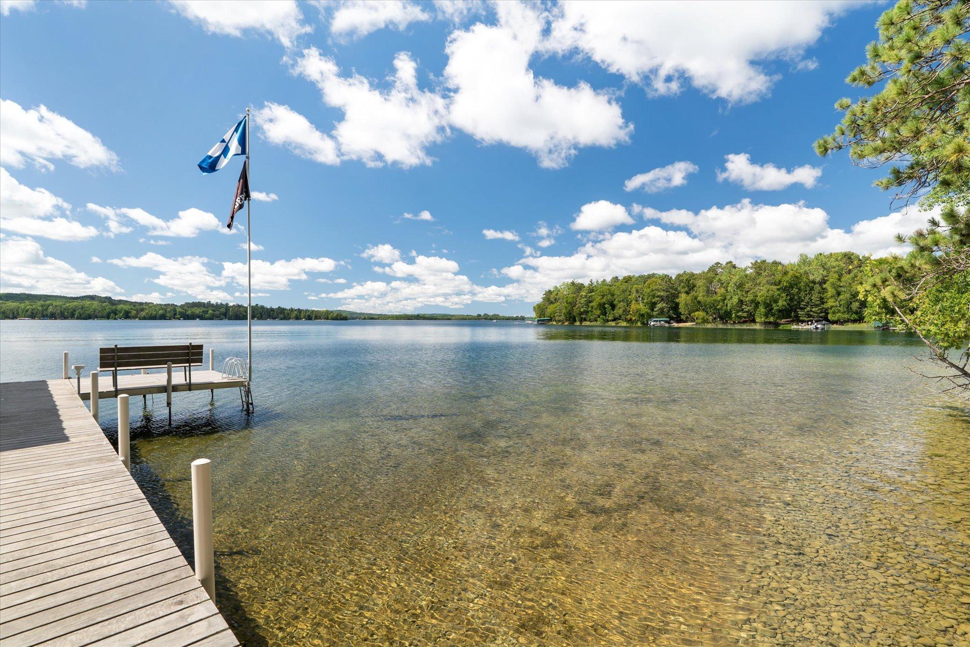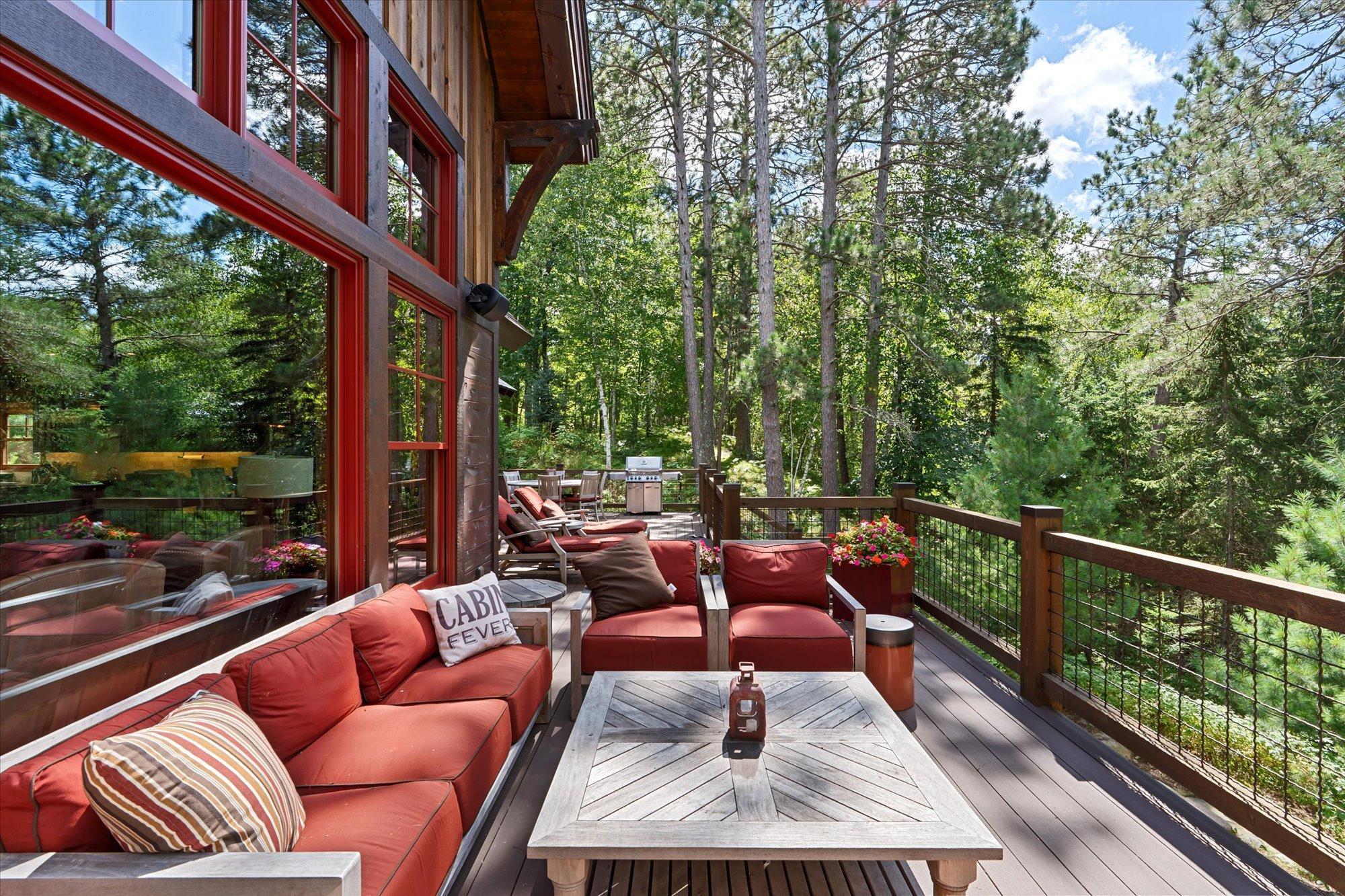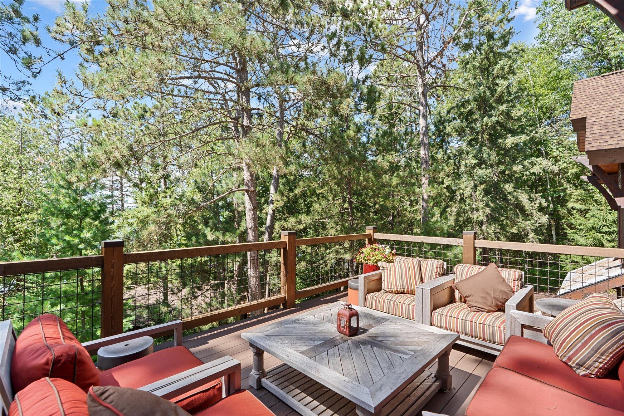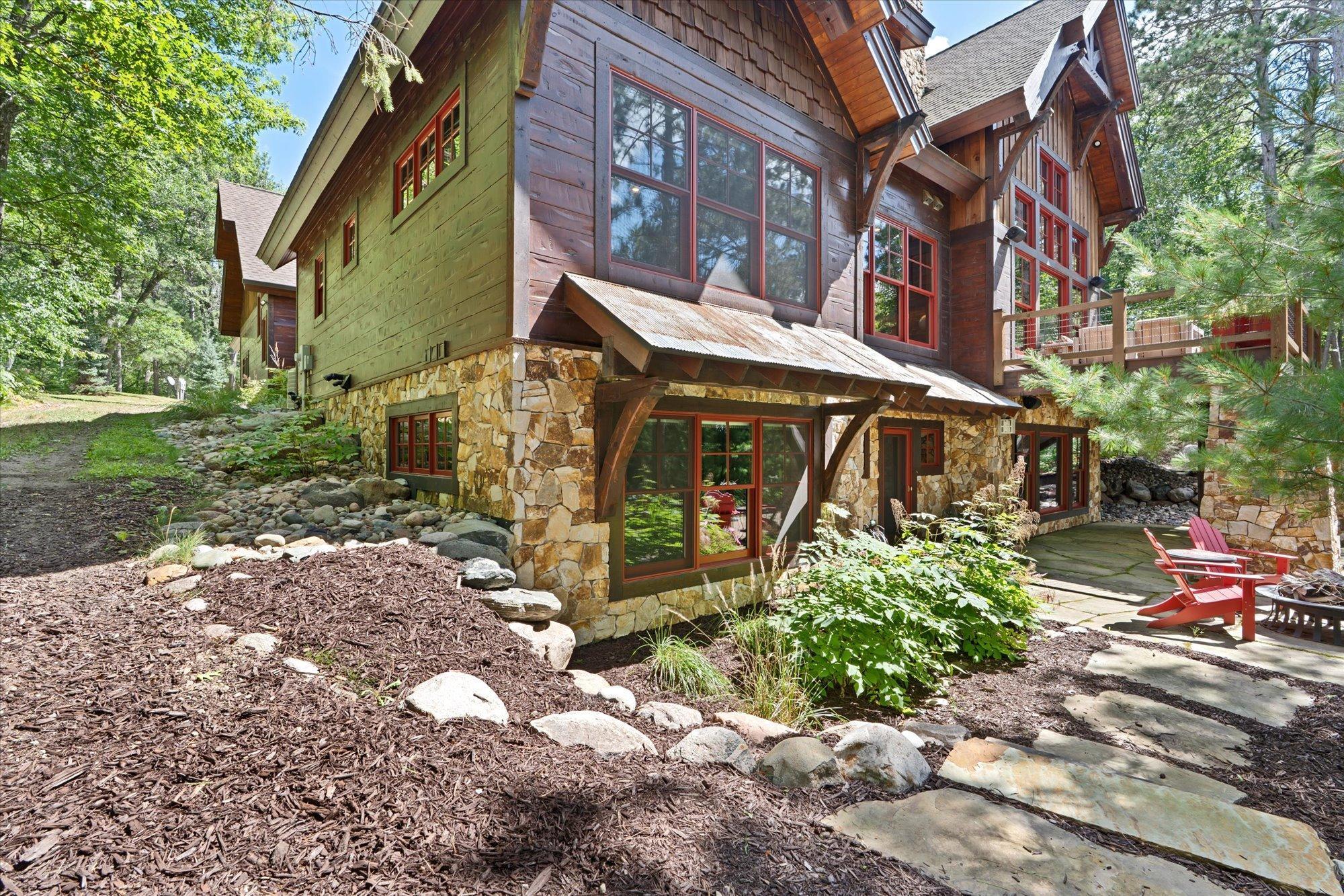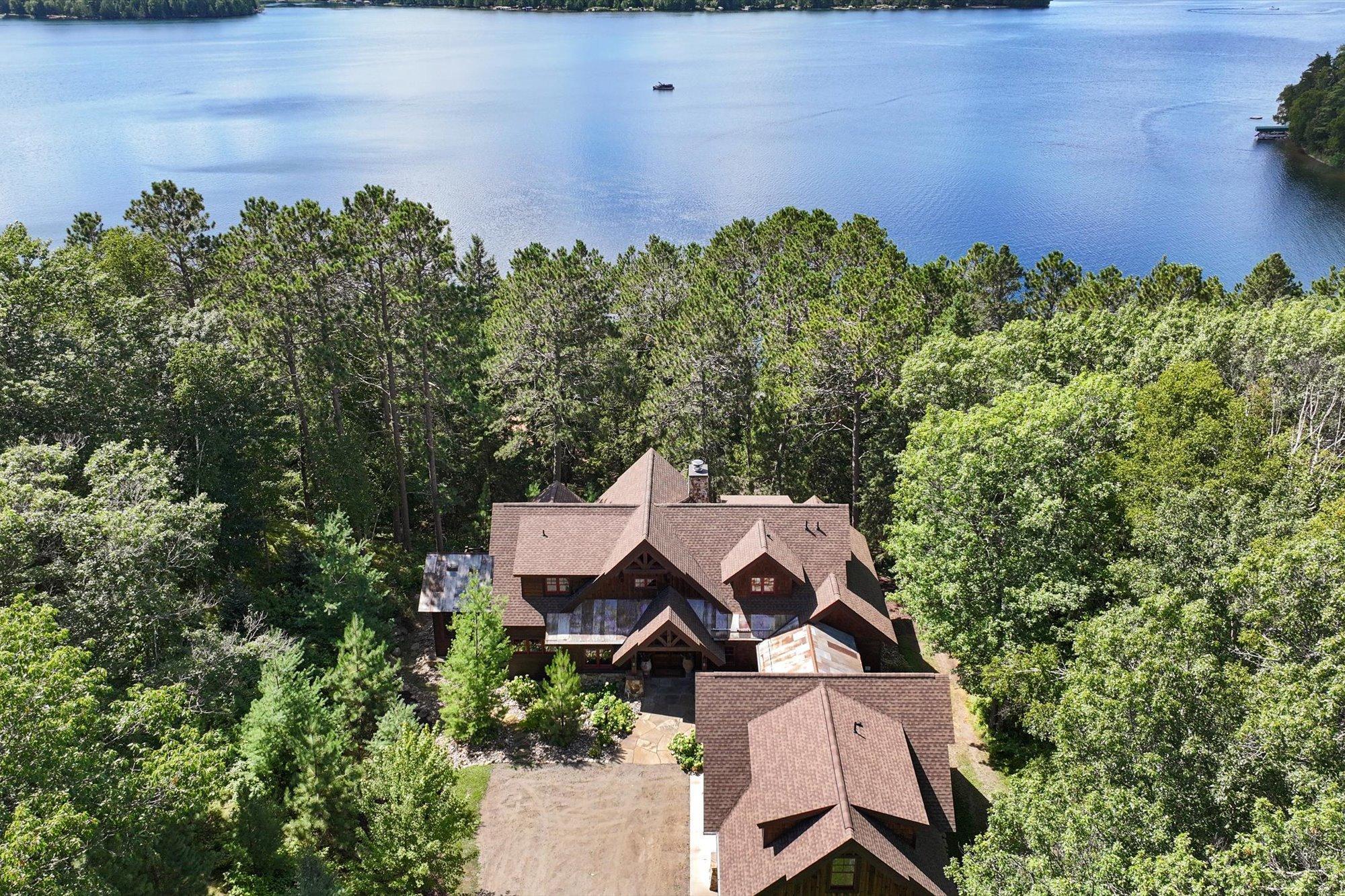 Stunning modern Land’s End constructed lodge on the east shore of Thunder Lake with 5 bedrooms (plus a bunkroom), 8 baths, and approximately 6,000 sq. ft. of living space located on a property that is framed by mature pine and cedar trees with 114 feet of shoreline and 1.6 acres of land. Thoughtfully designed as a timeless lodge with all the modern conveniences, this home offers moderate to level elevation to the shoreline and a lakeside beach house complete with bathroom, screen porch, wet bar, storage and efficiency kitchen. Enjoy the day’s activities or sunsets at the beach in this one of a kind amenity with the living area that can be converted into a screen porch or open air space. The main floor of the home features a private primary suite, den/office, open kitchen and living area, four-season porch, lakeside deck, and a dramatic two-story wood-burning fireplace. These features can be used in all seasons for indoor or outdoor living. Upstairs you’ll find a loft, guest bedrooms and baths, plus a sitting area with views of the lake and surrounding forest. A private guest suite above the garage includes its own kitchen, gathering room, bedroom, and bunk space. The walk-out lower level offers a family room with fireplace, lakeside patio access, bar, wine room, guest suites plus a convenient lakeside locker and private bath. Additional amenities include in-floor heat, tile and hardwood floors, extensive landscaping, timeless interior design, ample storage, and a 3-car garage....all this just off Co. Rd. 6 on the crystal-clear waters of Thunder Lake. This property is situated close to the Chippewa National Forest and Land O' Lakes State Forest to enjoy towering pines, fish-filled lakes, and miles of hiking and ATV trails nearby. It is located between Remer and Outing, so you can go shopping, golfing, and more. This serene and picturesque property is being sold furnished (with an exclusion list) so it will be ready for you to start making incredible memories of your time on Thunder Lake, taking in spectacular sunsets at the dock, going on excellent fishing adventures, and boating to a local restaurant for dinner. There are so many reasons to come and see this one. Schedule your private shoreline tour this weekend and experience the charm and tranquility of this remarkable property firsthand.