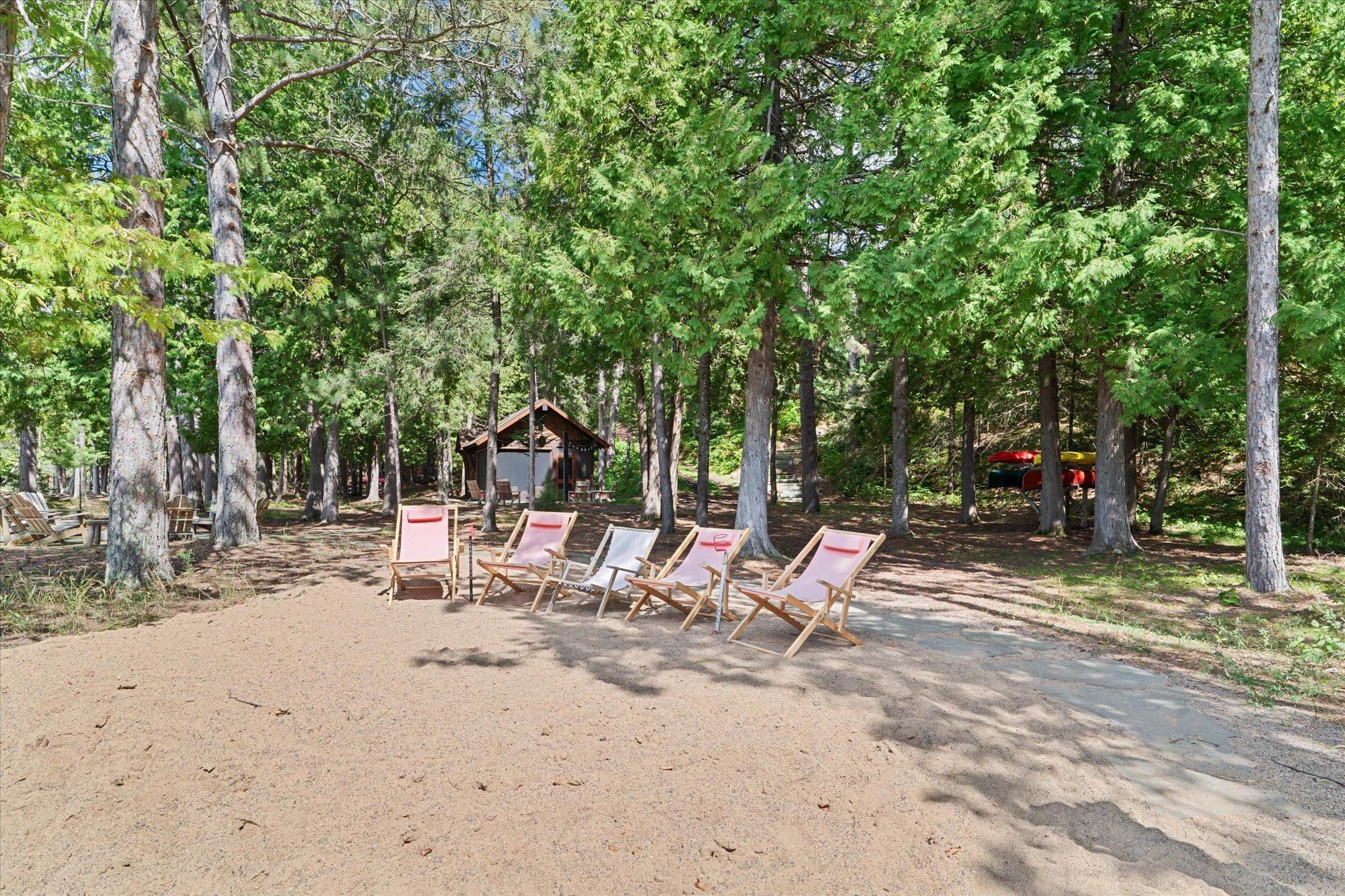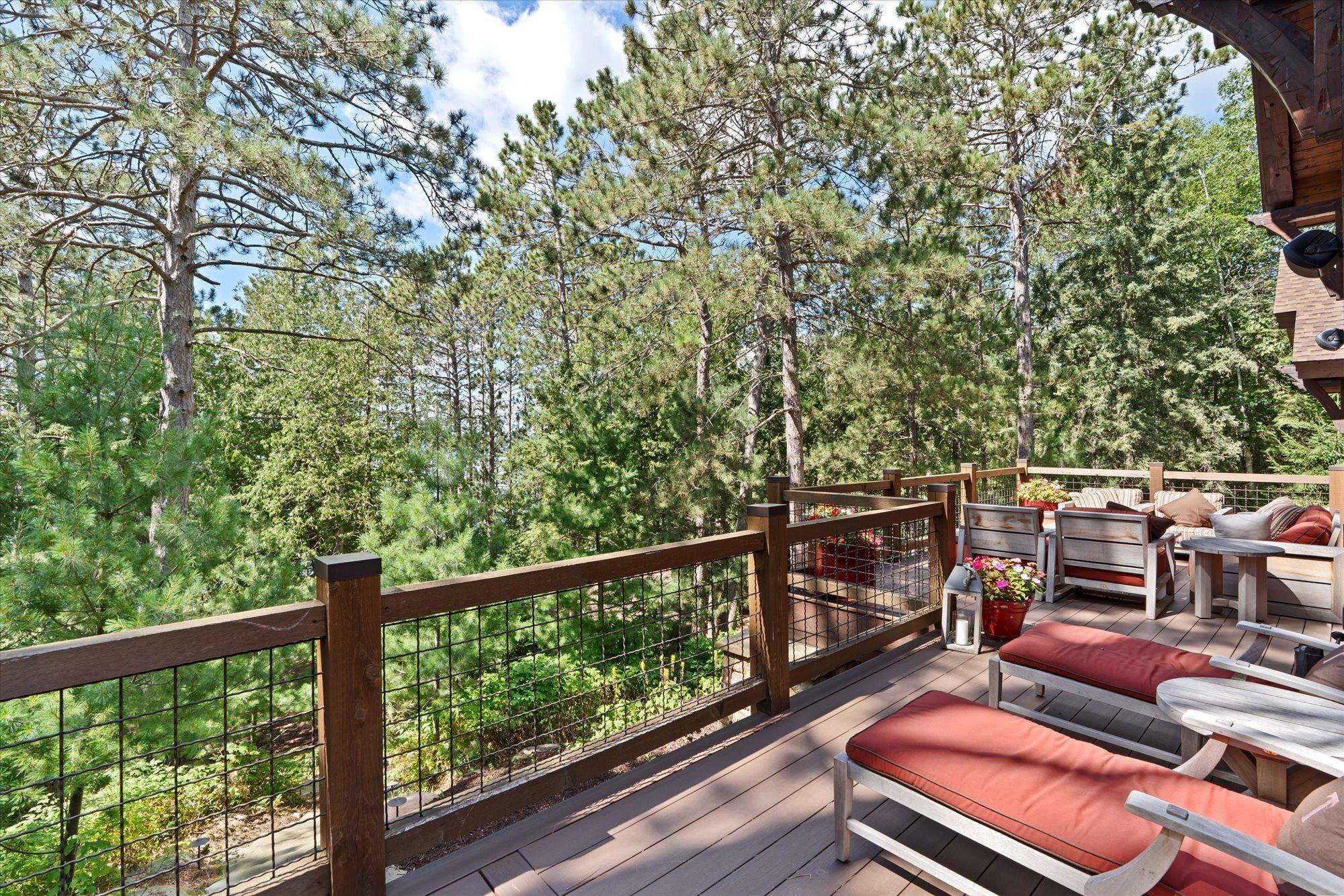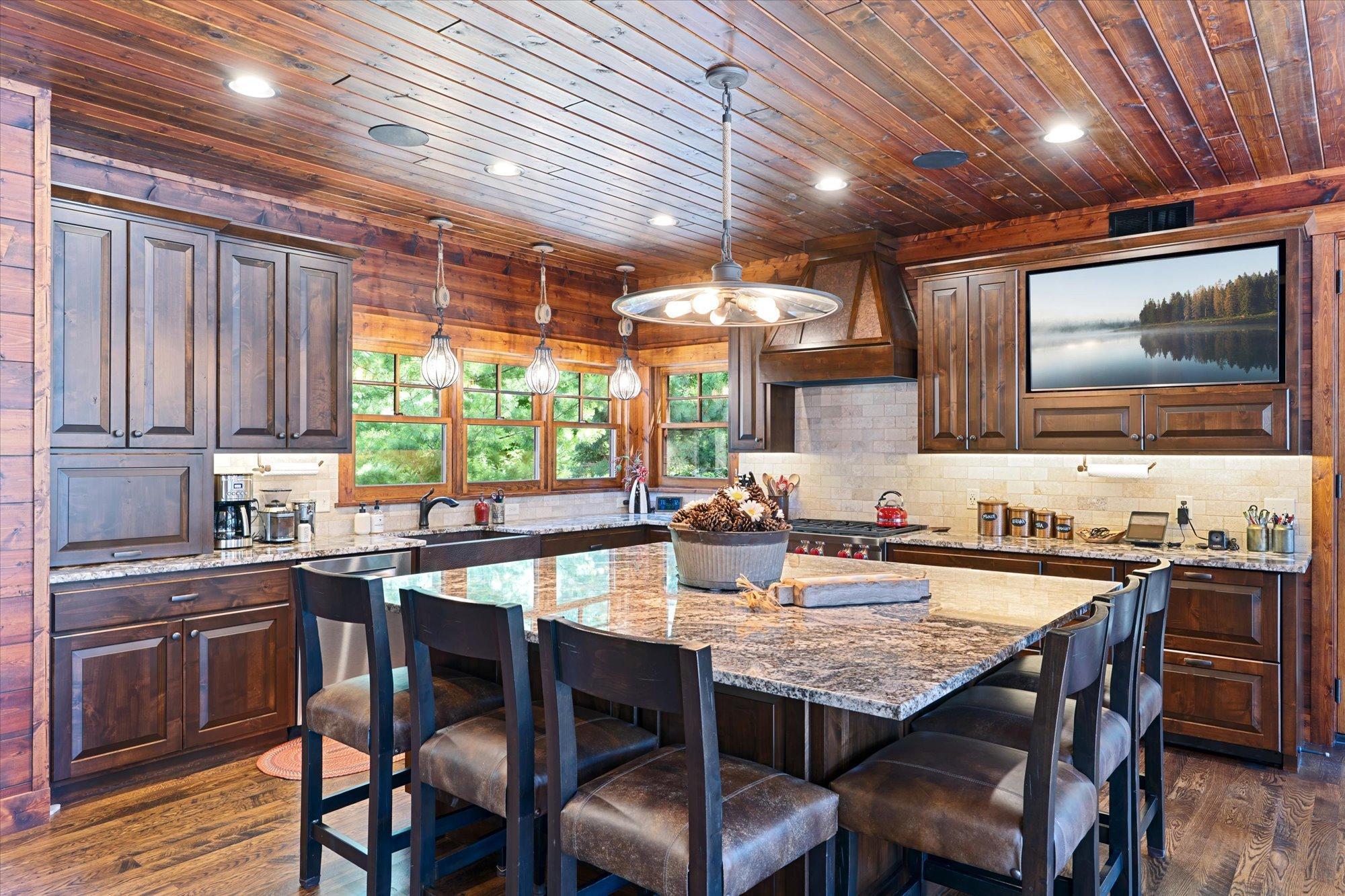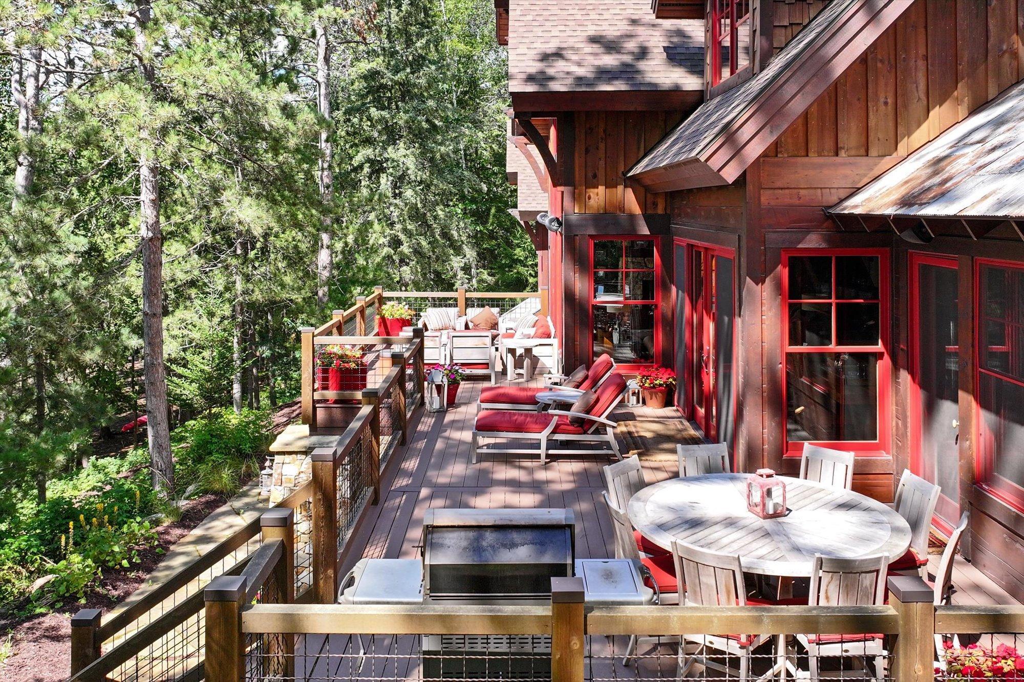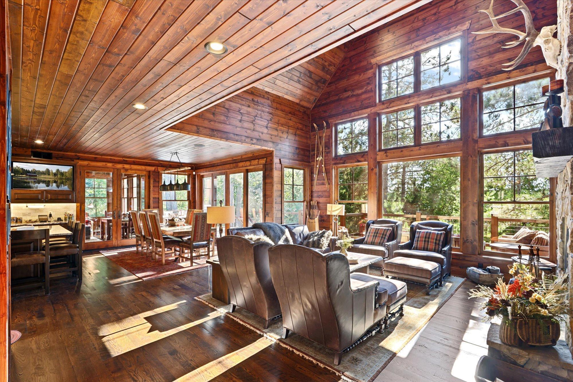Stunning modern Land’s End constructed lodge on the east shore of Thunder Lake with 5 bedrooms (plus a bunkroom), 8 baths, and approximately 6,000 sq. ft. of living space located on a property that is framed by mature pine and cedar trees with 114 feet of shoreline and 1.6 acres of land. Thoughtfully designed as a timeless lodge with all the modern conveniences, this home offers moderate to level elevation to the shoreline and a lakeside beach house complete with bathroom, screen porch, wet bar, storage and efficiency kitchen. Enjoy the day’s activities or sunsets at the beach in this one of a kind amenity with the living area that can be converted into a screen porch or open air space. The main floor of the home features a private primary suite, den/office, open kitchen and living area, four-season porch, lakeside deck, and a dramatic two-story wood-burning fireplace. These features can be used in all seasons for indoor or outdoor living. Upstairs you’ll find a loft, guest bedrooms and baths, plus a sitting area with views of the lake and surrounding forest. A private guest suite above the garage includes its own kitchen, gathering room, bedroom, and bunk space. The walk-out lower level offers a family room with fireplace, lakeside patio access, bar, wine room, guest suites plus a convenient lakeside locker and private bath. Additional amenities include in-floor heat, tile and hardwood floors, extensive landscaping, timeless interior design, ample storage, and a 3-car garage....all this just off Co. Rd. 6 on the crystal-clear waters of Thunder Lake. This property is situated close to the Chippewa National Forest and Land O' Lakes State Forest to enjoy towering pines, fish-filled lakes, and miles of hiking and ATV trails nearby. It is located between Remer and Outing, so you can go shopping, golfing, and more. This serene and picturesque property is being sold furnished (with an exclusion list) so it will be ready for you to start making incredible memories of your time on Thunder Lake, taking in spectacular sunsets at the dock, going on excellent fishing adventures, and boating to a local restaurant for dinner. There are so many reasons to come and see this one. Schedule your private shoreline tour this weekend and experience the charm and tranquility of this remarkable property firsthand.