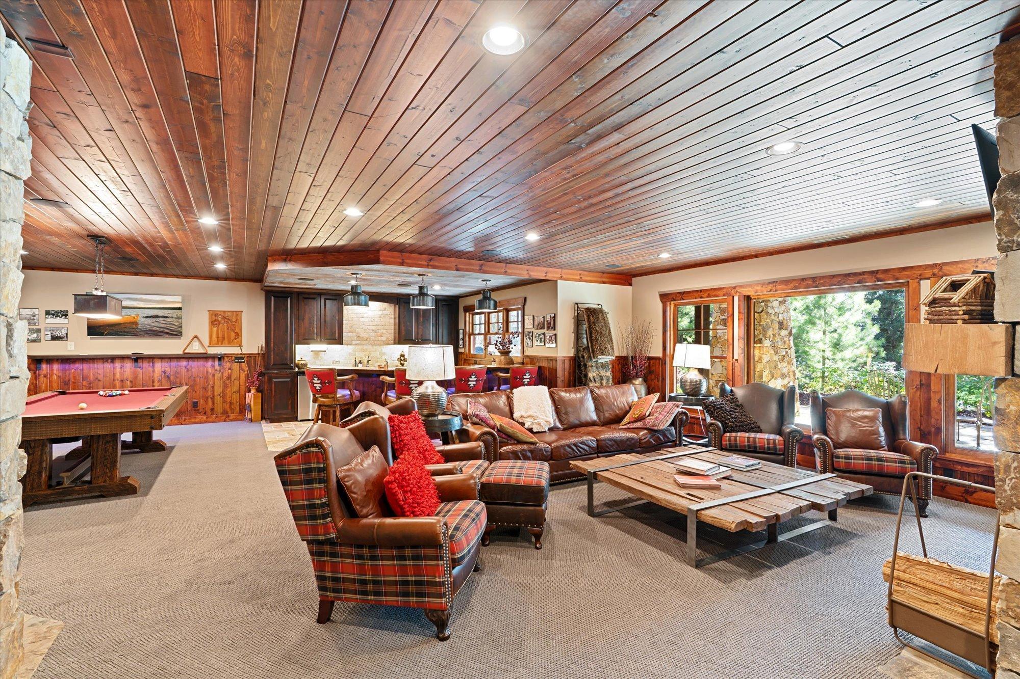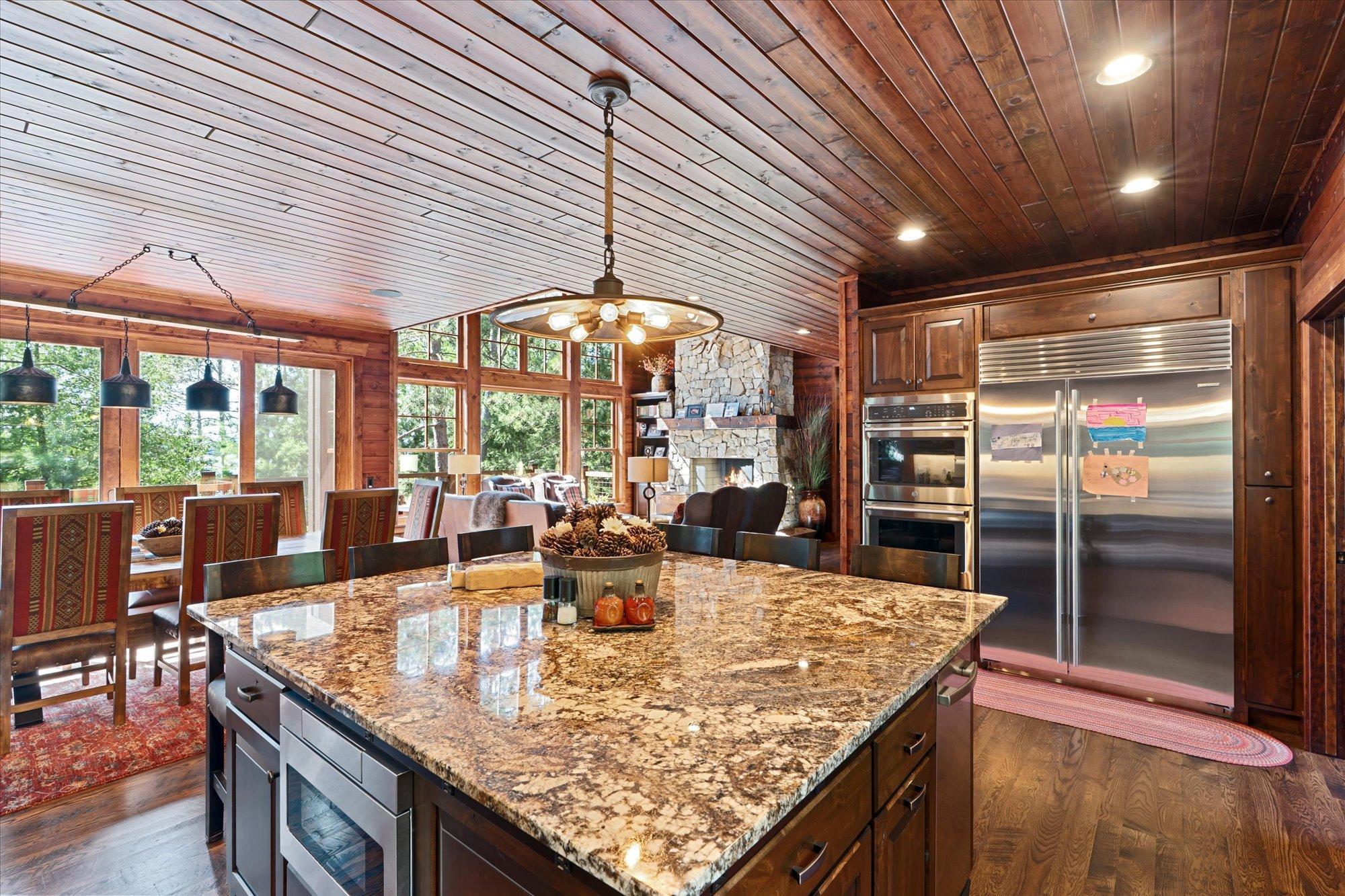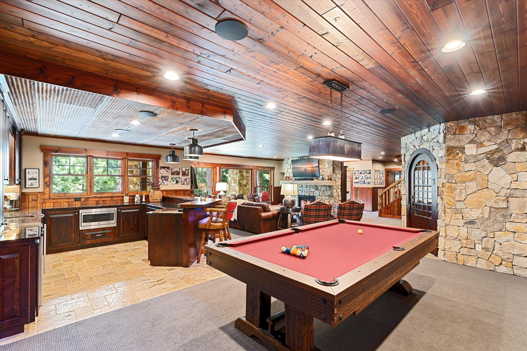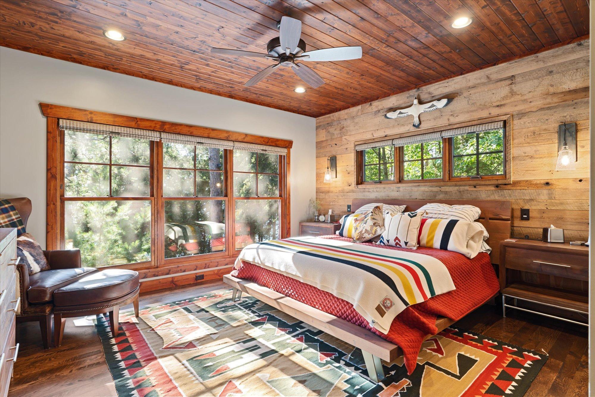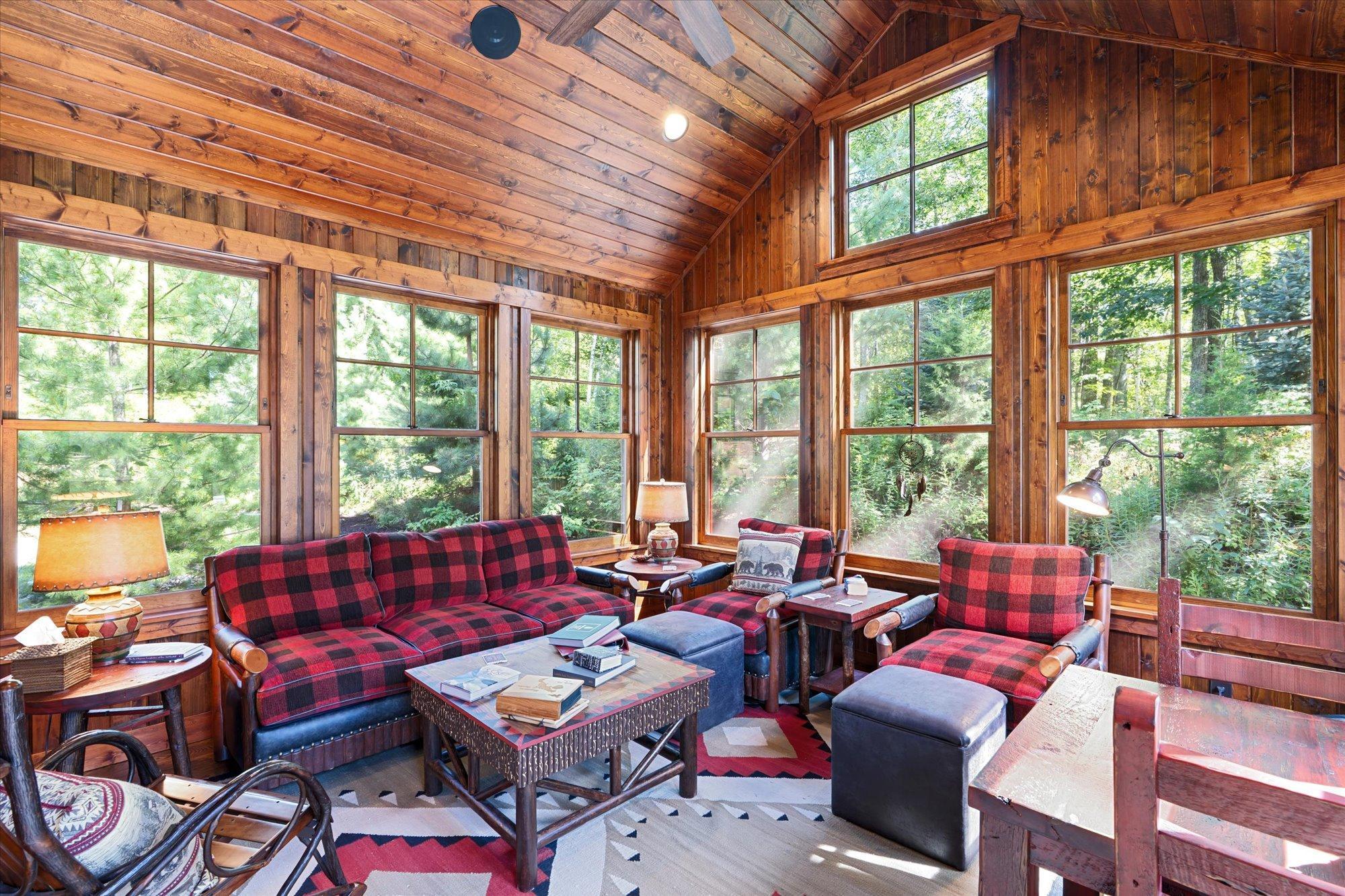 Stunning modern Land’s End constructed lodge on the east shore of Thunder Lake with 5 bedrooms (plus a bunkroom), 8 baths, and approximately 6,000 sq. ft. of living space located on a property that is framed by mature pine and cedar trees with 114 feet of shoreline and 1.6 acres of land. Thoughtfully designed as a timeless lodge with all the modern conveniences, this home offers moderate to level elevation to the shoreline and a lakeside beach house complete with bathroom, screen porch, wet bar, storage and efficiency kitchen. Enjoy the day’s activities or sunsets at the beach in this one of a kind amenity with the living area that can be converted into a screen porch or open air space. The main floor of the home features a private primary suite, den/office, open kitchen and living area, four-season porch, lakeside deck, and a dramatic two-story wood-burning fireplace. These features can be used in all seasons for indoor or outdoor living. Upstairs you’ll find a loft, guest bedrooms and baths, plus a sitting area with views of the lake and surrounding forest. A private guest suite above the garage includes its own kitchen, gathering room, bedroom, and bunk space. The walk-out lower level offers a family room with fireplace, lakeside patio access, bar, wine room, guest suites plus a convenient lakeside locker and private bath. Additional amenities include in-floor heat, tile and hardwood floors, extensive landscaping, timeless interior design, ample storage, and a 3-car garage....all this just off Co. Rd. 6 on the crystal-clear waters of Thunder Lake. This property is situated close to the Chippewa National Forest and Land O' Lakes State Forest to enjoy towering pines, fish-filled lakes, and miles of hiking and ATV trails nearby. It is located between Remer and Outing, so you can go shopping, golfing, and more. This serene and picturesque property is being sold furnished (with an exclusion list) so it will be ready for you to start making incredible memories of your time on Thunder Lake, taking in spectacular sunsets at the dock, going on excellent fishing adventures, and boating to a local restaurant for dinner. There are so many reasons to come and see this one. Schedule your private shoreline tour this weekend and experience the charm and tranquility of this remarkable property firsthand.