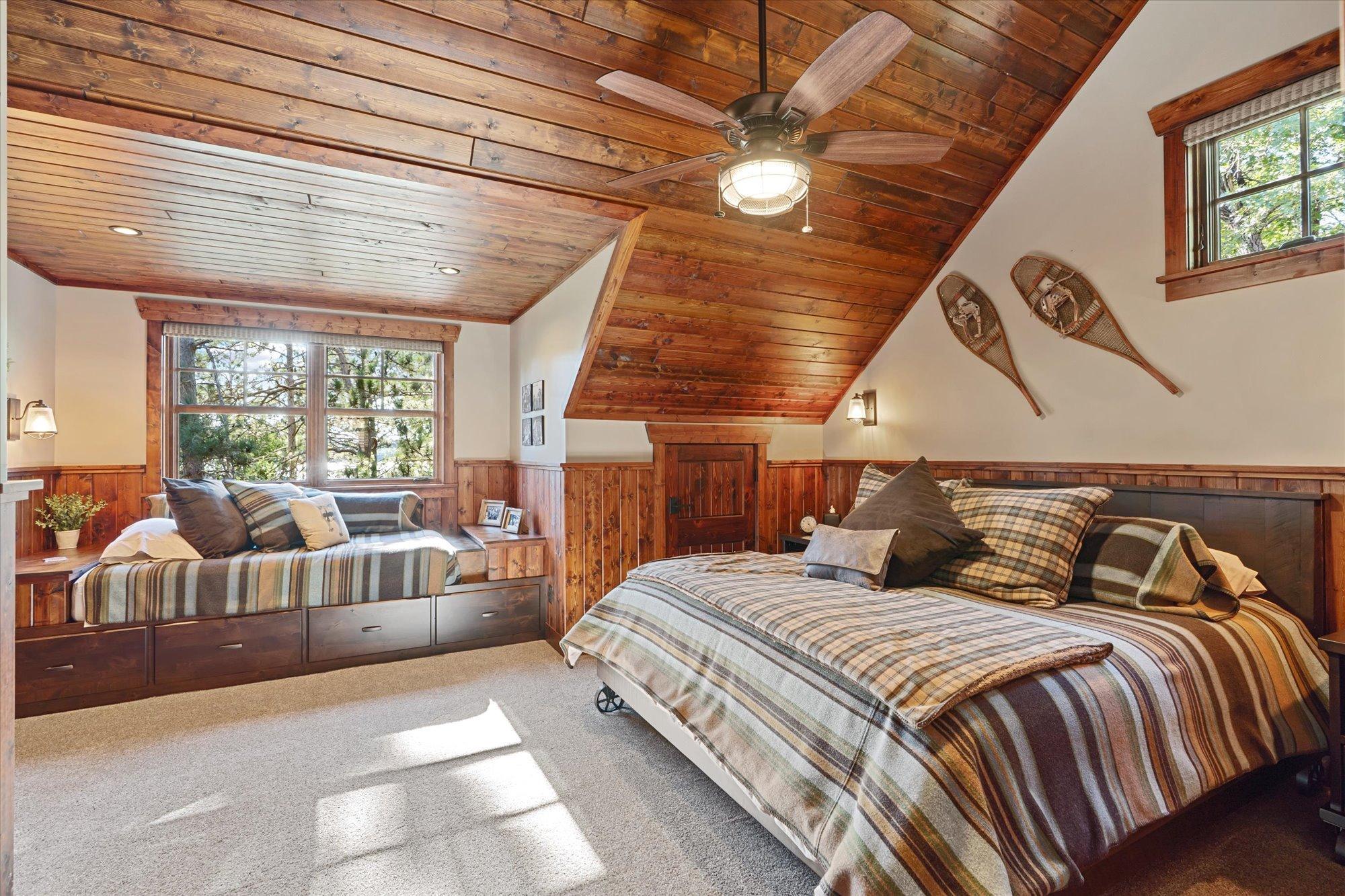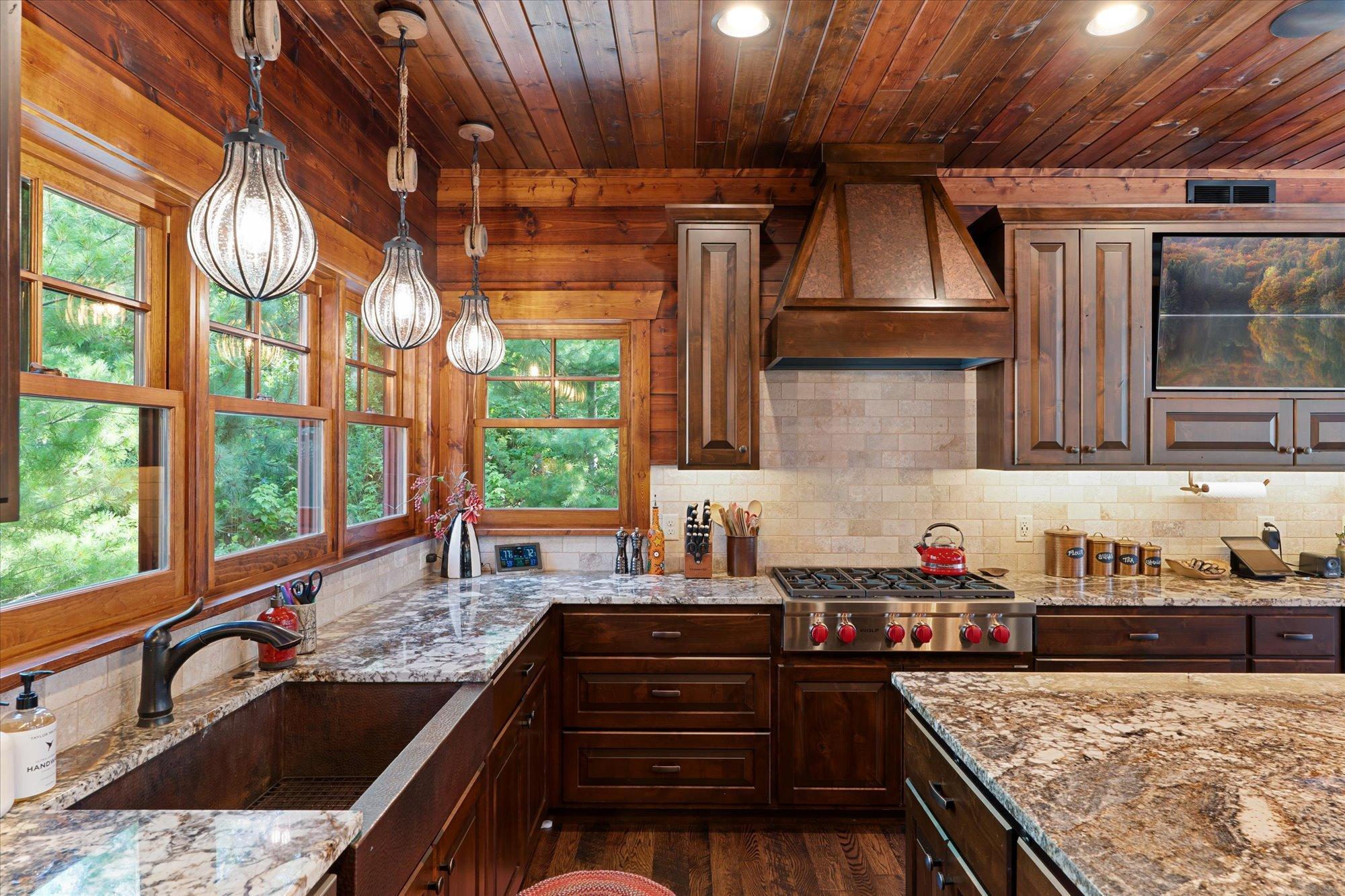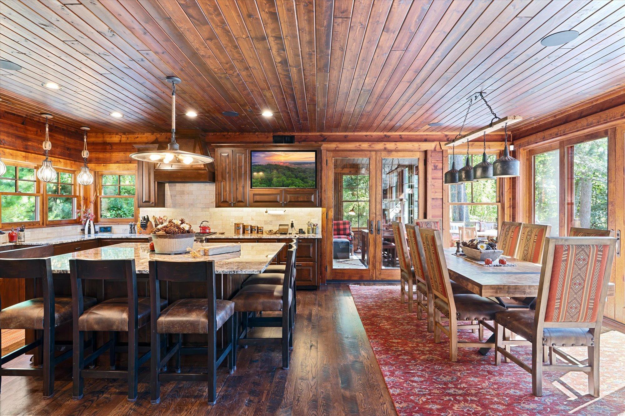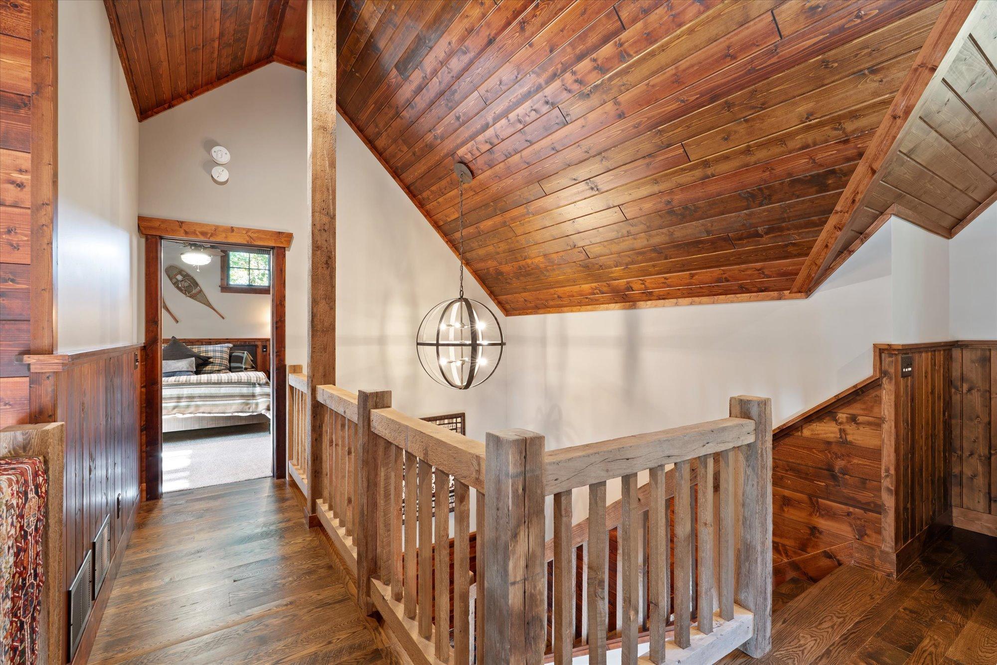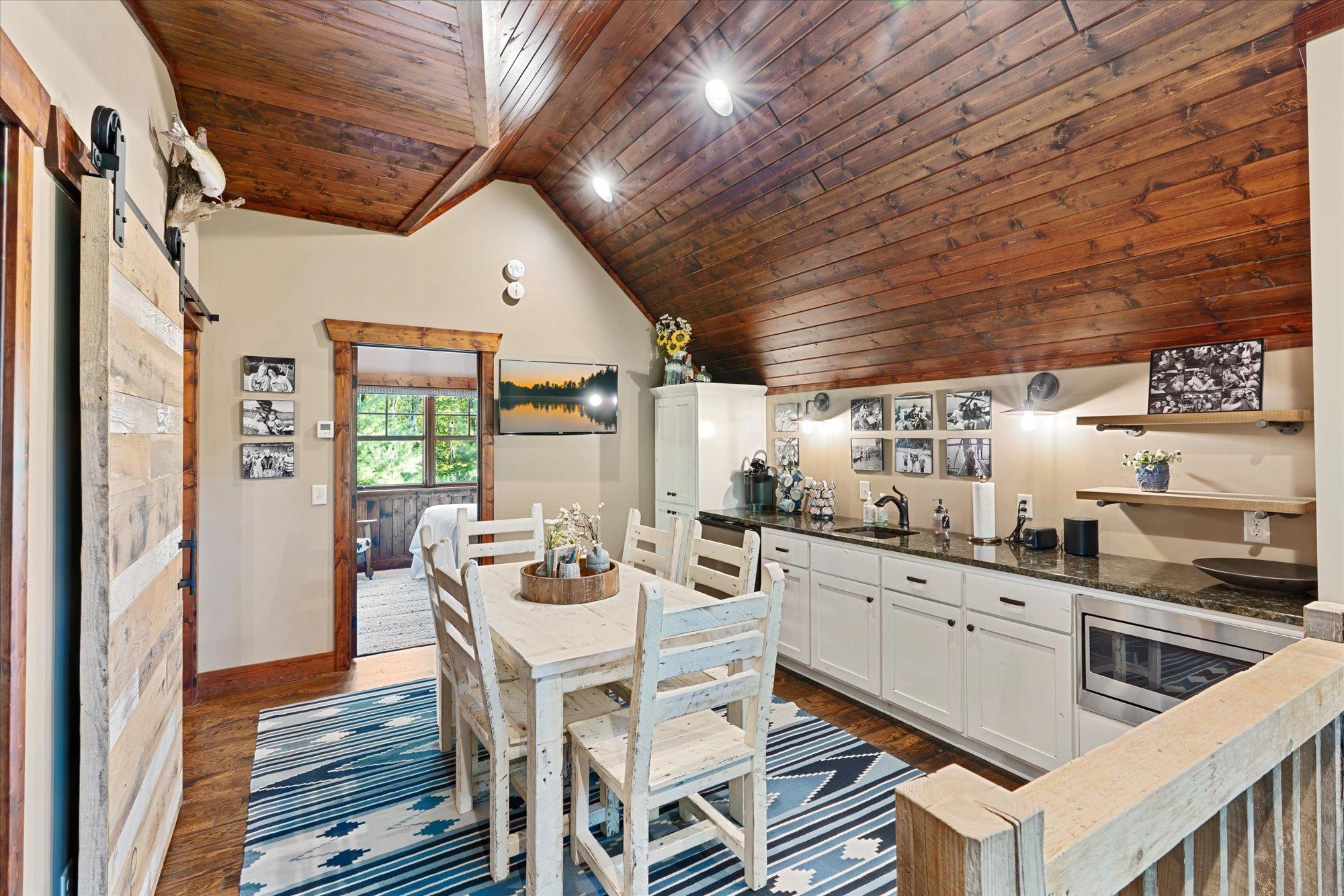 Stunning modern Land’s End constructed lodge on the east shore of Thunder Lake with 5 bedrooms (plus a bunkroom), 8 baths, and approximately 6,000 sq. ft. of living space located on a property that is framed by mature pine and cedar trees with 114 feet of shoreline and 1.6 acres of land. Thoughtfully designed as a timeless lodge with all the modern conveniences, this home offers moderate to level elevation to the shoreline and a lakeside beach house complete with bathroom, screen porch, wet bar, storage and efficiency kitchen. Enjoy the day’s activities or sunsets at the beach in this one of a kind amenity with the living area that can be converted into a screen porch or open air space. The main floor of the home features a private primary suite, den/office, open kitchen and living area, four-season porch, lakeside deck, and a dramatic two-story wood-burning fireplace. These features can be used in all seasons for indoor or outdoor living. Upstairs you’ll find a loft, guest bedrooms and baths, plus a sitting area with views of the lake and surrounding forest. A private guest suite above the garage includes its own kitchen, gathering room, bedroom, and bunk space. The walk-out lower level offers a family room with fireplace, lakeside patio access, bar, wine room, guest suites plus a convenient lakeside locker and private bath. Additional amenities include in-floor heat, tile and hardwood floors, extensive landscaping, timeless interior design, ample storage, and a 3-car garage....all this just off Co. Rd. 6 on the crystal-clear waters of Thunder Lake. This property is situated close to the Chippewa National Forest and Land O' Lakes State Forest to enjoy towering pines, fish-filled lakes, and miles of hiking and ATV trails nearby. It is located between Remer and Outing, so you can go shopping, golfing, and more. This serene and picturesque property is being sold furnished (with an exclusion list) so it will be ready for you to start making incredible memories of your time on Thunder Lake, taking in spectacular sunsets at the dock, going on excellent fishing adventures, and boating to a local restaurant for dinner. There are so many reasons to come and see this one. Schedule your private shoreline tour this weekend and experience the charm and tranquility of this remarkable property firsthand.