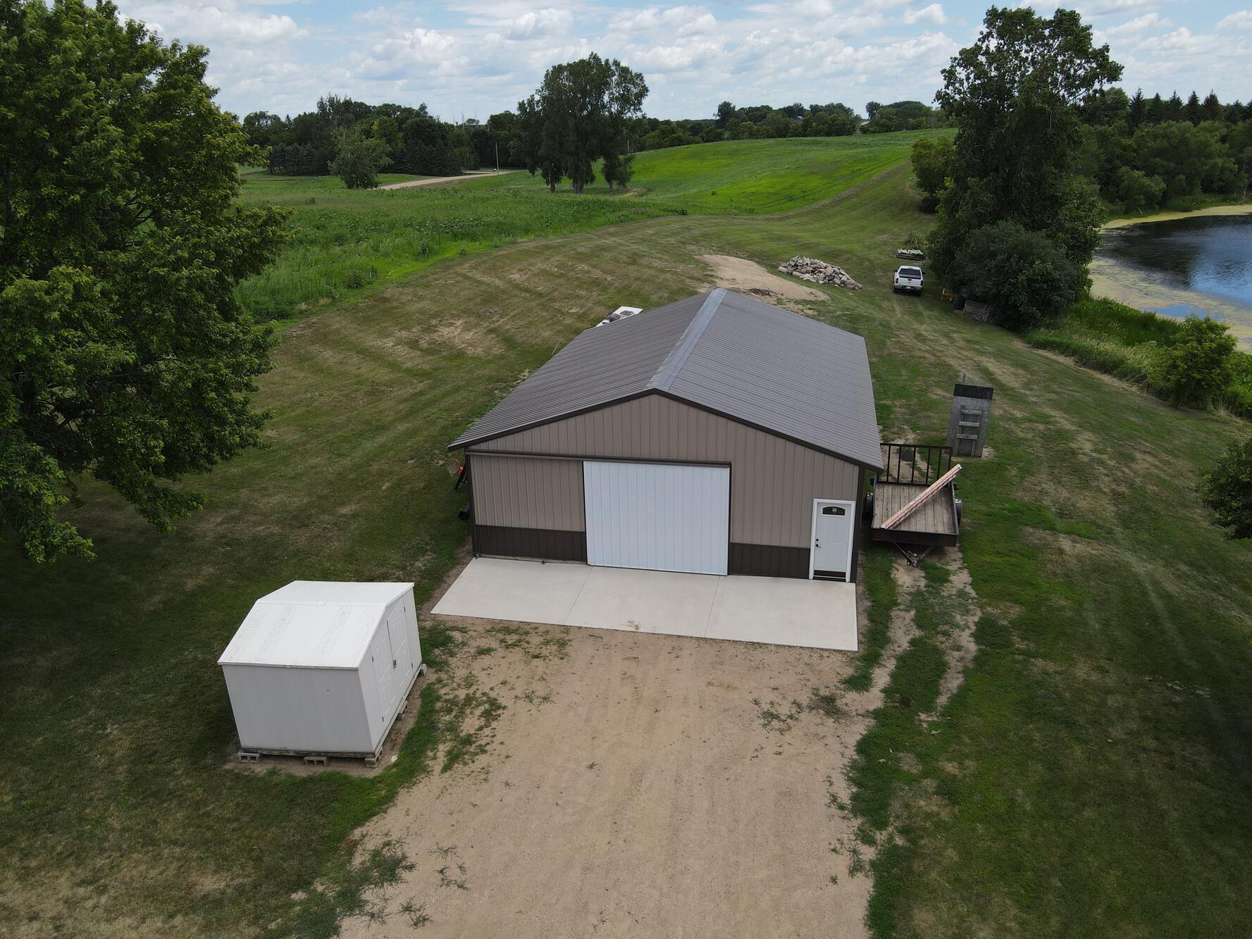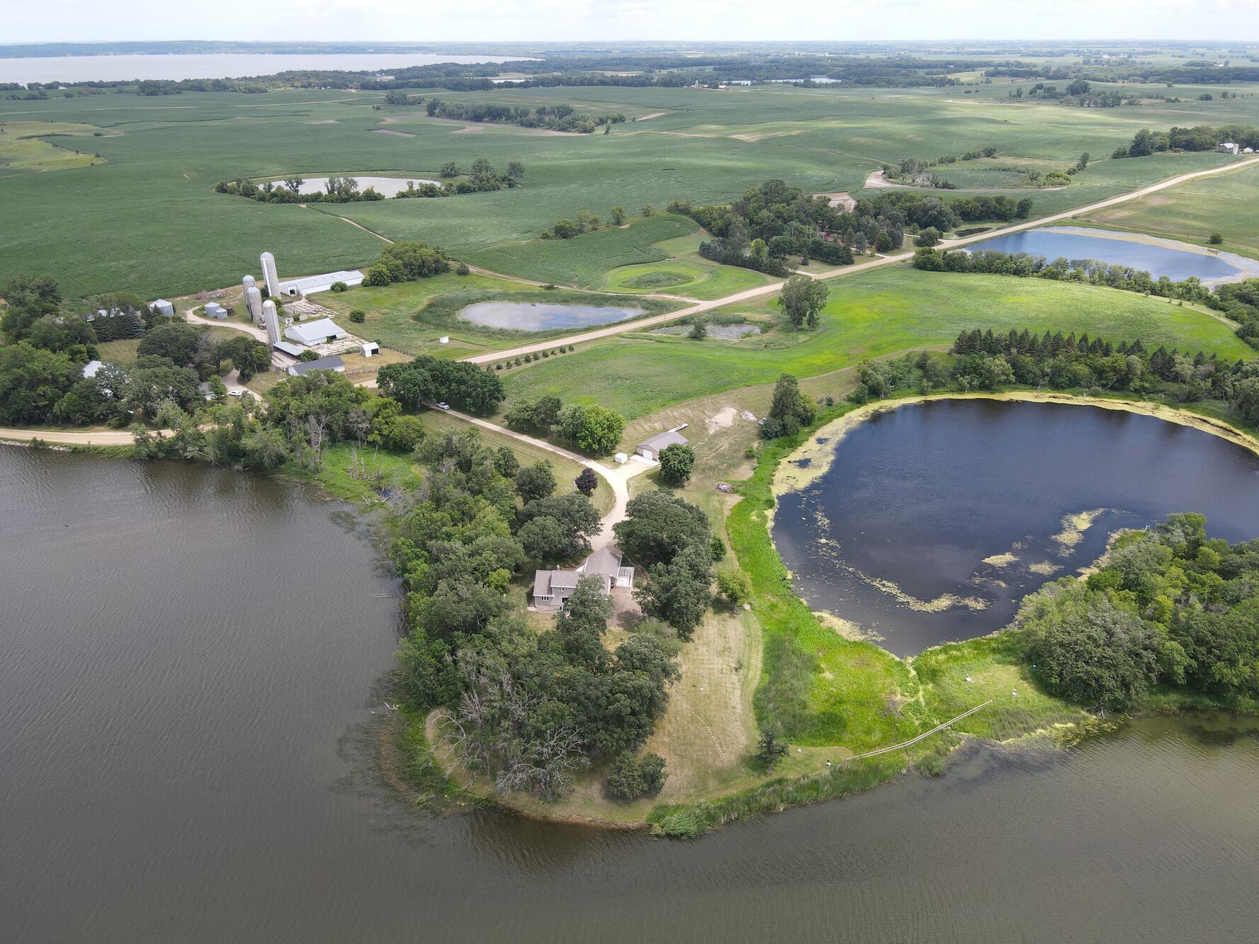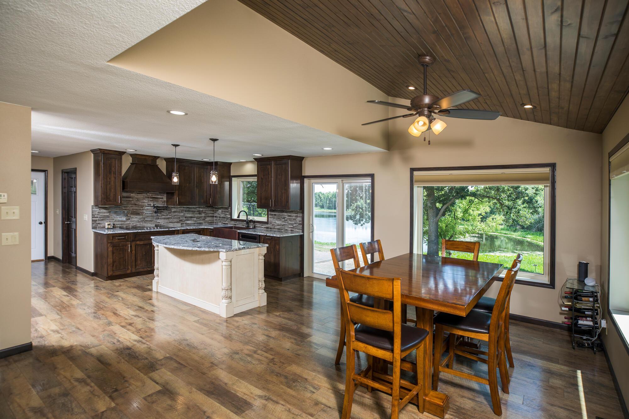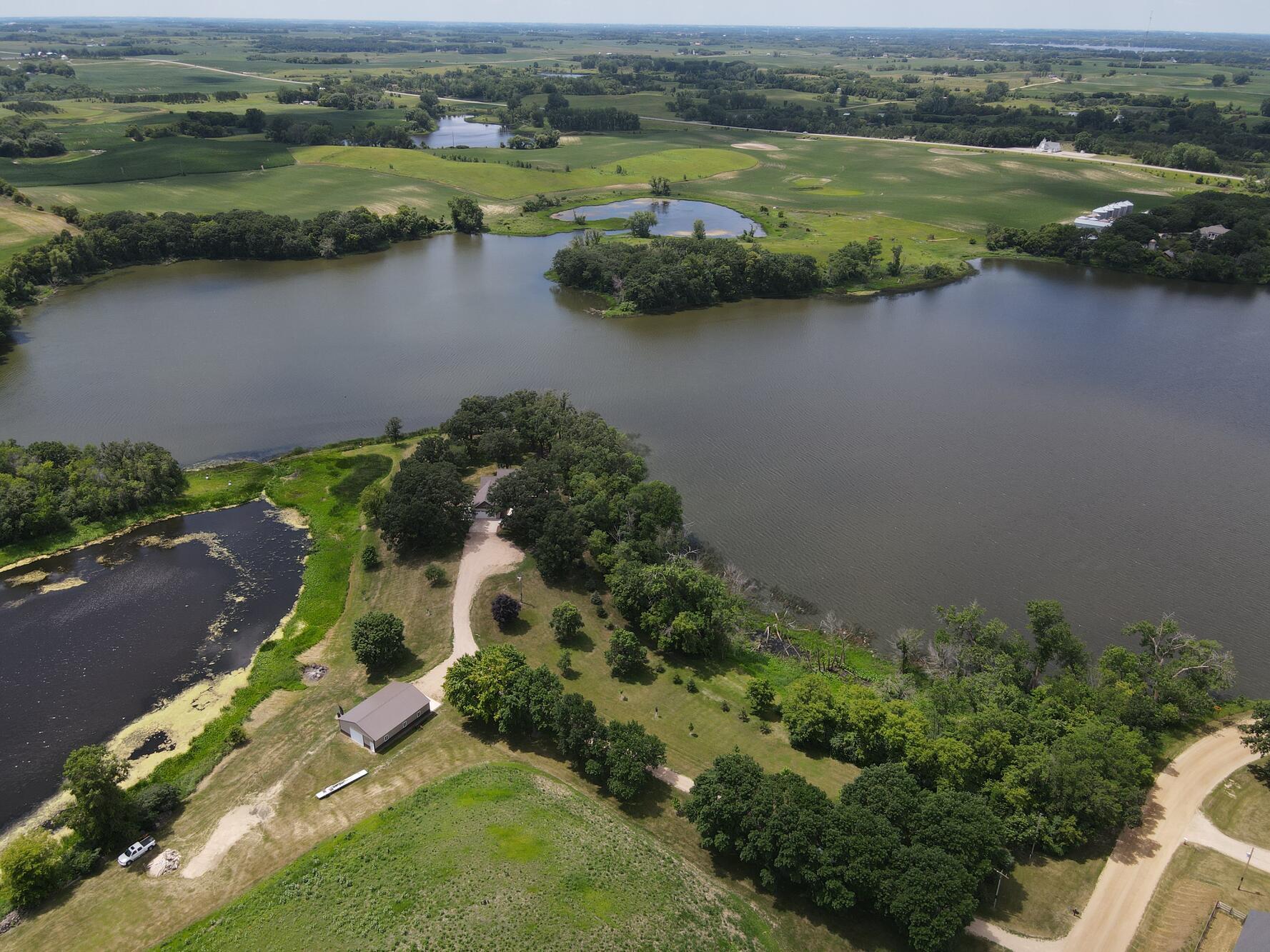 Pristine lake property on acreage now available! This 4 bed, 4 bath home has been remodeled with high end finishes and is a must see inside and out. Main level showcases an open floor plan with gorgeous luxury vinyl wide plank flooring, new plush carpets, gourmet kitchen with custom soft close cabinets, stainless steel appliances, granite countertops, mosaic tile backsplash, hand hammered copper sink, center island, main level master bedroom and stunning panoramic views of land, water, and wildlife through new oversized picture windows. Upper level offers 2 additional spacious bedrooms with ample closet space. Lower level walk-out offers a massive family room with 2 additional storage rooms that could be converted into bedrooms. Location is hard to beat: breathtaking panoramic views of your acreage, mature trees, huge backyard w lush manicured lawn and water wrapped around you on 3 sides. Large pole building on concrete slab. Too many updates and features to list, this is a must see!