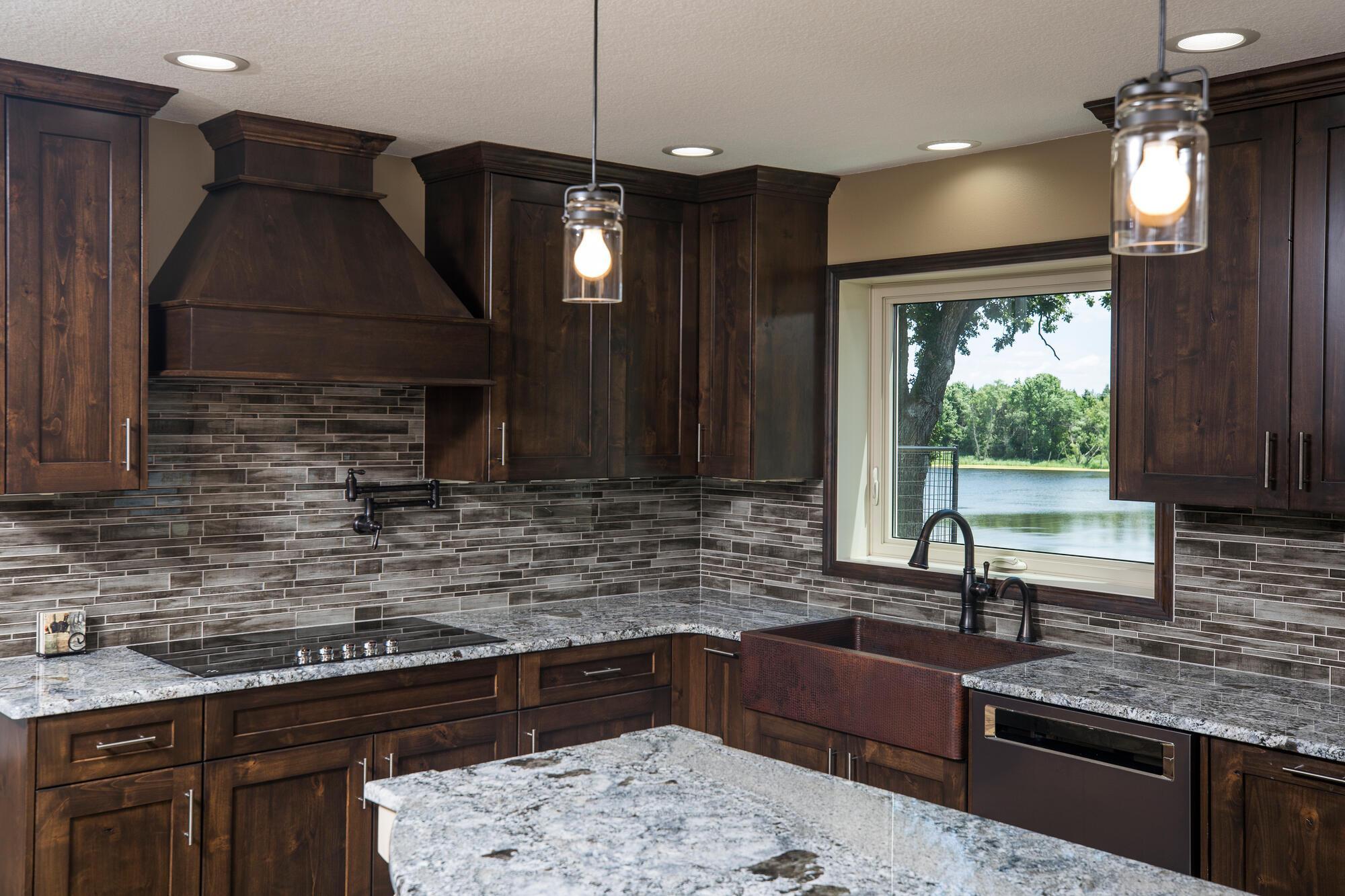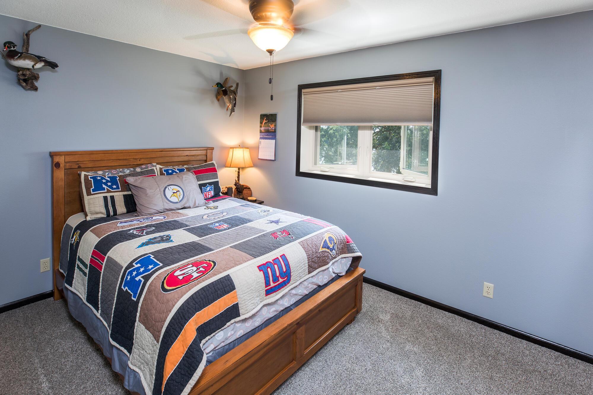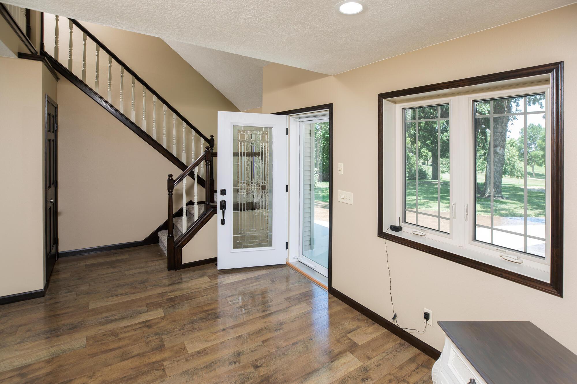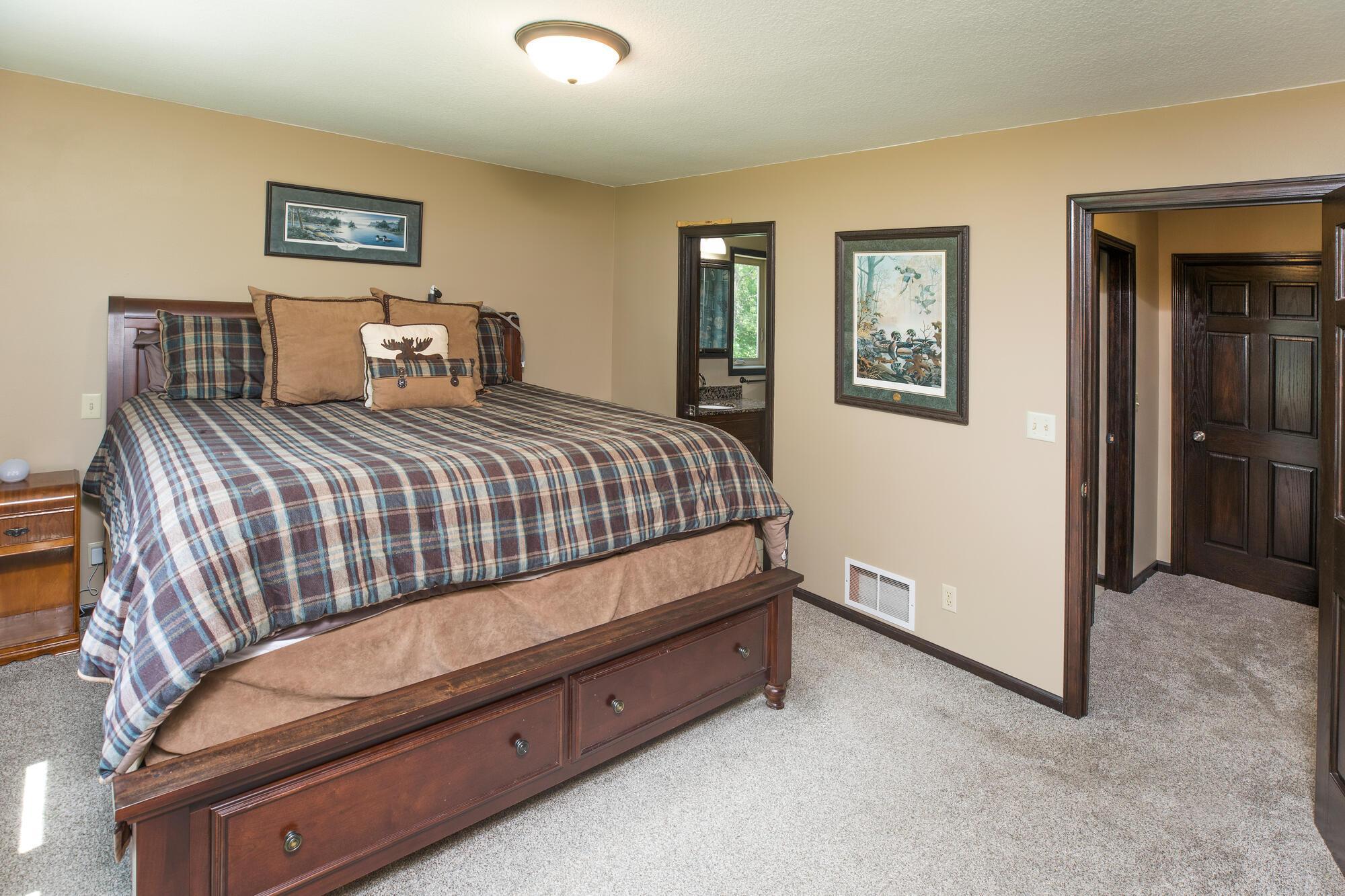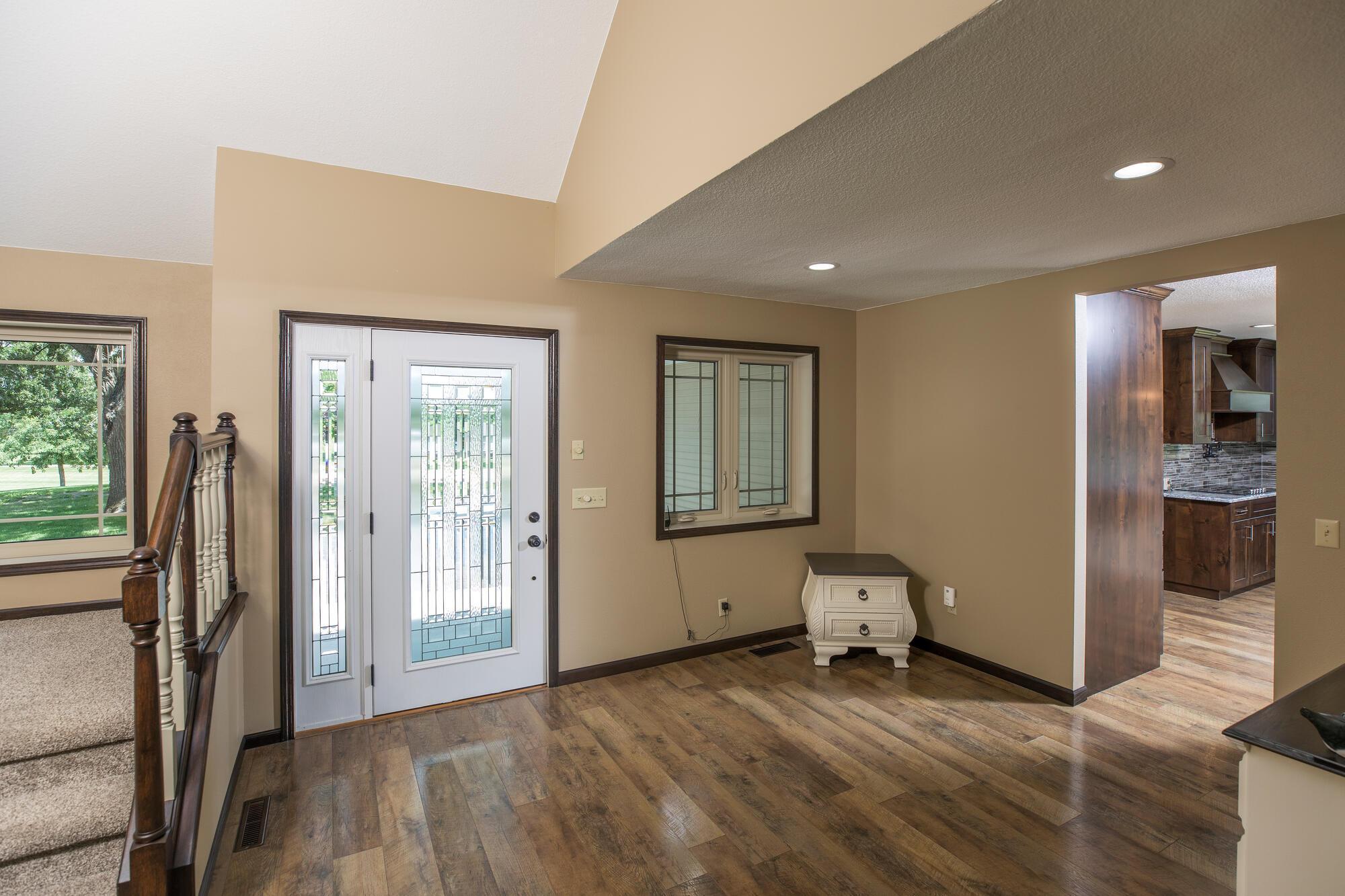 Pristine lake property on acreage now available! This 4 bed, 4 bath home has been remodeled with high end finishes and is a must see inside and out. Main level showcases an open floor plan with gorgeous luxury vinyl wide plank flooring, new plush carpets, gourmet kitchen with custom soft close cabinets, stainless steel appliances, granite countertops, mosaic tile backsplash, hand hammered copper sink, center island, main level master bedroom and stunning panoramic views of land, water, and wildlife through new oversized picture windows. Upper level offers 2 additional spacious bedrooms with ample closet space. Lower level walk-out offers a massive family room with 2 additional storage rooms that could be converted into bedrooms. Location is hard to beat: breathtaking panoramic views of your acreage, mature trees, huge backyard w lush manicured lawn and water wrapped around you on 3 sides. Large pole building on concrete slab. Too many updates and features to list, this is a must see!
