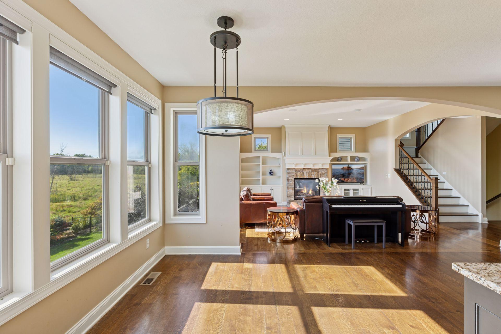 Don't miss the virtual tour video. This property offers one of the best lots in the Rapp Farm community—backing directly to 600+ acres of protected nature with trails, grasslands, and two lakes. Perfectly located on a quiet cul-de-sac, the exterior is beautifully finished with Hardieboard siding, stone accents, a concrete driveway, and a paver walkway. The backyard is a true showpiece: expansive paver patios, a built-in fire pit, a bubbling water fountain, a dramatic fire bowl, and a full outdoor kitchen with grill stations, sink, and cold storage. An elevated composite deck, accompanied by beautiful night lighting and a screened-in porch, completes the outdoor retreat. Inside, the main level highlights craftsmanship with hardwood floors, 8-foot doors, arched partition walls, and detailed trim. The family room offers a wall of windows overlooking the preserve along with a gas fireplace and built-ins. The kitchen features granite countertops, a large center island, stainless steel appliances with gas cooktop, and a walk-in pantry. A formal dining room, office with beautiful built-ins, a flex room off the kitchen, a mudroom, and a half bath round out the level. Upstairs, the owner’s suite includes a tray ceiling, majestic views, and a spa-like bath with dual vanities, soaking tub, tiled walk-in shower, heated floors, and a large walk-in closet. Three additional bedrooms and the laundry room complete this level—two bedrooms share a Jack and Jill bath, while the fourth has its own private bath. The lower level is built for entertaining lots of family and friends with a full bar, family room with fireplace, fifth bedroom, full bath, and an exercise room. Sliding glass doors lead directly to the stunning backyard. It's a WOW! Assn neighborhood pool, community room, courts, and playground.
