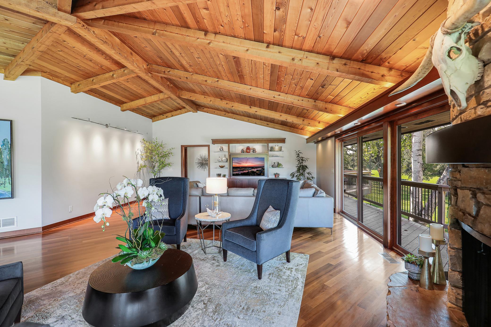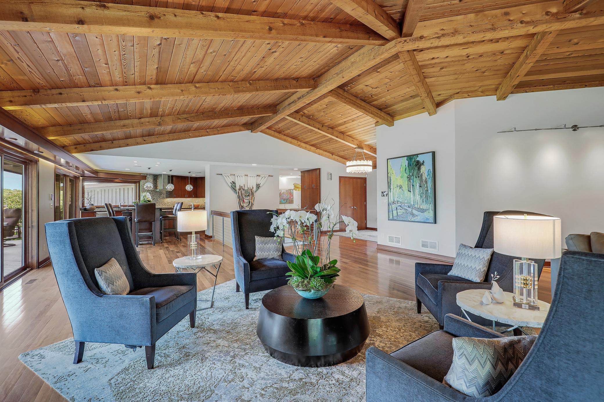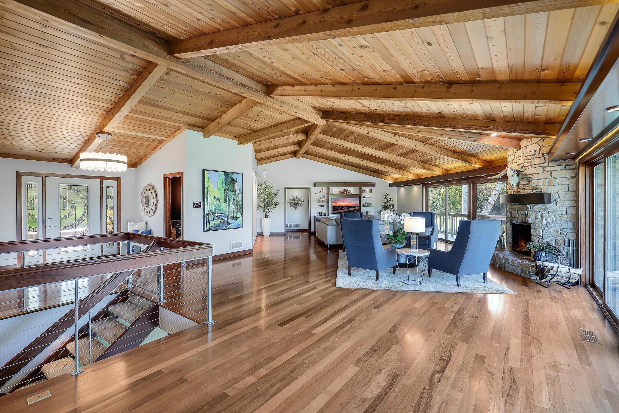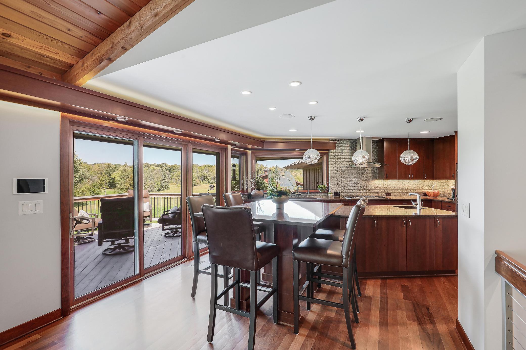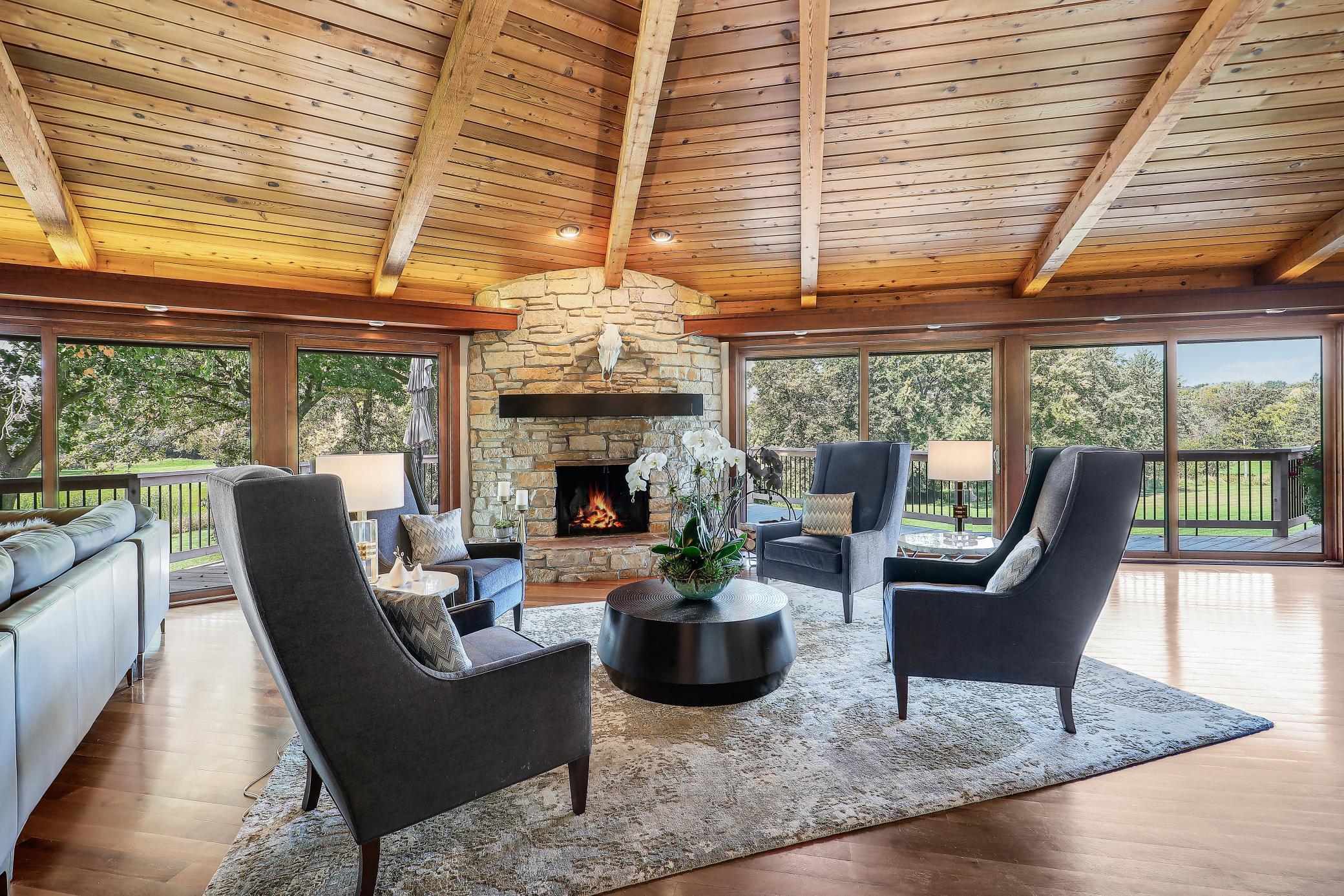 Sprawling 4 bed, 5 bath rambler with 4,544 SF, fully renovated down to the studs in 2011 with high-end finishes throughout. Vaulted Great Room with open layout and walls of windows showcasing sweeping views of 8+ beautiful acres. Savant whole-home automation system with integrated music, cameras, and TVs.