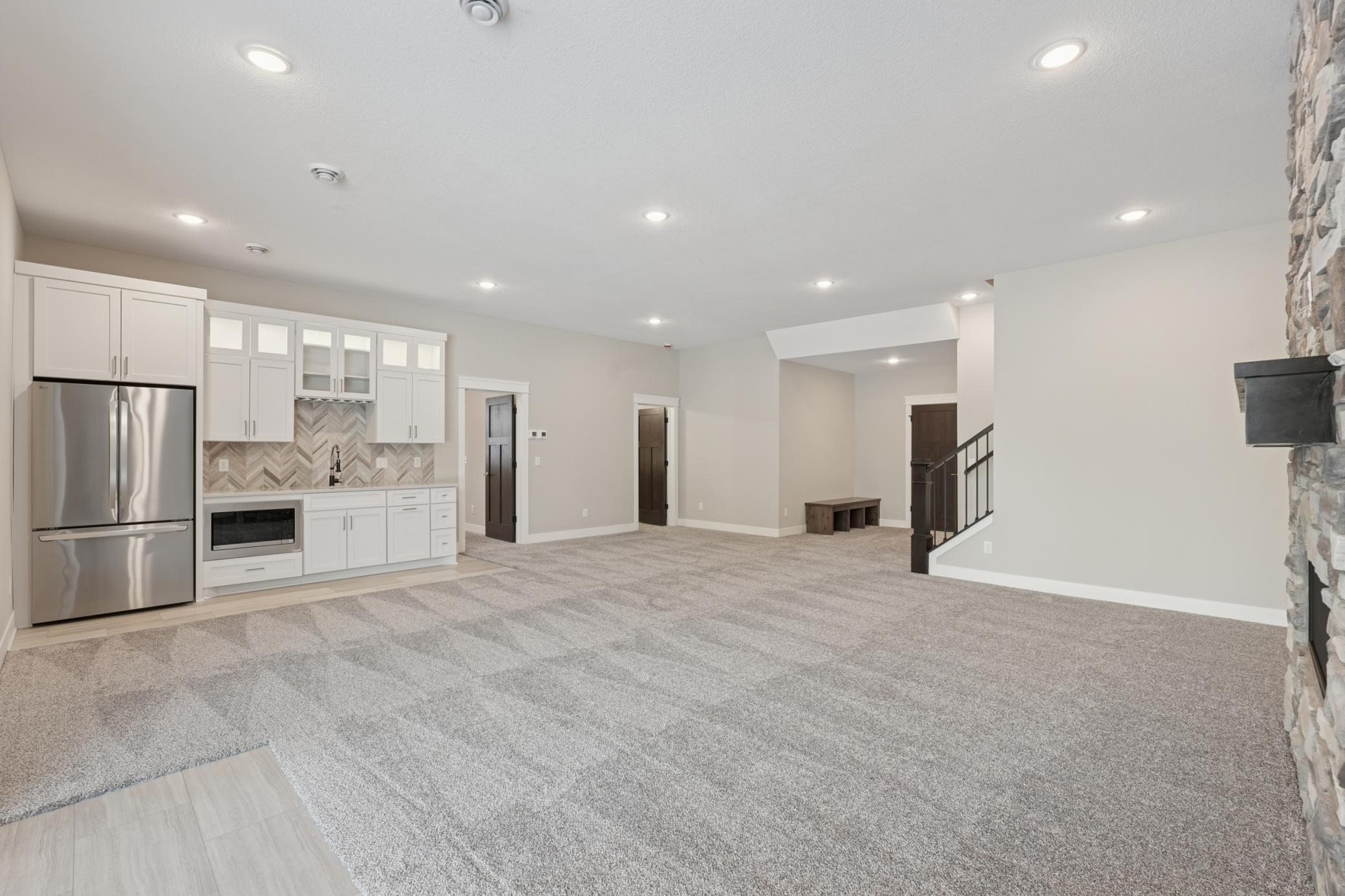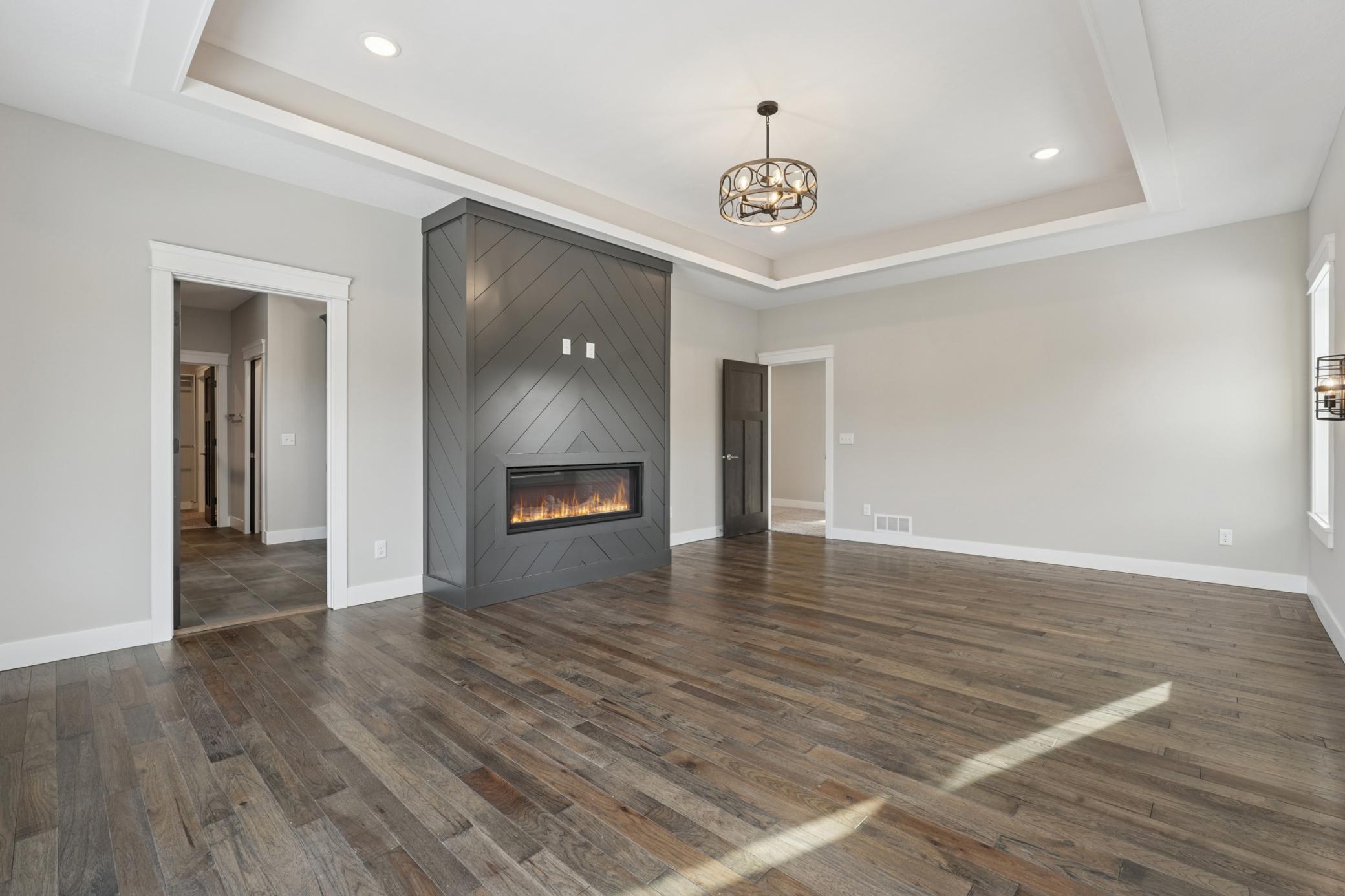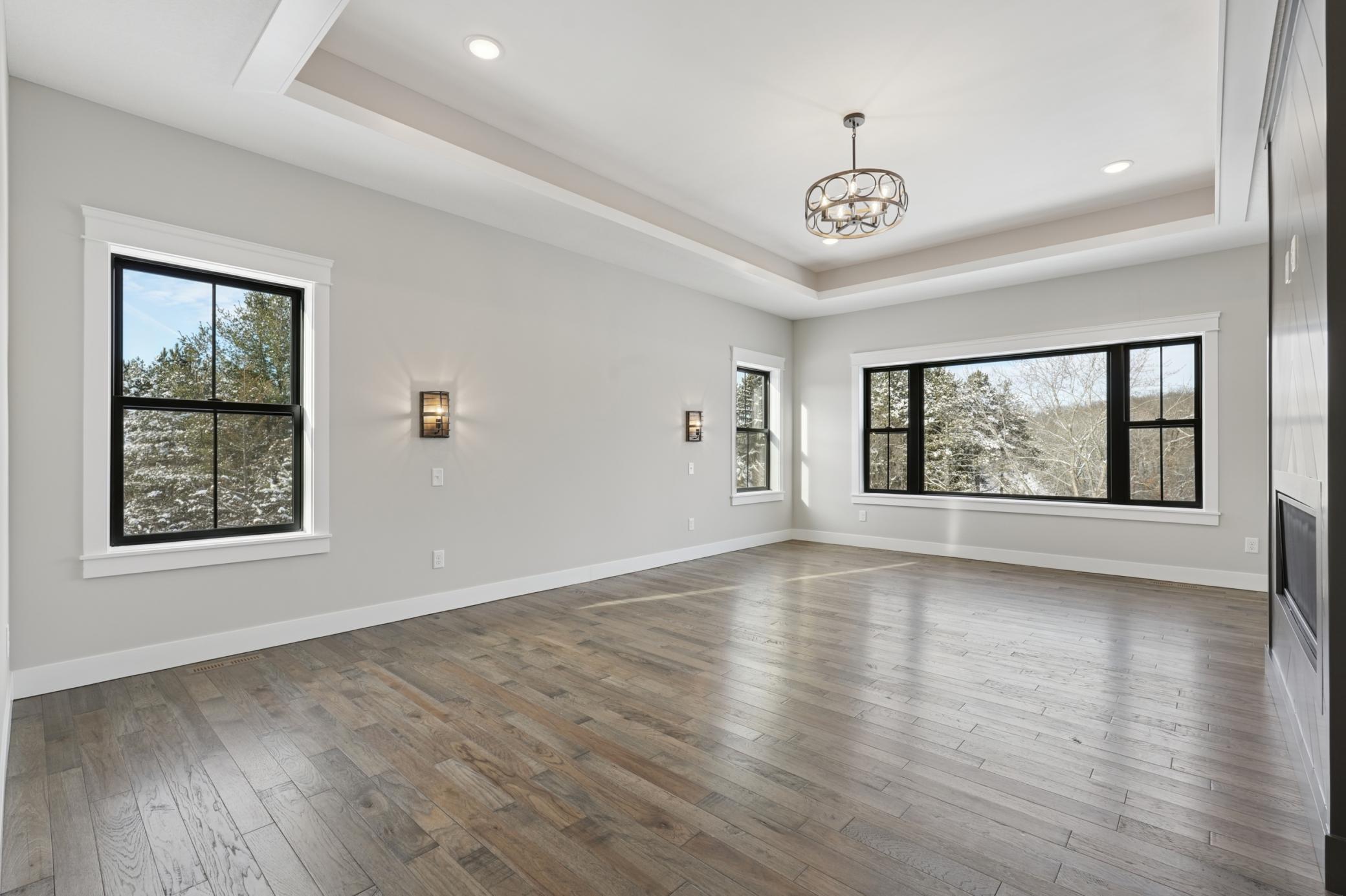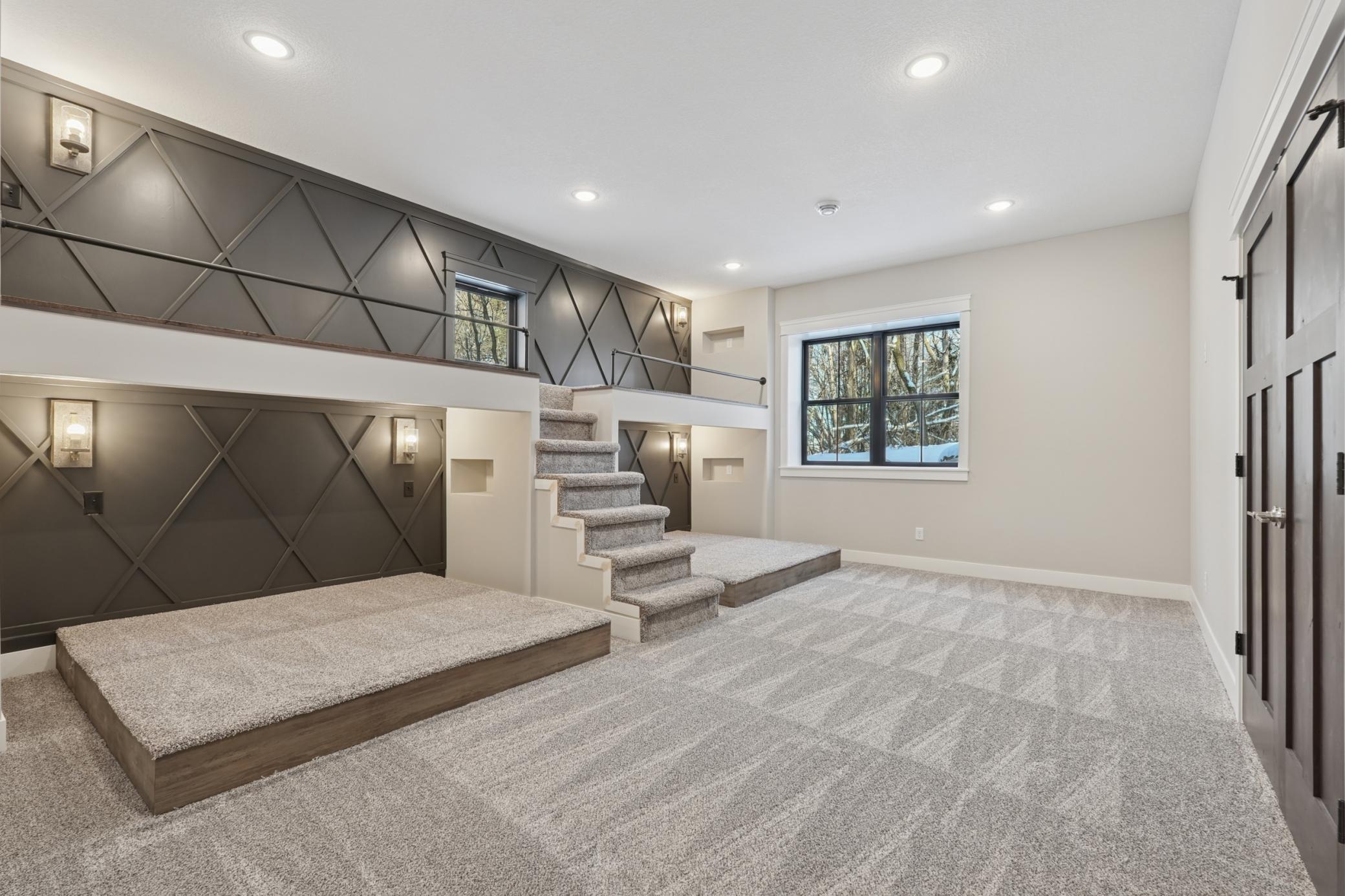 Welcome to your dream home nestled on 2.47 wooded acres located in the Hudson School District! This exquisite multi-level home offers comfort and luxury at every turn. Step inside to find a spacious living area featuring 4 bedrooms, 4 bathrooms and 1,852 finished sq ft on the main level. The kitchen is a chef's dream with the large island, quartz countertops, stainless steel appliances, soft close cabinetry, lots of cabinet space and a spacious pantry. The home features in floor heat in the basement, garage and primary bath. You will love the primary suite, a true retreat that promises luxury and relaxation. It features his and her closets, double vanity, soaking tub and a large walk-in tiled shower to provide a spa-like experience daily. The living room showcases a stunning, cozy fireplace with ten-foot ceilings. You will love the dream basement for your family and guests with a sport court, wine closet, wet bar, theater setup, custom bunk room. Concrete driveway and landscape package included. Enjoy nature and tranquility of wildlife in your own backyard.