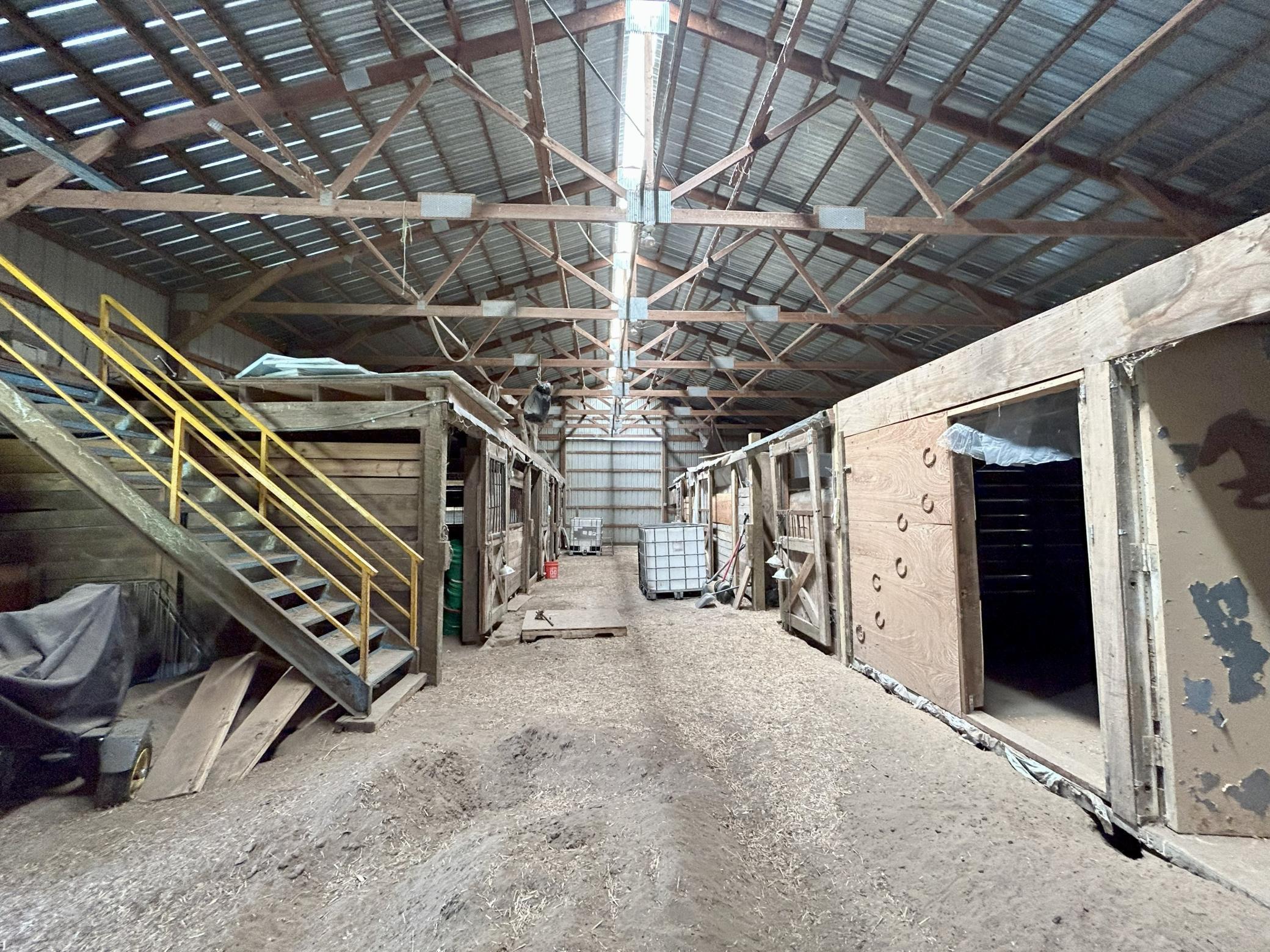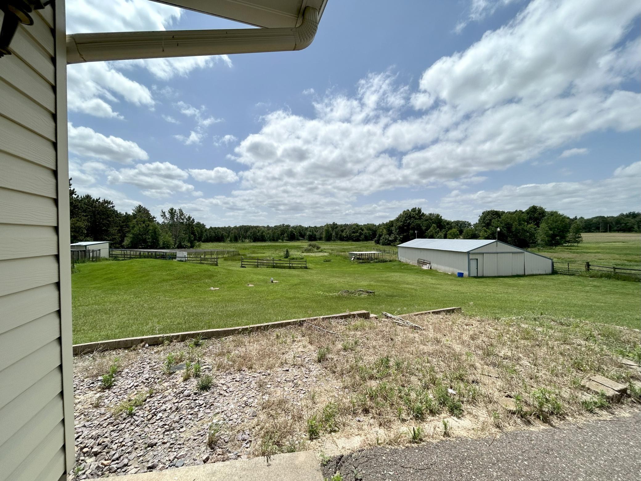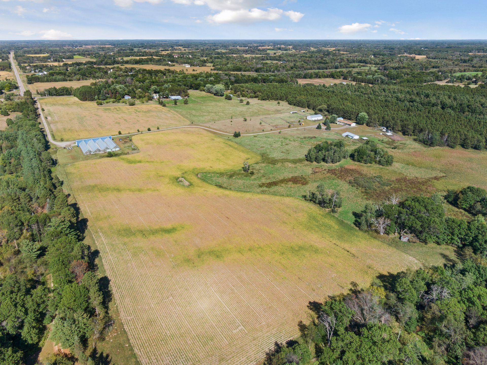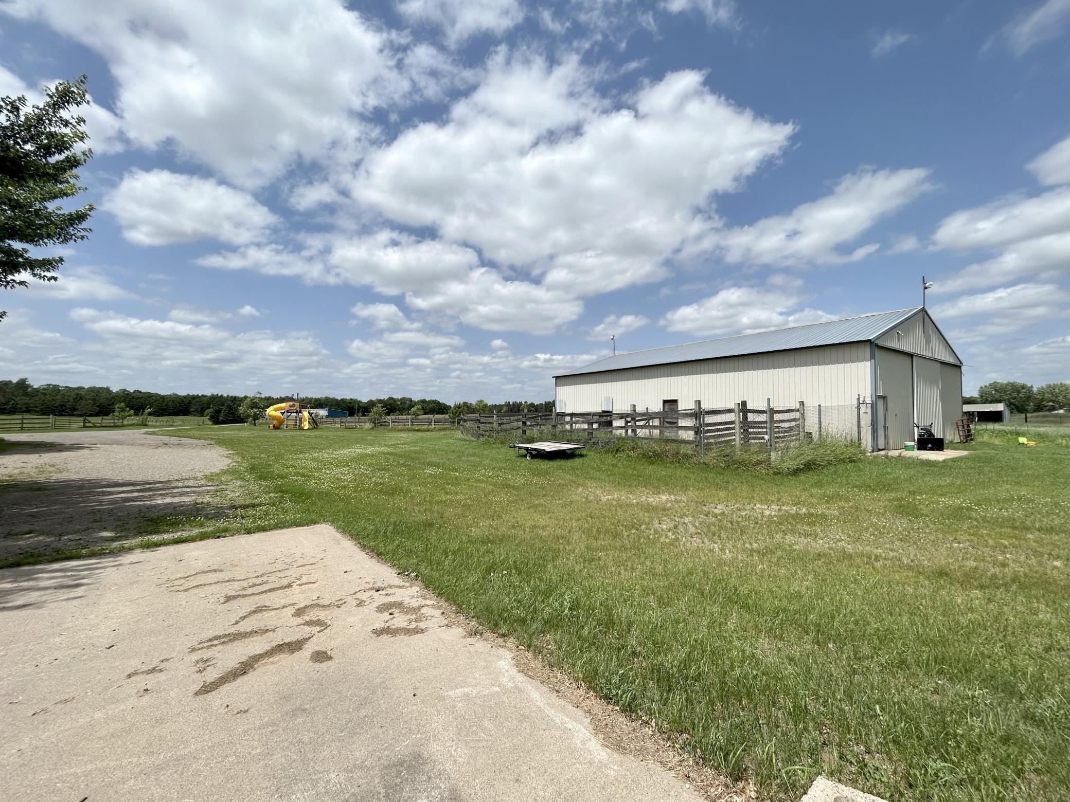 Experience the tranquility of country living and pursue your agricultural vision with this cutting-edge facility designed for sustainable, year-round production. This exceptional 55.85-acre estate in Stacy, MN, offers a rare opportunity, featuring a fully renovated walk-out rambler, state-of-the-art aquaponics facilities, and a complete equestrian setup, all within a quick, easy commute to the Twin Cities. The spacious rambler is move in ready - every detail is new: kitchen cabinets, granite counters and stainless-steel appliances, new bath fixtures, fresh paint, new flooring, and designer lighting throughout, creating an atmosphere of modern elegance. The main floor includes three bedrooms (the primary with its own private ¾ bath), a full bath, the living room, kitchen and informal dining room, with a sliding glass door to a large, covered deck, a nice sitting room that could function as an office or main floor family room with access to the attached two car garage. Also conveniently located off the sitting room is a main floor laundry room and ¾ bath. The walk-out lower level offers a family room, fourth bedroom, ¾ bath and an office. A massive 120' x 136' commercial greenhouse provides a climate-controlled environment, optimized for high-yield, continuous production of high-value fish and crops. The large 126' x 40' pole barn serves as the central operations facility, efficiently housing all essential aquaponics equipment (pumps, filtration, tanks, etc.) and offering substantial space for processing, packaging, and logistics. Another feature of this property is the dedicated Horse Barn, featuring six stalls, and leads to an outdoor arena. Other outbuildings include a 24' x 64' hay barn, a 26' x 32' workshop (or additional 4 car garage), and a chicken coop. The possibilities here are endless!