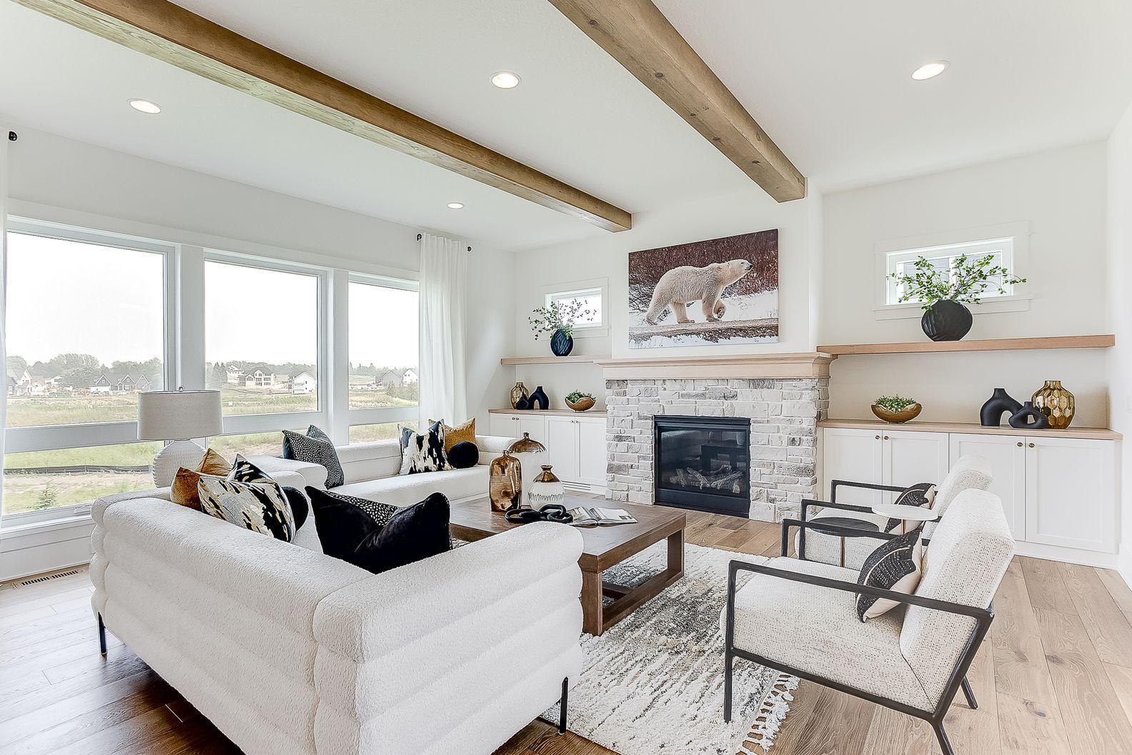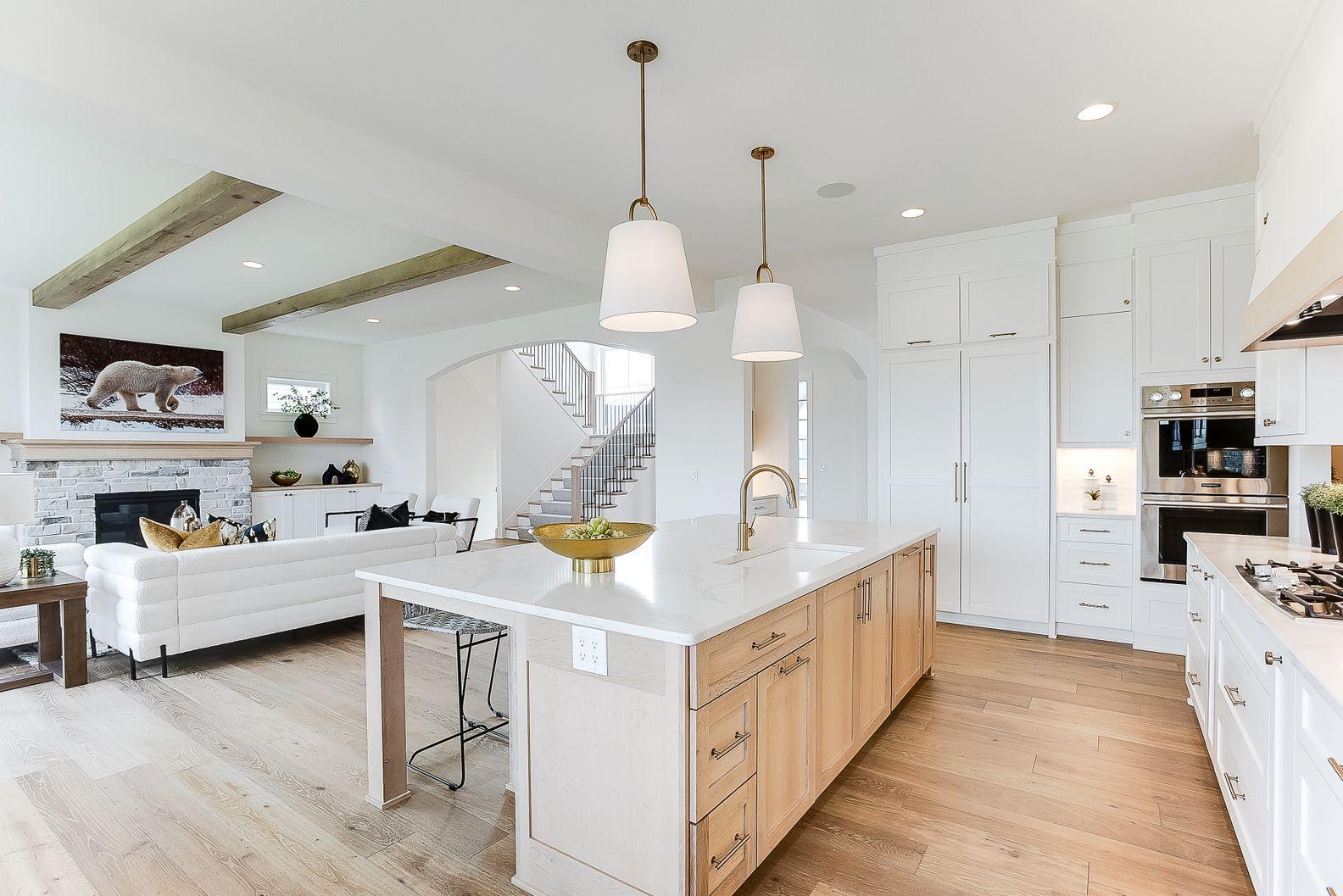 Welcome to Ham Lake's newest neighborhood, Elwell Farms, featuring 106 beautiful acreage sites that offer wooded/pond and scenic views overlooking the Carlos Avery Wildlife Management Area. Amenities in the neighborhood include a pool, clubhouse, park, fishing pier, and so much more! NIH Homes is excited to bring this new floor plan to the neighborhood, which offers tall ceilings on the main floor, including wood beams and beautiful ceiling details. Other main floor features include a large walk-through pantry/prep area, a sunroom with a stone-surround fireplace, and an office. Upstairs, you will find a luxurious primary suite, a Jack-and-Jill bedroom, a junior suite, and a large bonus room. The basement is thoughtfully designed, including entertaining areas in the family room, rec room, and bar, all overlooking the golf sim room. It also features a guest bedroom/bath, an exercise room, and a large indoor athletic court. The garage is fully finished, including a unit heater and floor drain. All of this is complemented by a beautiful pond view out the back.