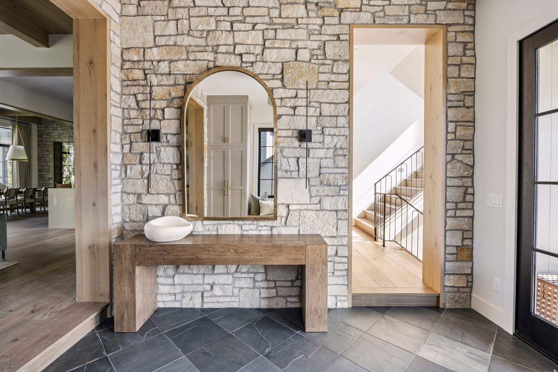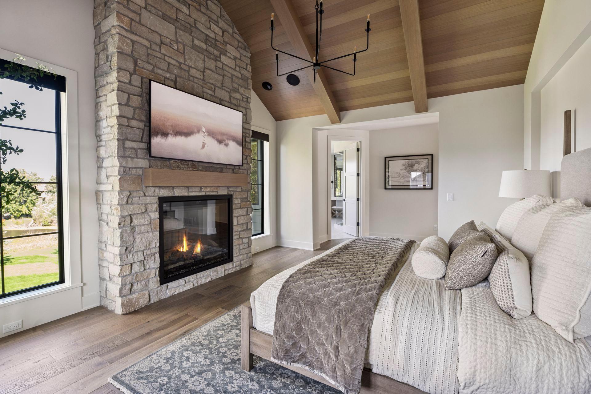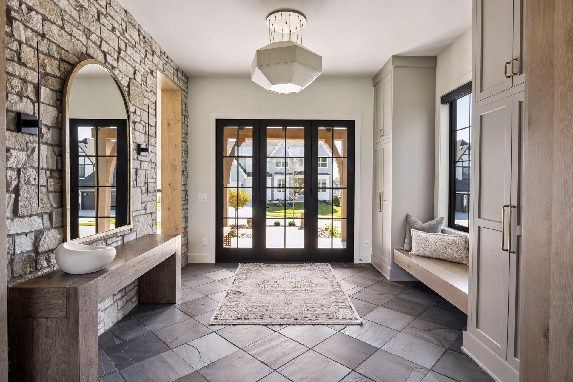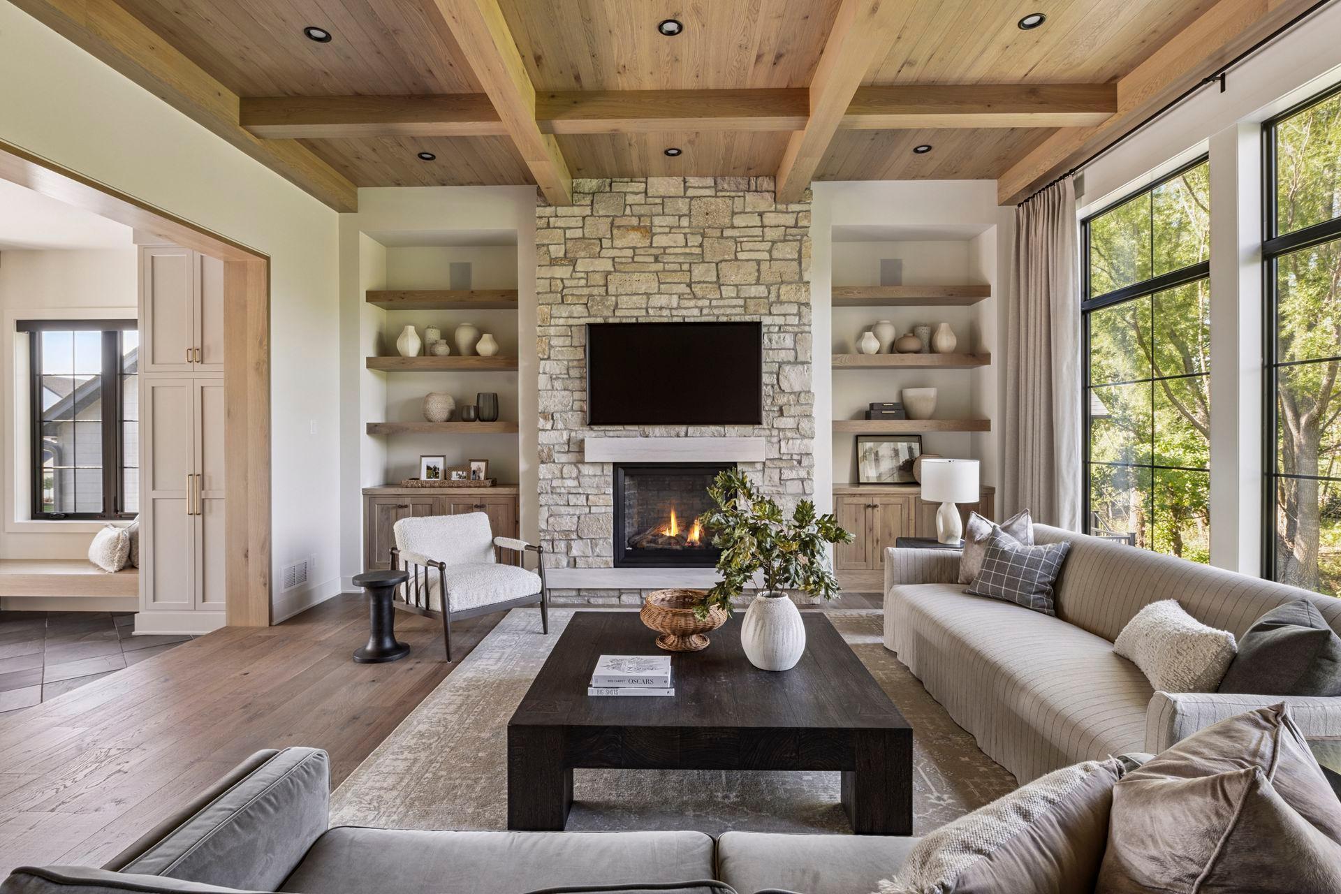 Experience the Woodstone, a Hanson Builders masterpiece, featured in this Fall’s Artisan Home Tour. This newly constructed home merges lavish design with everyday comfort, showcasing impeccable craftsmanship and high-end finishes throughout. The Great Room, Kitchen, and Dining Room boast 12' ceilings and expansive Marvin windows, bathing the space in natural light. Rich wood ceilings with architectural beams infuse warmth and sophistication into the main level. A dramatic two-sided wine display and bar flow into a cozy Sunroom, while a dual-sided stone fireplace connects the Sunroom and Screen Porch. Tucked away for privacy, the main-level Executive Office provides a serene, inspiring workspace. The Owner’s Suite offers a harmonious blend of elegance and relaxation, featuring a vaulted wood ceiling with beams, a private sitting area, and a stone fireplace. Custom vanities and mirrors frame windows overlooking the wooded backyard, creating a spa-like escape. Upstairs, three additional Suite bedrooms each feature unique built-ins—daybeds, desks, or bookshelves—crafted for individuality. The upper level is crowned by a Bonus Room with a 100" TV and a 7.1 full surround sound system, accompanied by a wet bar—perfect for immersive movie nights or casual entertaining. The lower level is an entertainer’s paradise, complete with an Indoor Sport Center, a Golf Simulator with a dedicated viewing area, and a refined Bar and Whiskey Lounge—ideal for hosting memorable gatherings. Car enthusiasts will appreciate the oversized 940 SQFT garage, a perfect complement to this luxurious retreat.