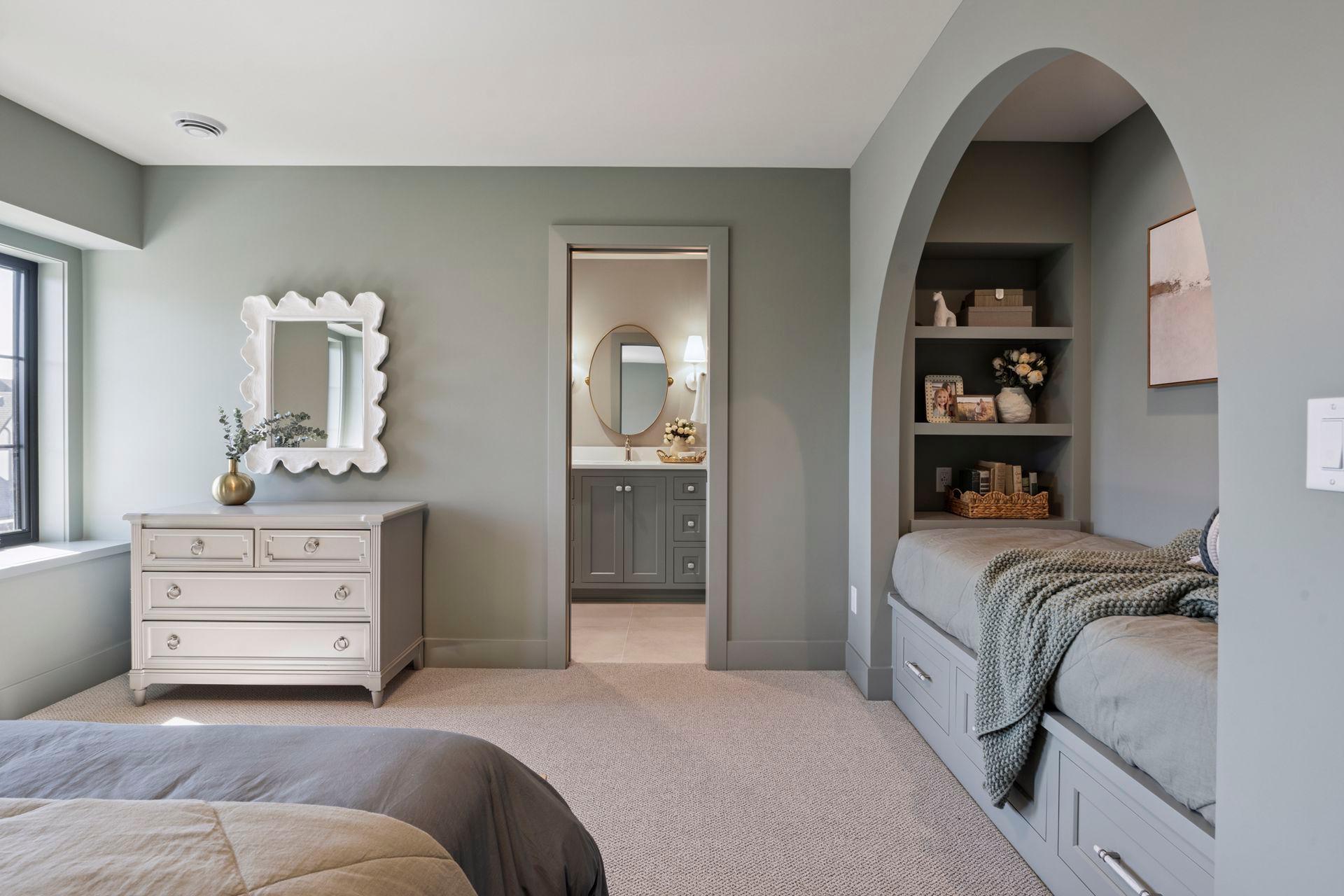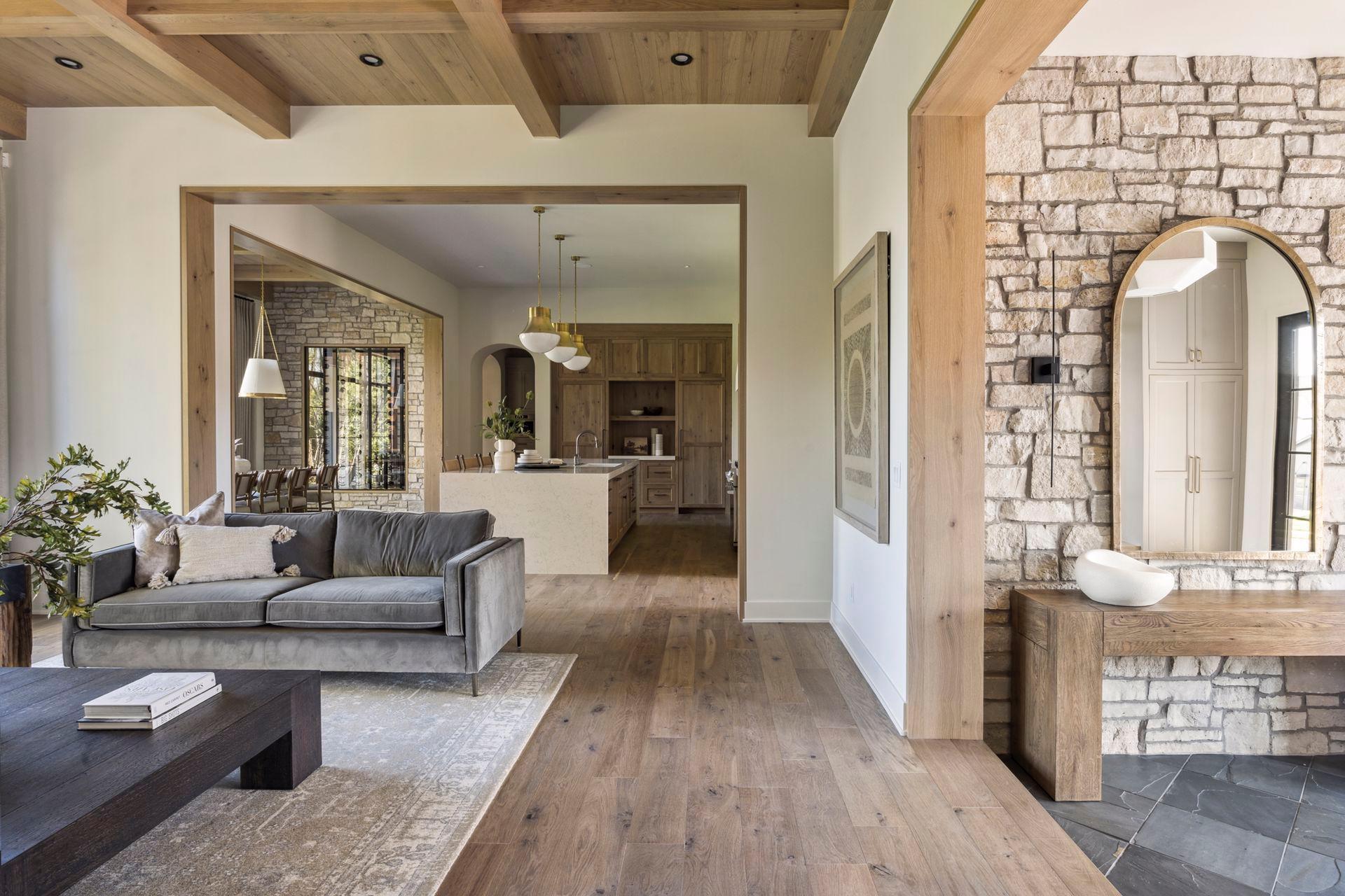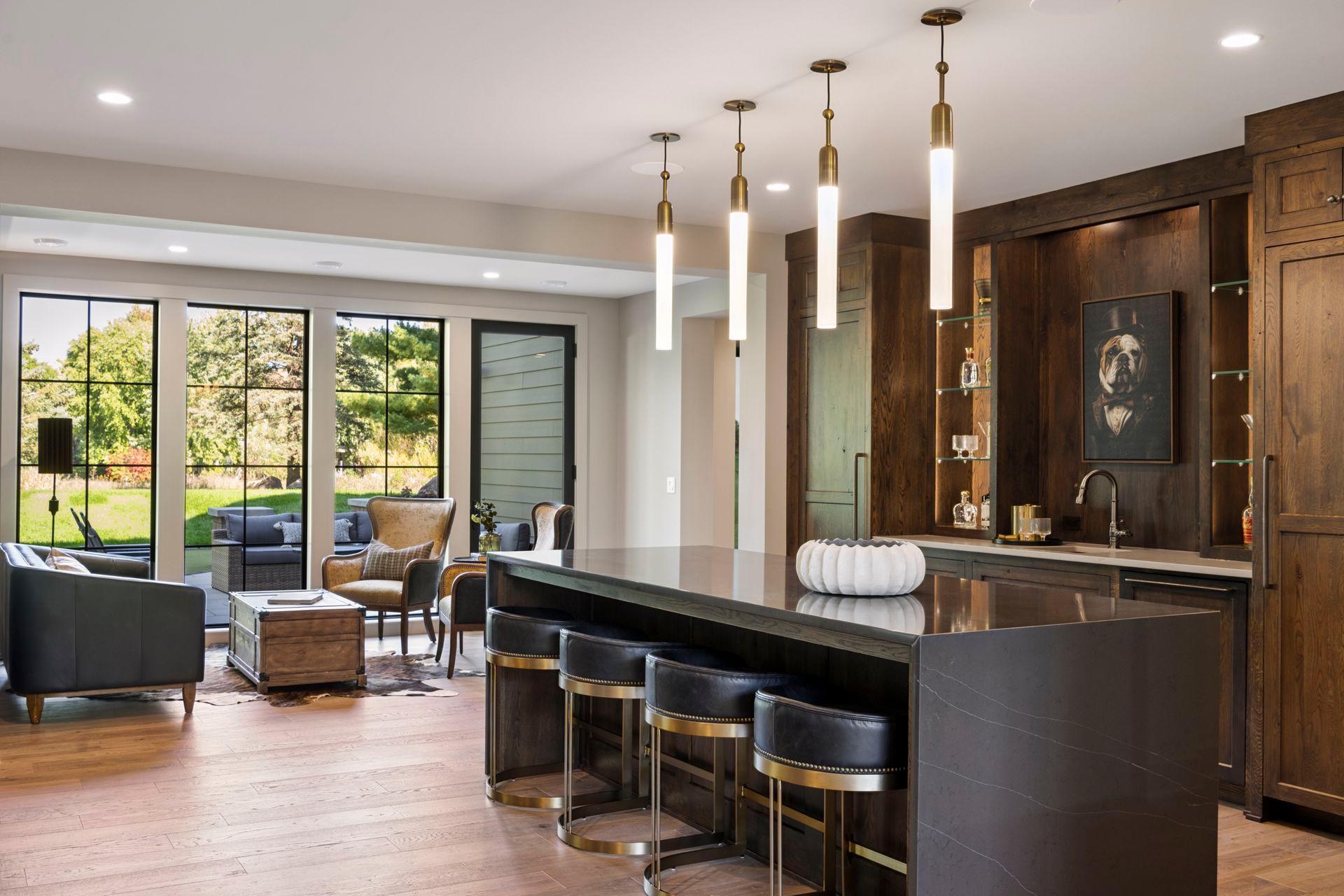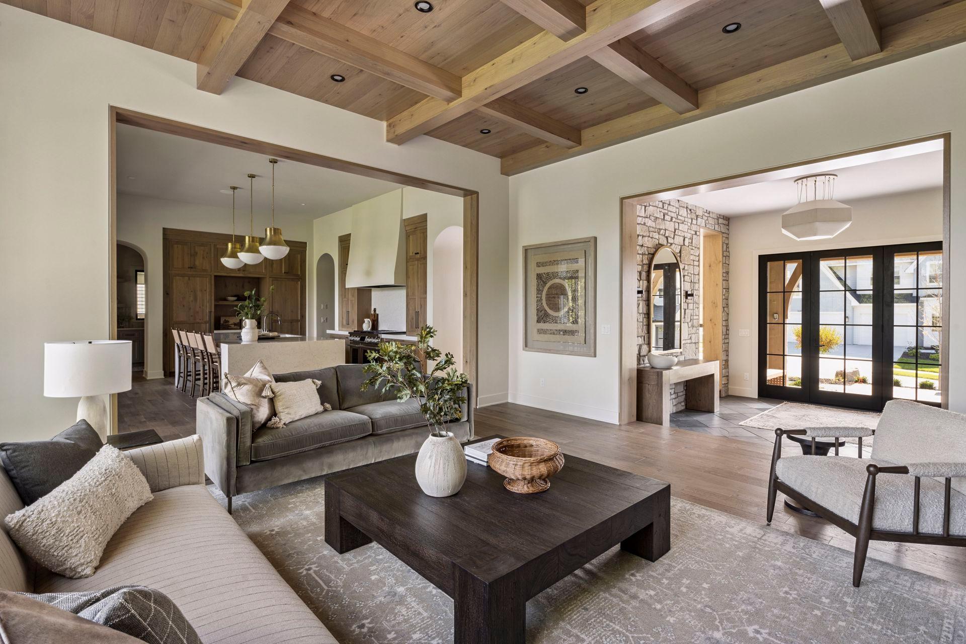 Experience the Woodstone, a Hanson Builders masterpiece, featured in this Fall’s Artisan Home Tour. This newly constructed home merges lavish design with everyday comfort, showcasing impeccable craftsmanship and high-end finishes throughout. The Great Room, Kitchen, and Dining Room boast 12' ceilings and expansive Marvin windows, bathing the space in natural light. Rich wood ceilings with architectural beams infuse warmth and sophistication into the main level. A dramatic two-sided wine display and bar flow into a cozy Sunroom, while a dual-sided stone fireplace connects the Sunroom and Screen Porch. Tucked away for privacy, the main-level Executive Office provides a serene, inspiring workspace. The Owner’s Suite offers a harmonious blend of elegance and relaxation, featuring a vaulted wood ceiling with beams, a private sitting area, and a stone fireplace. Custom vanities and mirrors frame windows overlooking the wooded backyard, creating a spa-like escape. Upstairs, three additional Suite bedrooms each feature unique built-ins—daybeds, desks, or bookshelves—crafted for individuality. The upper level is crowned by a Bonus Room with a 100" TV and a 7.1 full surround sound system, accompanied by a wet bar—perfect for immersive movie nights or casual entertaining. The lower level is an entertainer’s paradise, complete with an Indoor Sport Center, a Golf Simulator with a dedicated viewing area, and a refined Bar and Whiskey Lounge—ideal for hosting memorable gatherings. Car enthusiasts will appreciate the oversized 940 SQFT garage, a perfect complement to this luxurious retreat.