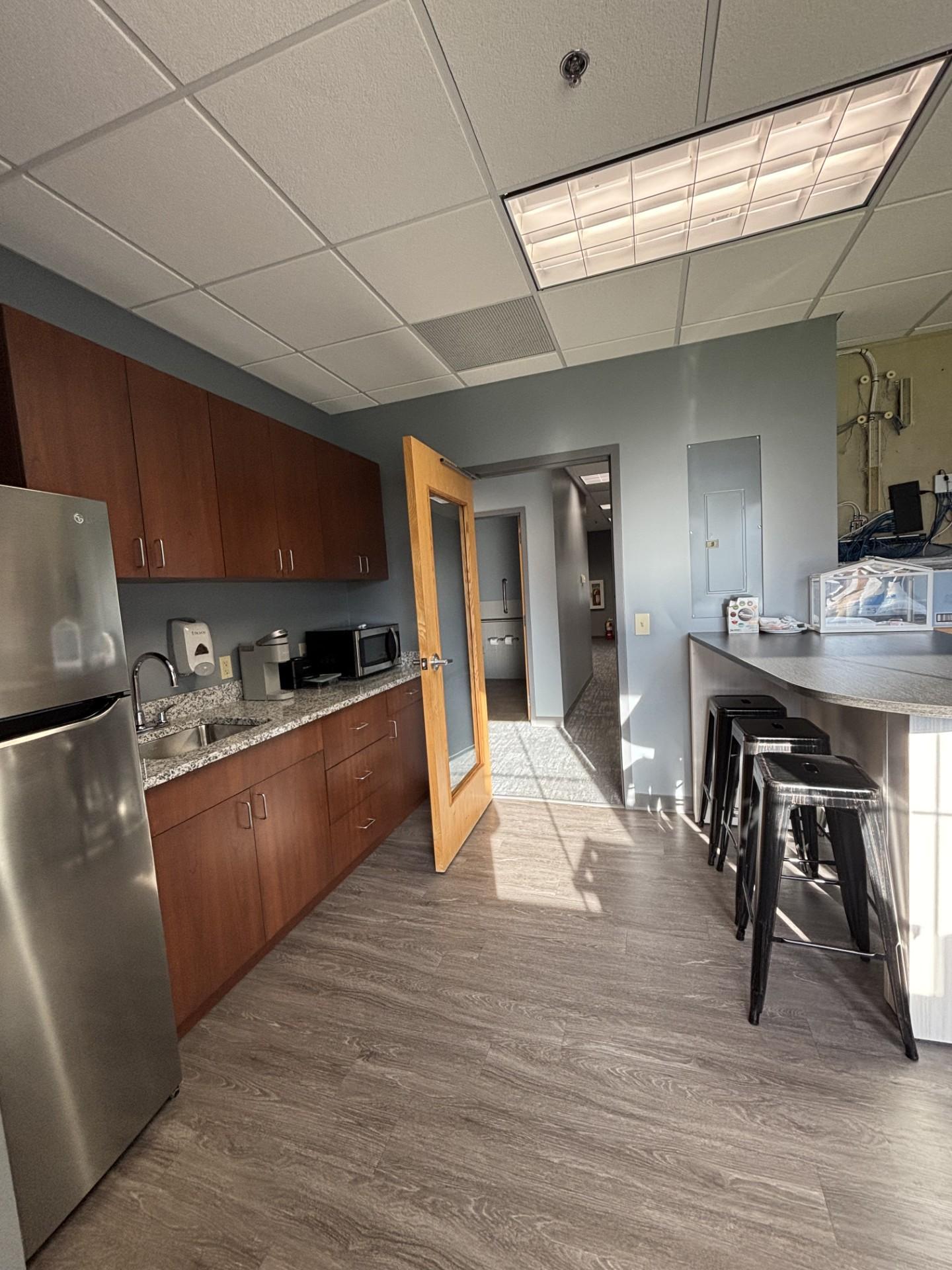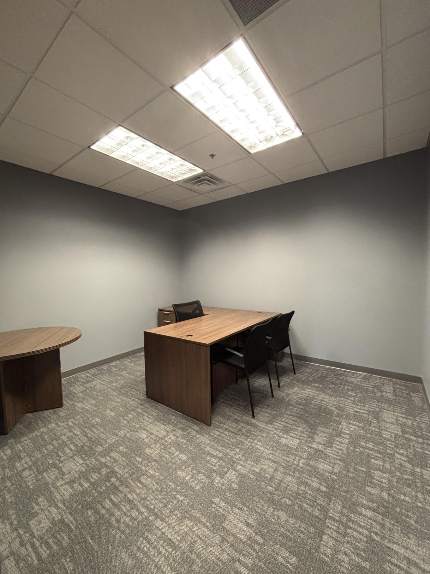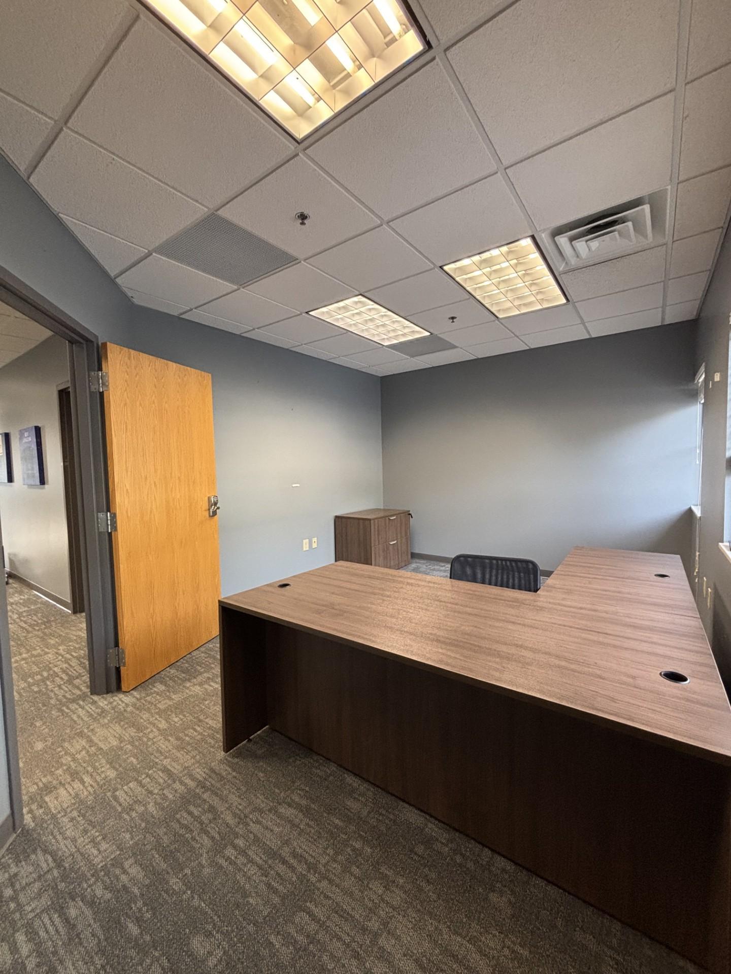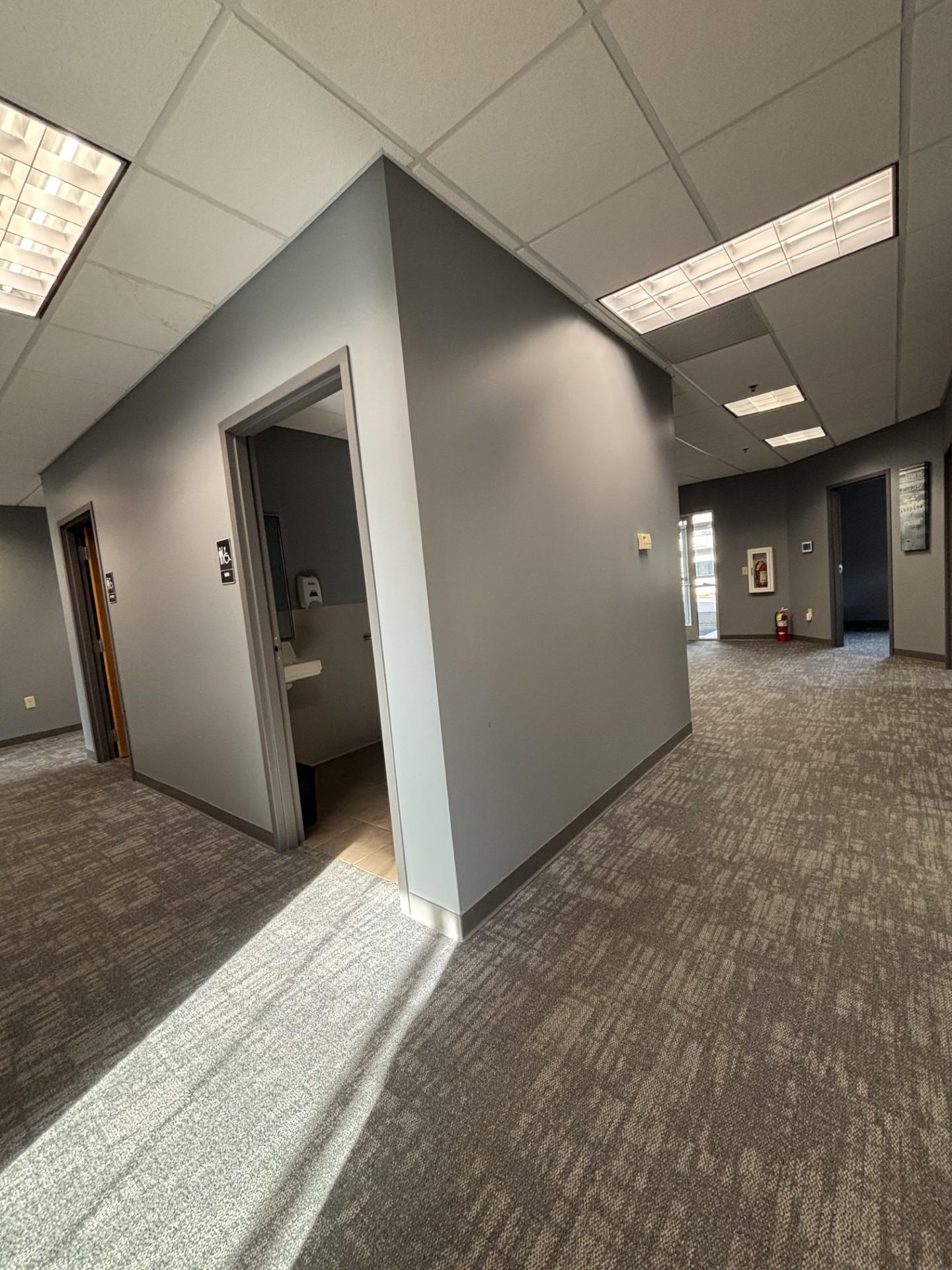 Recently built-out, private and secure end suite. This 2500 sq.ft. suite offers ADA compliant restrooms, Wired for security, and Ample parking.